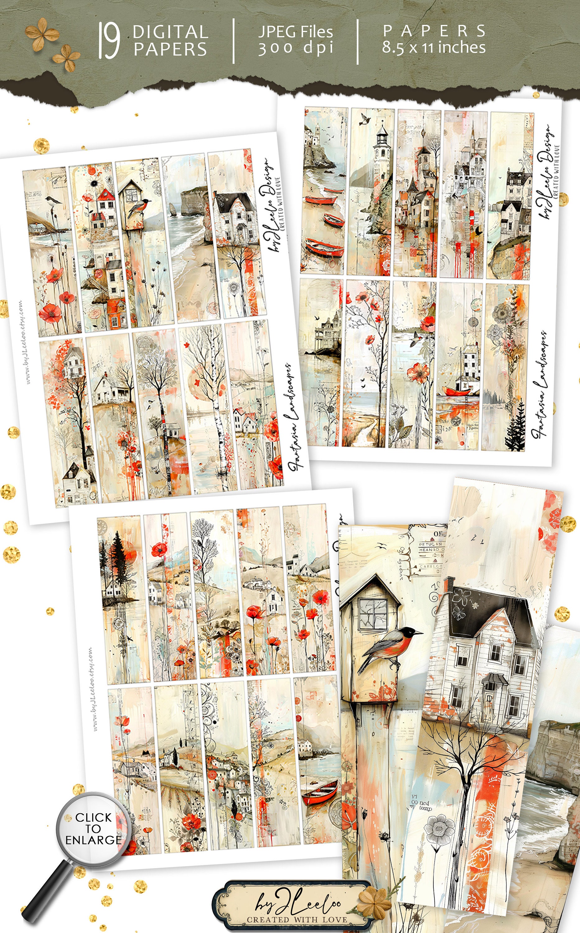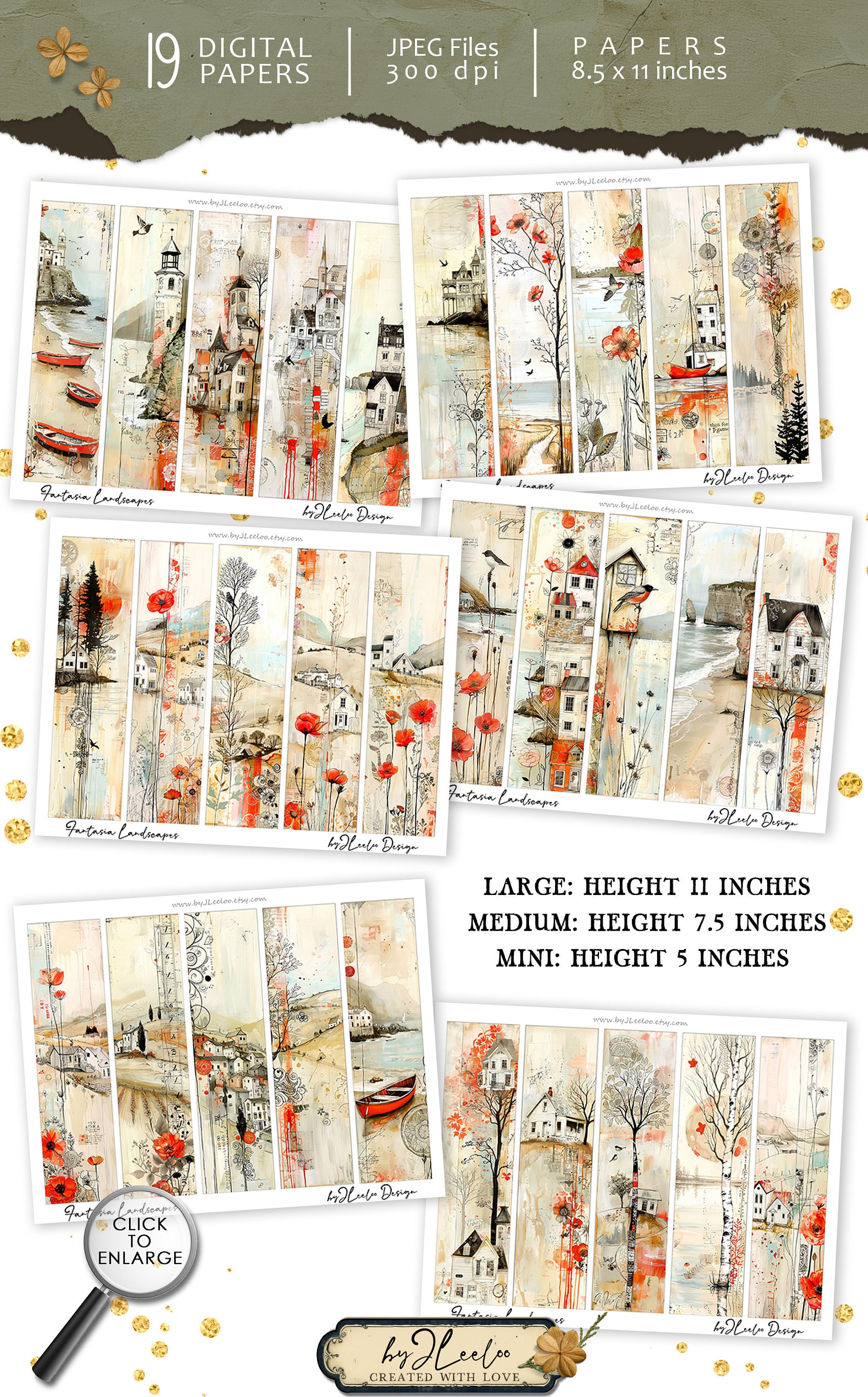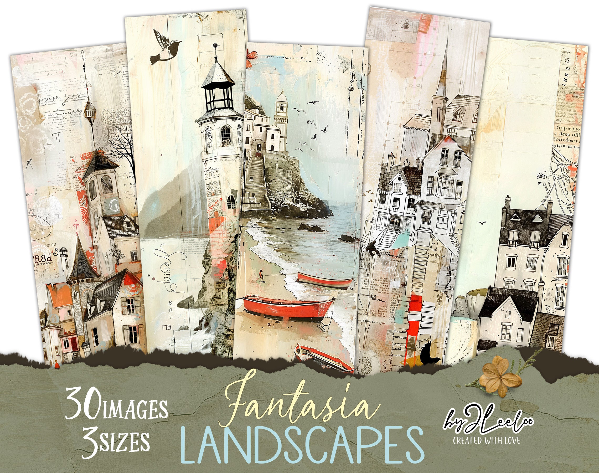 FANTASIA LANDSCAPES 30 tallies watercolor hand-drawn | Card Making Scrapbook Junk Journal | Printable digital collage Scrap pack | pp798