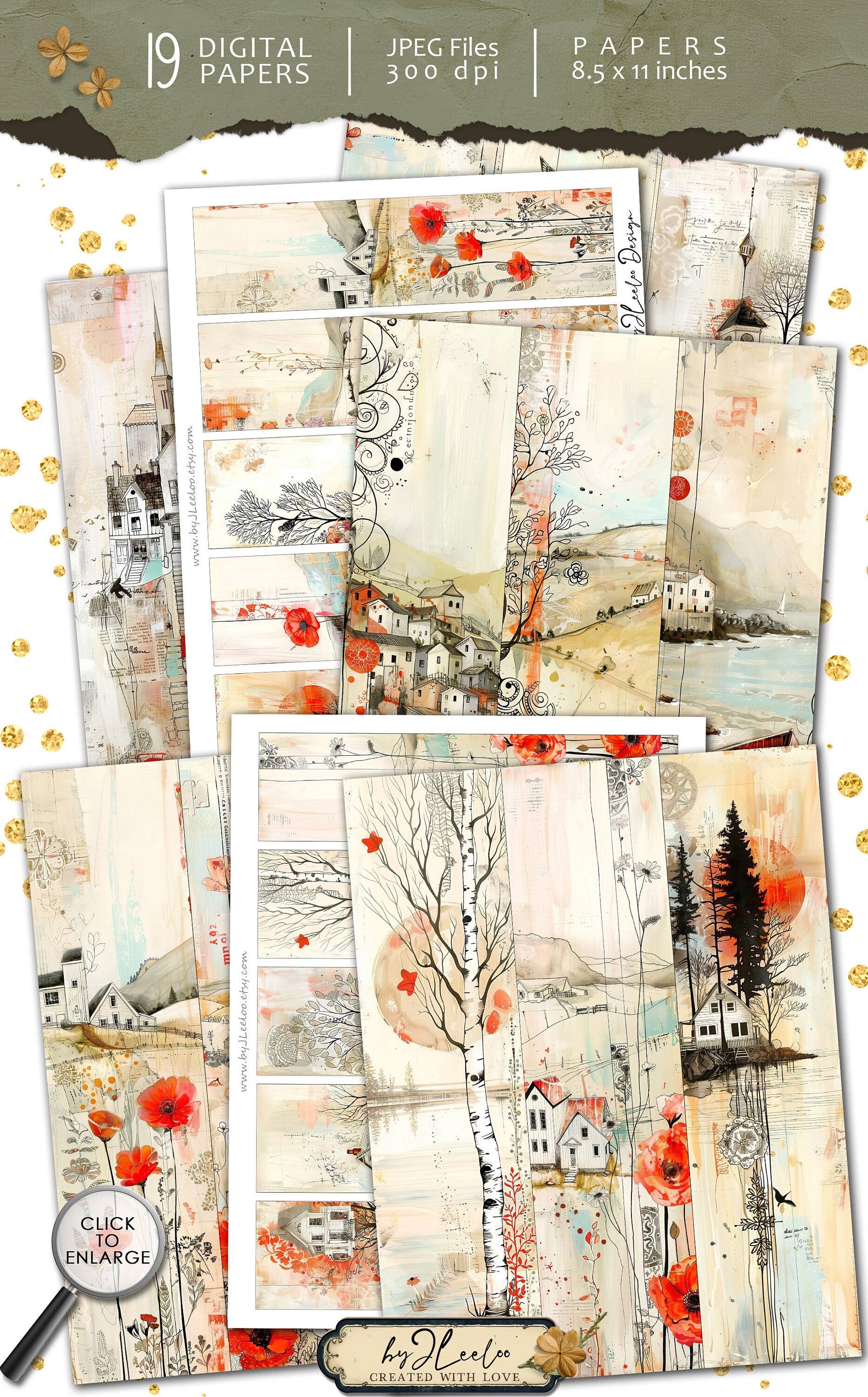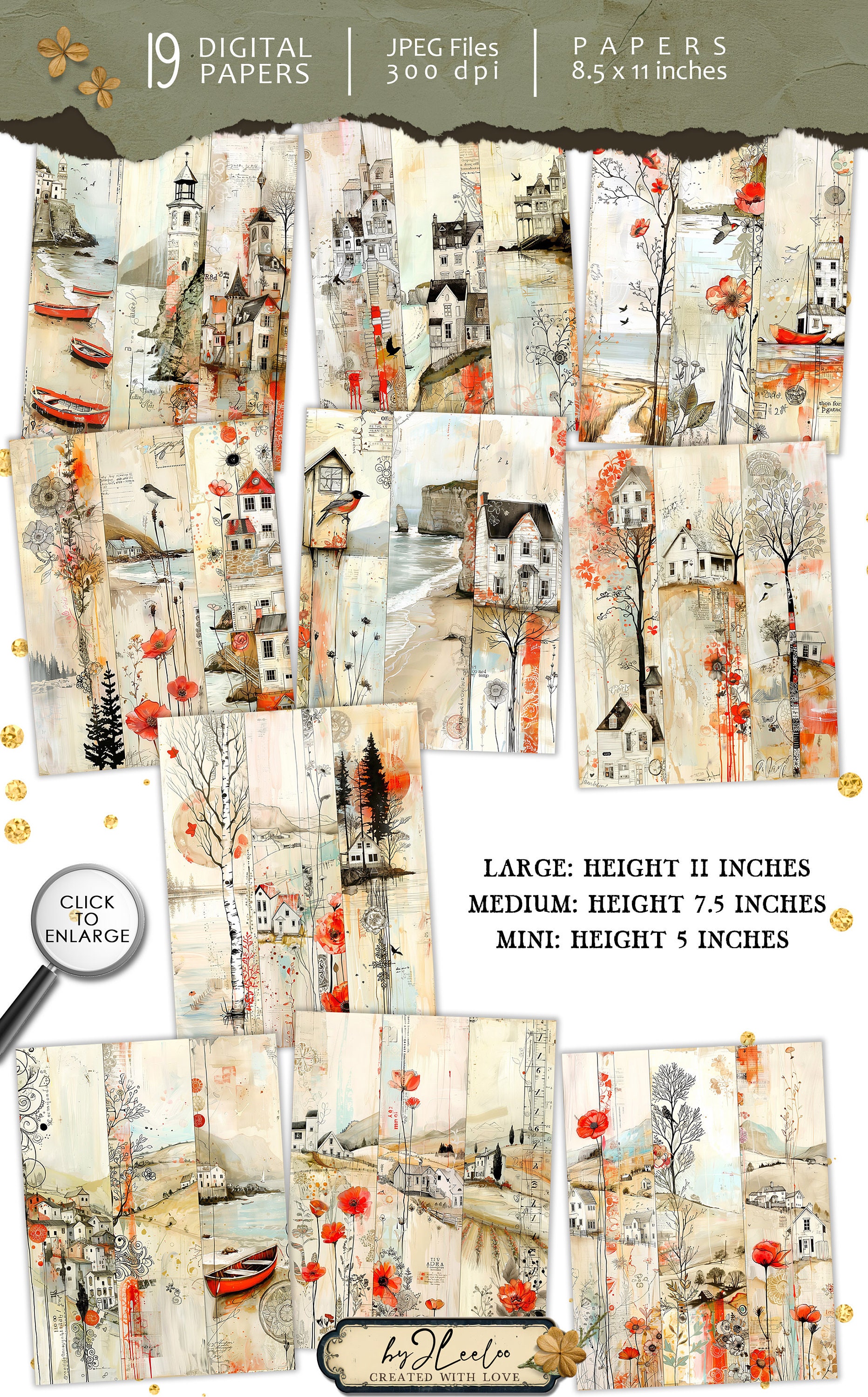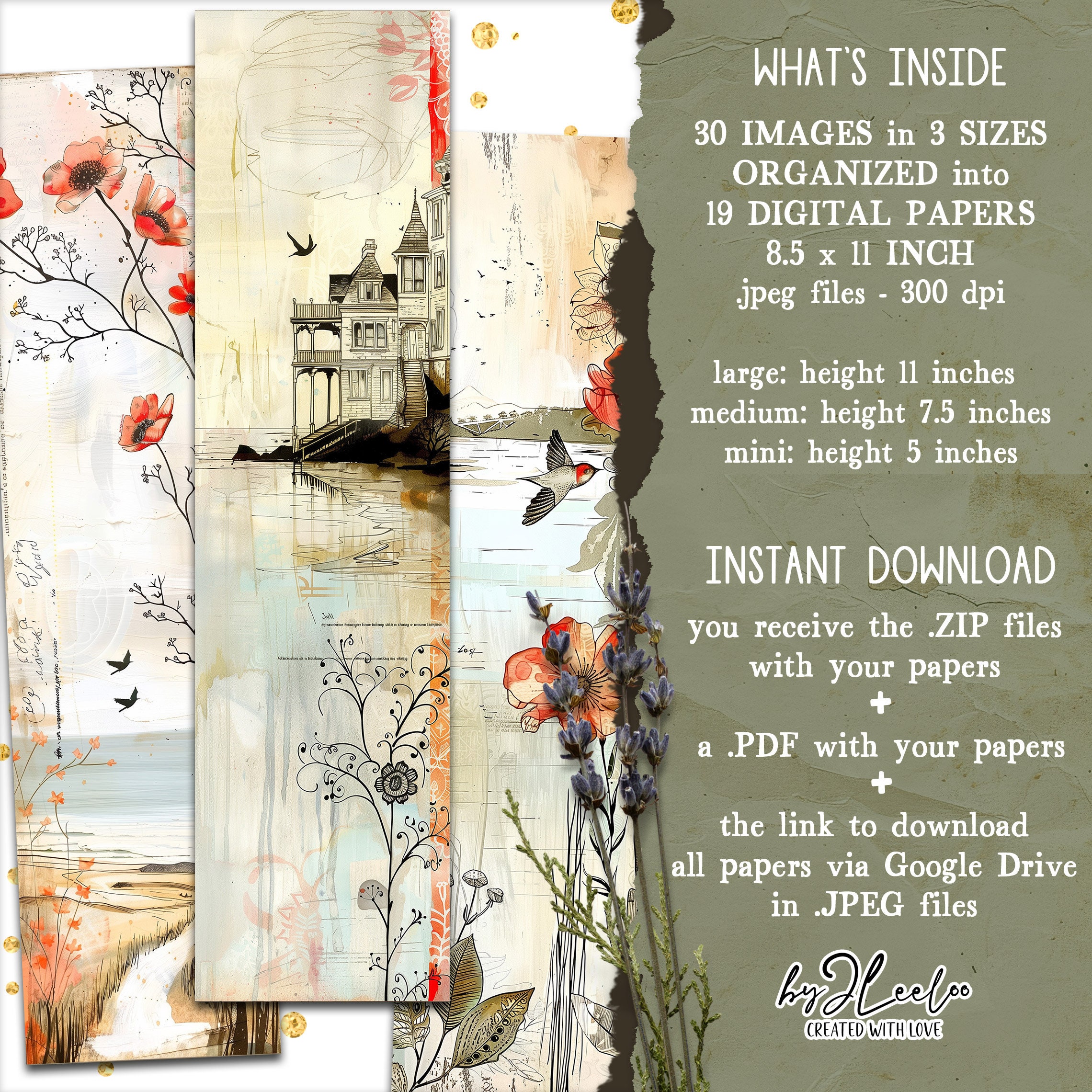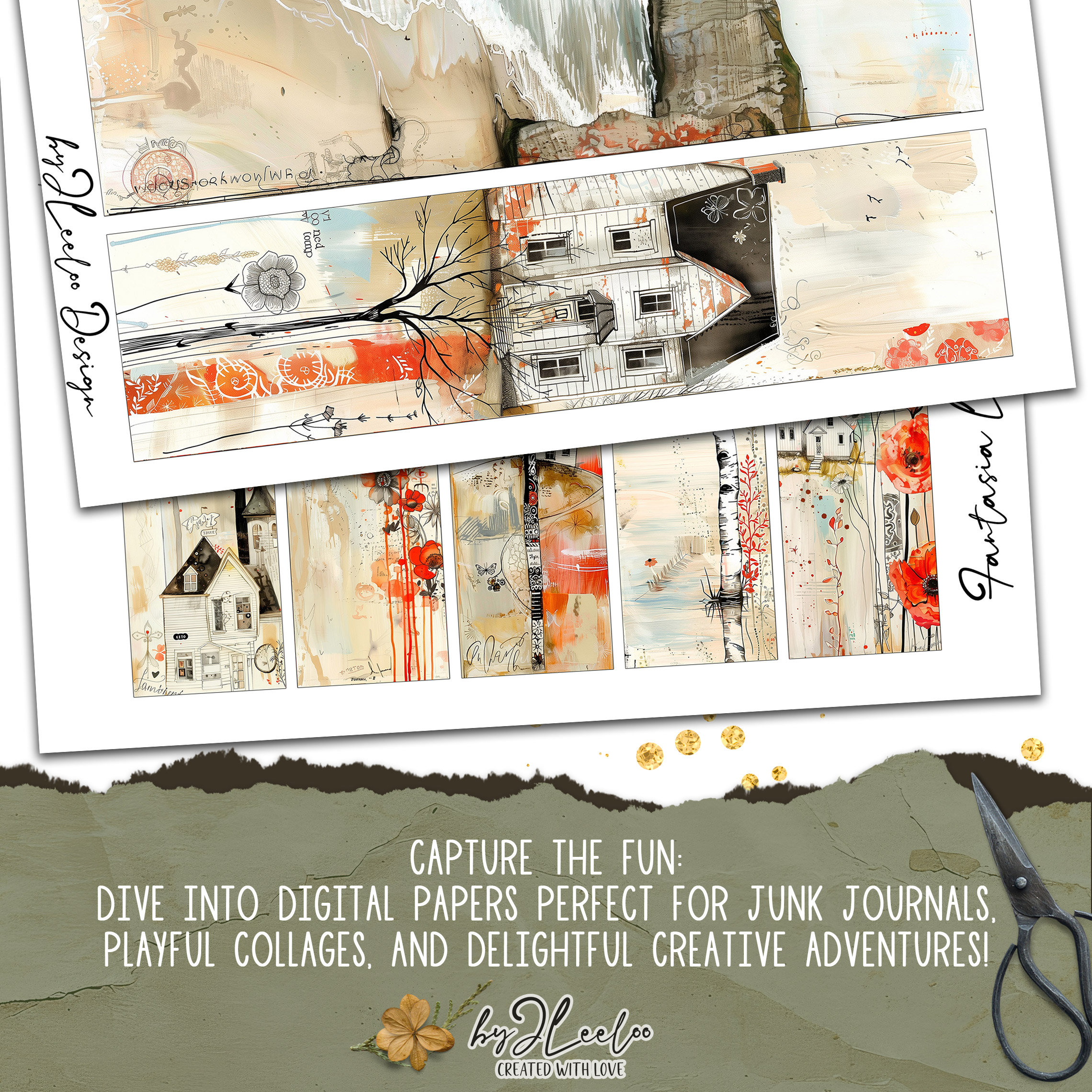 FANTASIA LANDSCAPES 30 tallies watercolor hand-drawn | Card Making Scrapbook Junk Journal | Printable digital collage Scrap pack | pp798