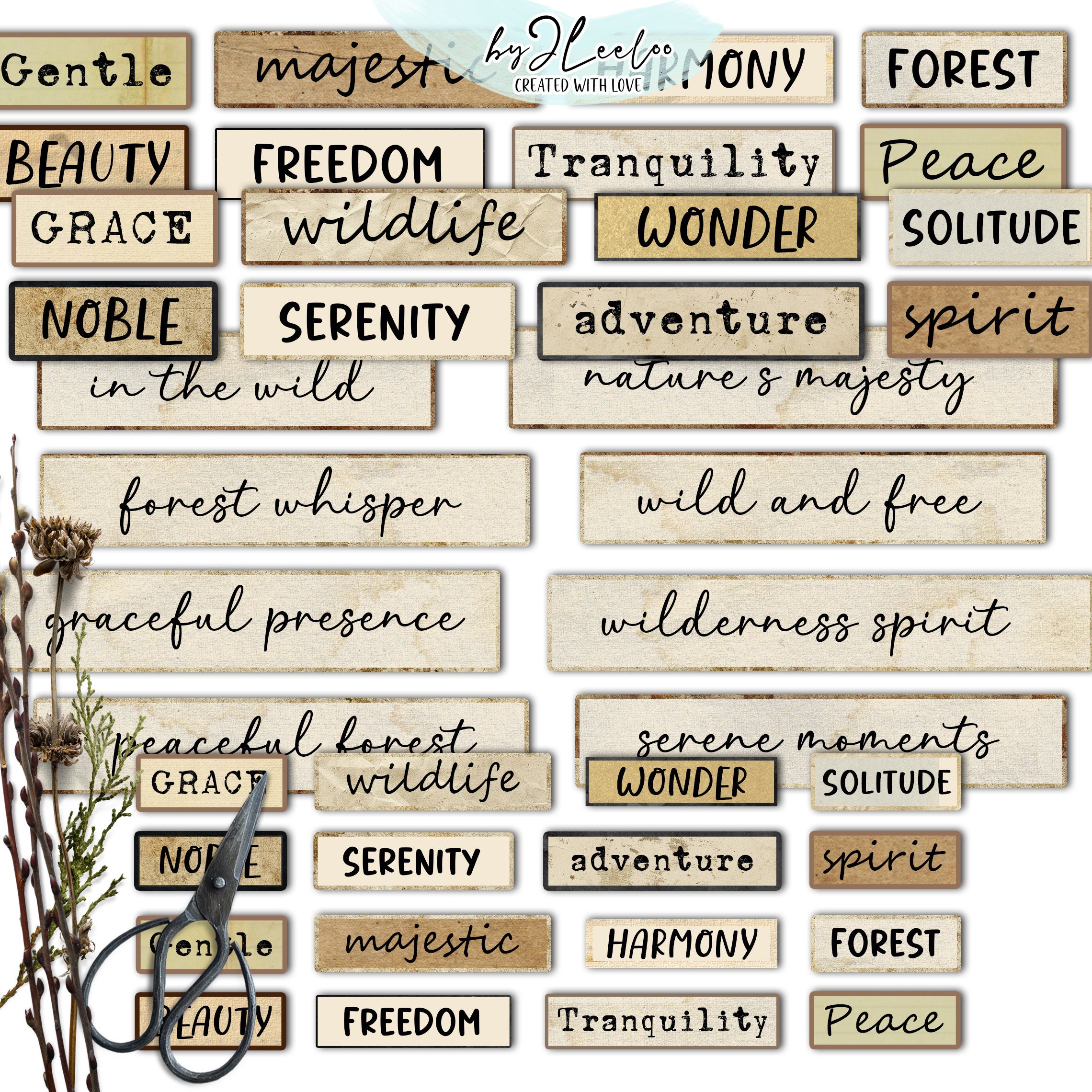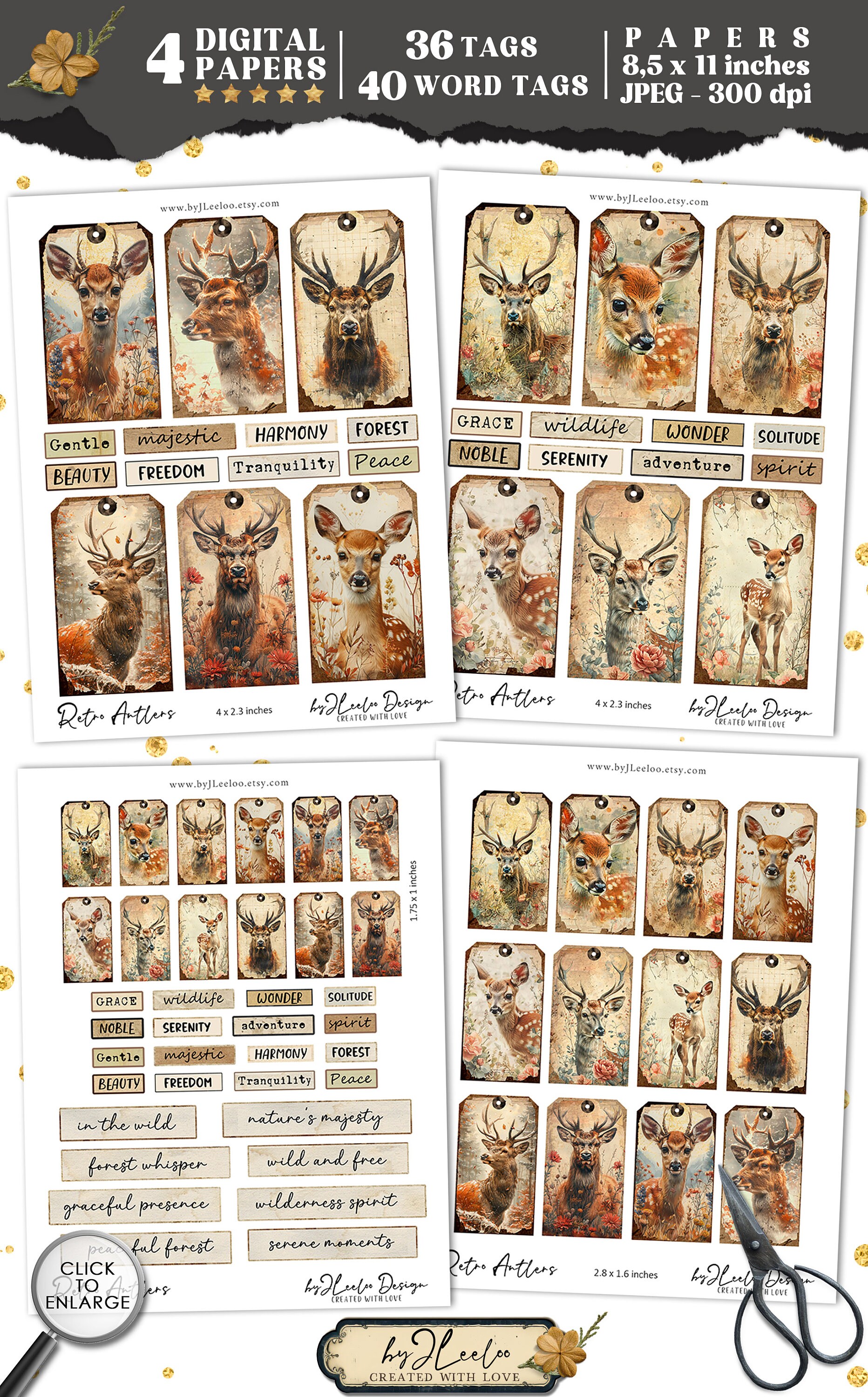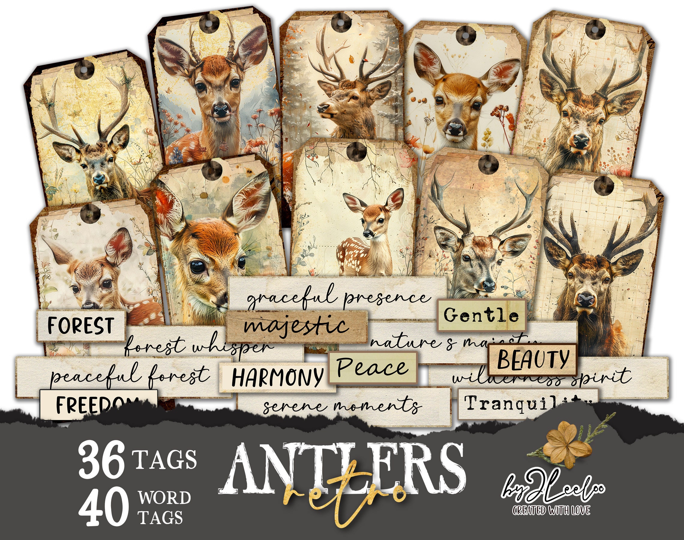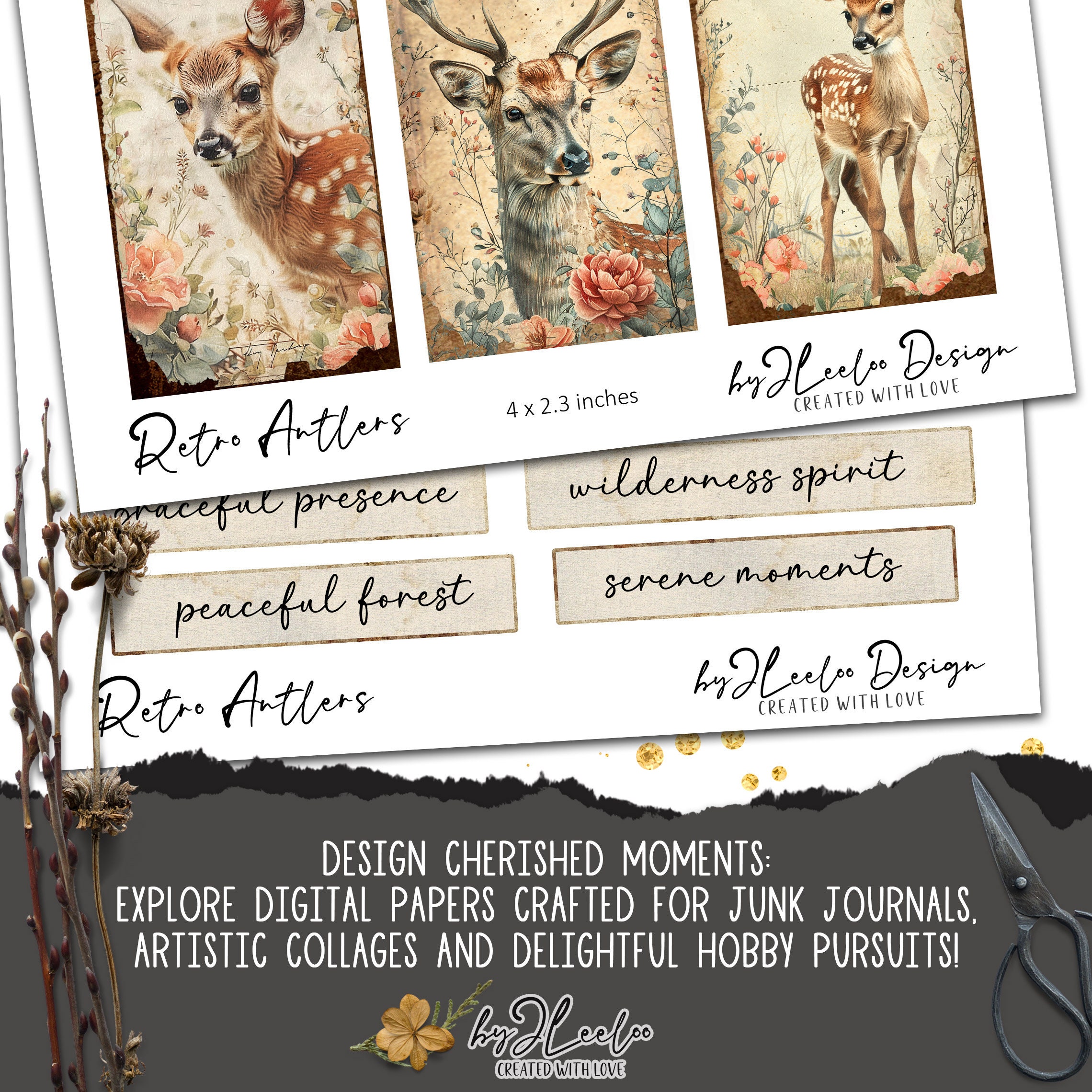 RETRO ANTLERS labels printable vintage | word tags for junk journal scrapbook diary | supplies ephemera deer forest nature digital | tl293