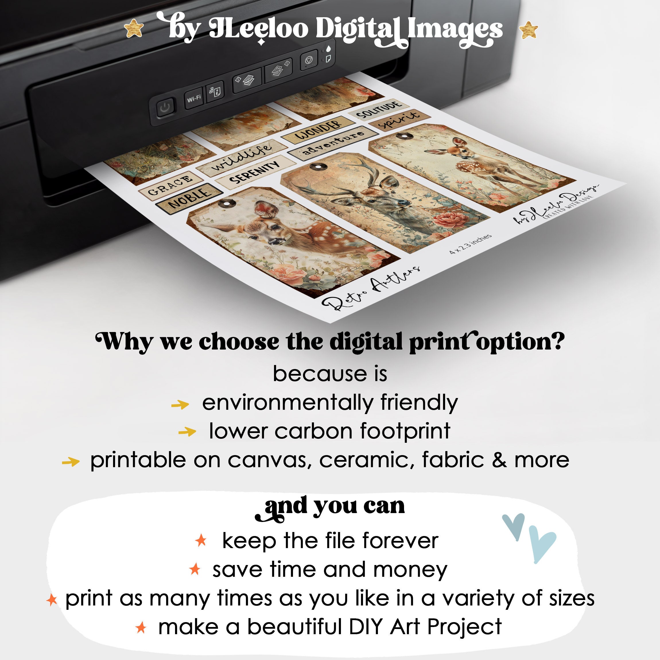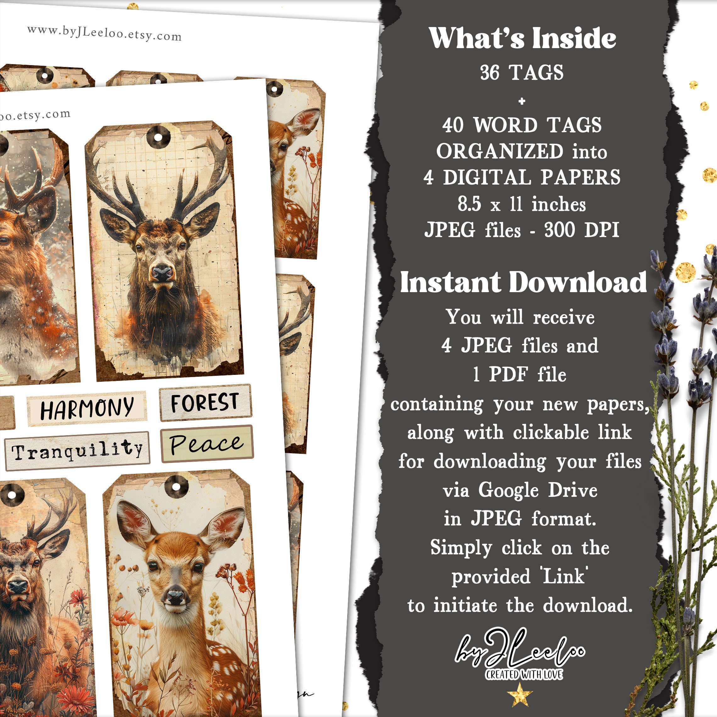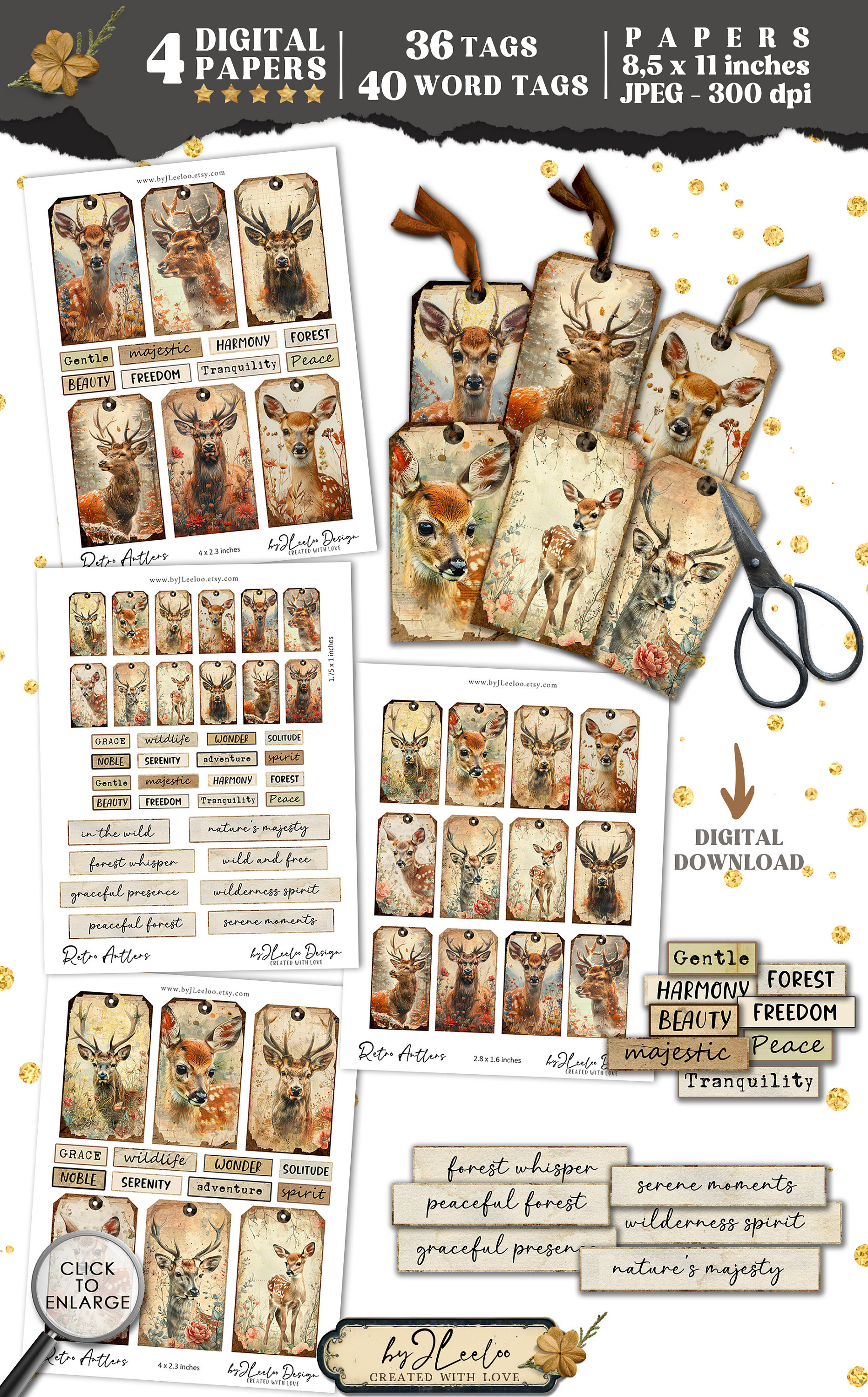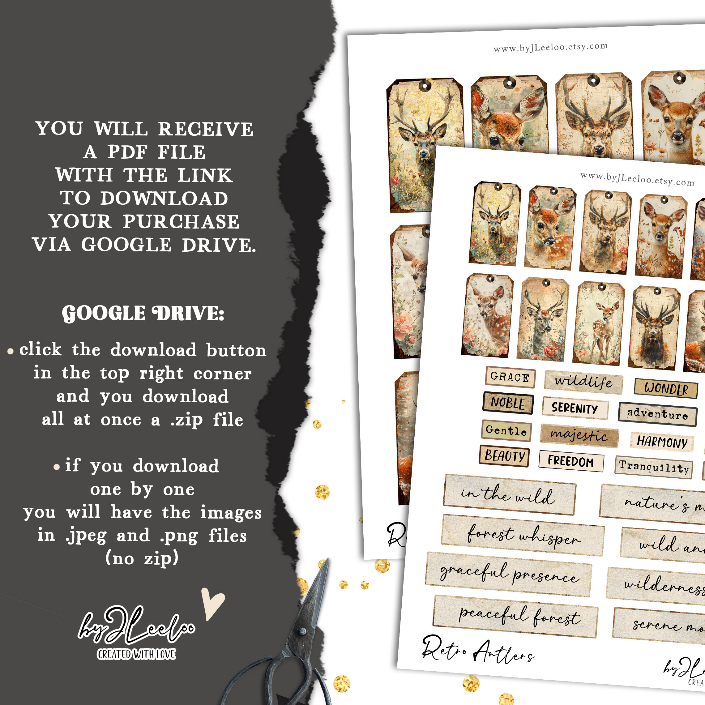 RETRO ANTLERS labels printable vintage | word tags for junk journal scrapbook diary | supplies ephemera deer forest nature digital | tl293