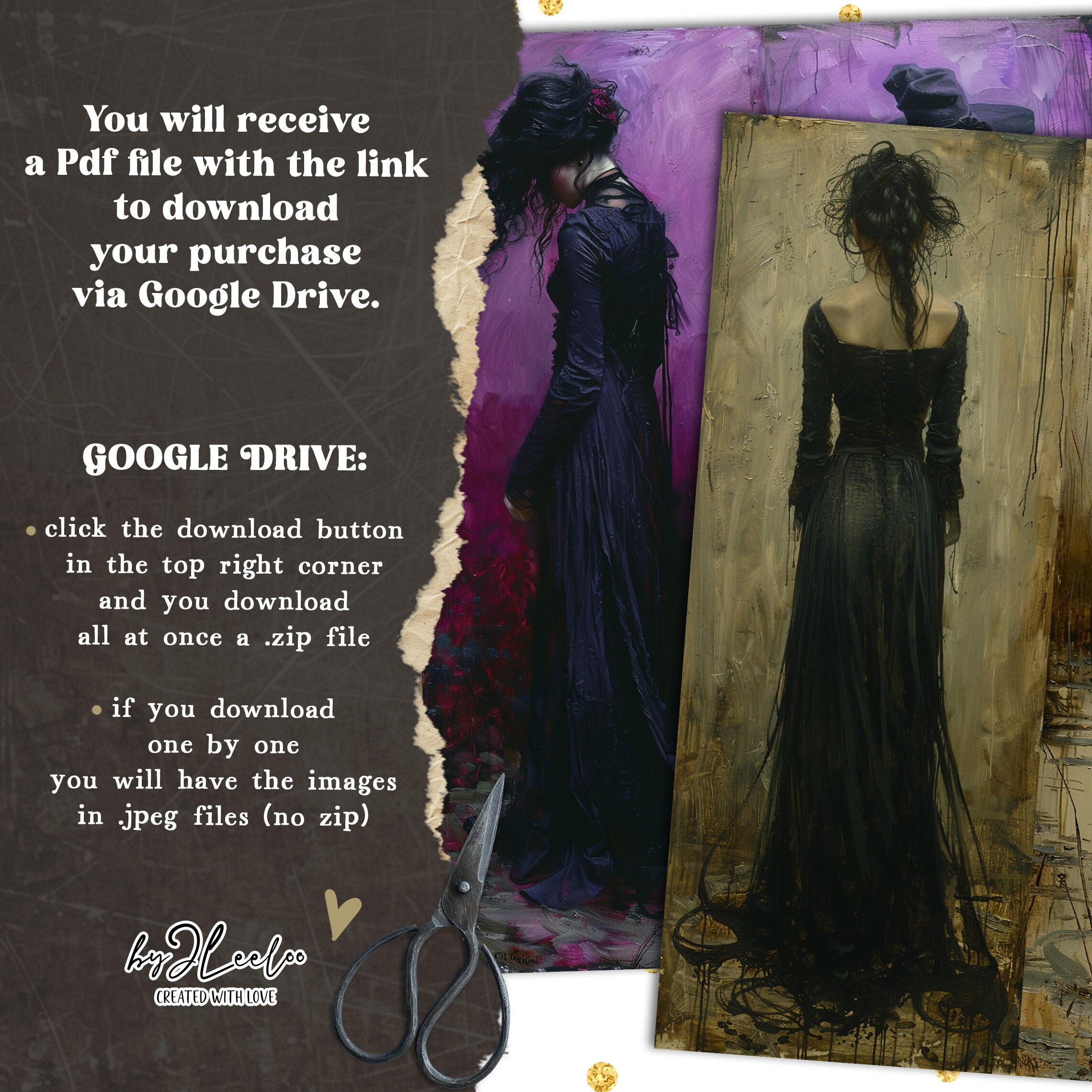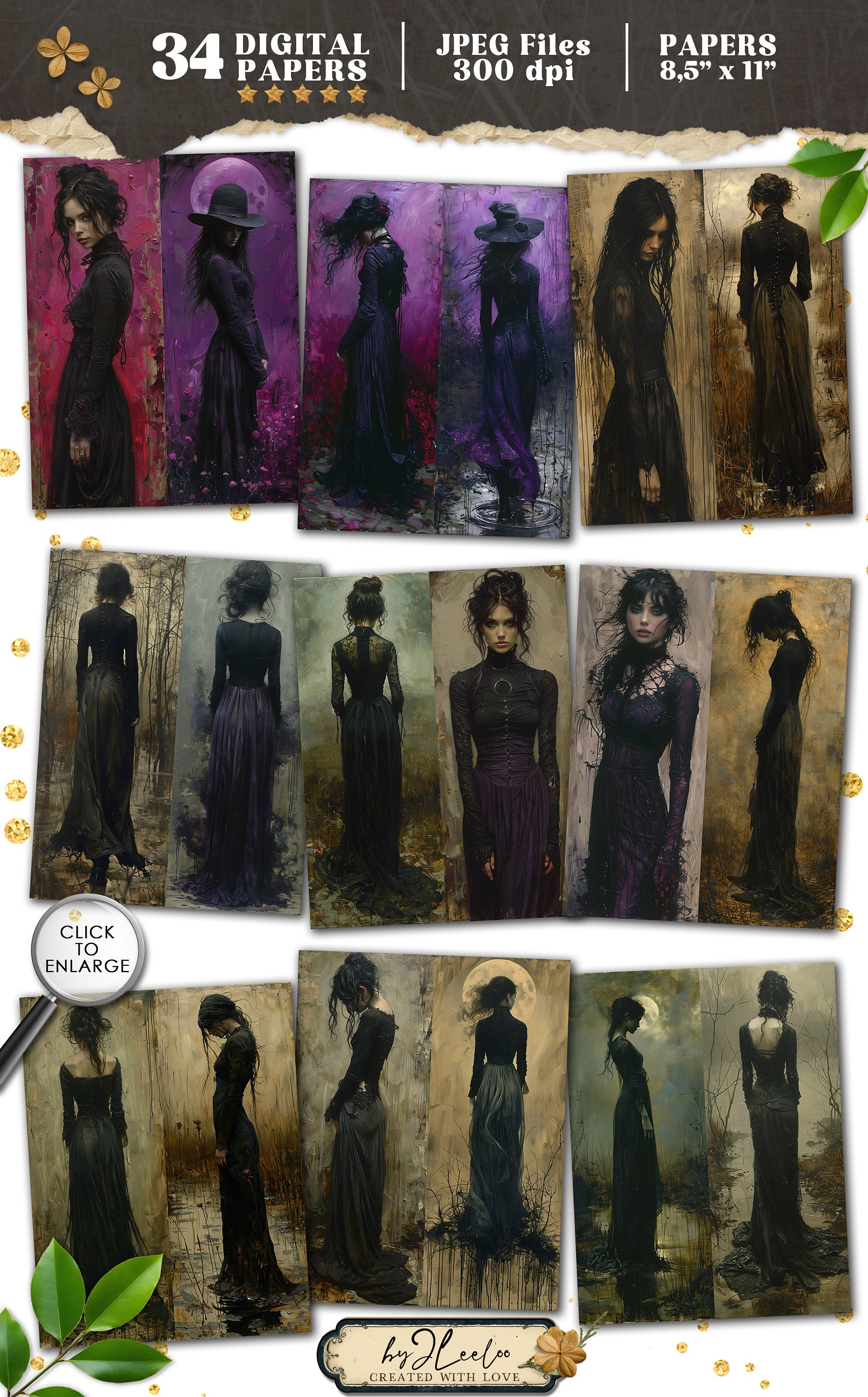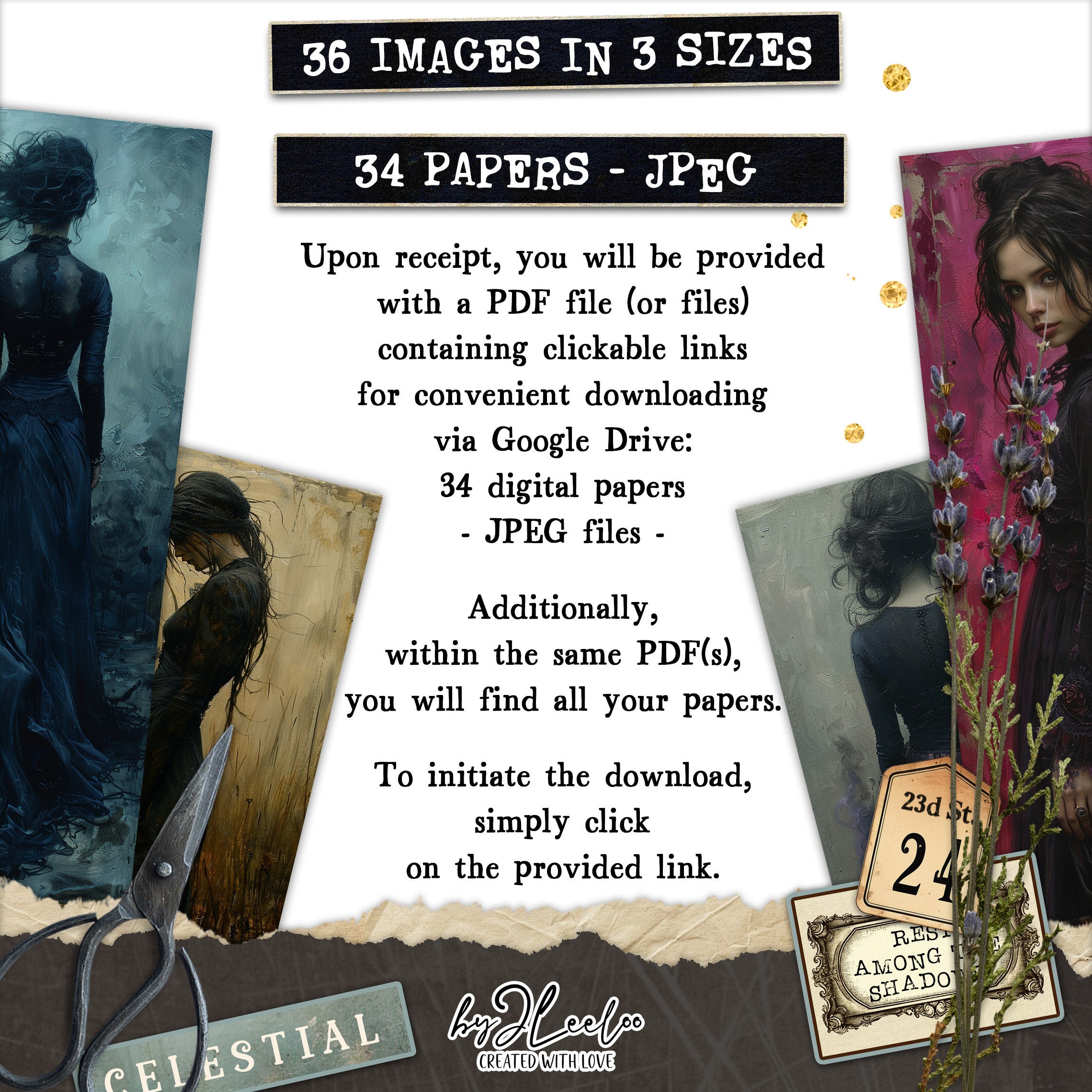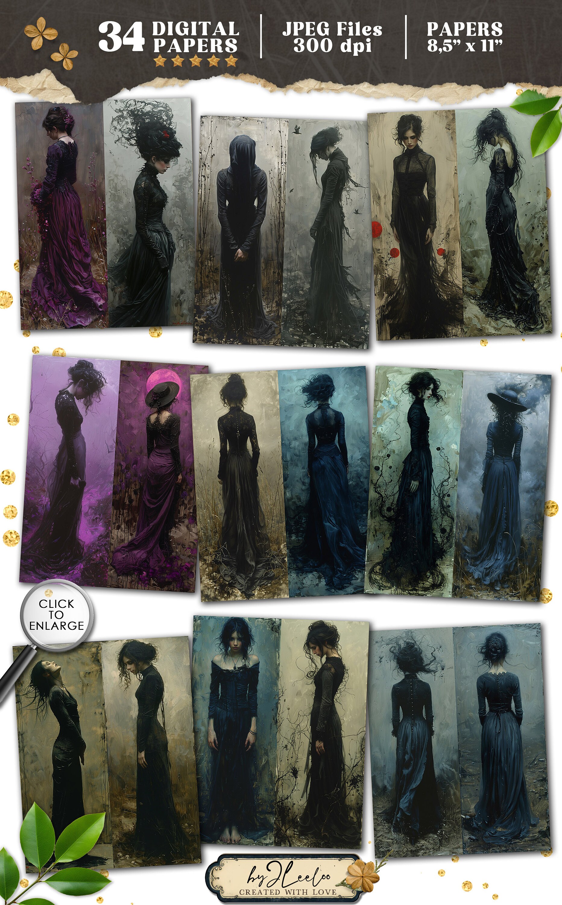 EERIE ATMOSPHERE gothic tall bookmarks 3 sizes | Creepy Halloween characters antique victorian lady paper craft tag junk journal CU | pp814