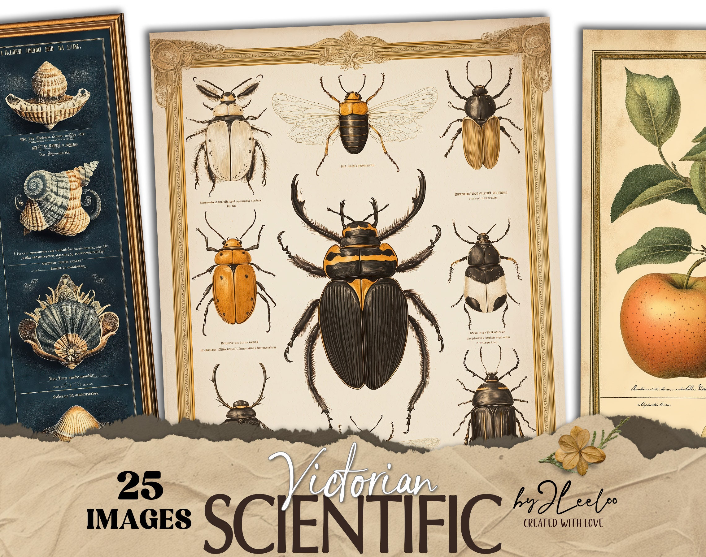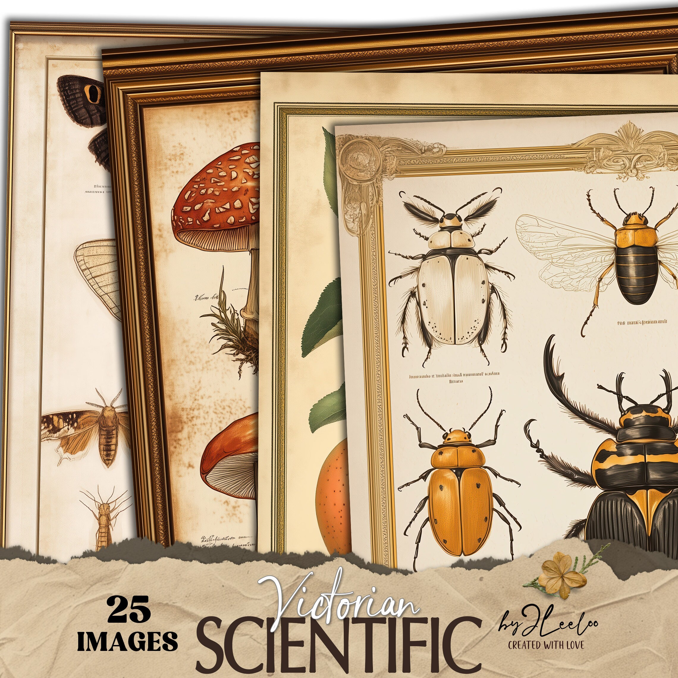 VICTORIAN SCIENTIFIC vintage naturalistic journal pages | entomology botanical digital collage poster texture background CU | pp828