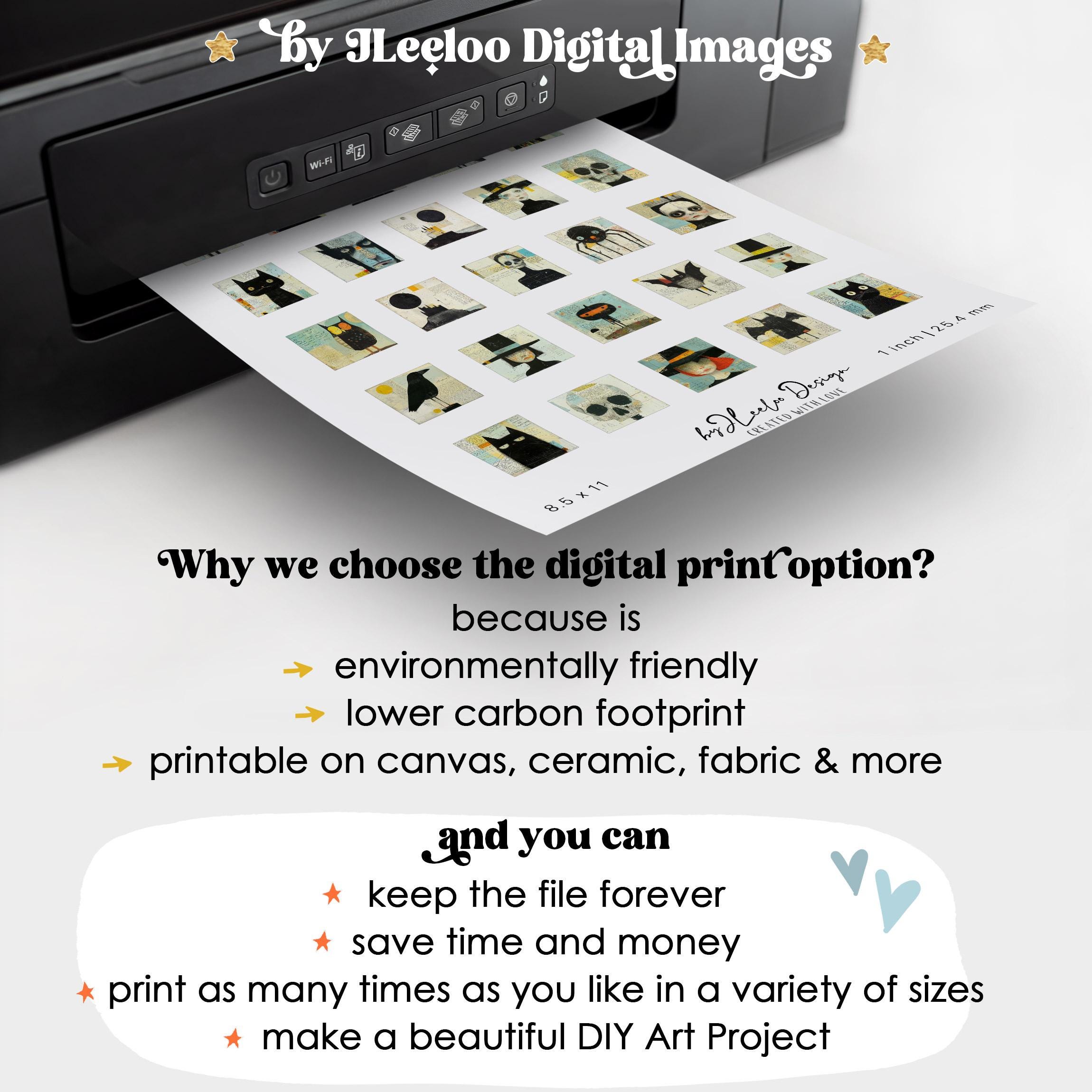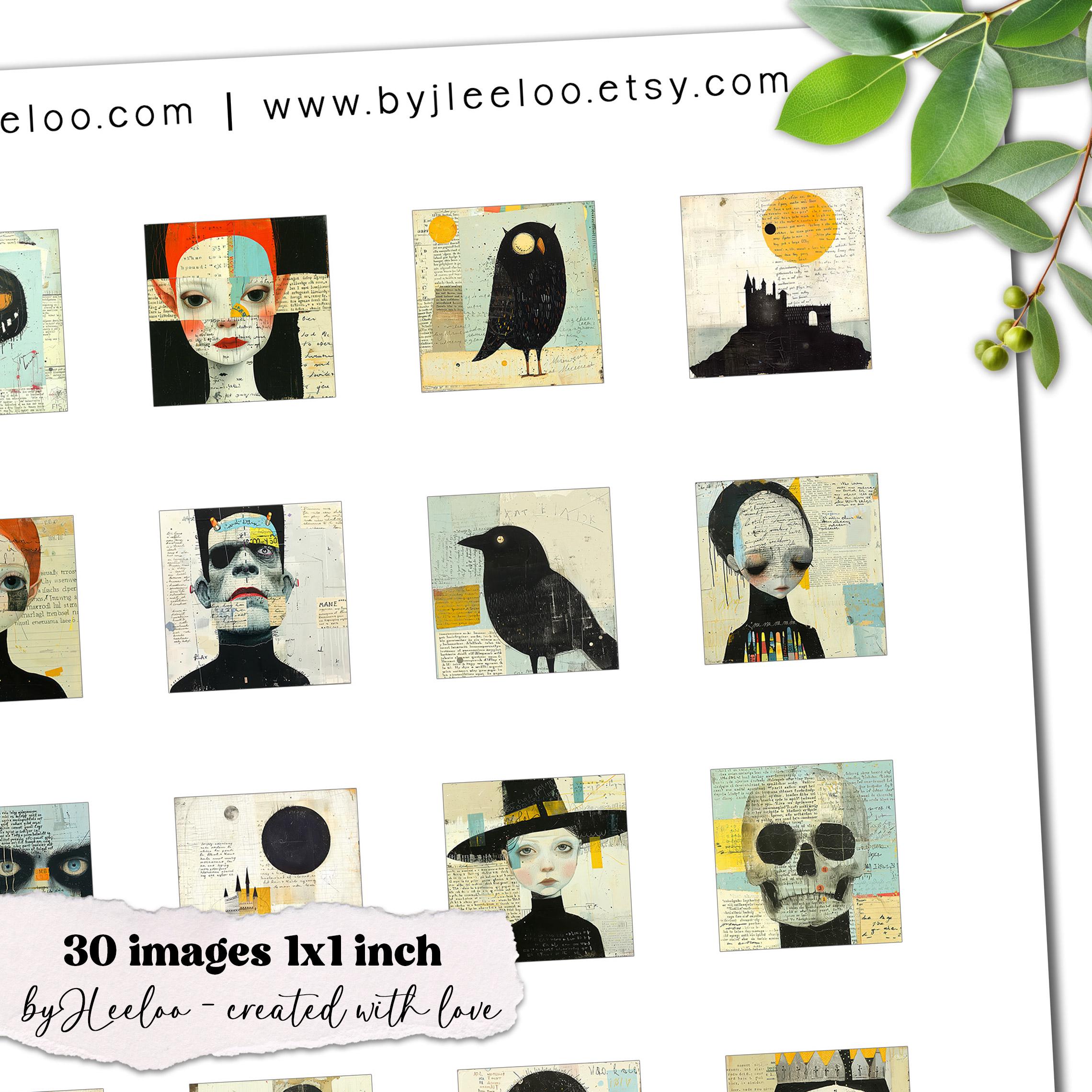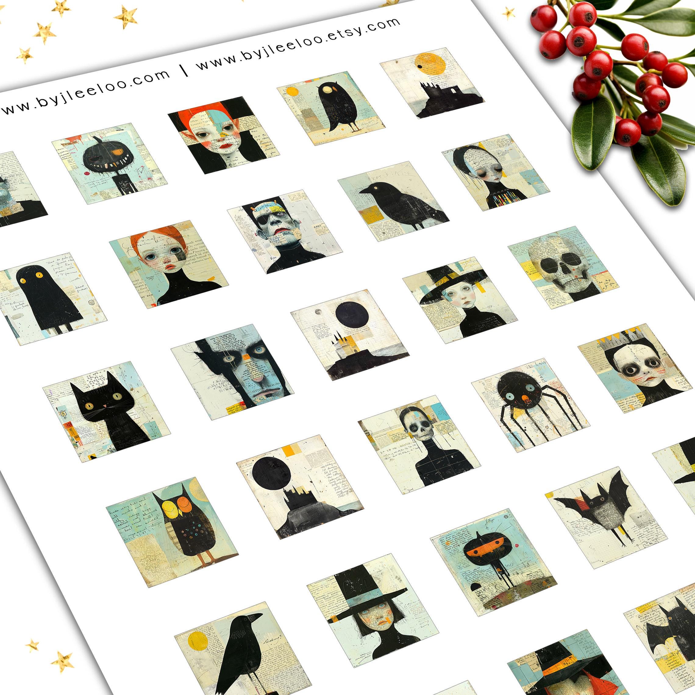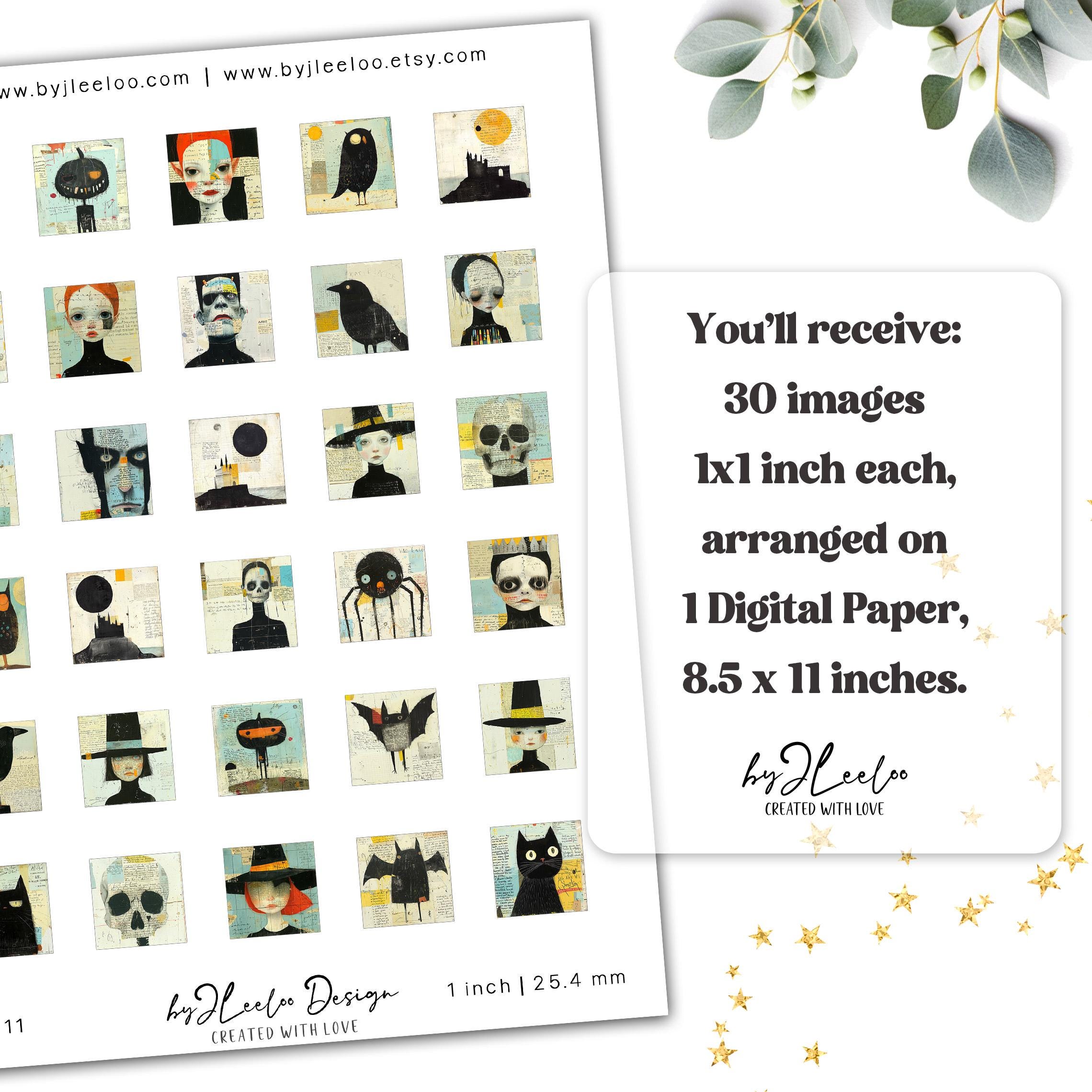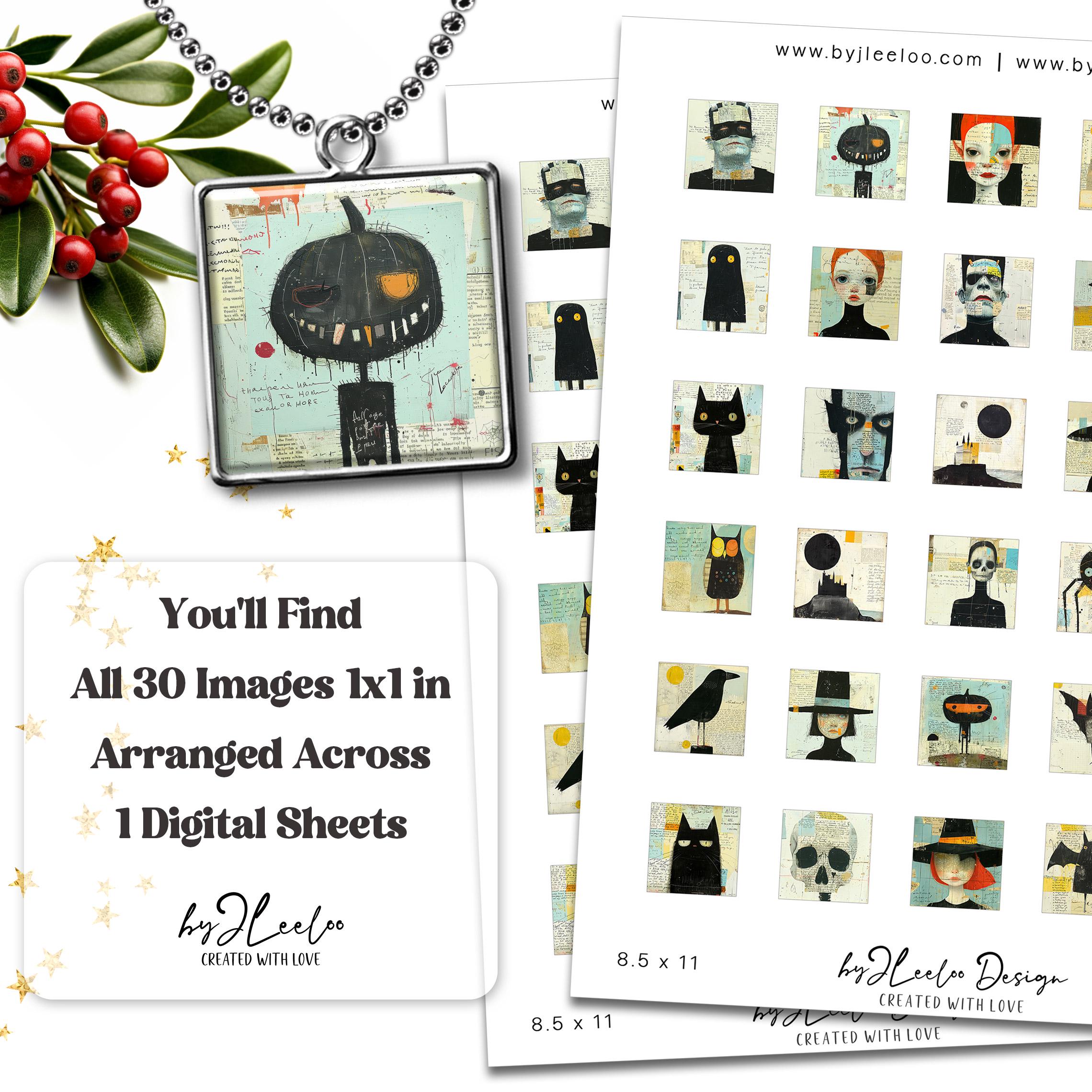 QUIRKY HALLOWEEN 1x1 inch printable | Whimsy illustration digital jewelry square pendants glass cabochon scrapbook | Commercial Use | qu613