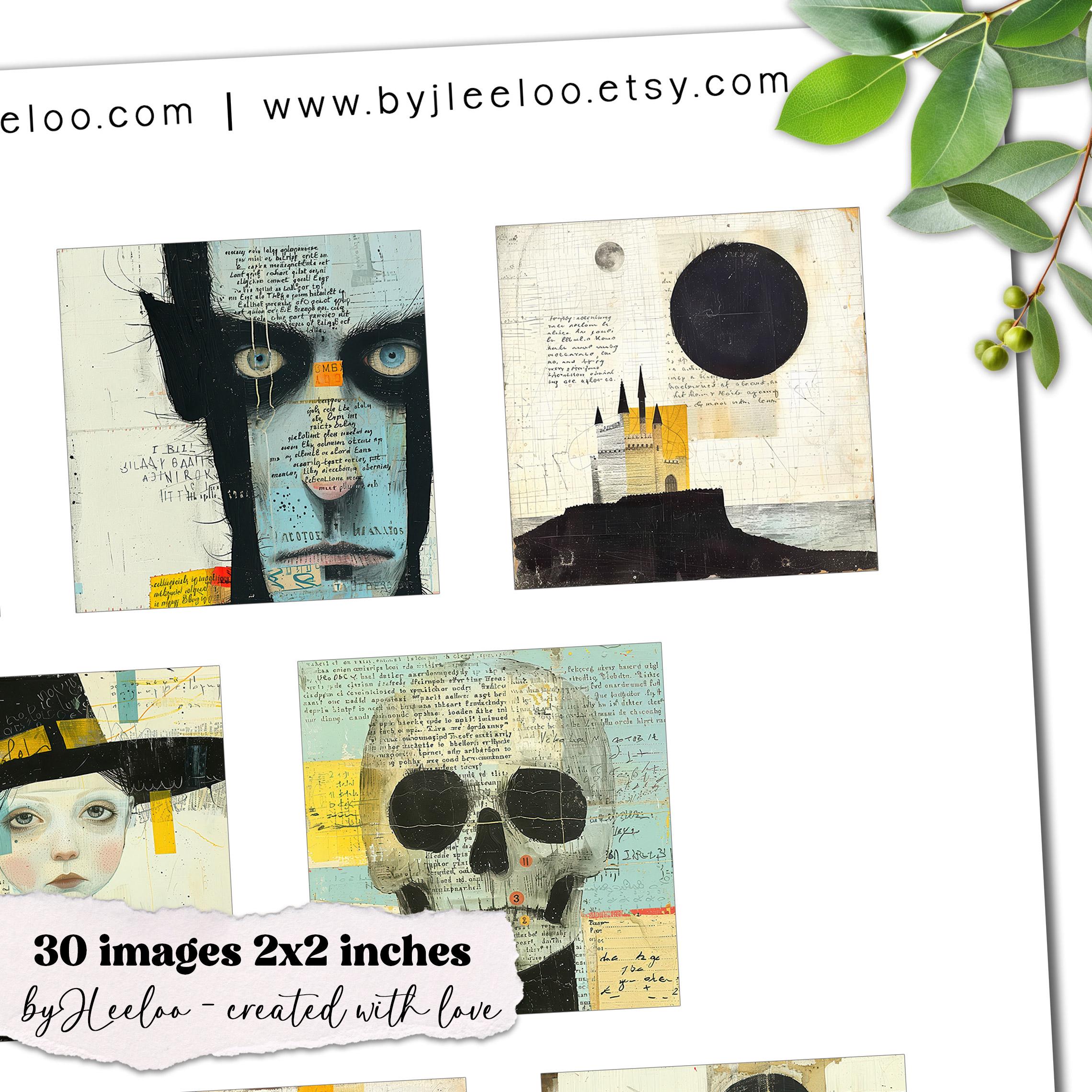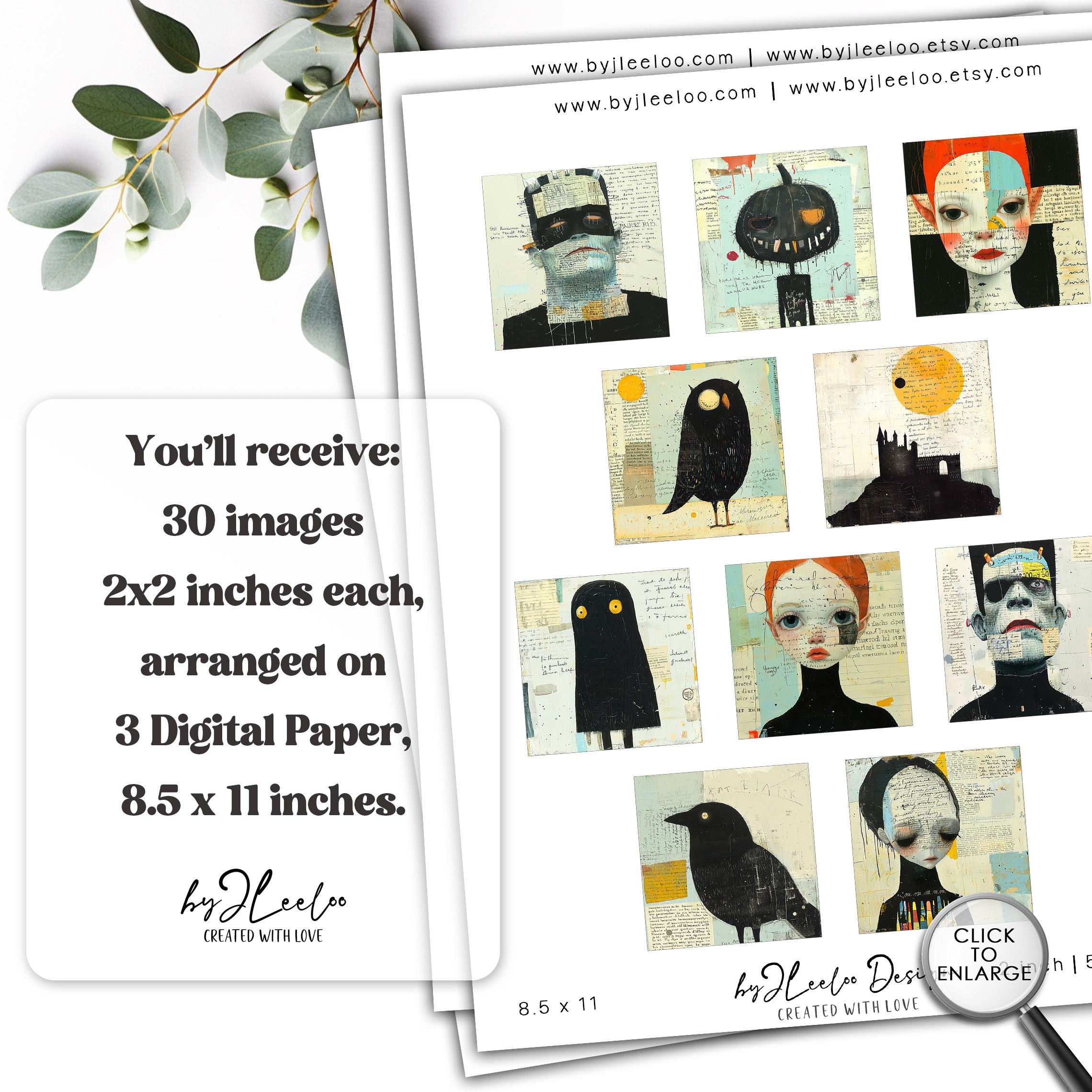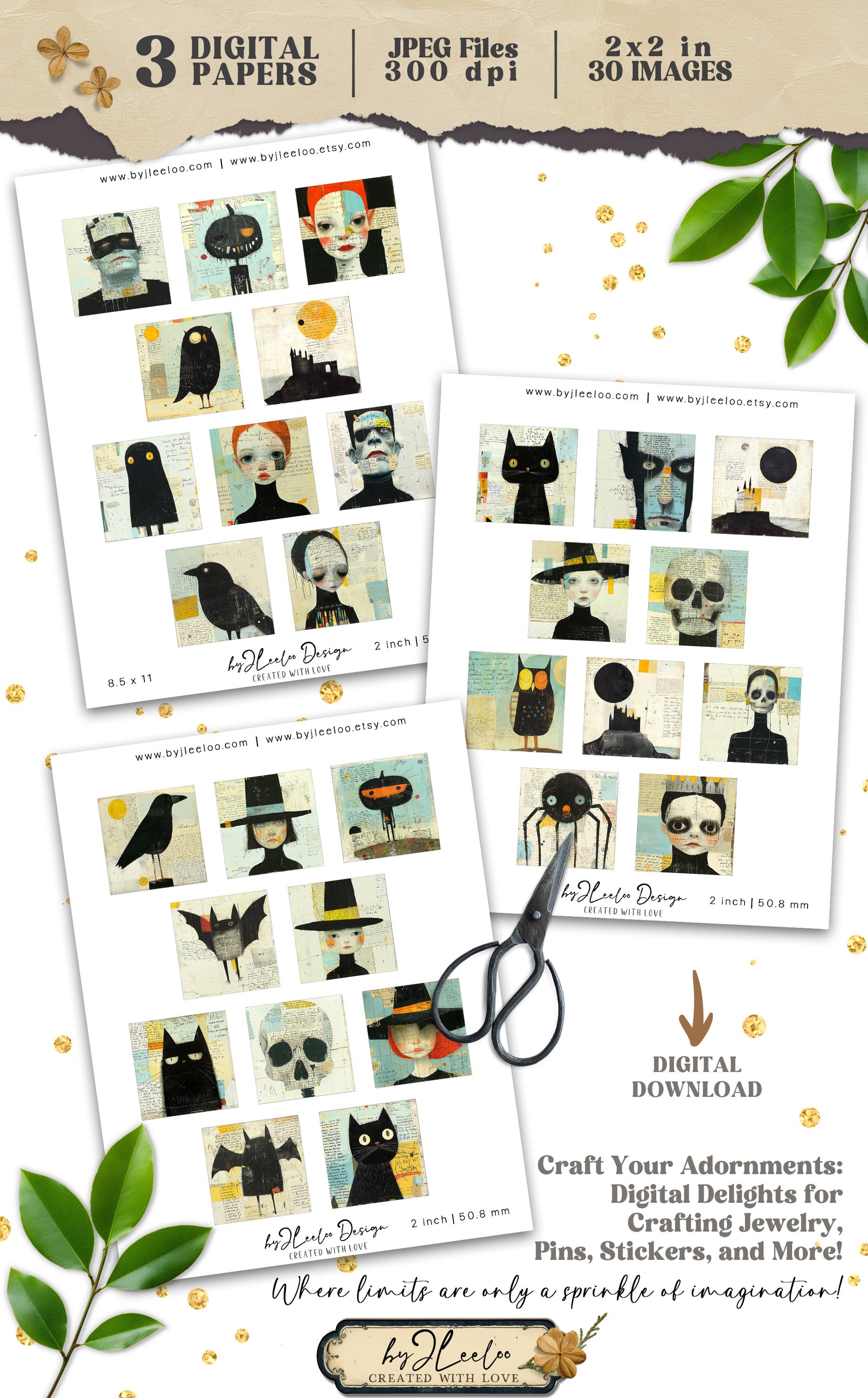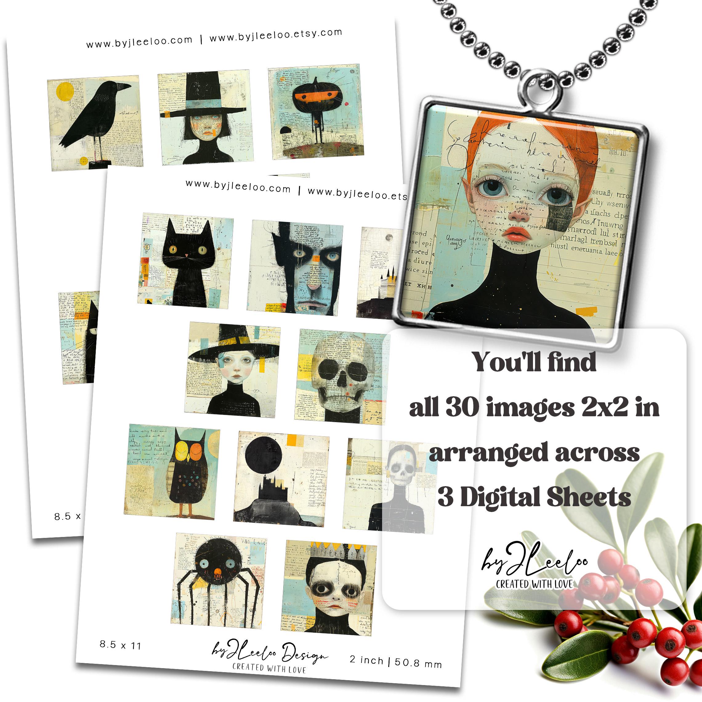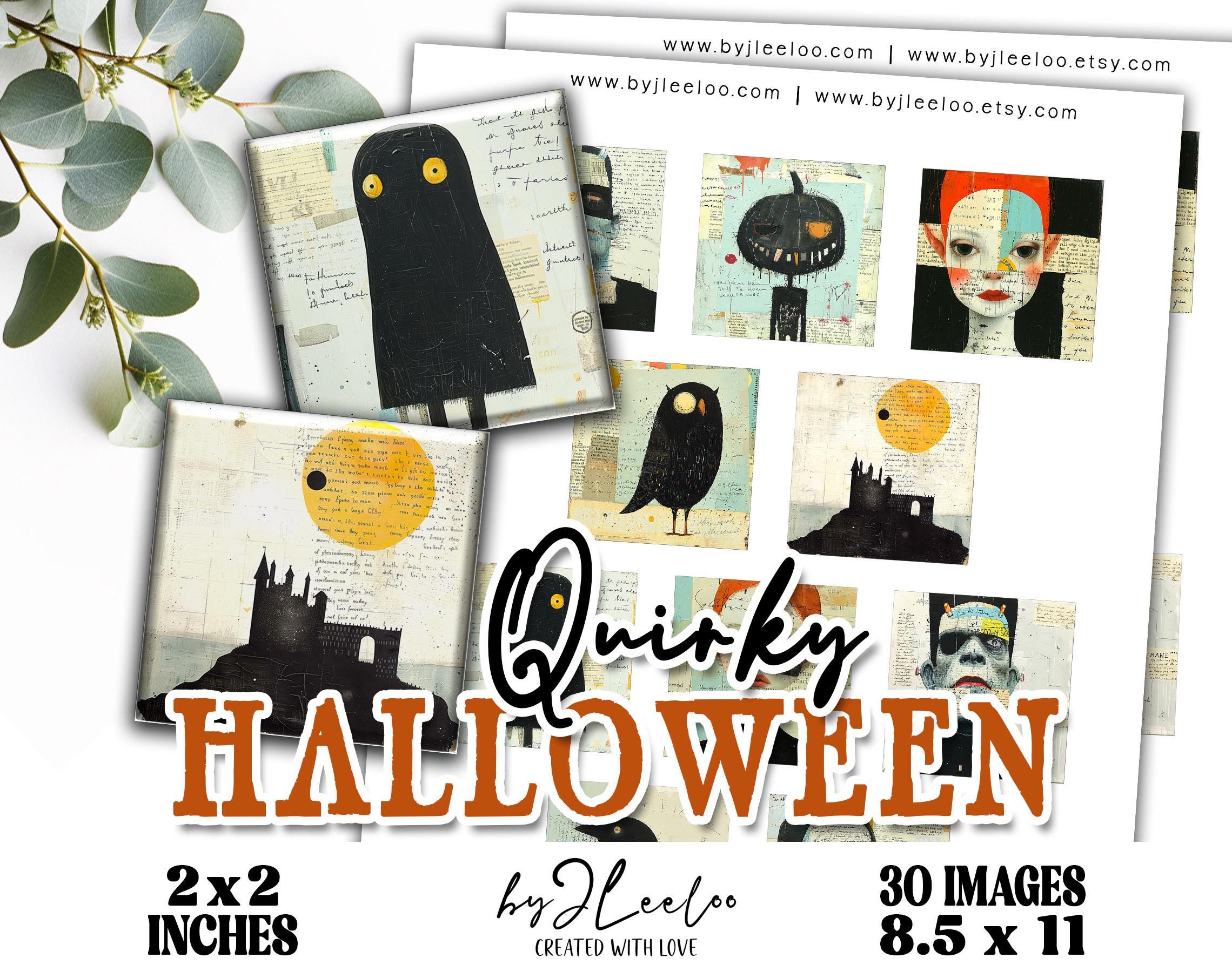 QUIRKY HALLOWEEN 2x2 inch printable | digital supplies square pendants, bezel trays, glass cabochon mountings, cameo settings CU | qu615