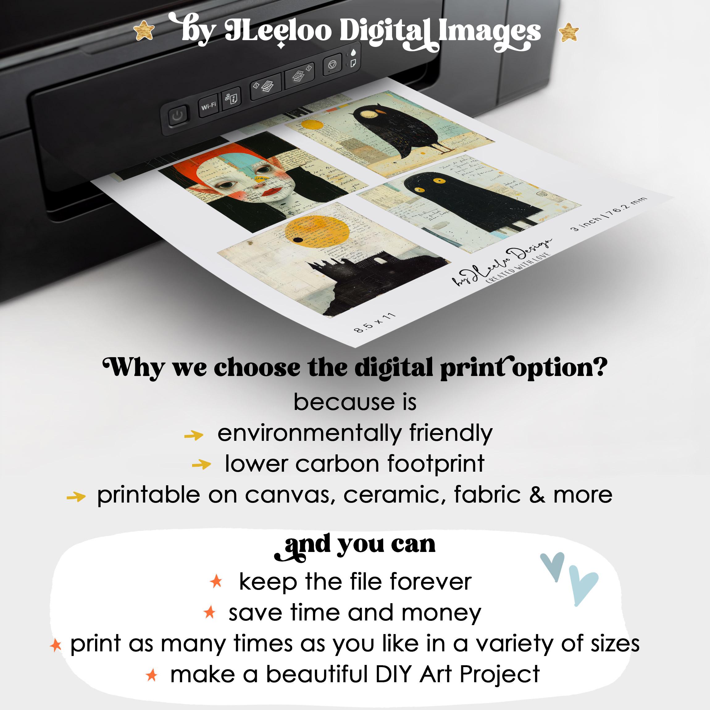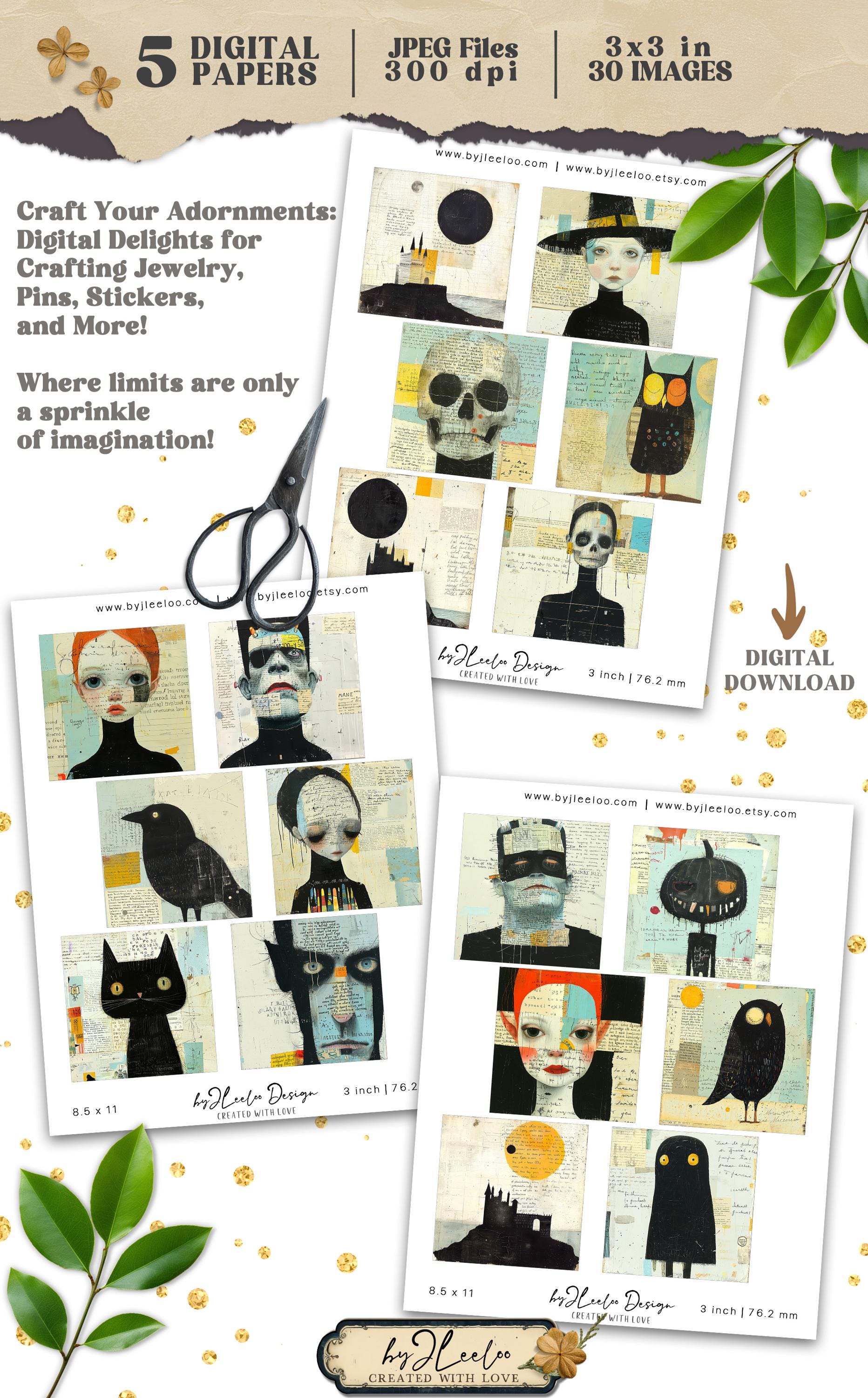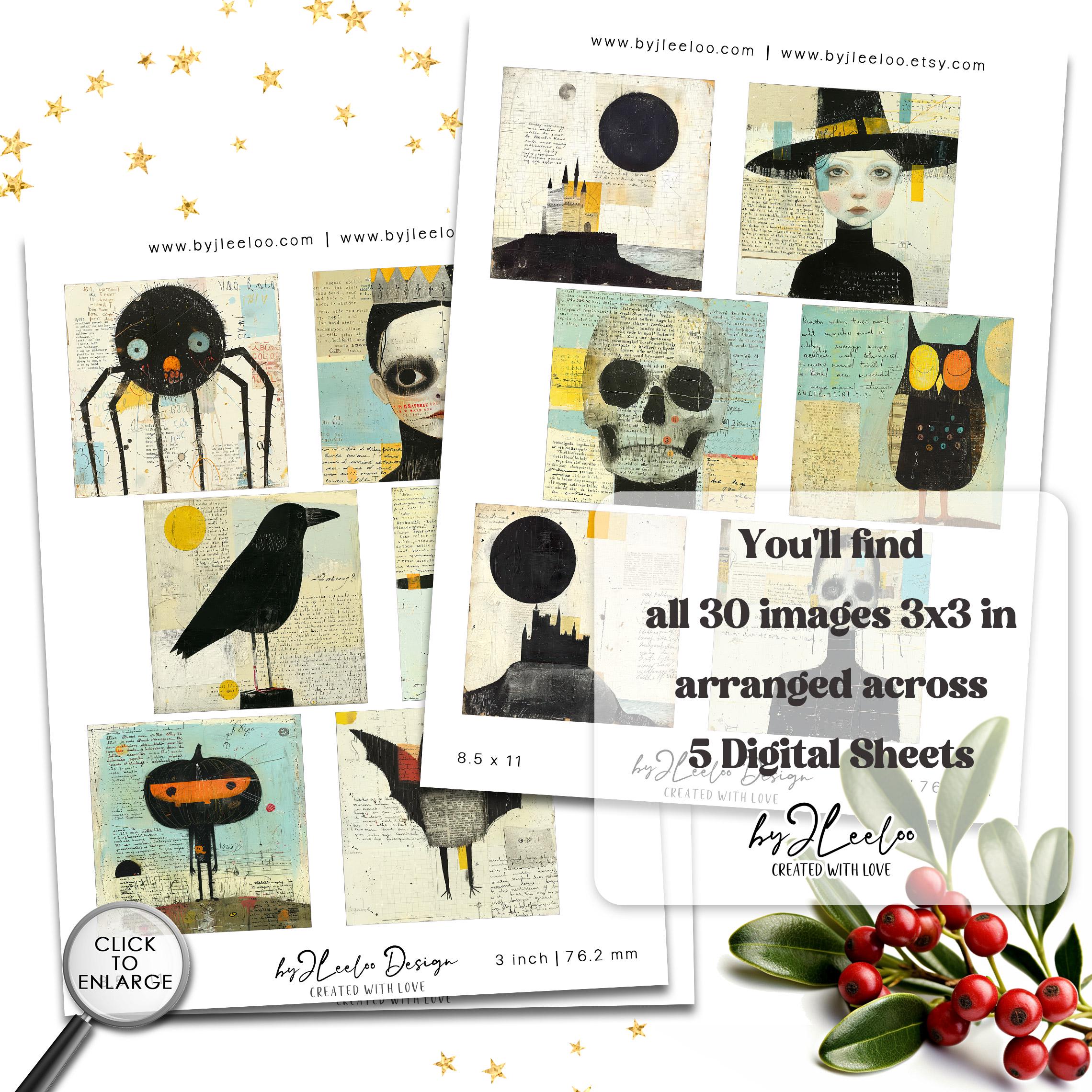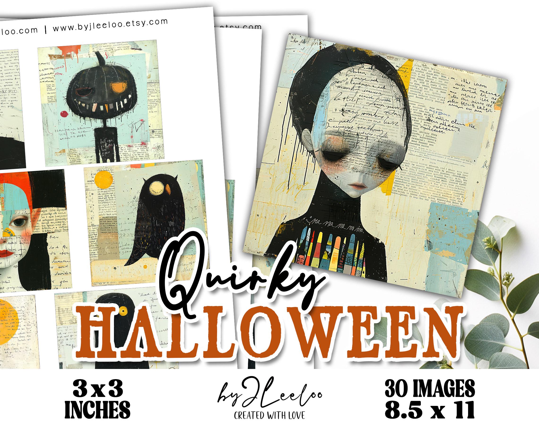 QUIRKY HALLOWEEN 3x3 inch printable | Supplies whimsy square charm, mirror, magnet, labels, altered art, craft card, sticker | CU | qu617