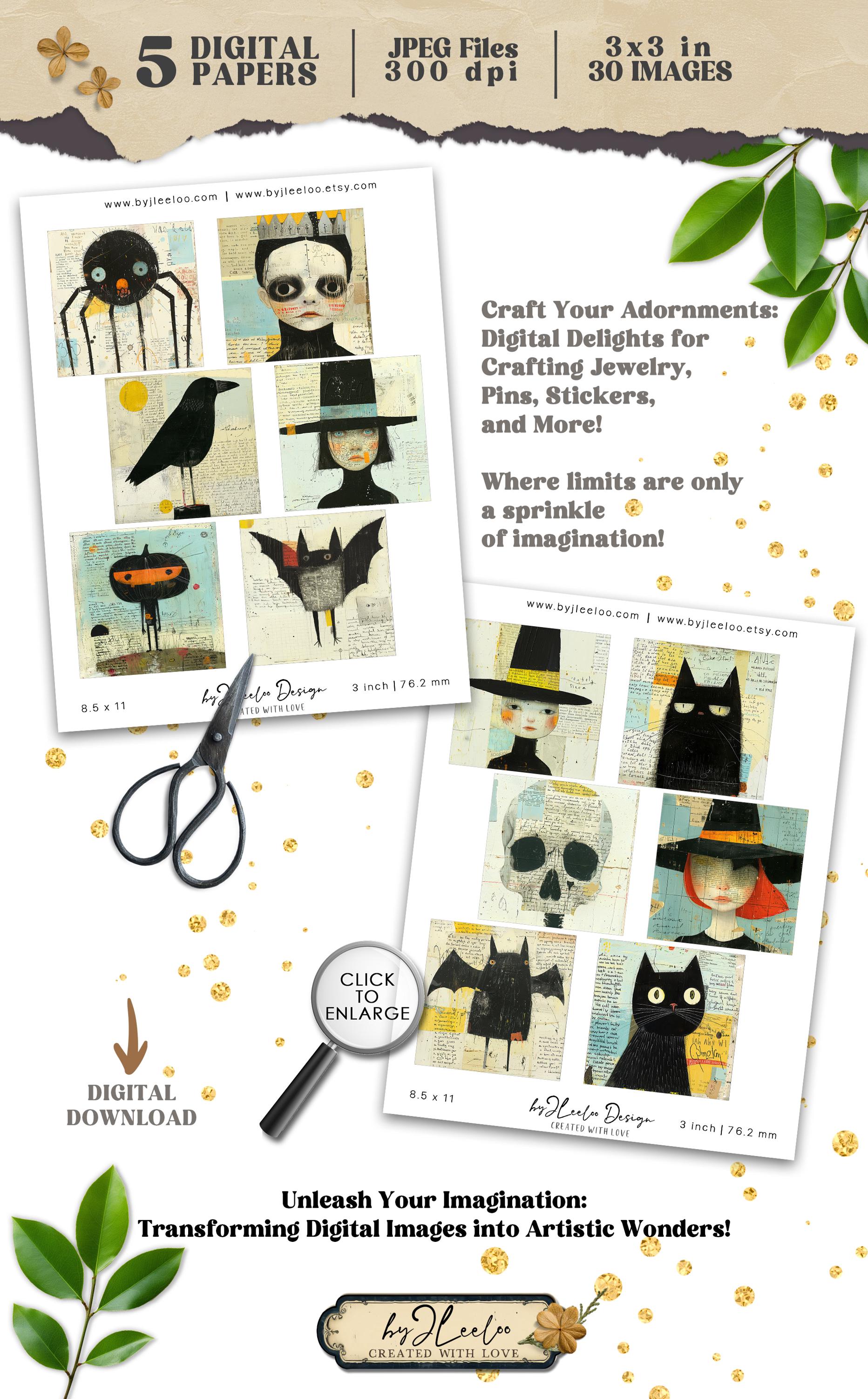 ◾ 30 delightful and spooktacular square illustrations featuring perfect for your creations!