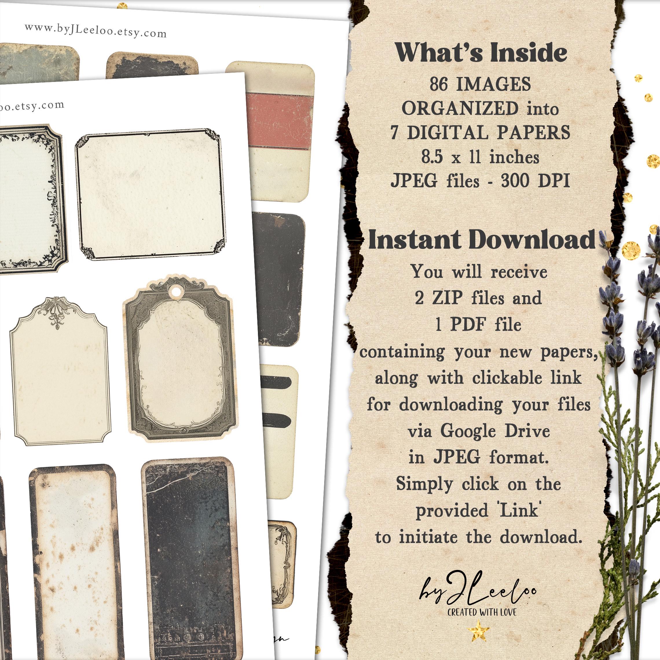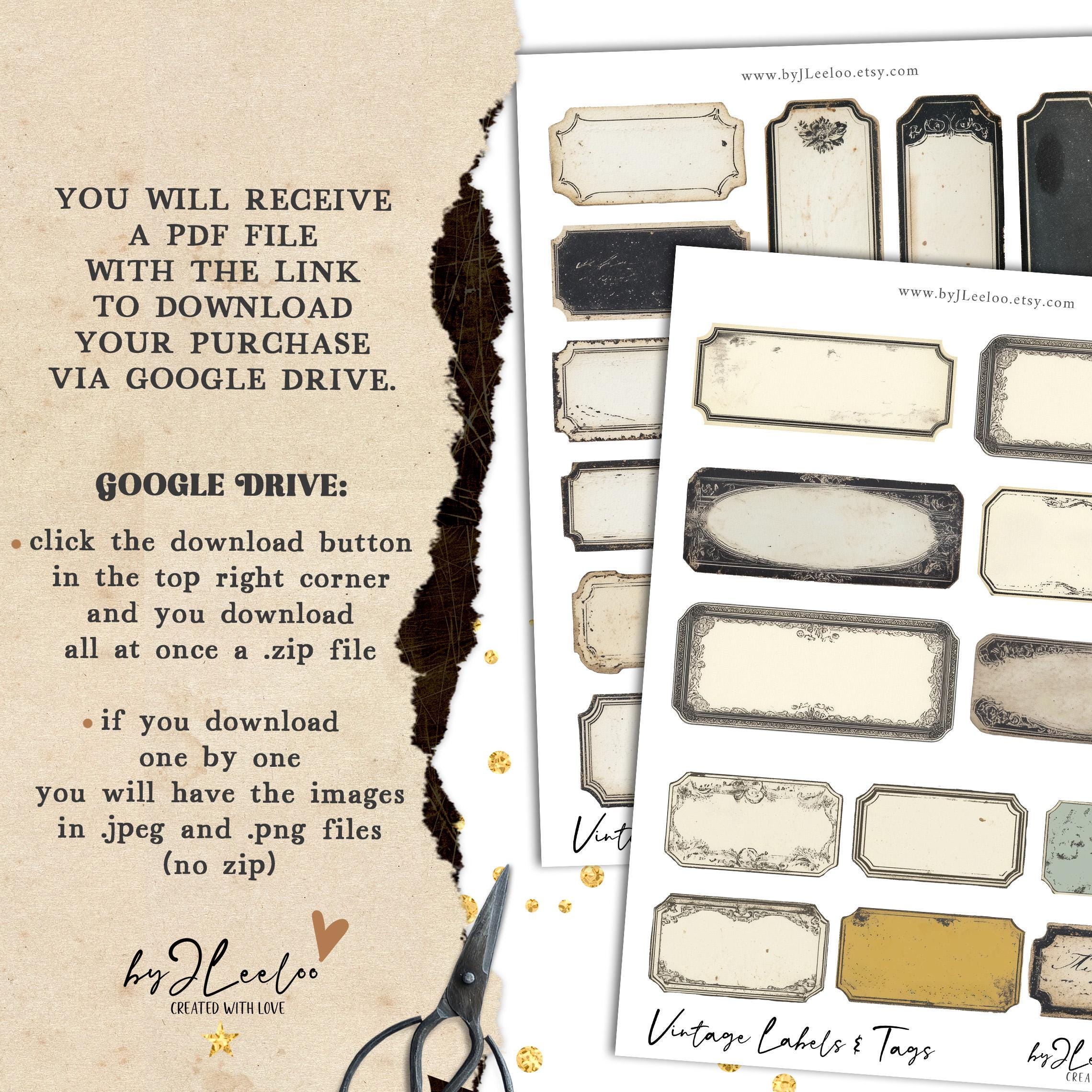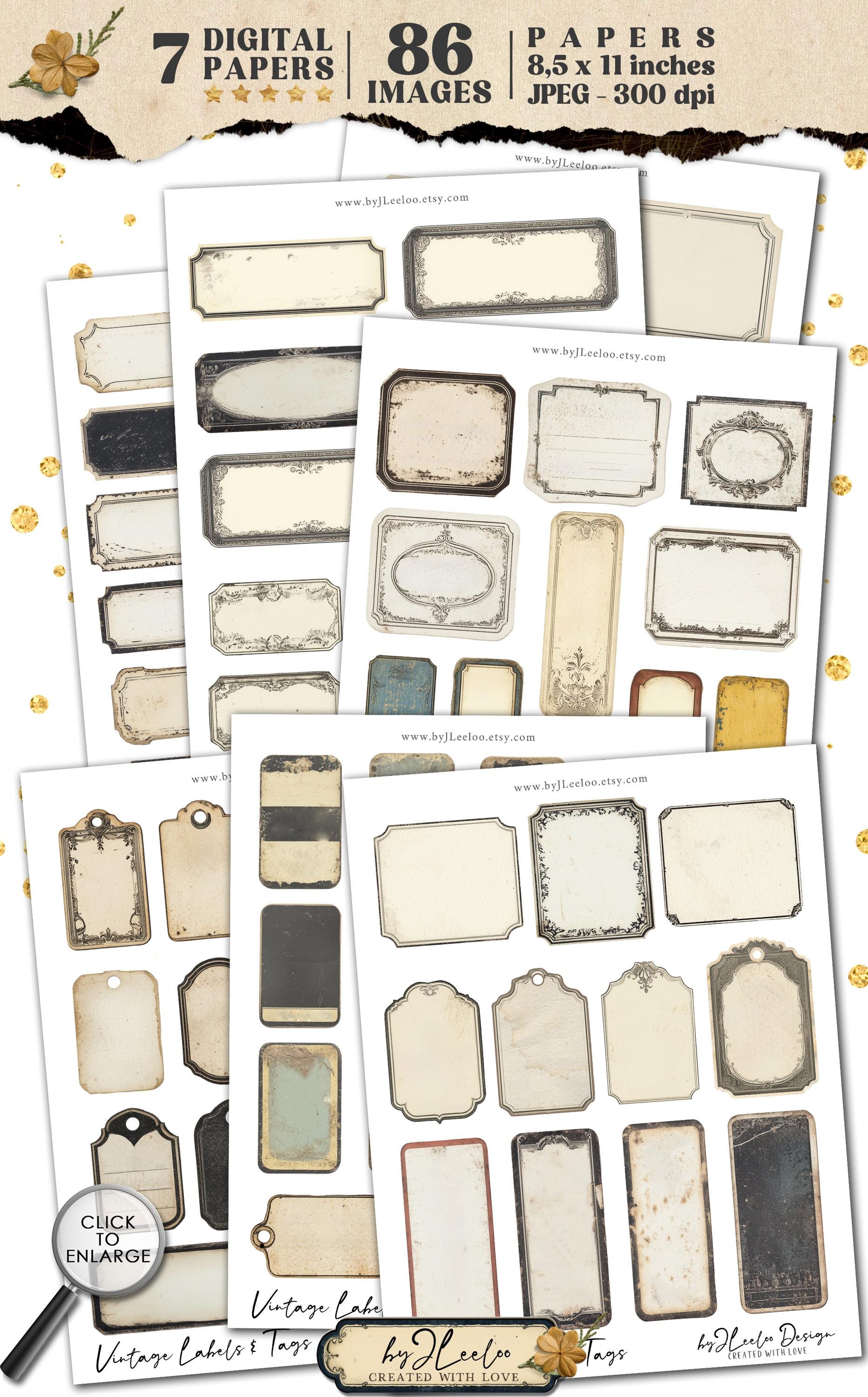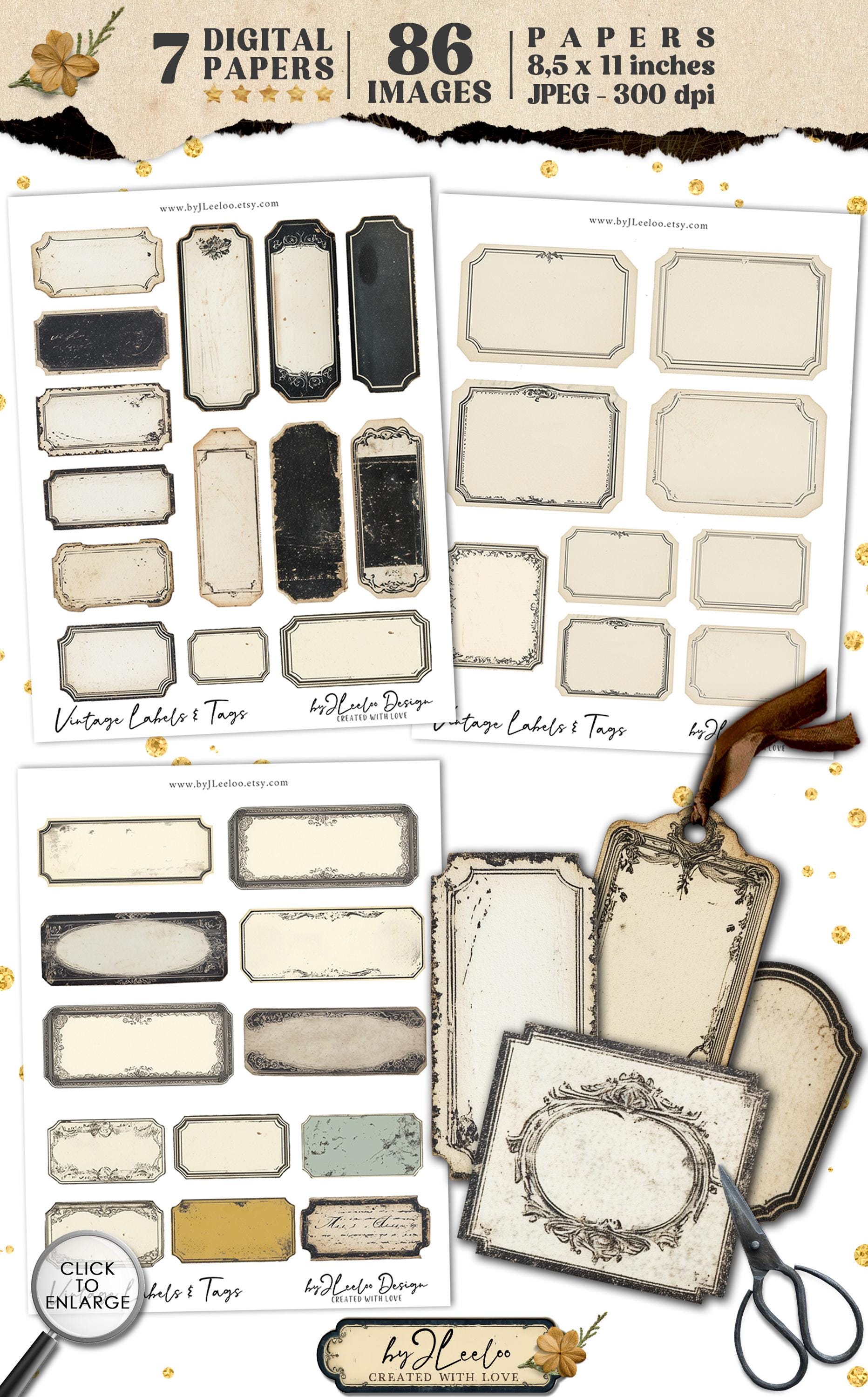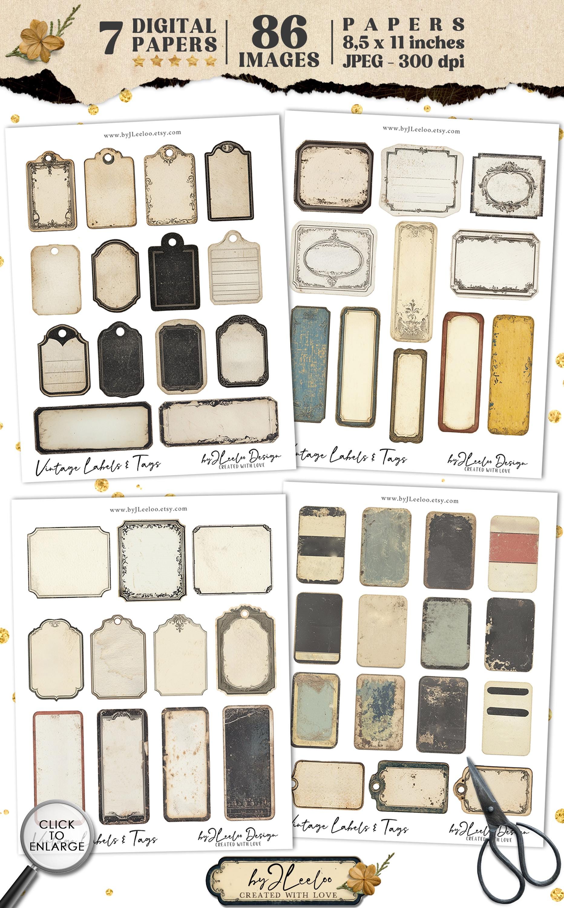 VINTAGE LABELS and TAGS printable old grungy writable steampunk | ephemera junk journal | images digital collage commercial use | tl297