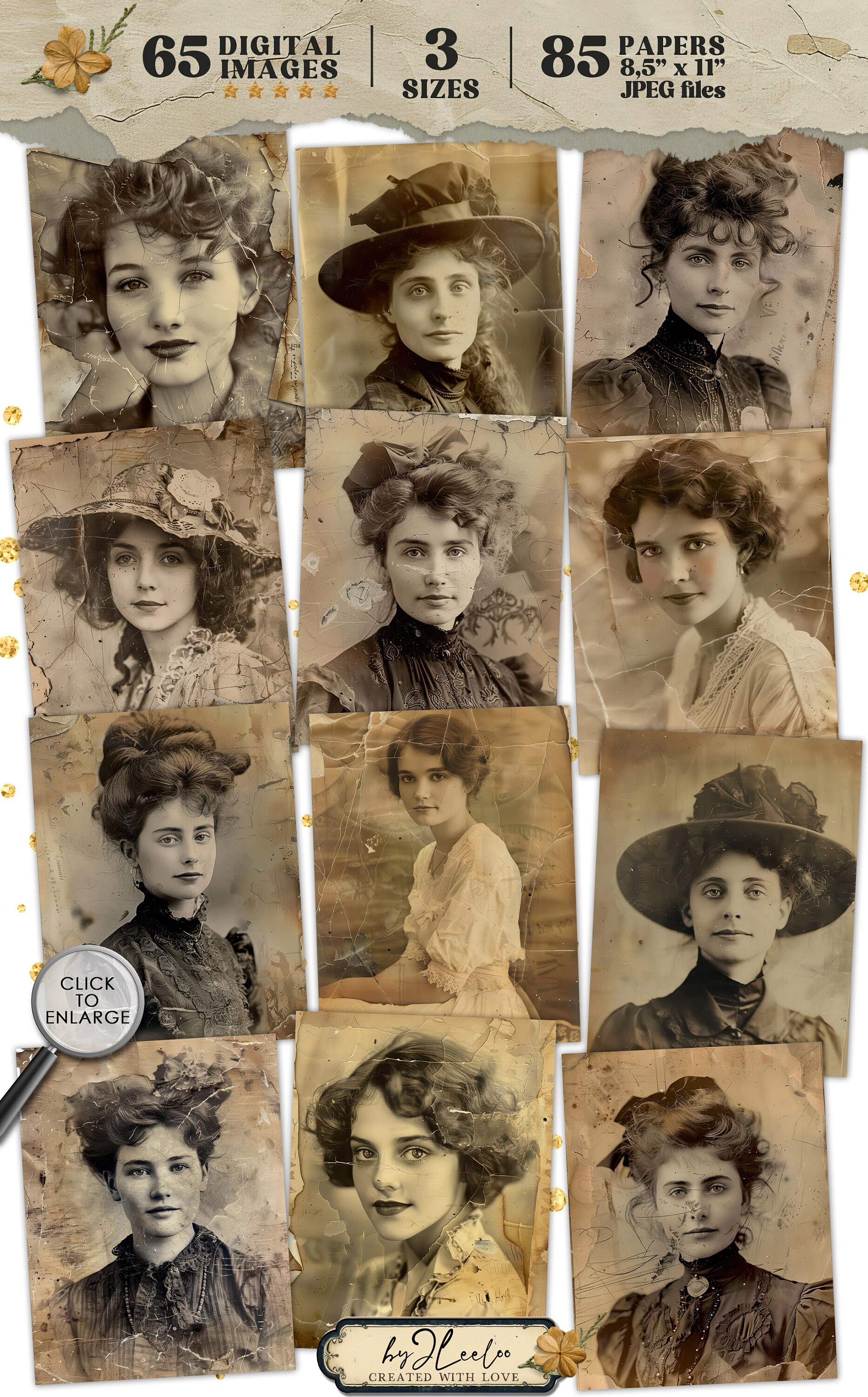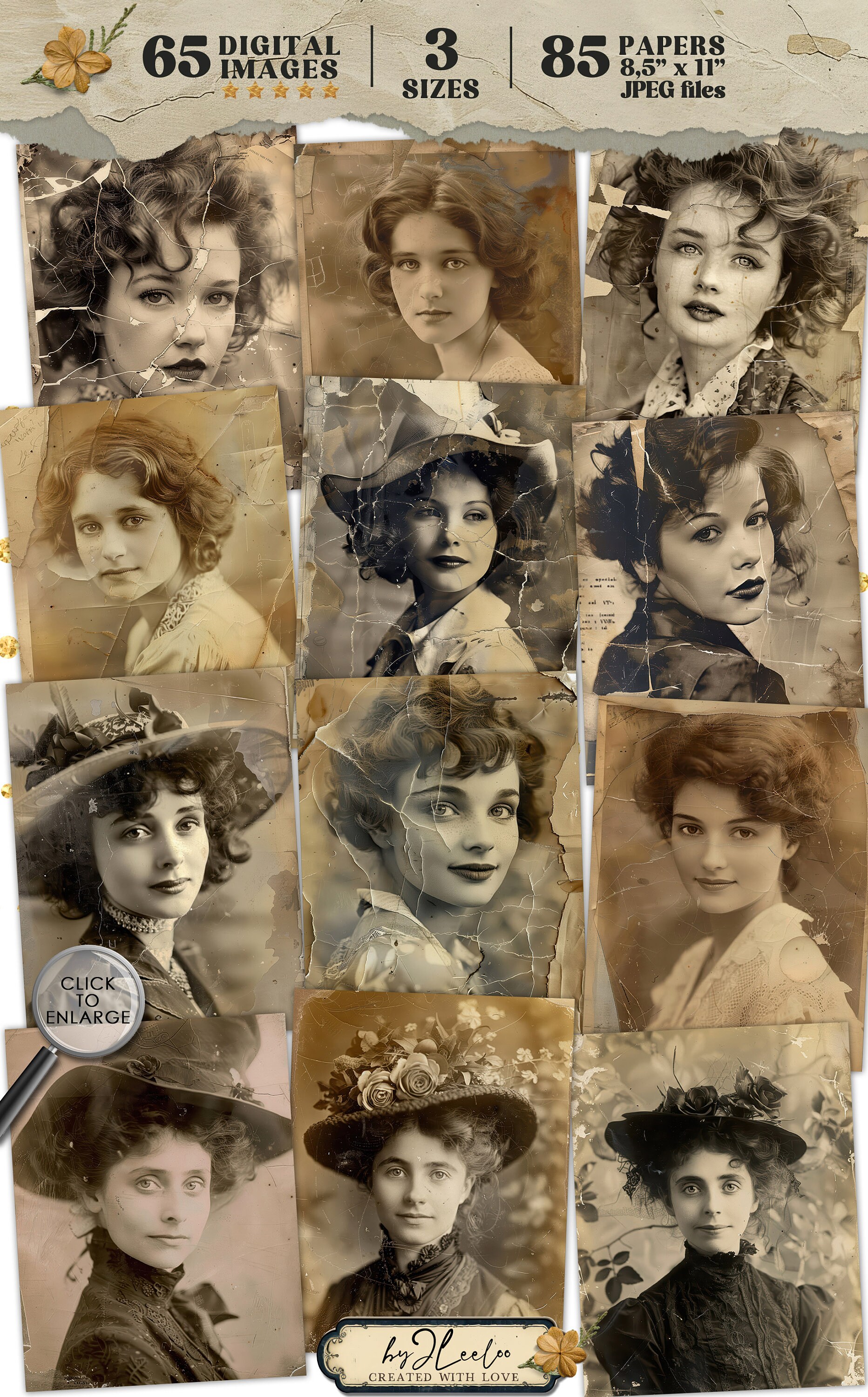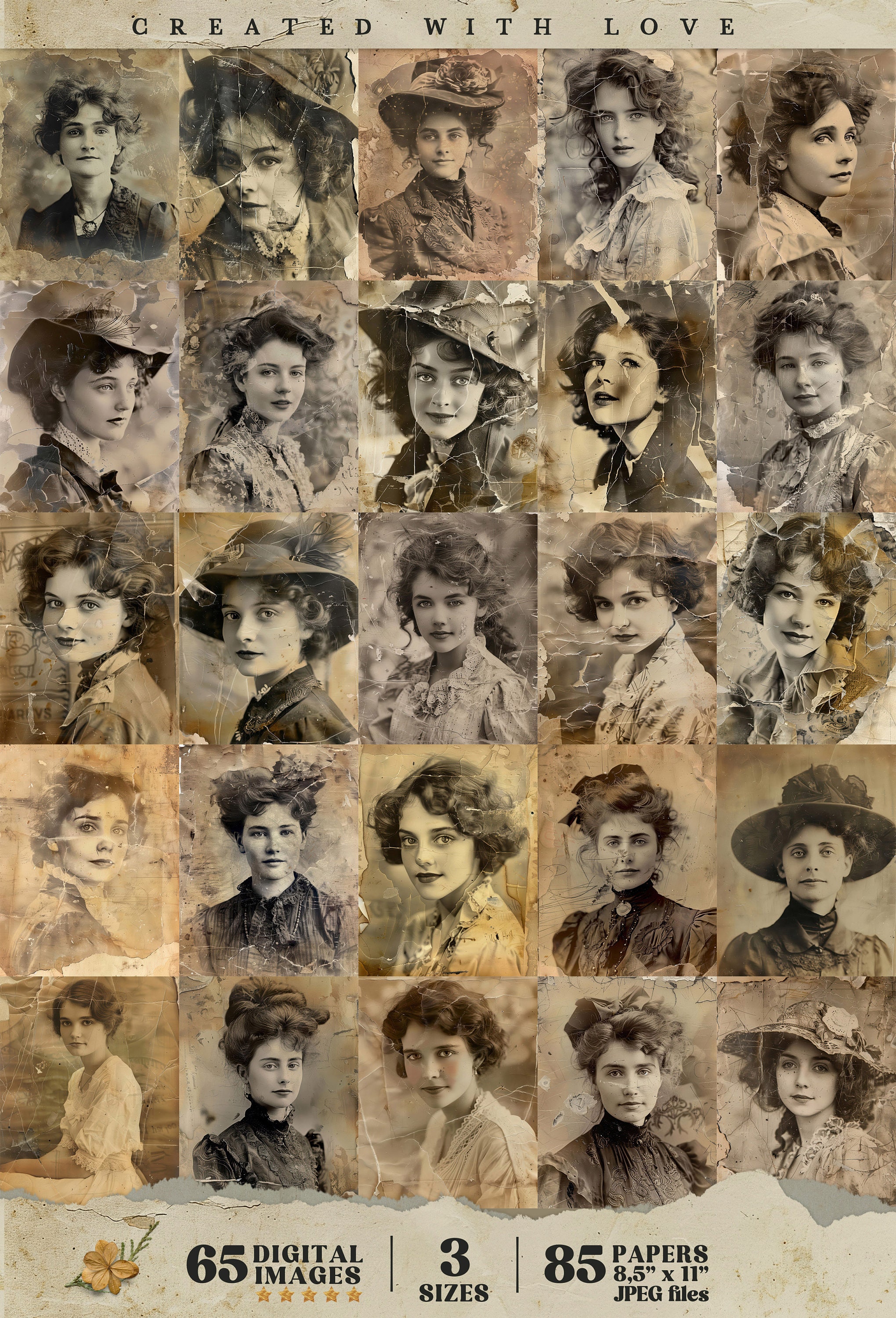 ► 65 amazing vintage photographs made in 3 sizes to suit any of your creative art: