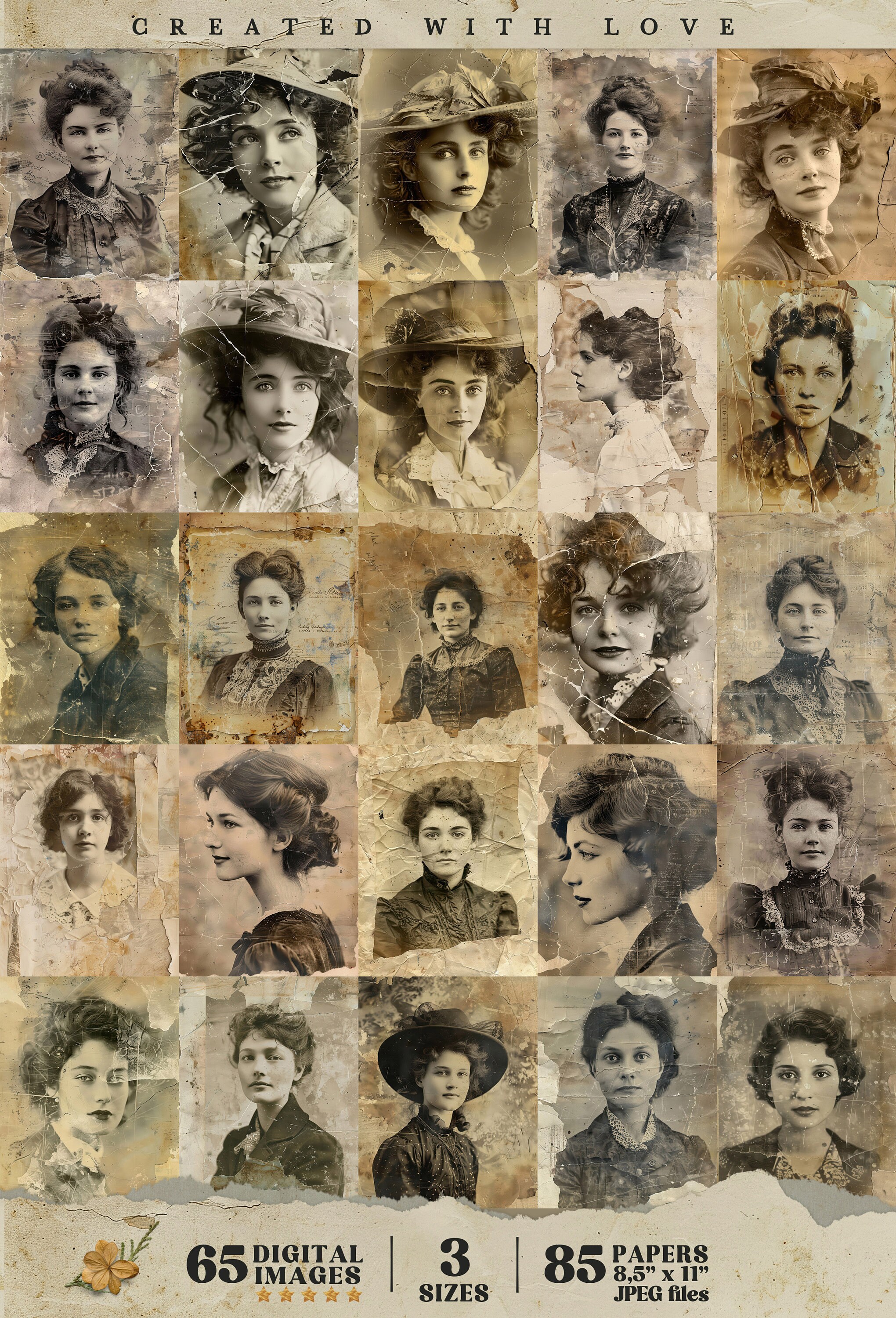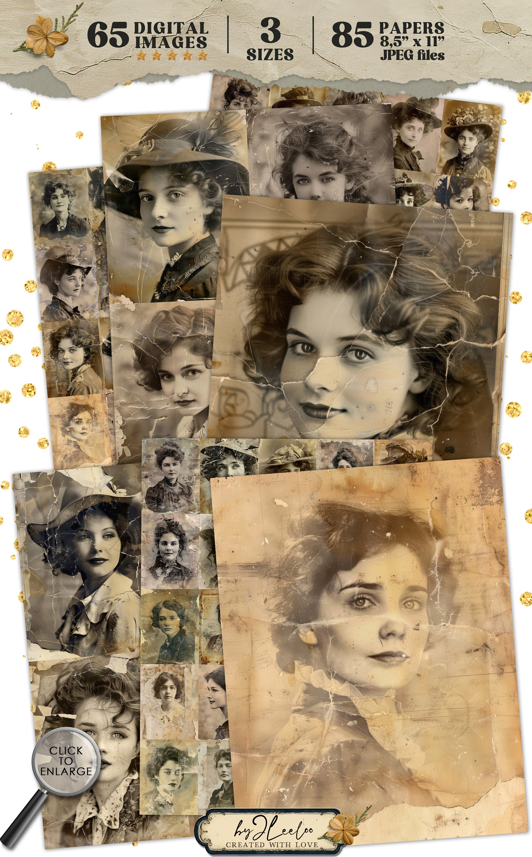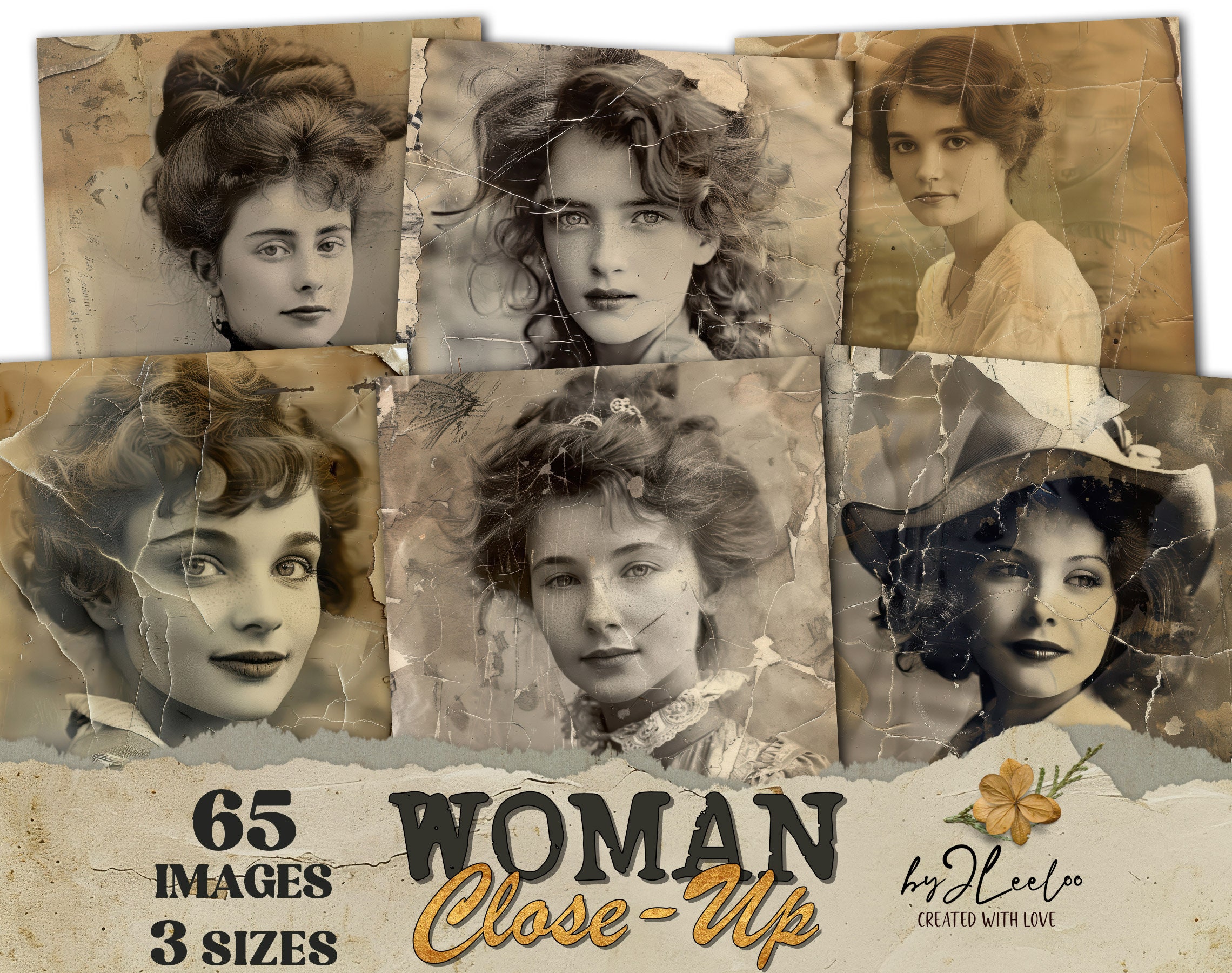 WOMAN CLOSE-UP 65 large images 3 sizes | Vintage printable ephemera distressed Fashion collage junk journal | Photo Commercial Use | cp032