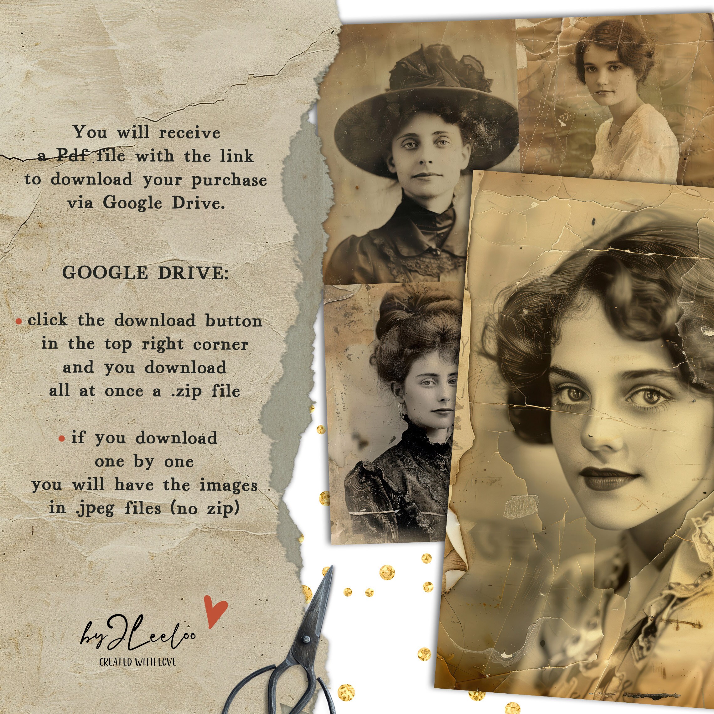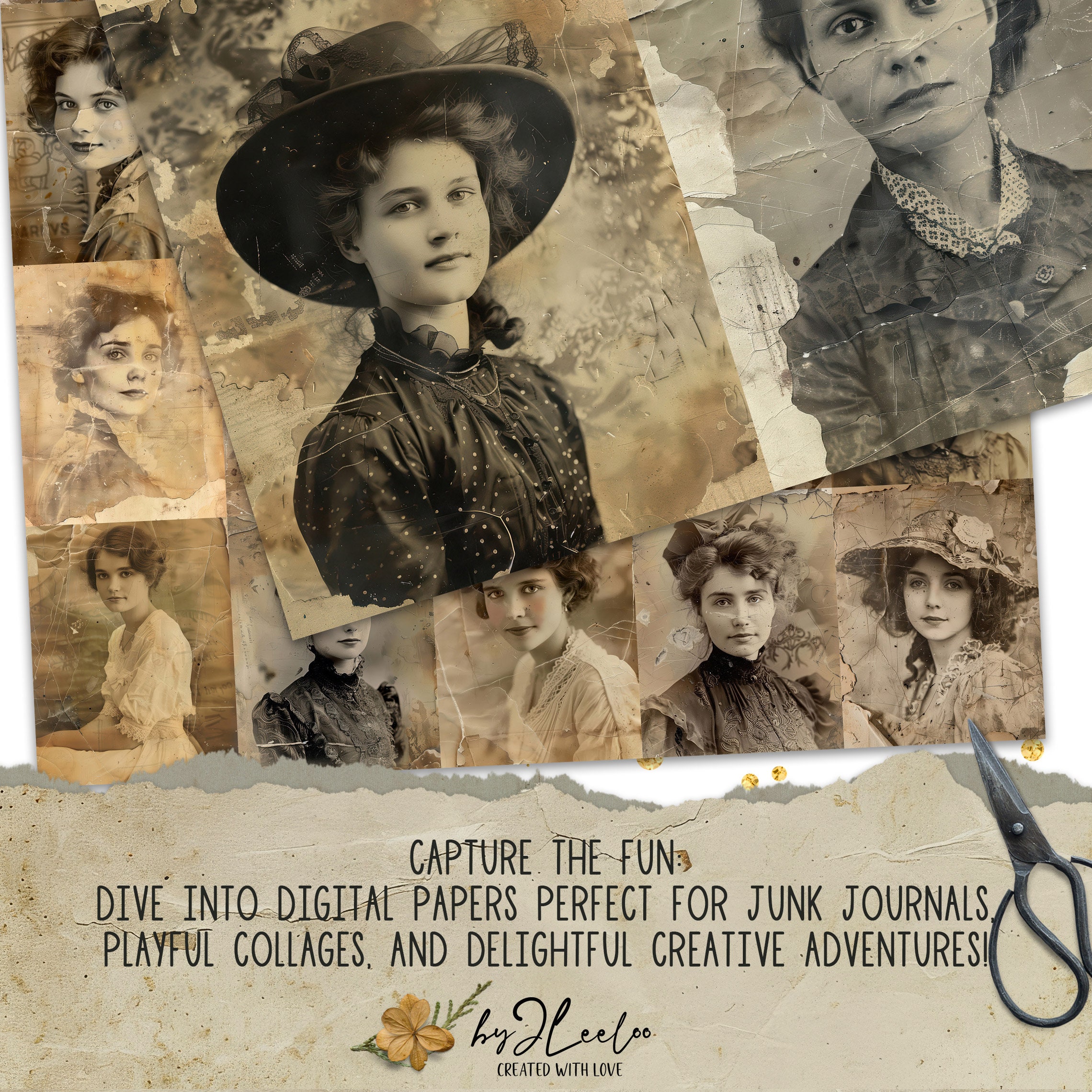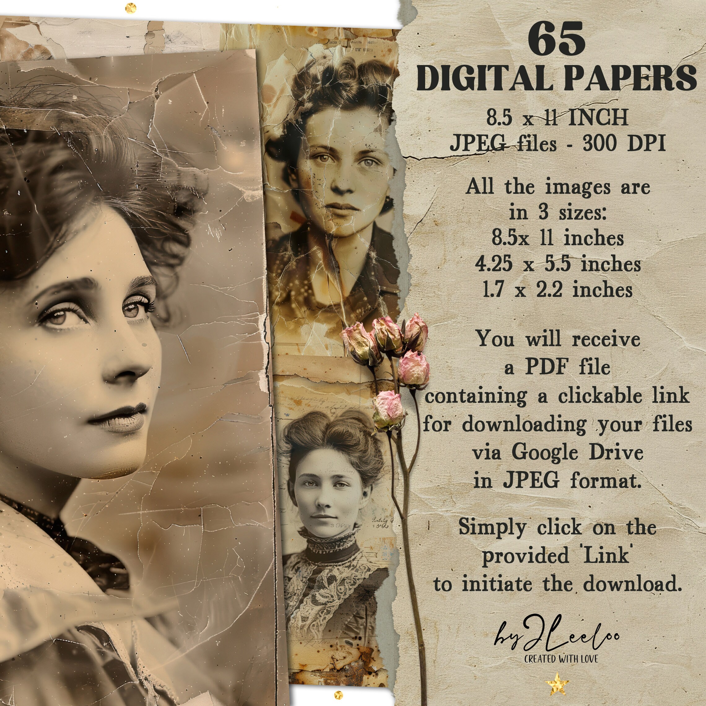 WOMAN CLOSE-UP 65 large images 3 sizes | Vintage printable ephemera distressed Fashion collage junk journal | Photo Commercial Use | cp032