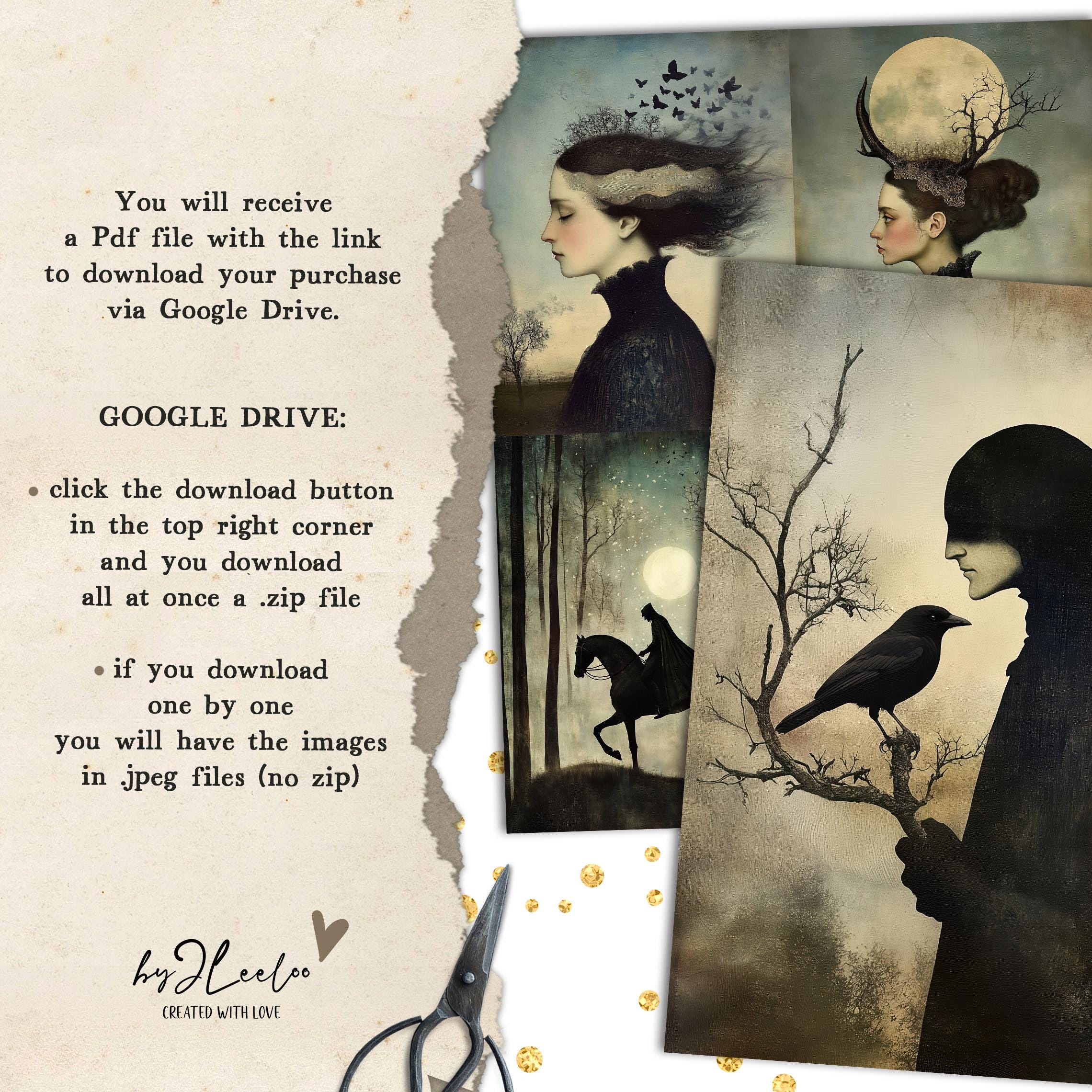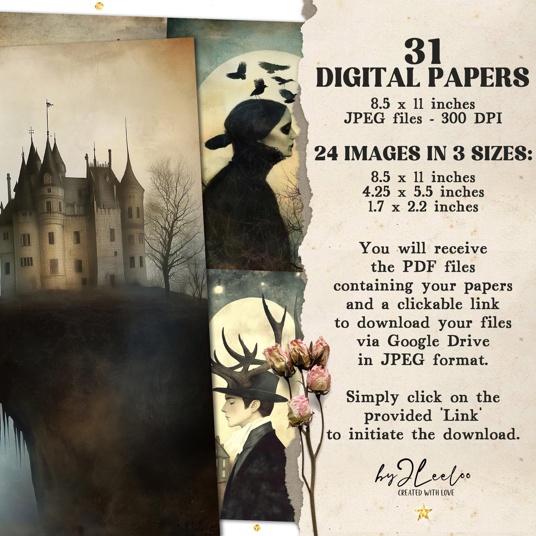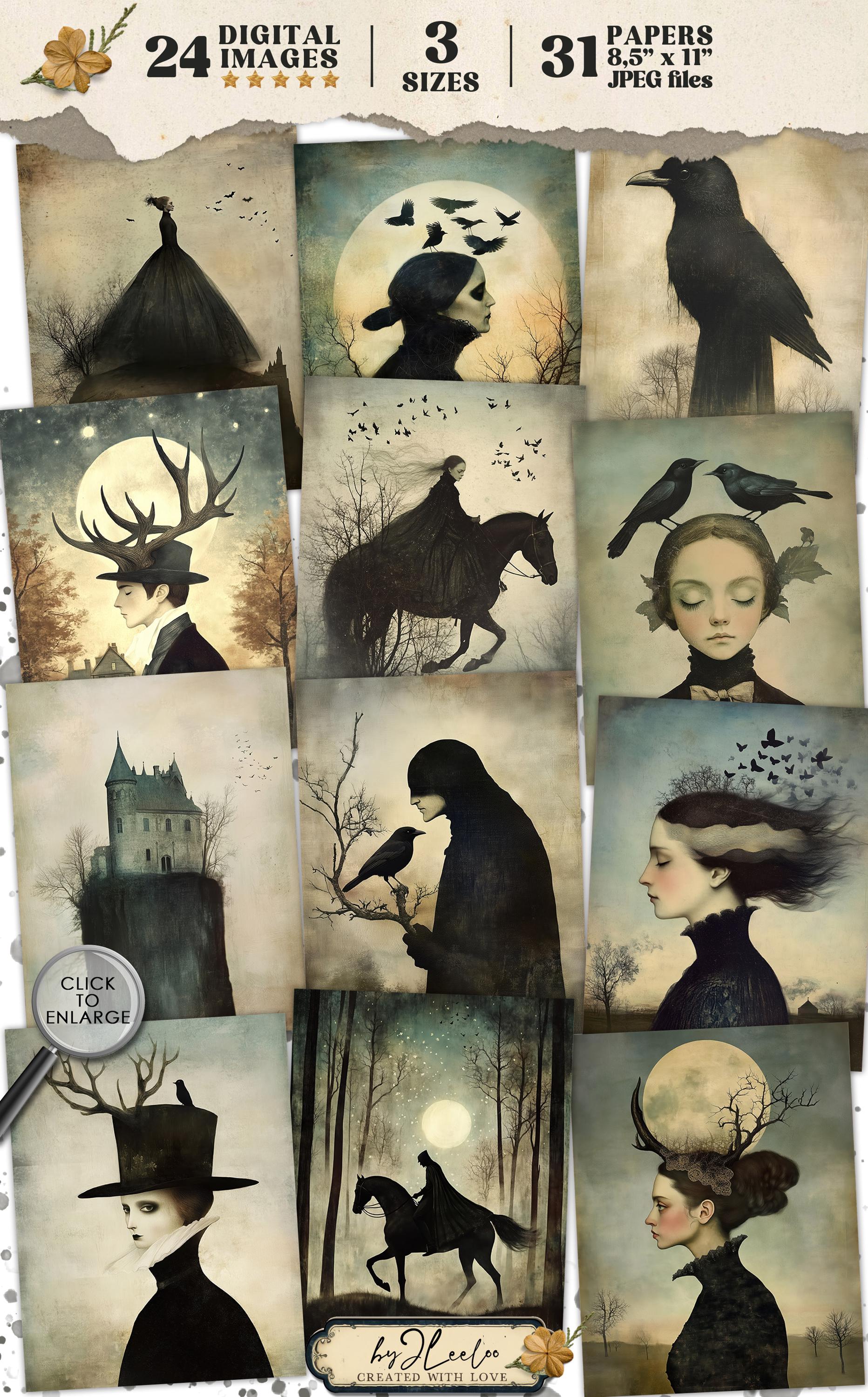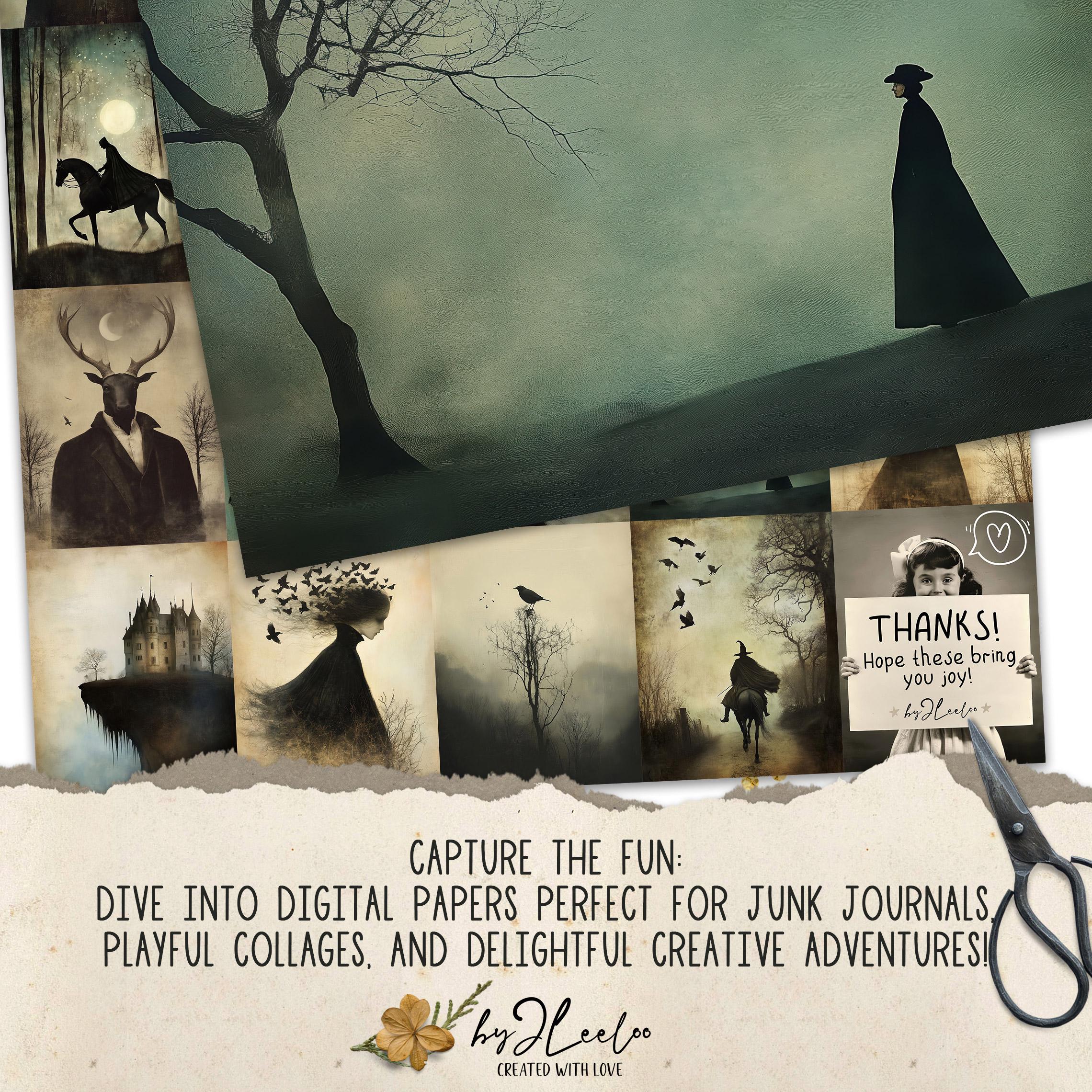 ๐ Enter the enchanting world of Sleepy Hollow with these captivating illustrations. Available in three sizes, these digital prints are perfect for adding a touch of gothic elegance to your Halloween decor or scrapbooking projects. Let the dark, obscure beauty of these Victorian-inspired artworks transform any space into a hauntingly beautiful realm. Ideal for wall art decoration or to embellish your junk journal with a touch of eerie charm. ๐ป