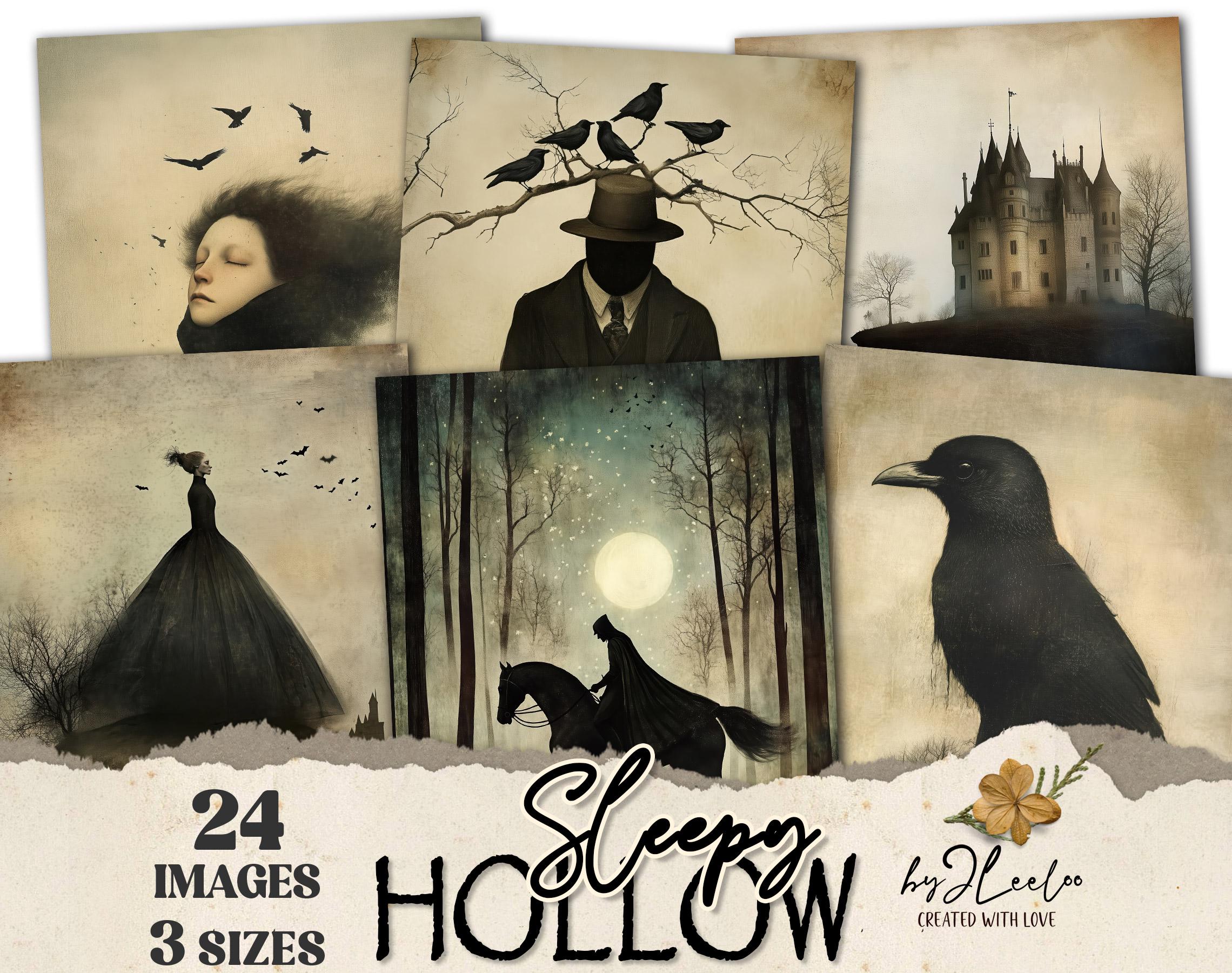 SLEEPY HOLLOW Themed 24 gothic 3 Sizes | Digital Halloween Art Print Victorian Gothic Decor Digital Junk Journal Illustration DIY cu | pp842
