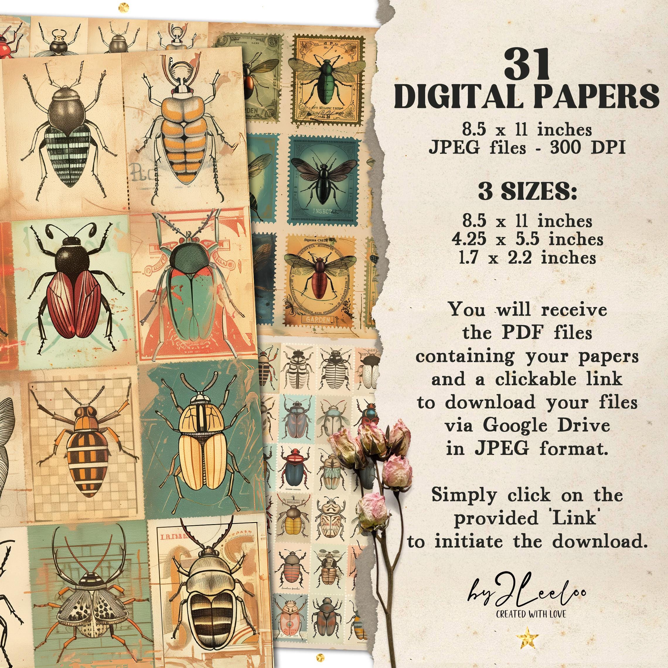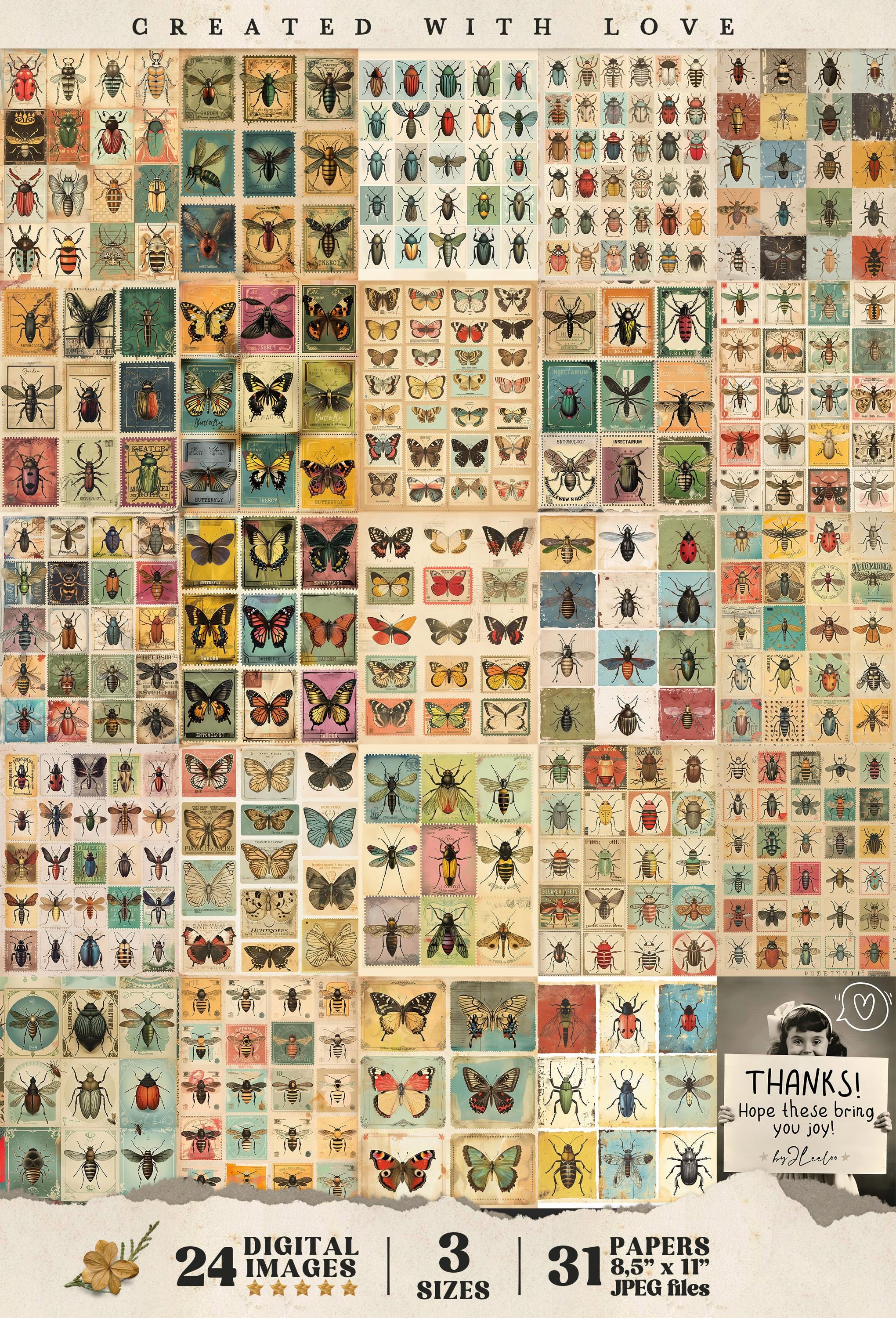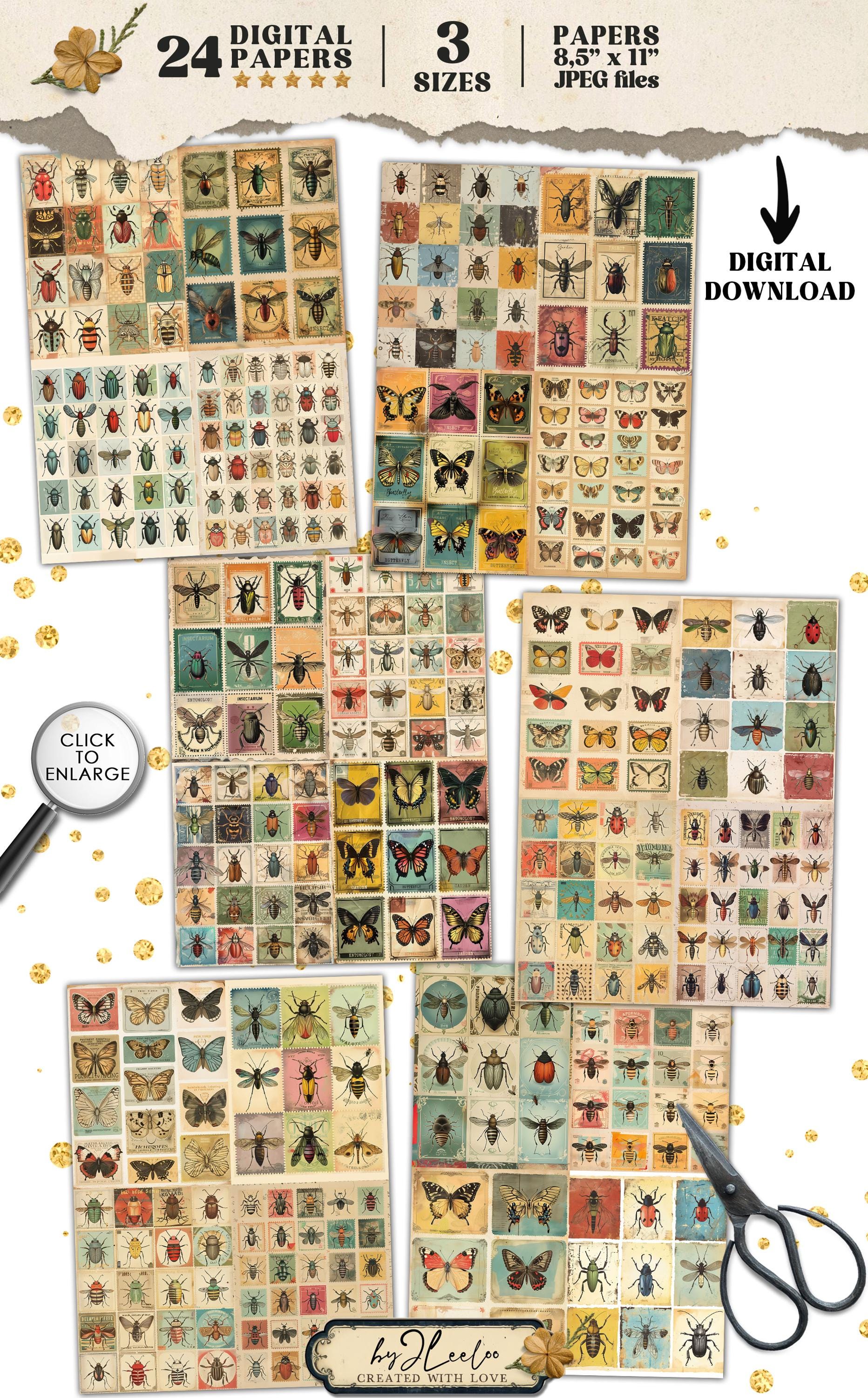 GARDEN COLLAGE 24 papers 3 Sizes | Digital Entomology Garden Printable Set, Insect Junk Journal Labels, scrapbooking Commercial Use | pp843