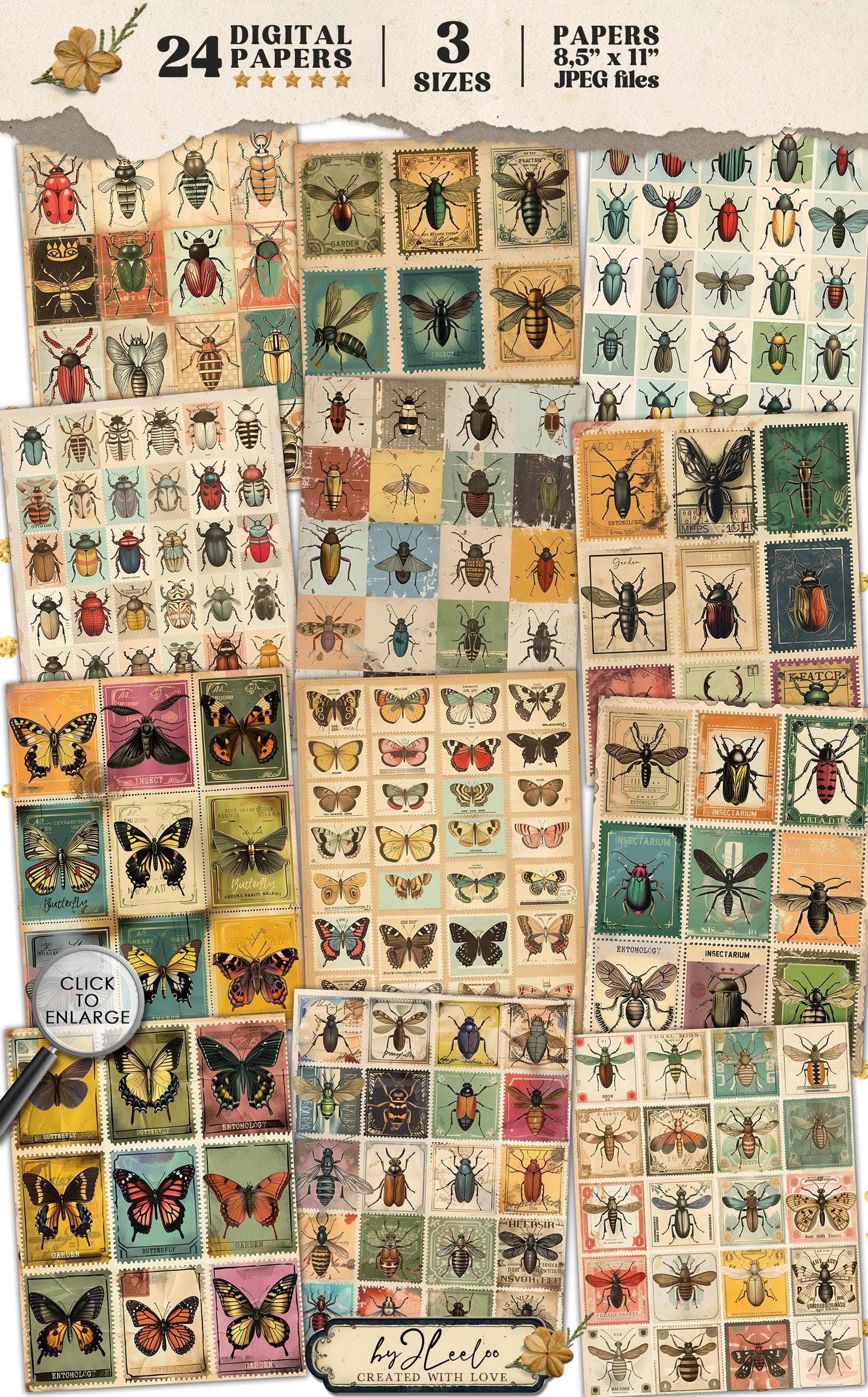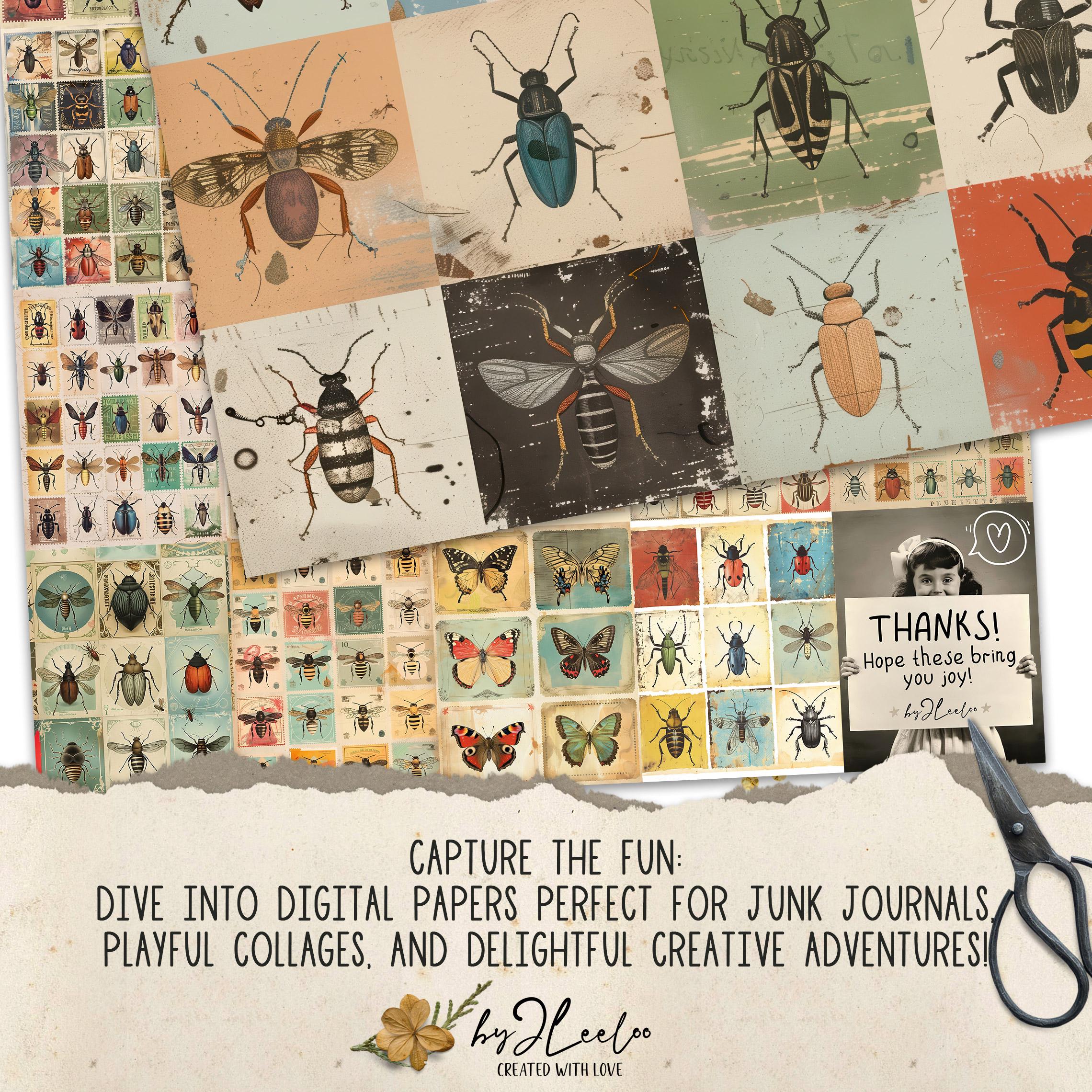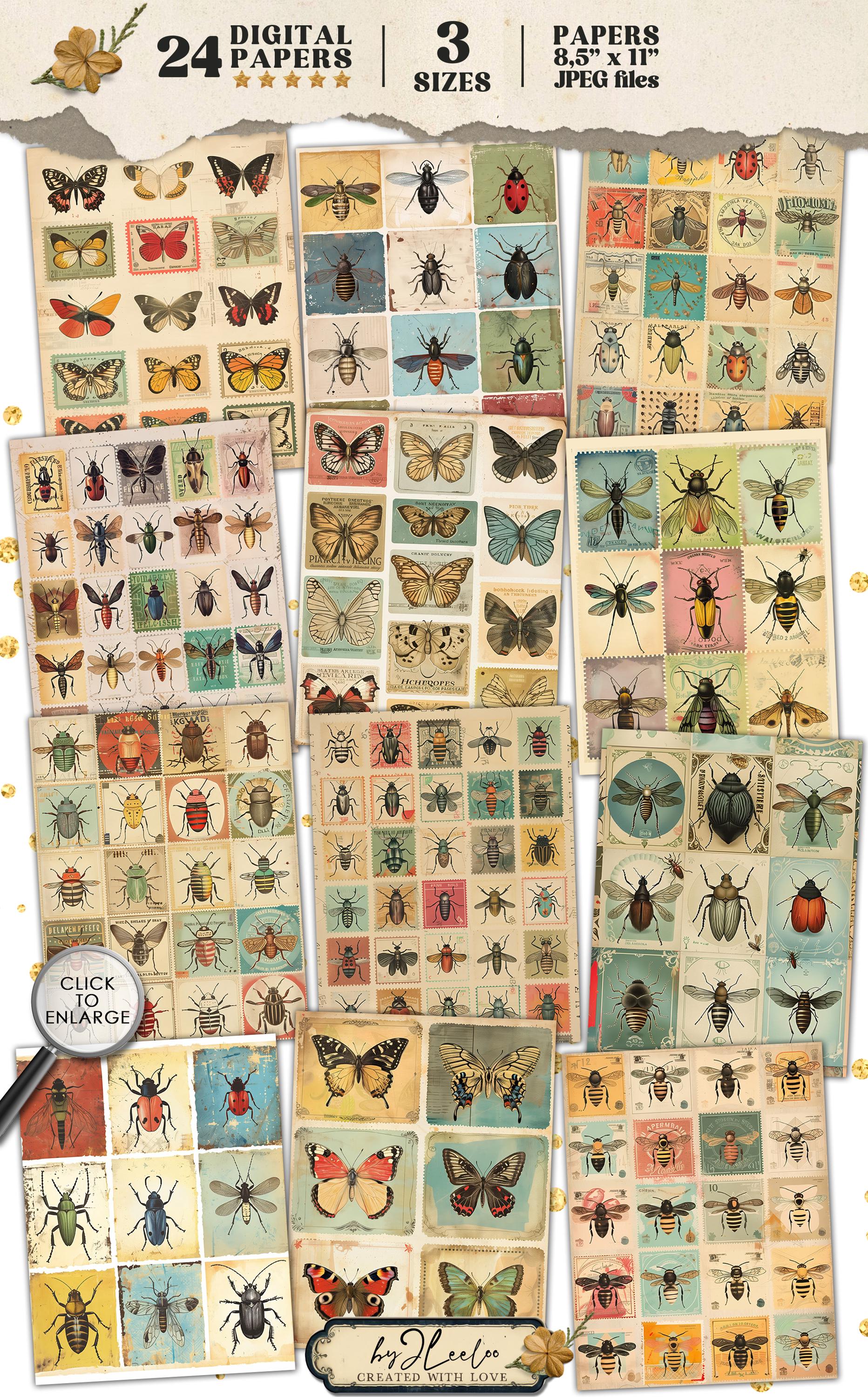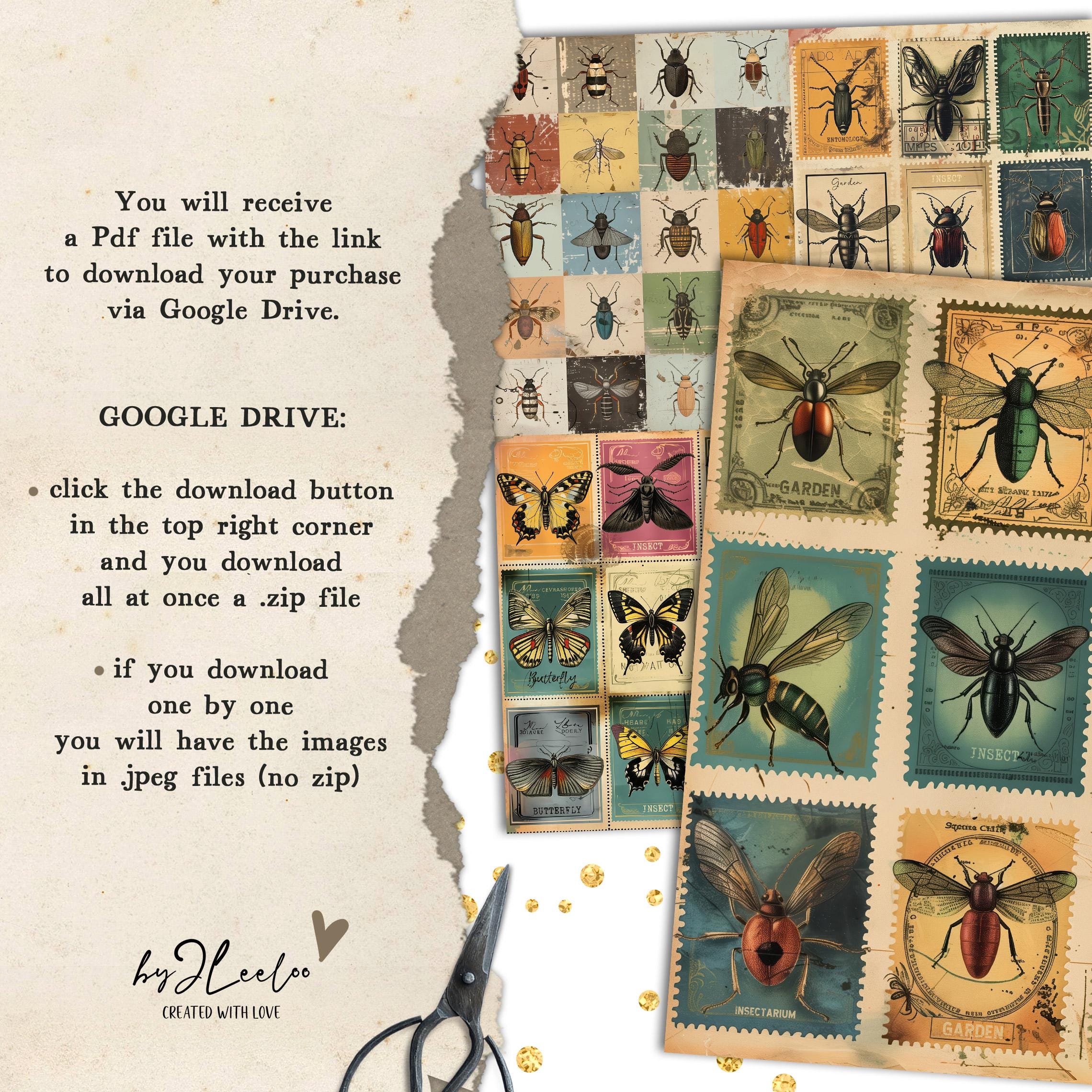 GARDEN COLLAGE 24 papers 3 Sizes | Digital Entomology Garden Printable Set, Insect Junk Journal Labels, scrapbooking Commercial Use | pp843