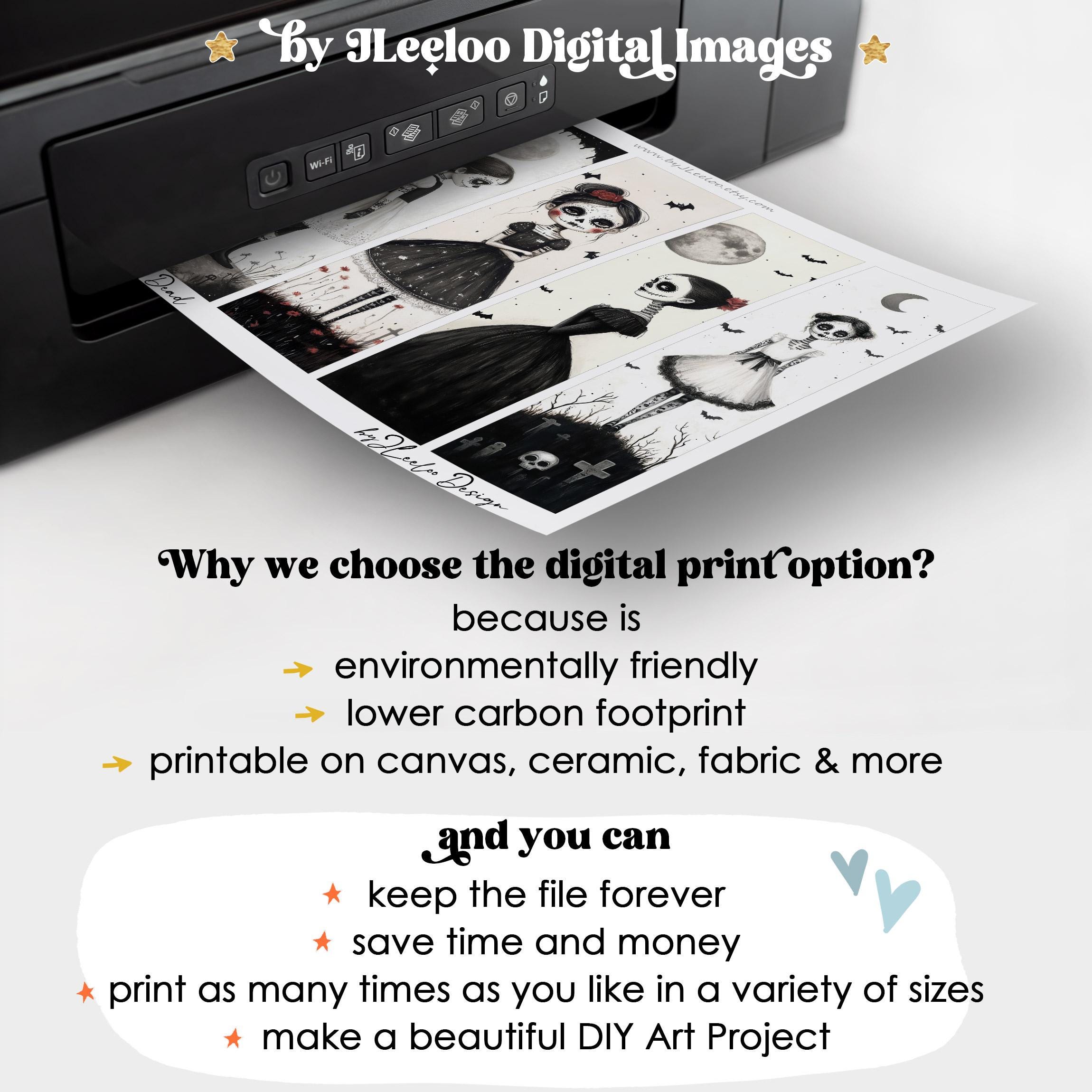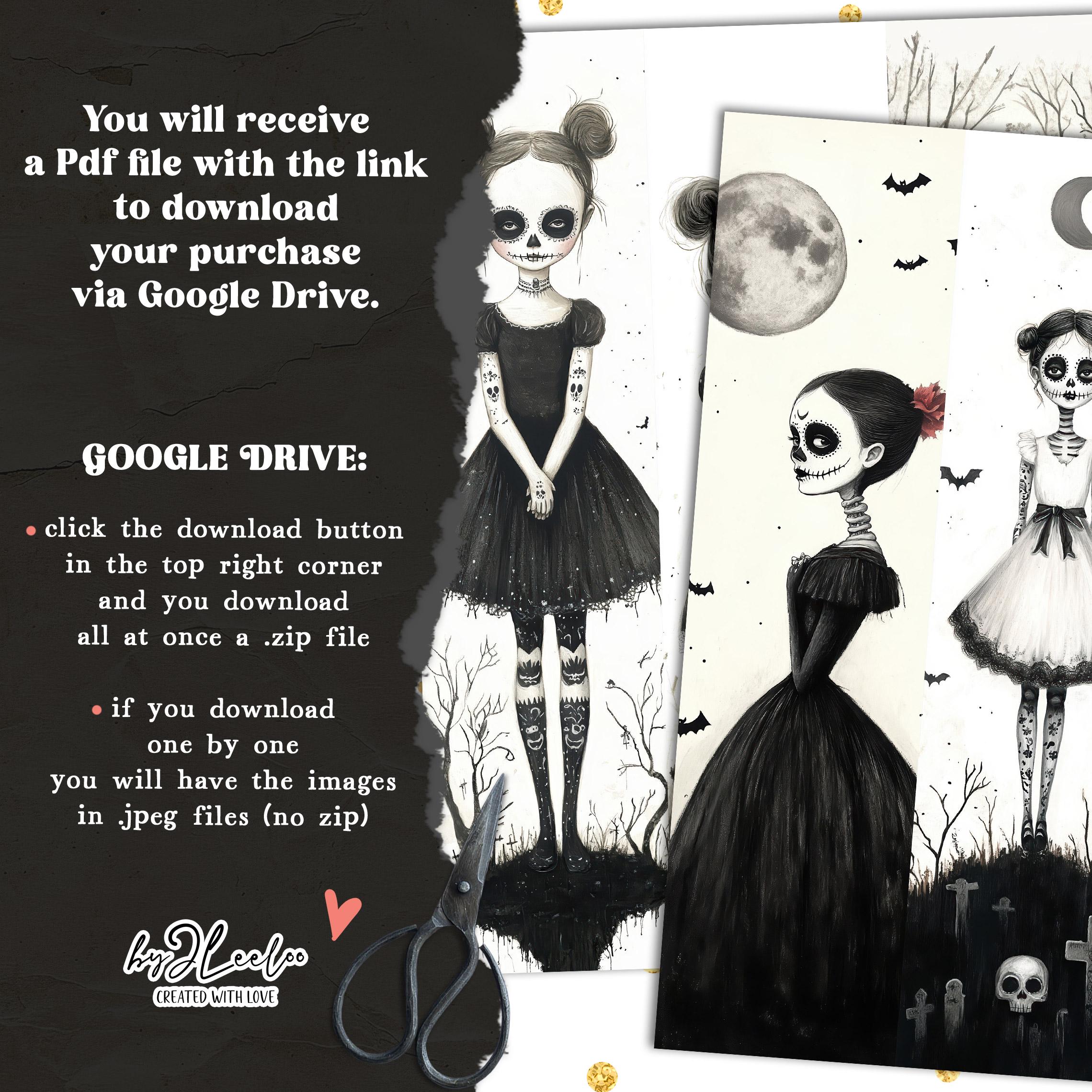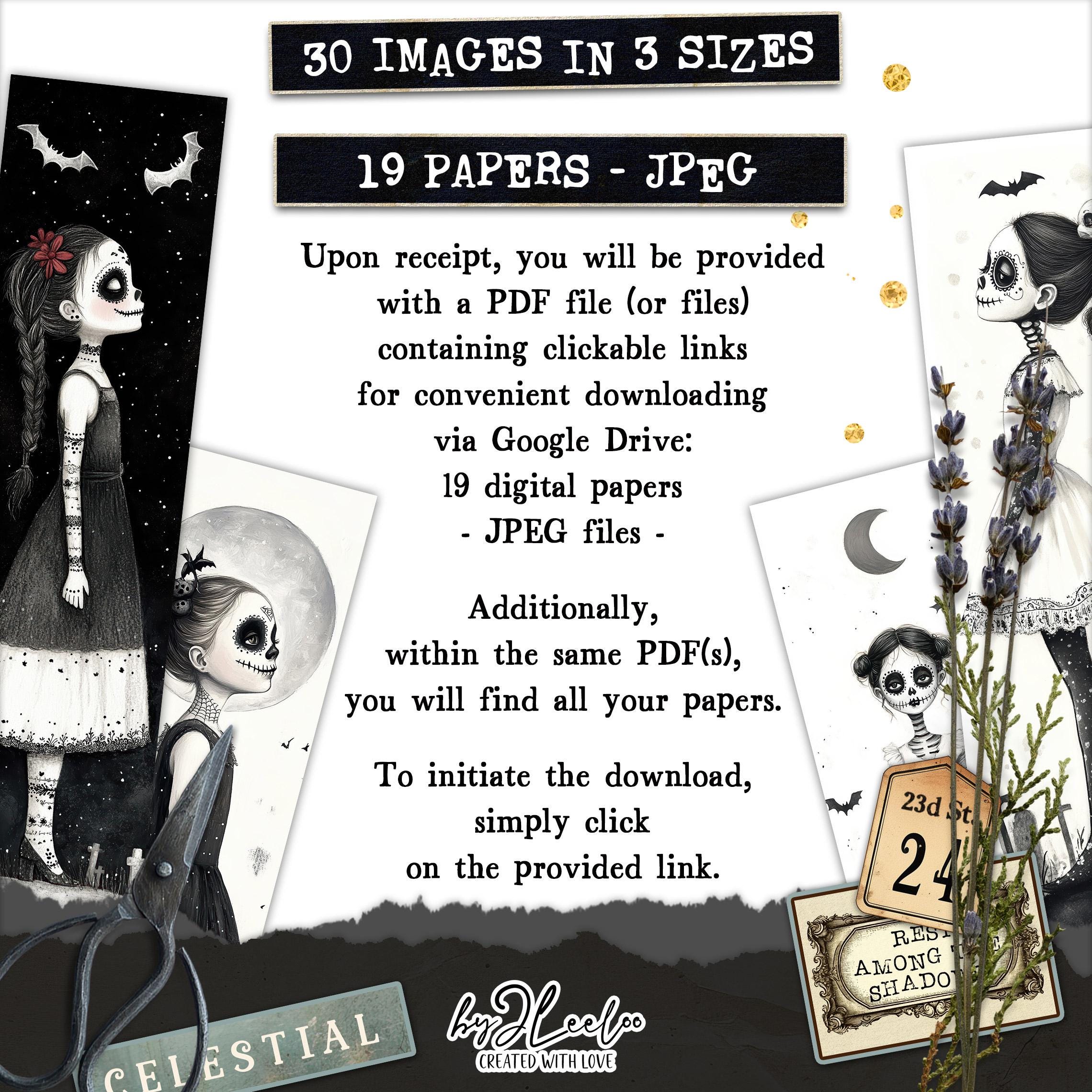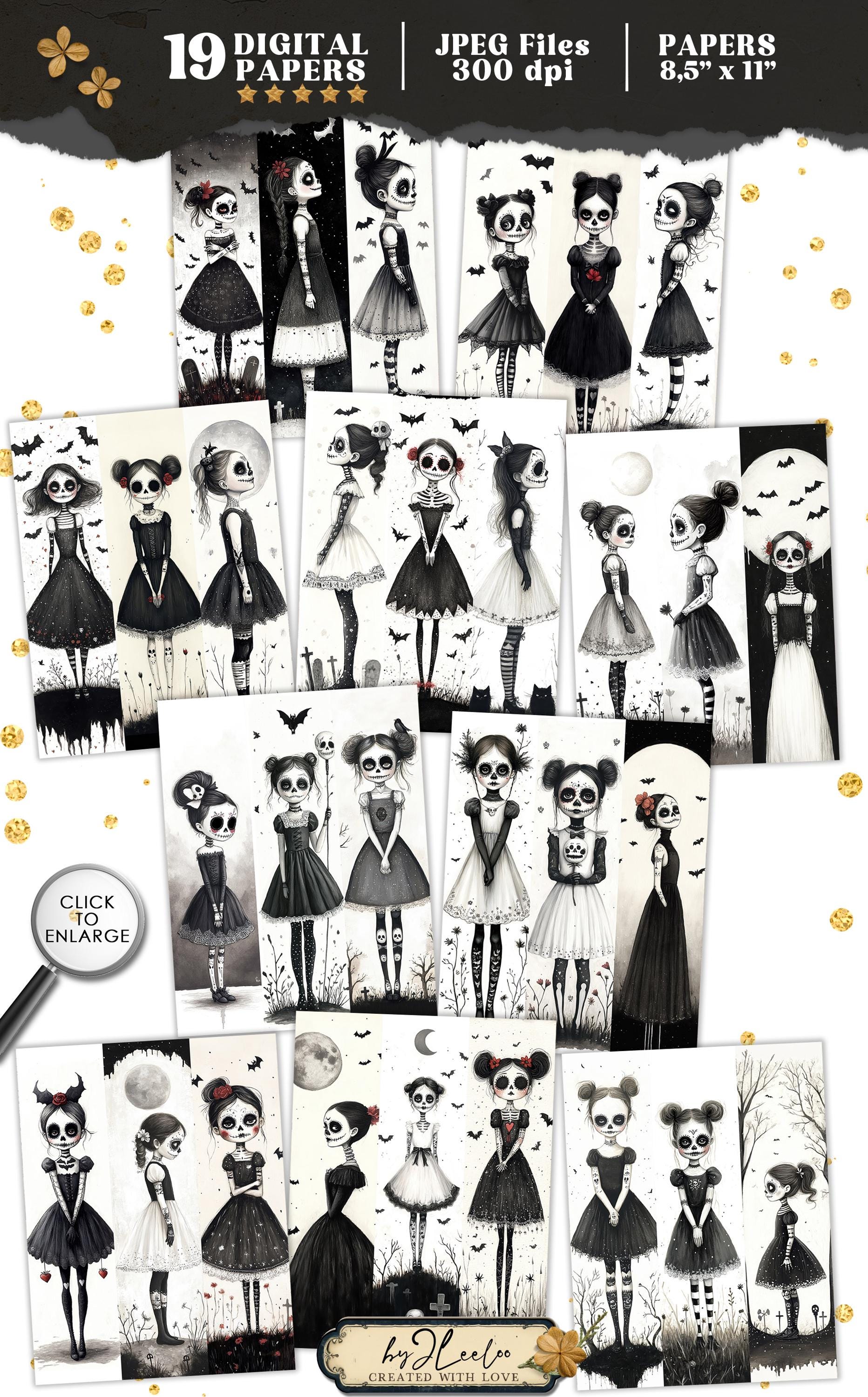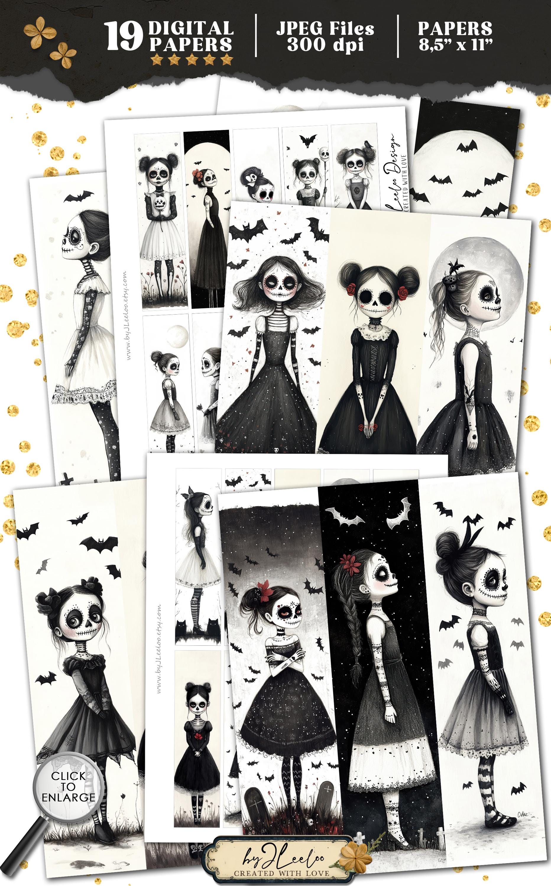 CUTE DAY of the DEAD gothic whimsy bookmarks 3 sizes | Hand-drawn card Ink paper tag junk journal | digital collage Commercial Use | pp833