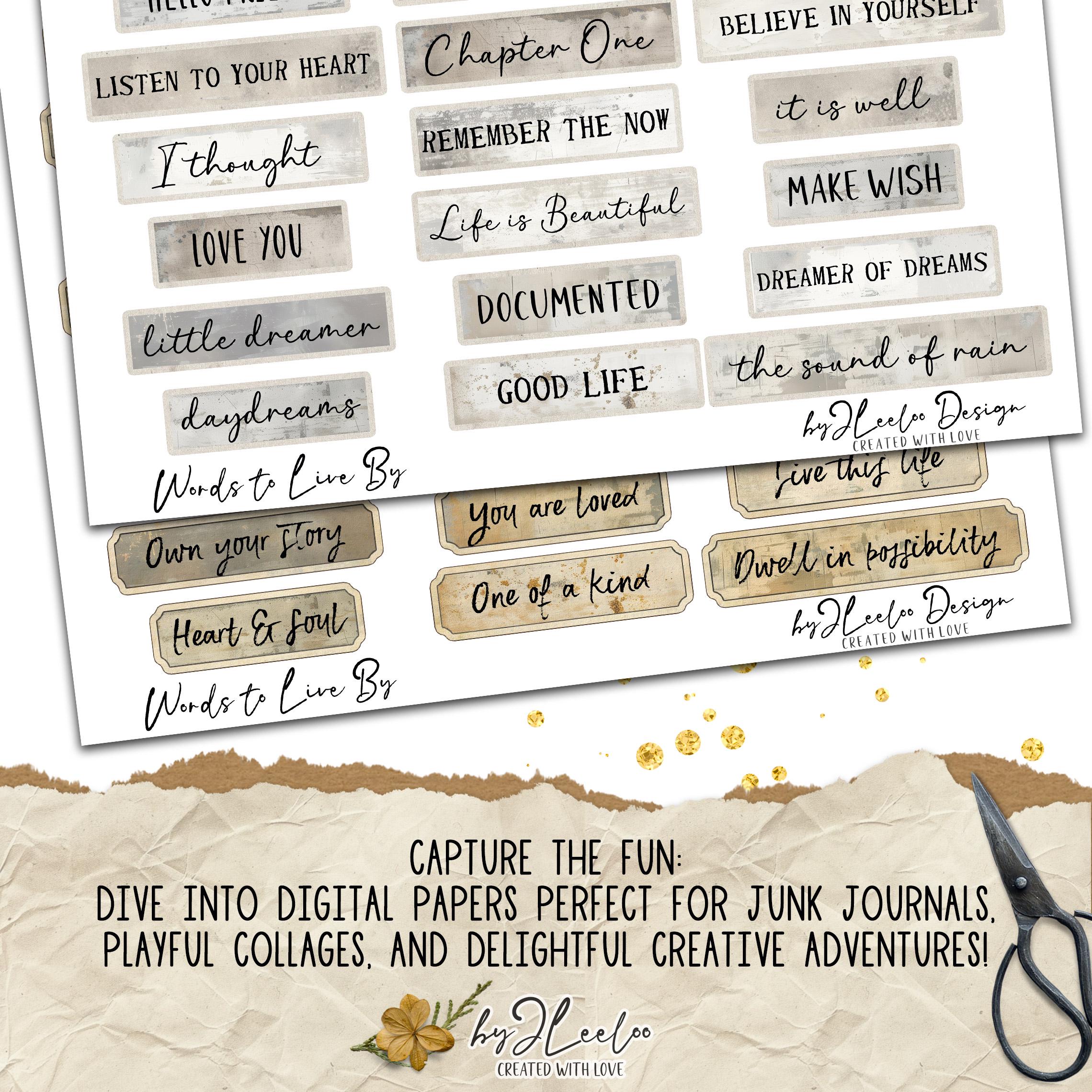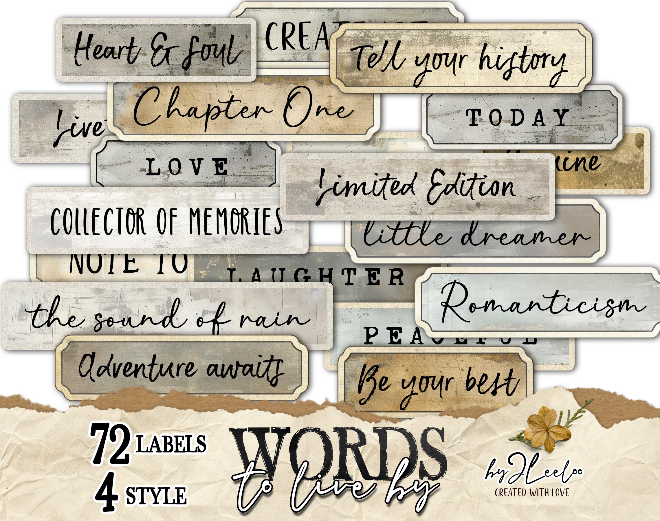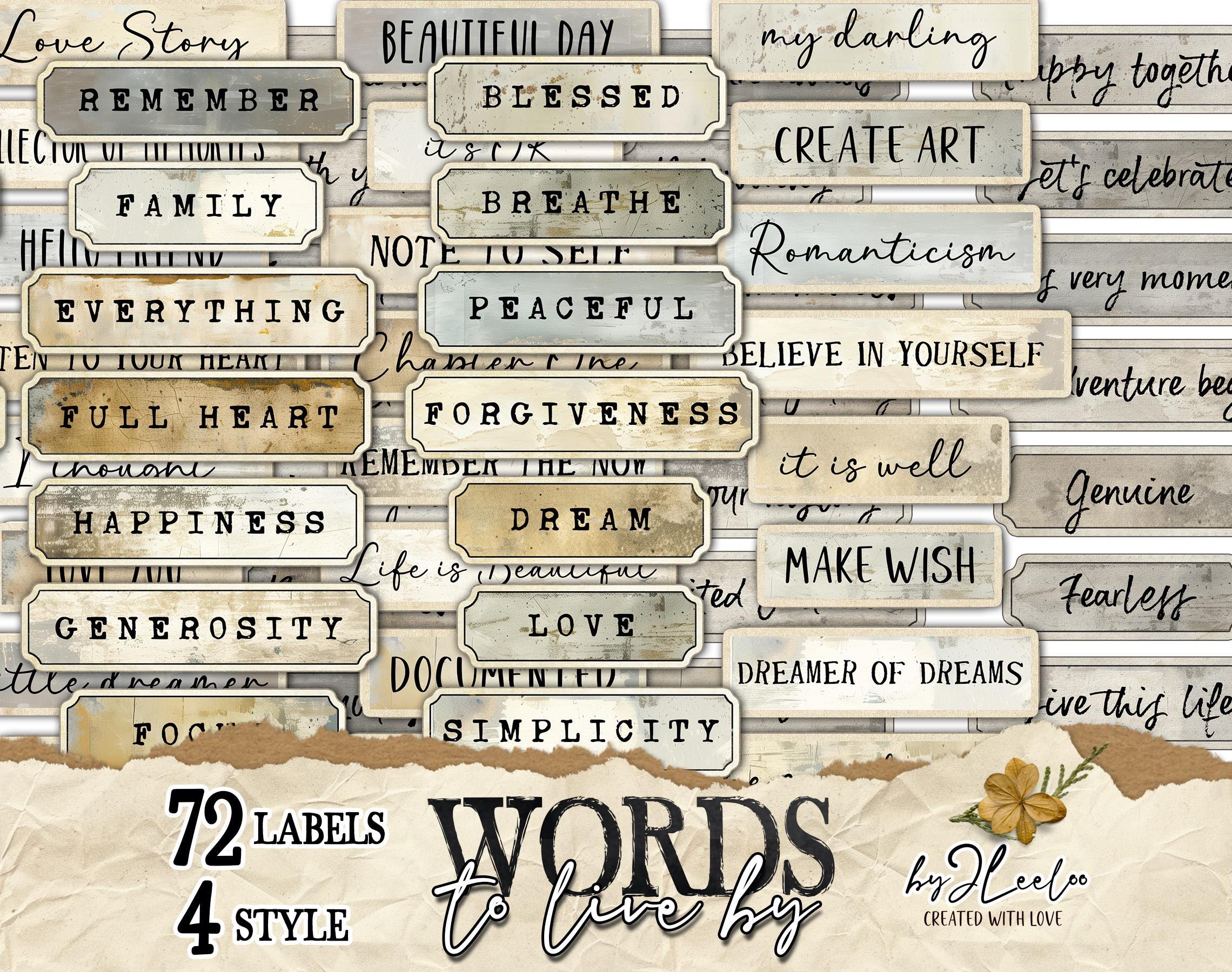 ๐ Welcome to 'Words to Live By' โ a collection of vintage-inspired labels in soft earth tones and muted shades, perfect for capturing life's moments, telling your story, and sparking your creativity. โจ๐๏ธ Let each word be a gentle reminder to cherish the now, dream big, and embrace every chapter of your journey. ๐