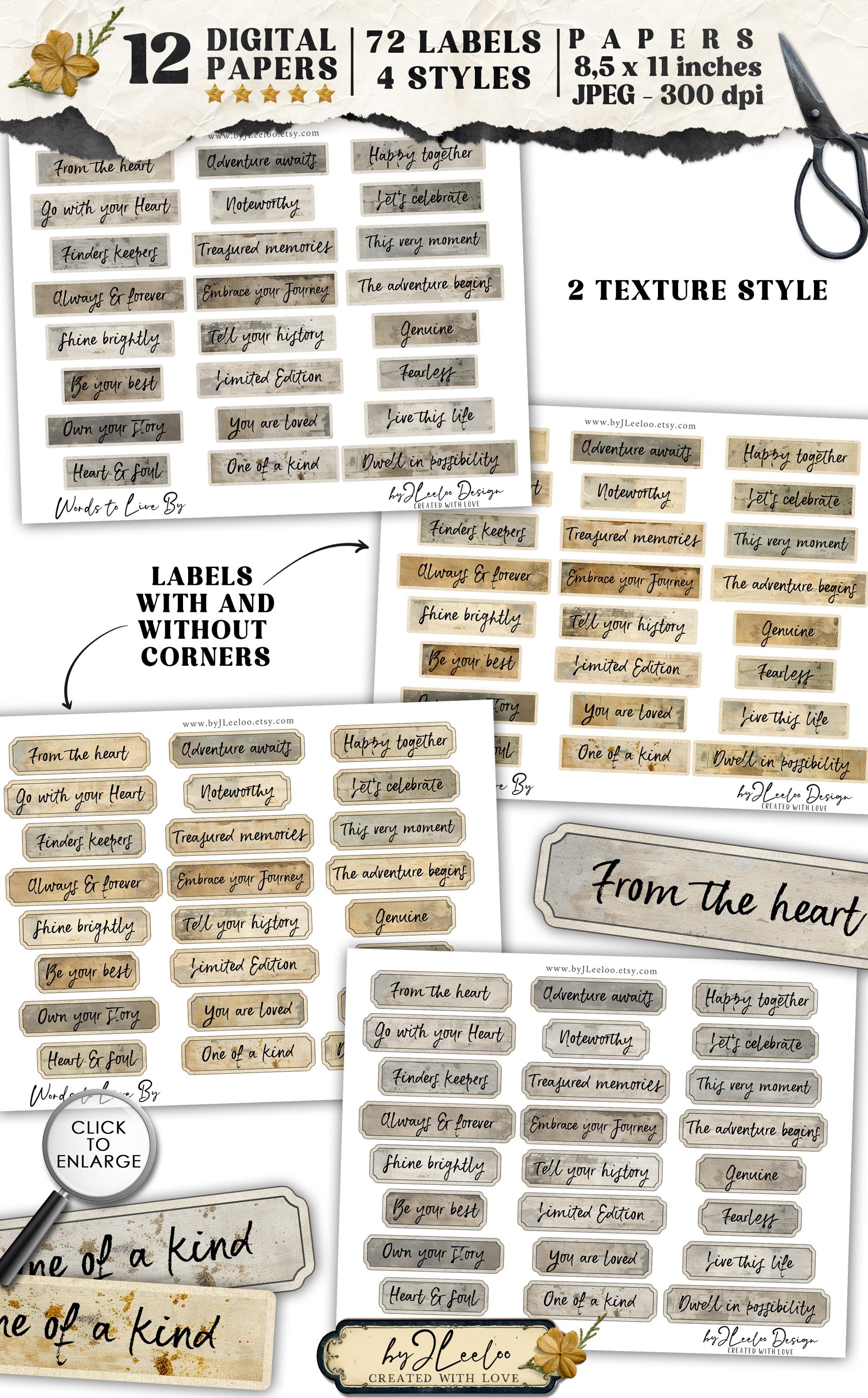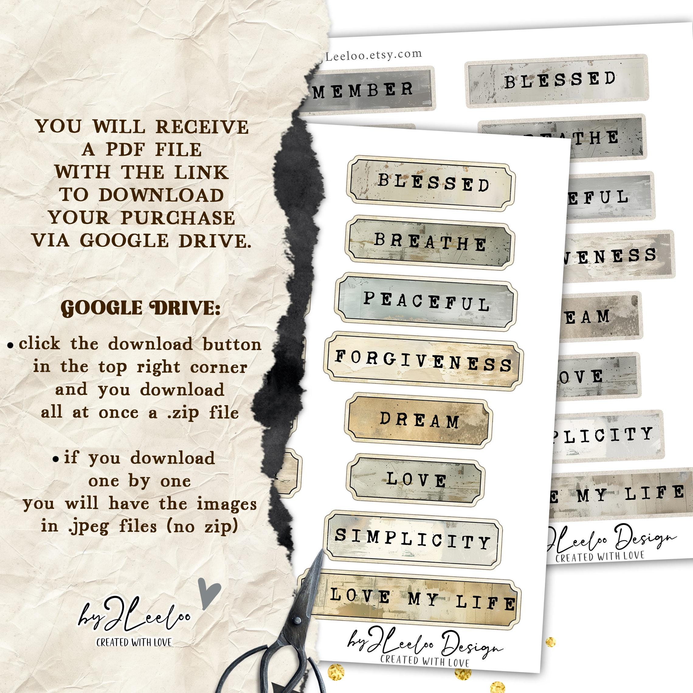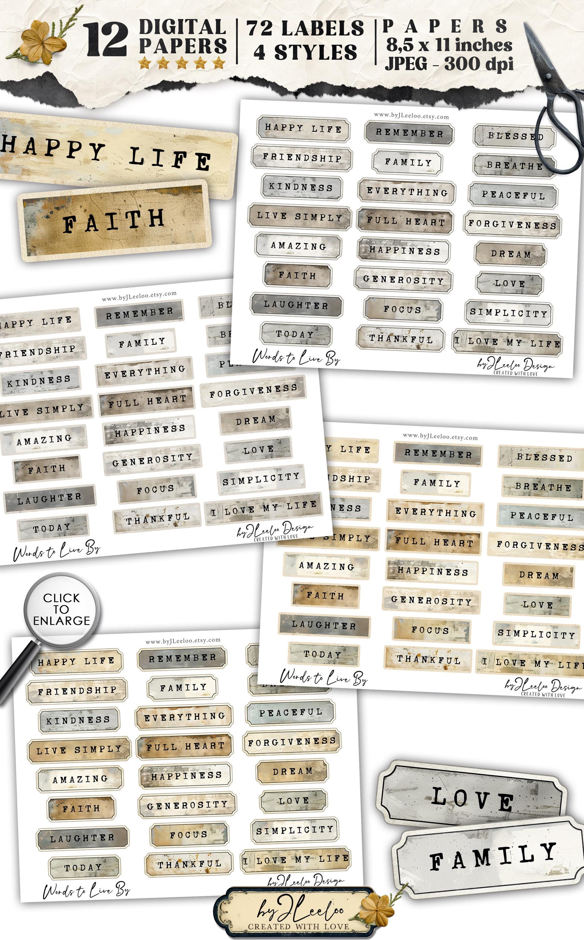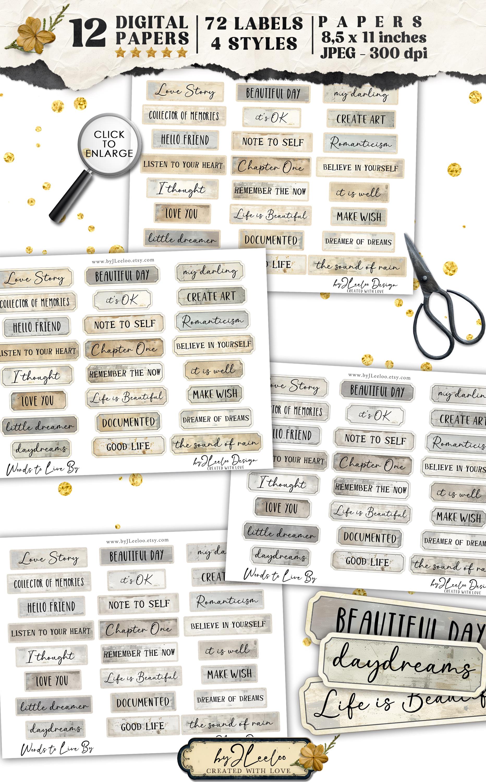 ๐ Welcome to 'Words to Live By' โ a collection of vintage-inspired labels in soft earth tones and muted shades, perfect for capturing life's moments, telling your story, and sparking your creativity. โจ๐๏ธ Let each word be a gentle reminder to cherish the now, dream big, and embrace every chapter of your journey. ๐