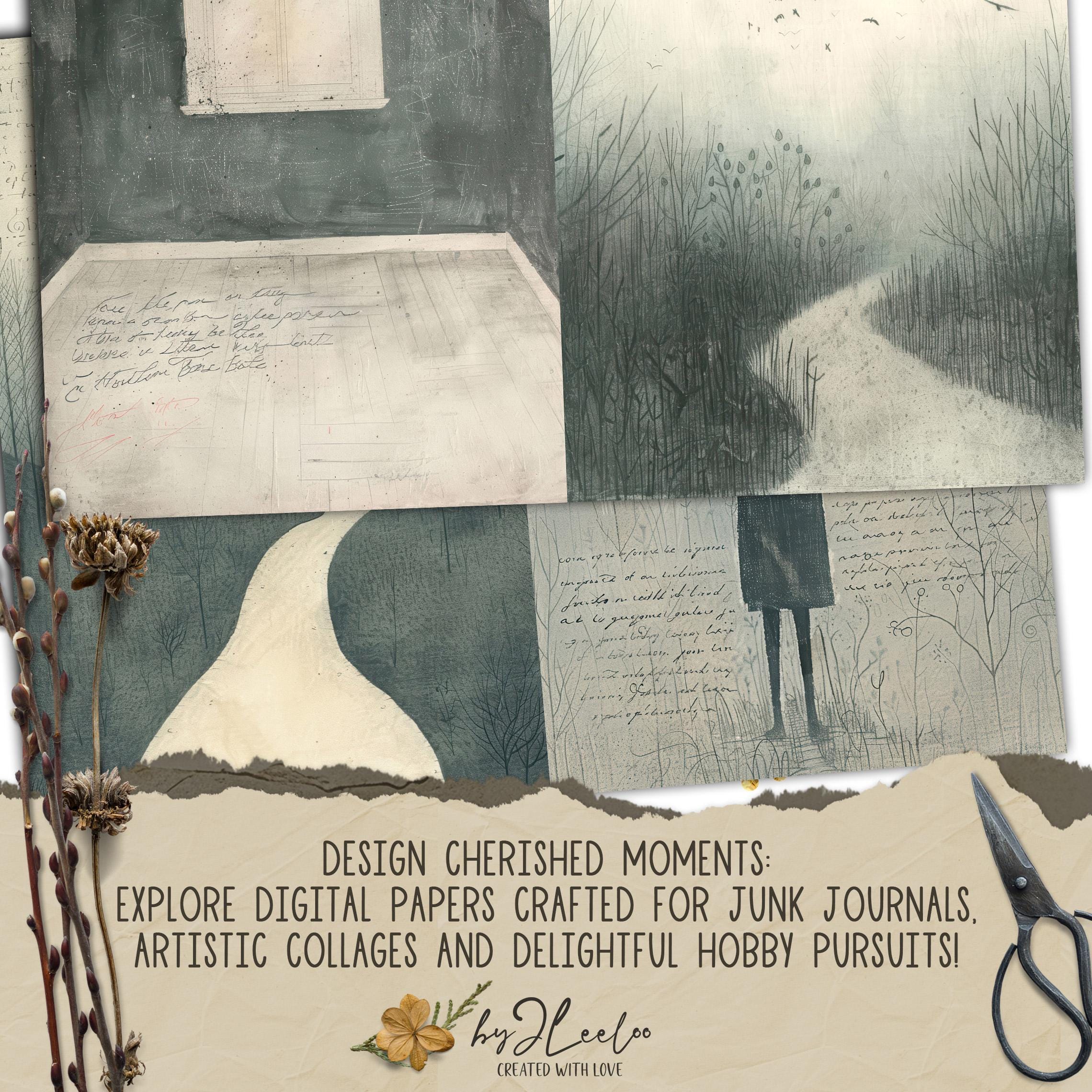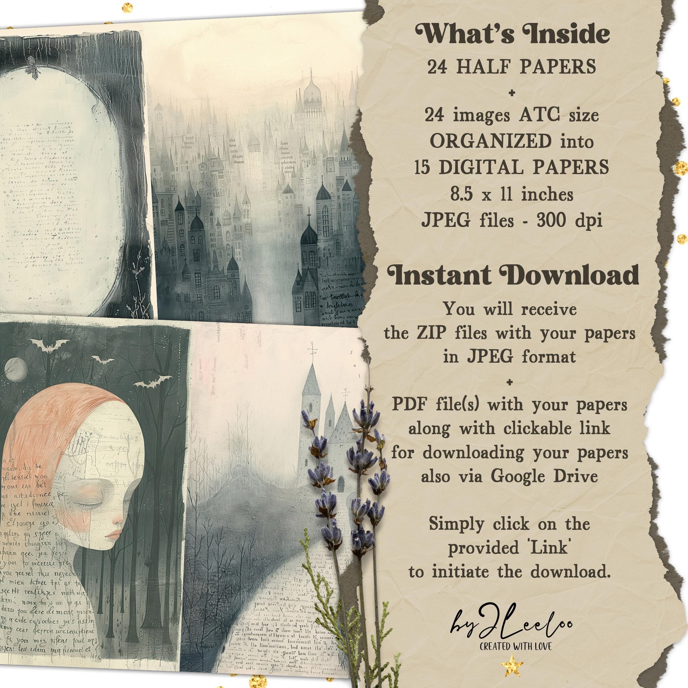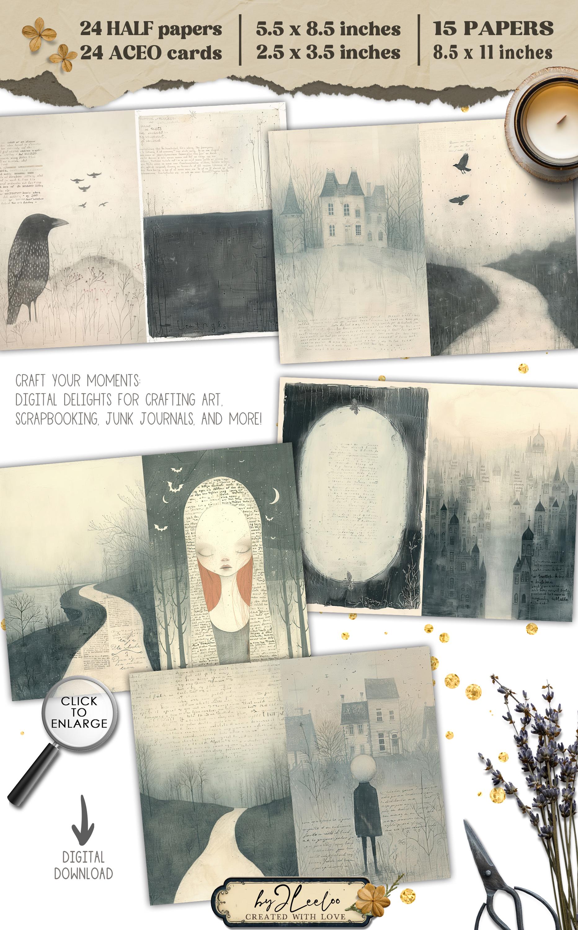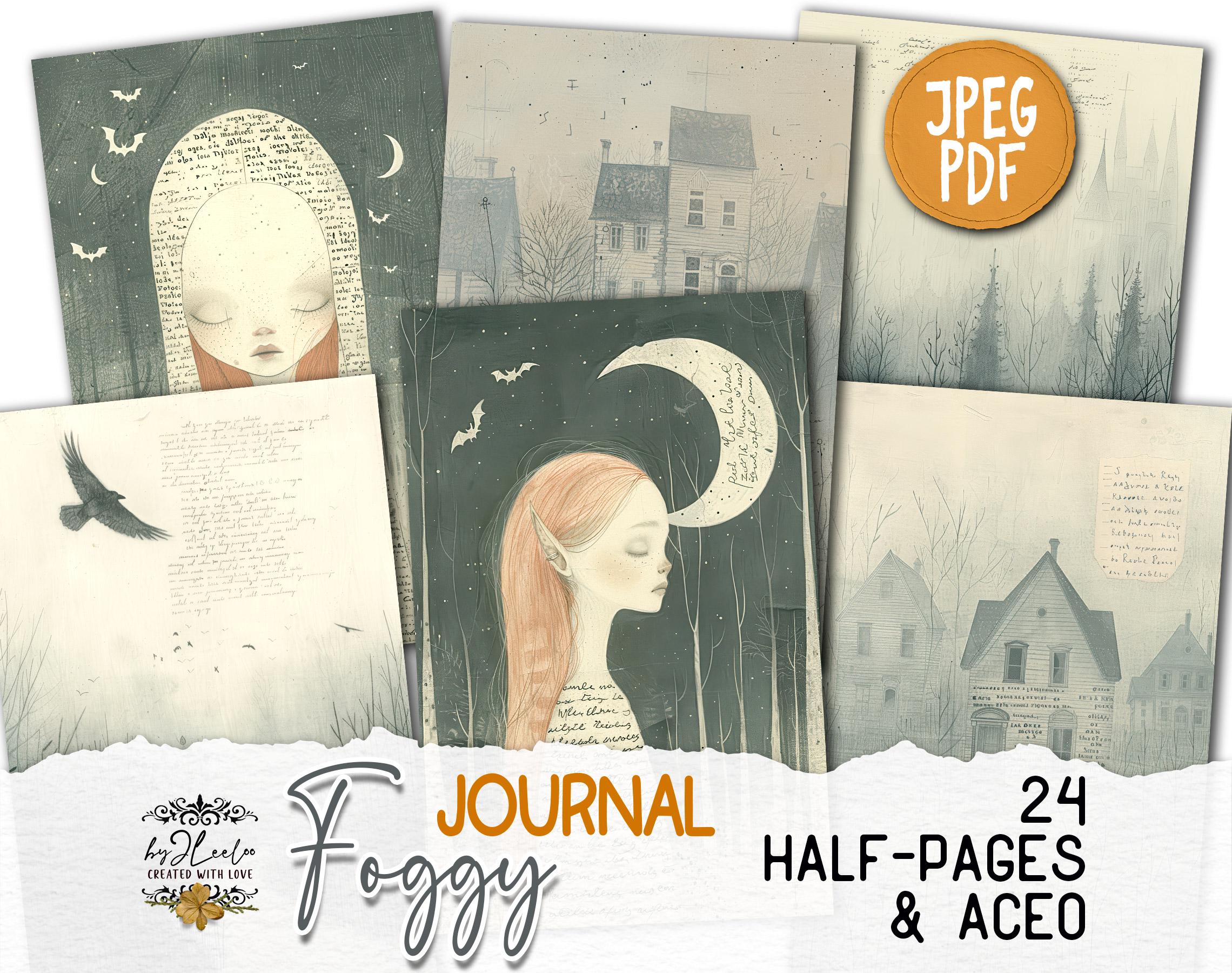 FOGGY JOURNAL half pages Dark Gothic printable | Eerie horror halloween Aceo Atc junk journal | Storybook paper collage digital card | pp832
