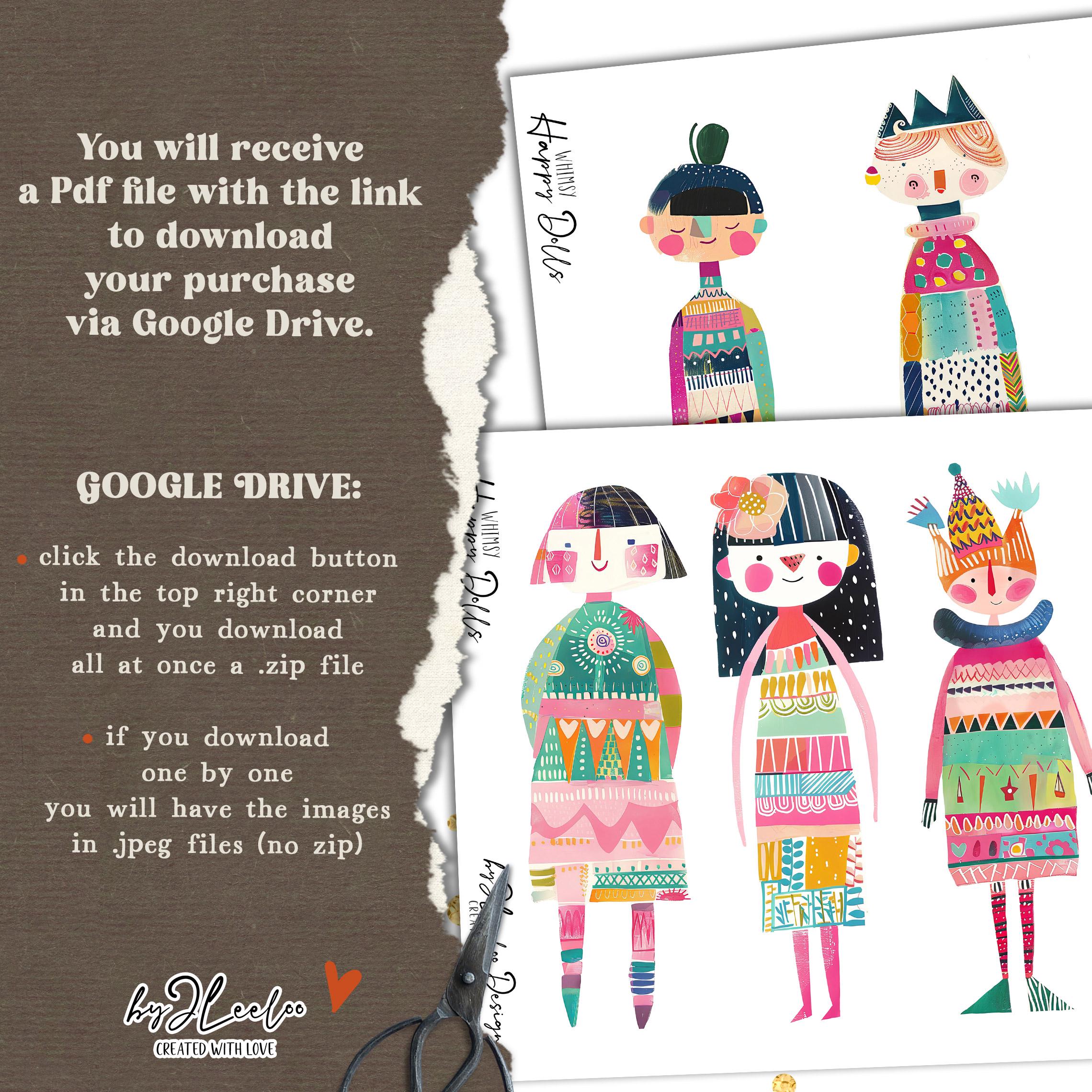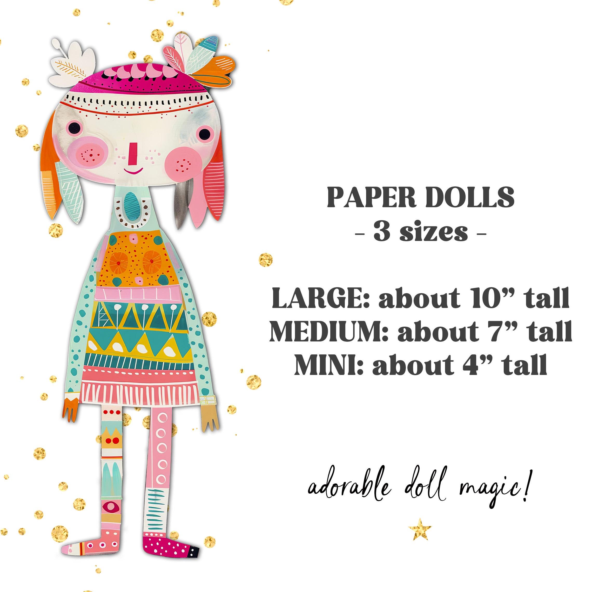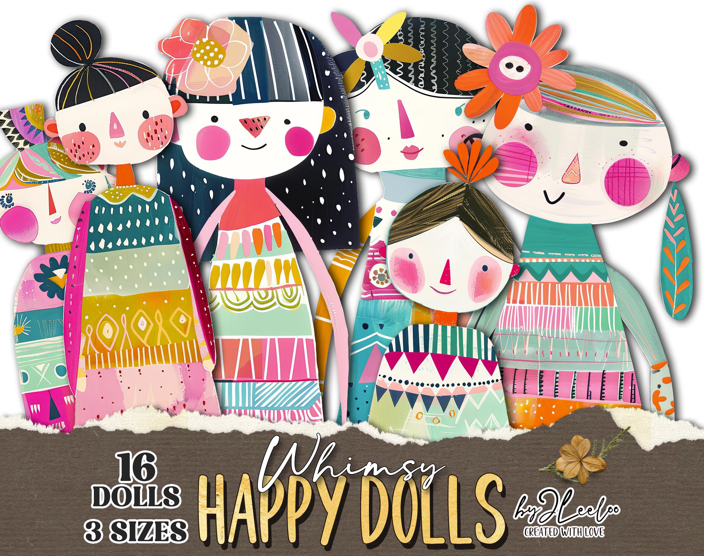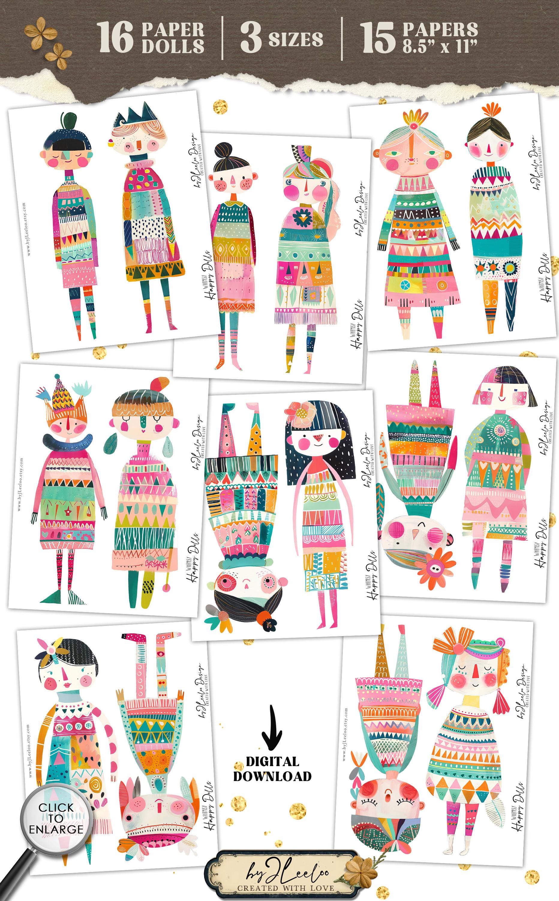 WHIMSY HAPPY DOLLS paper doll 3 sizes printable junk journal cut off | Paper Dolls journaling supplies Hand-drawn | mini fussy cut | pp836