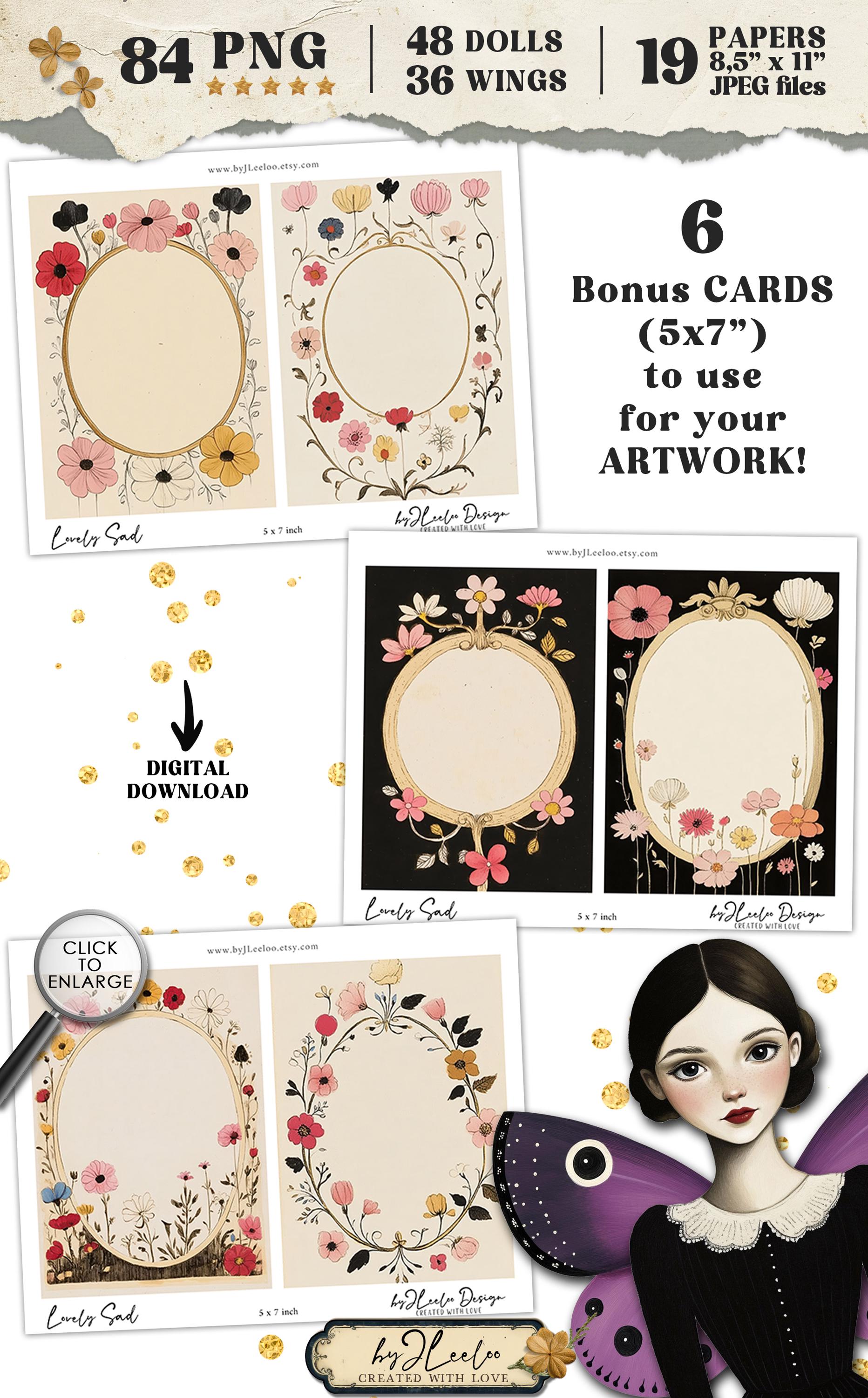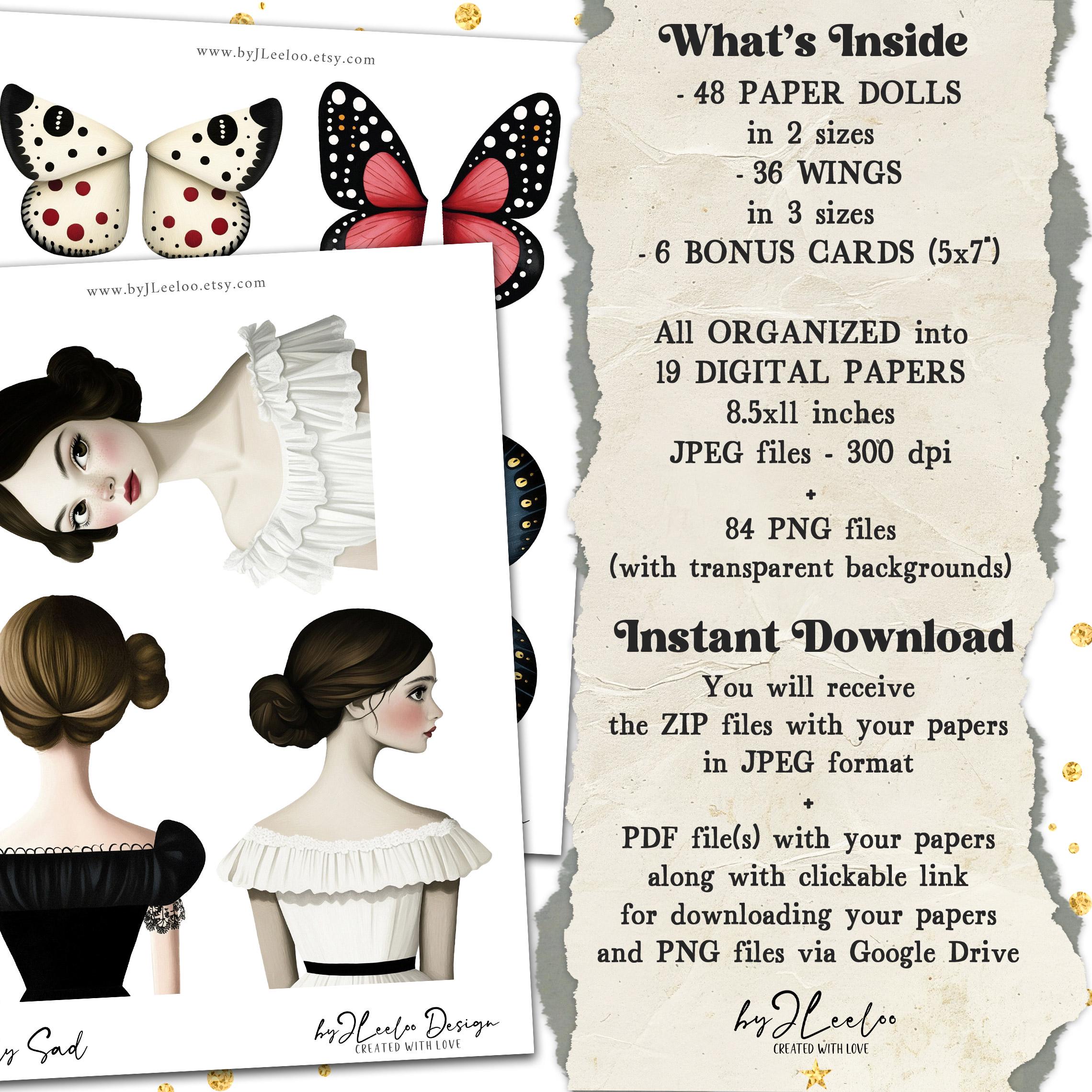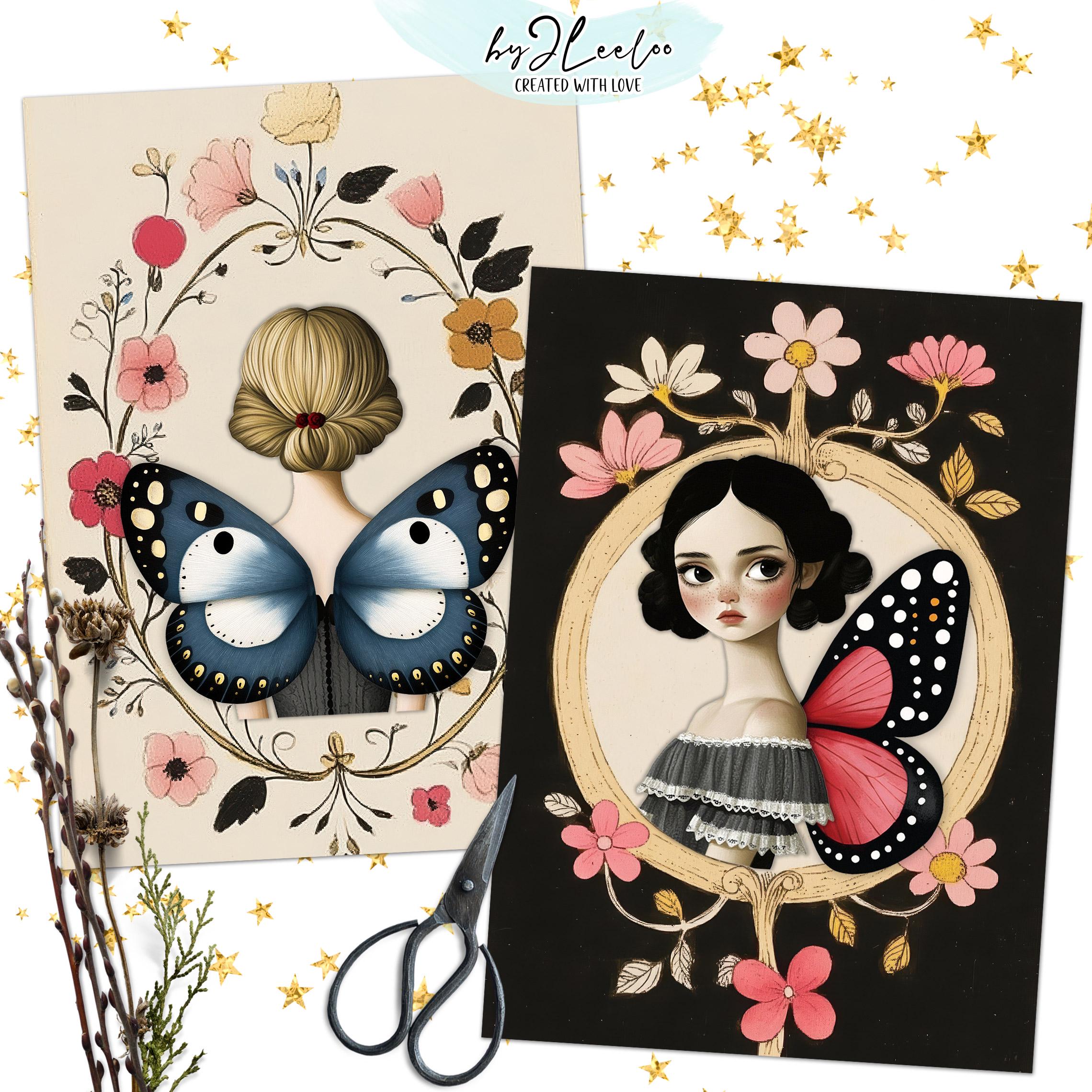 โจ Immerse yourself in a whimsical world of creativity with these delightful half-portraits of young women and their charming butterfly wings! ๐ธ Print, cut, and assemble them to your heart's content โ mix and match with or without wings to create unique characters for your scrapbooking projects! Offered in both .JPEG format (ready to print) and .PNG format with transparent backgrounds, these illustrations are perfect for crafting, journaling, or any creative adventure. Plus, enjoy 6 bonus floral backgrounds (5x7 inches) to add an extra touch of magic to your creations! ๐ท๐ฆ Let your imagination soar!