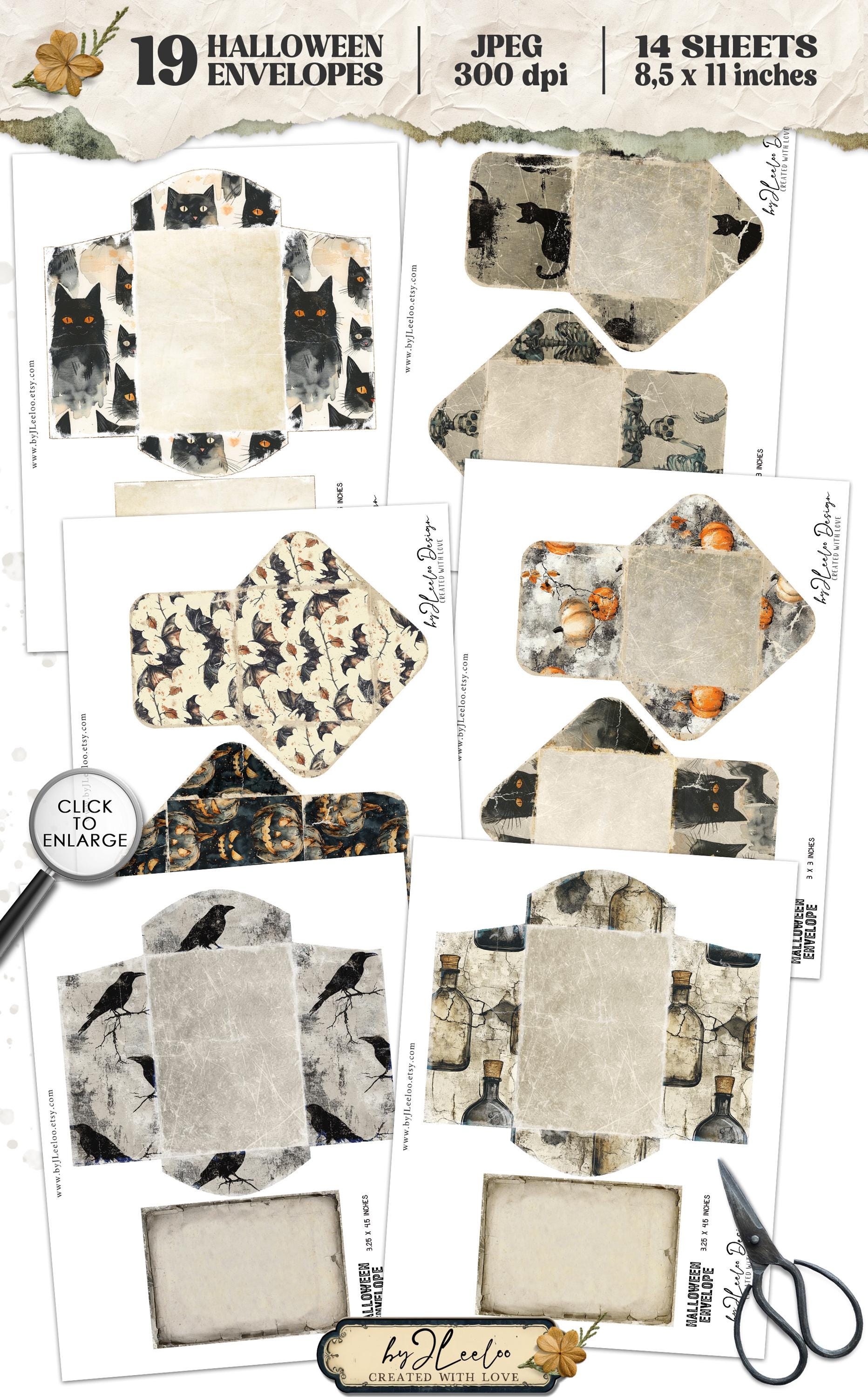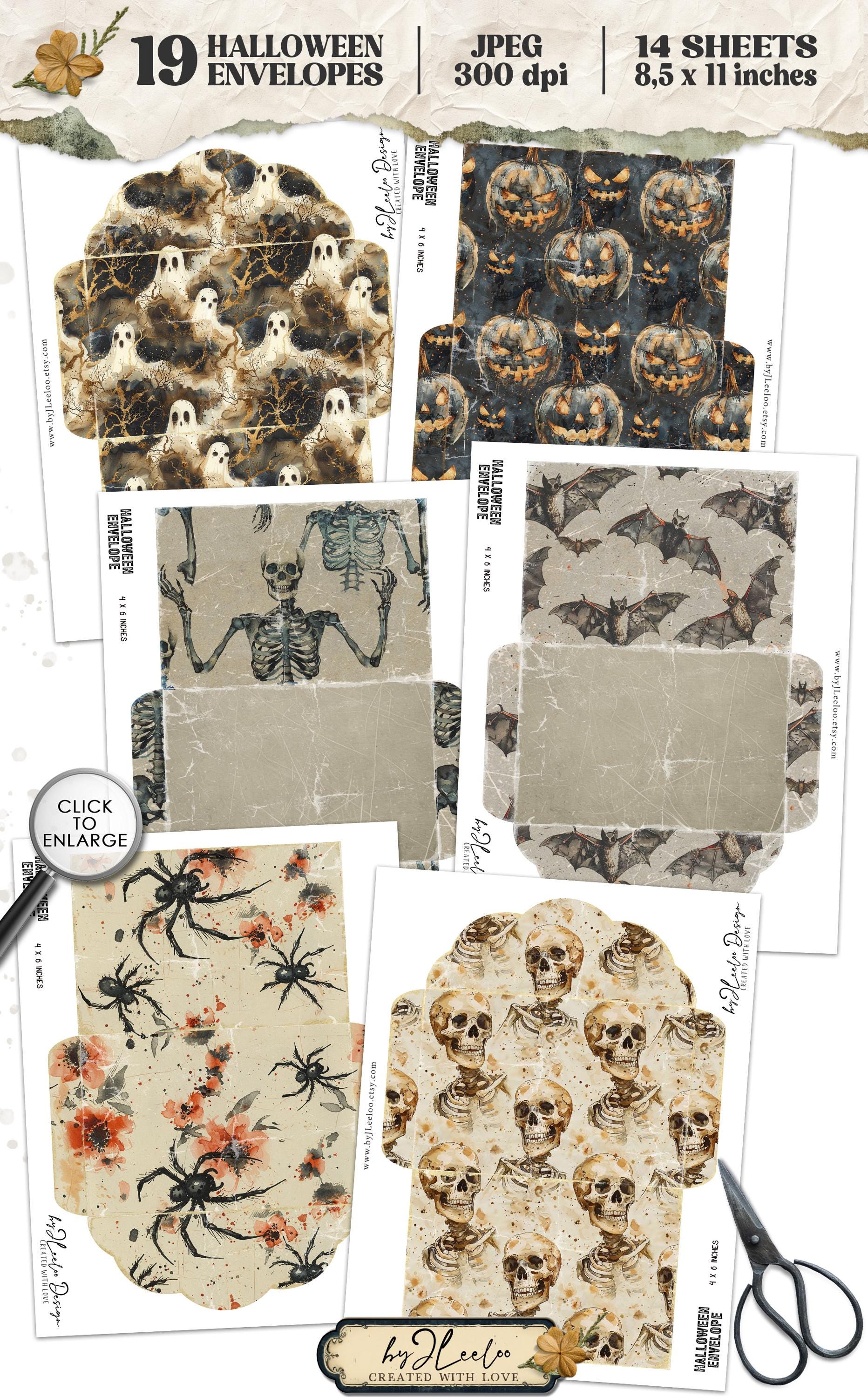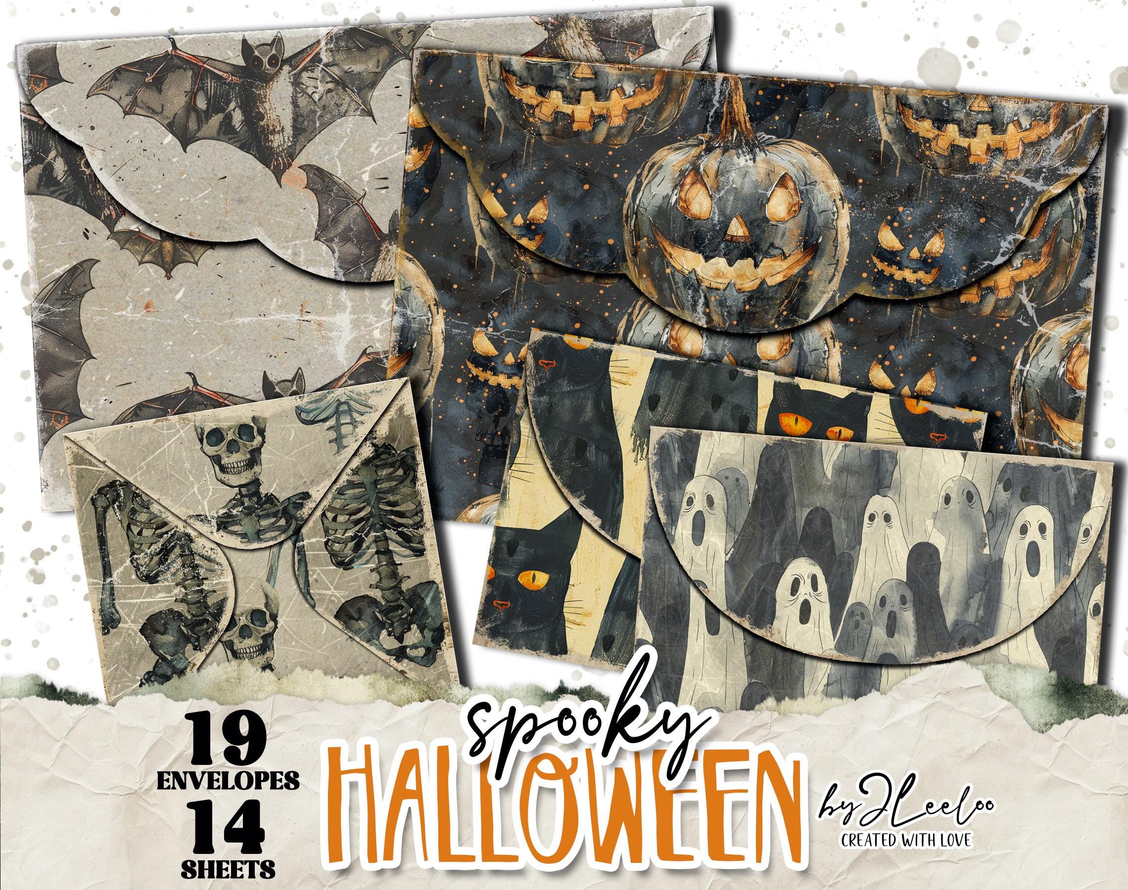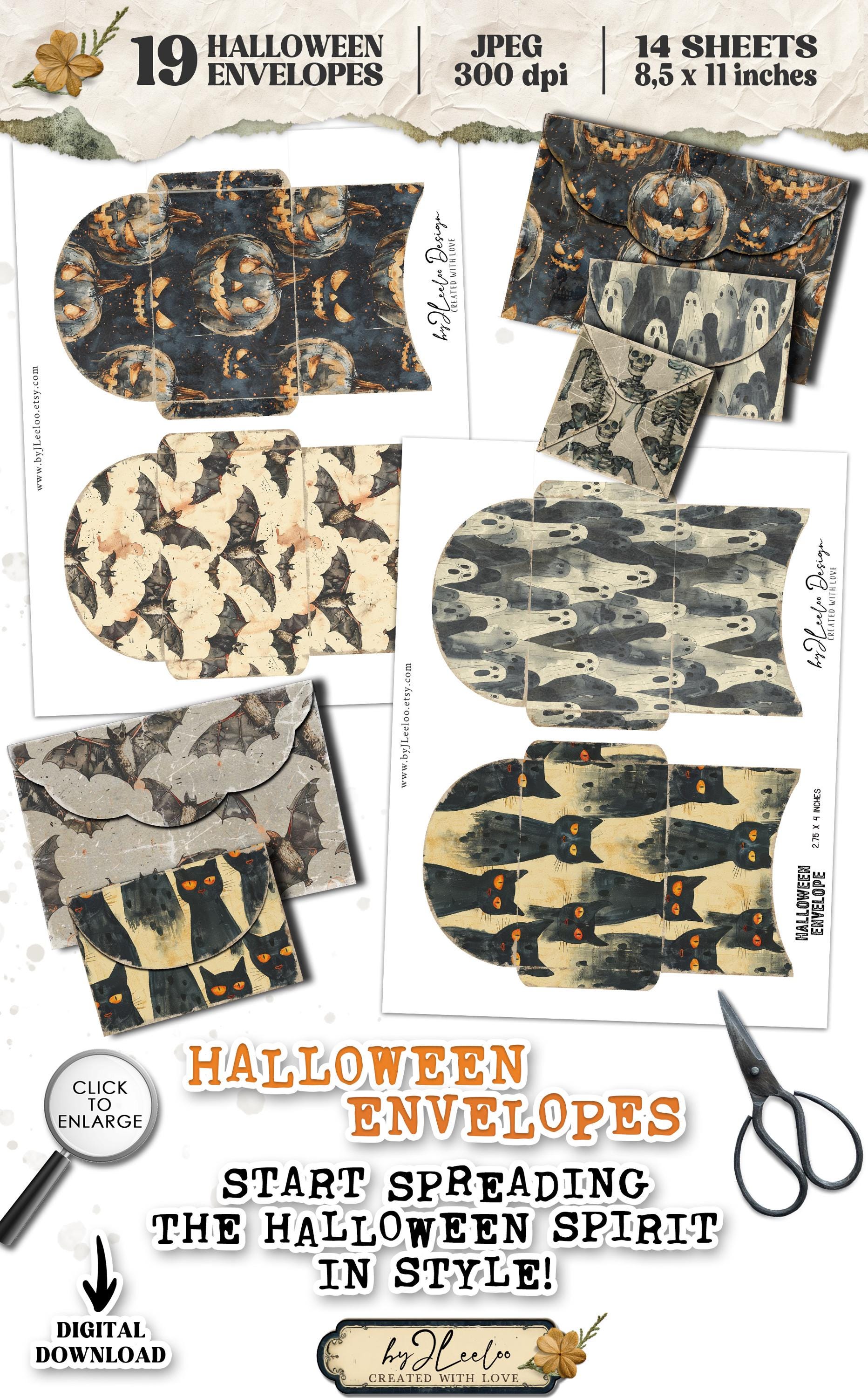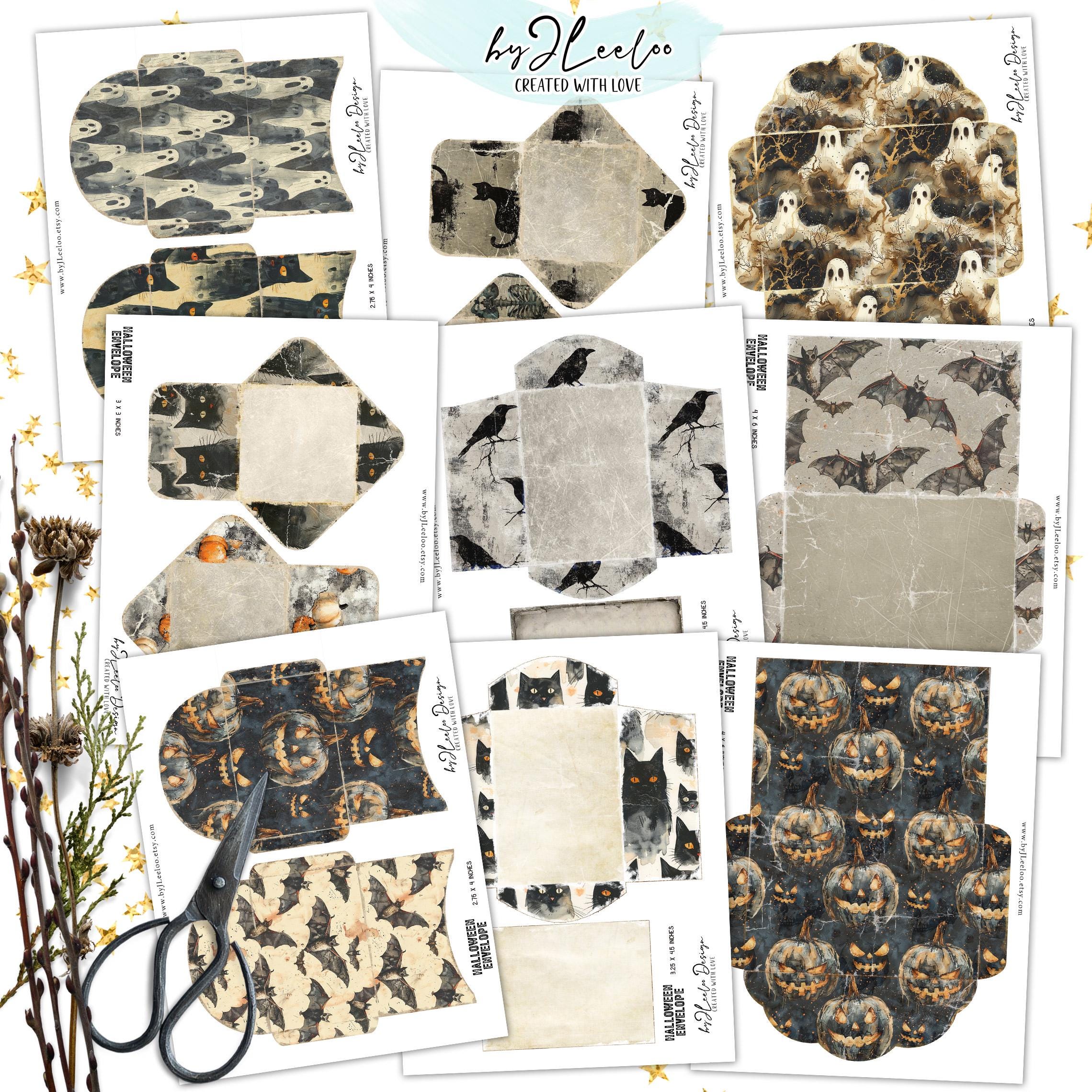 HALLOWEEN ENVELOPES vintage scary postcard | junk journal printable diy collage sheets painted background collage commercial use | pp852