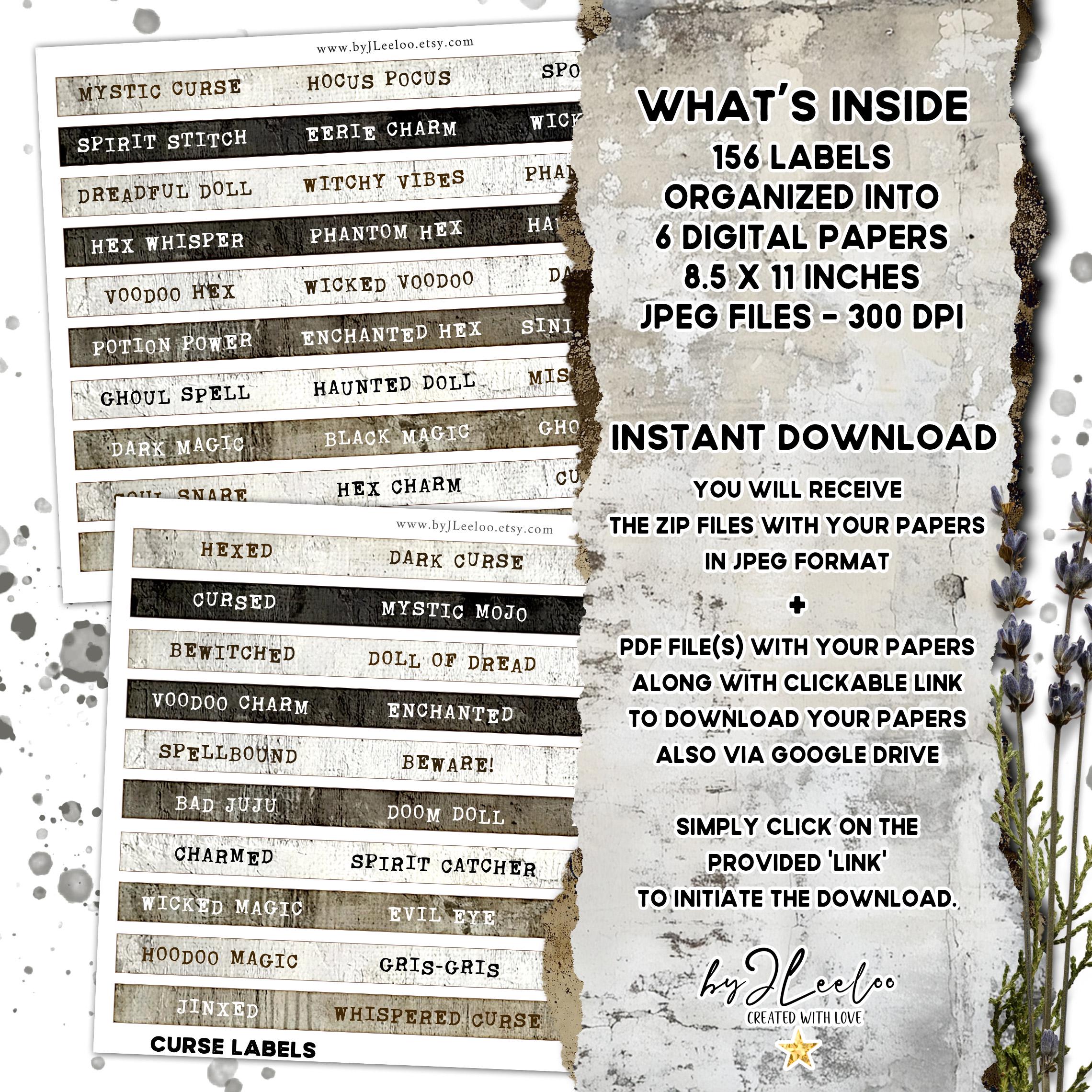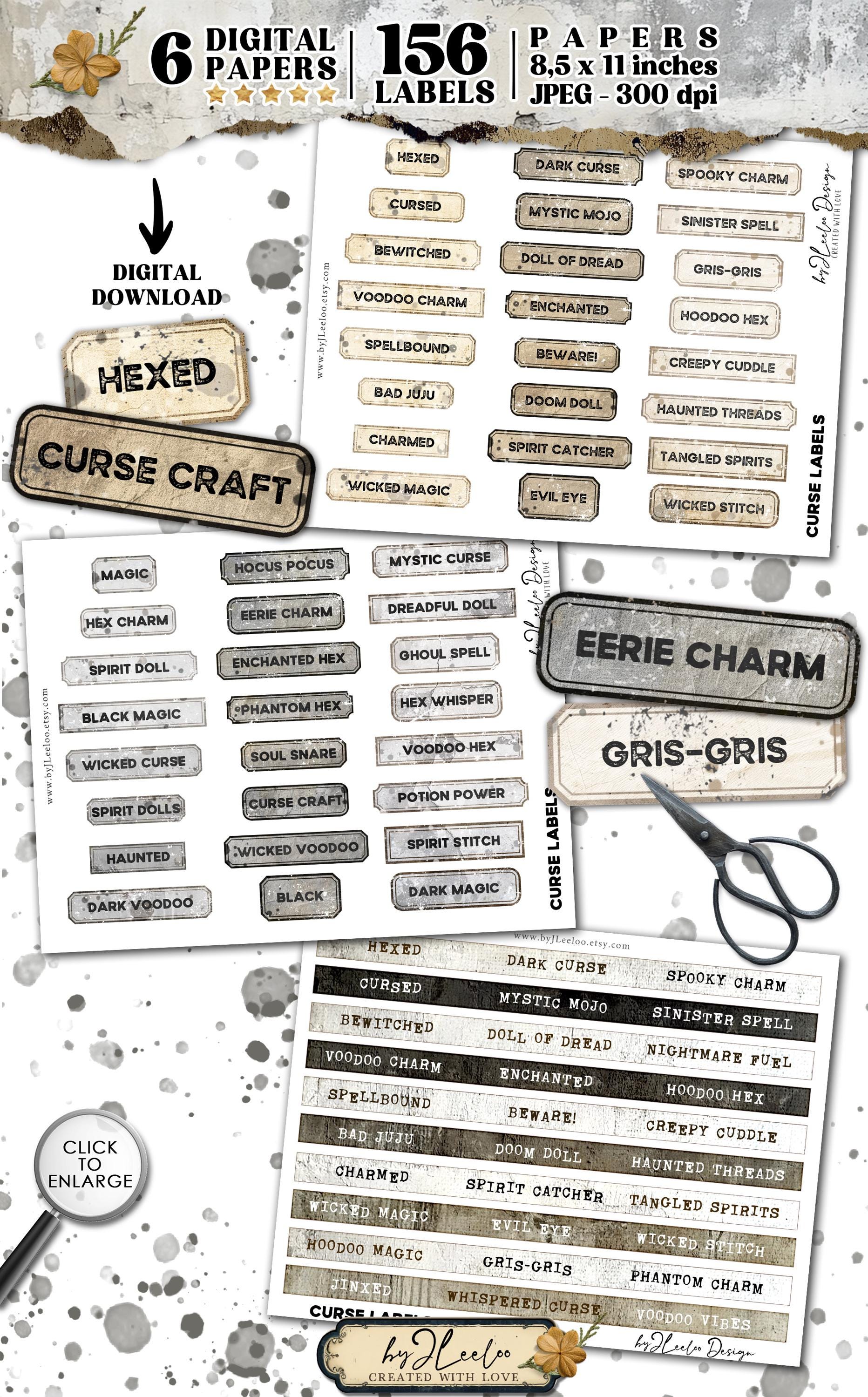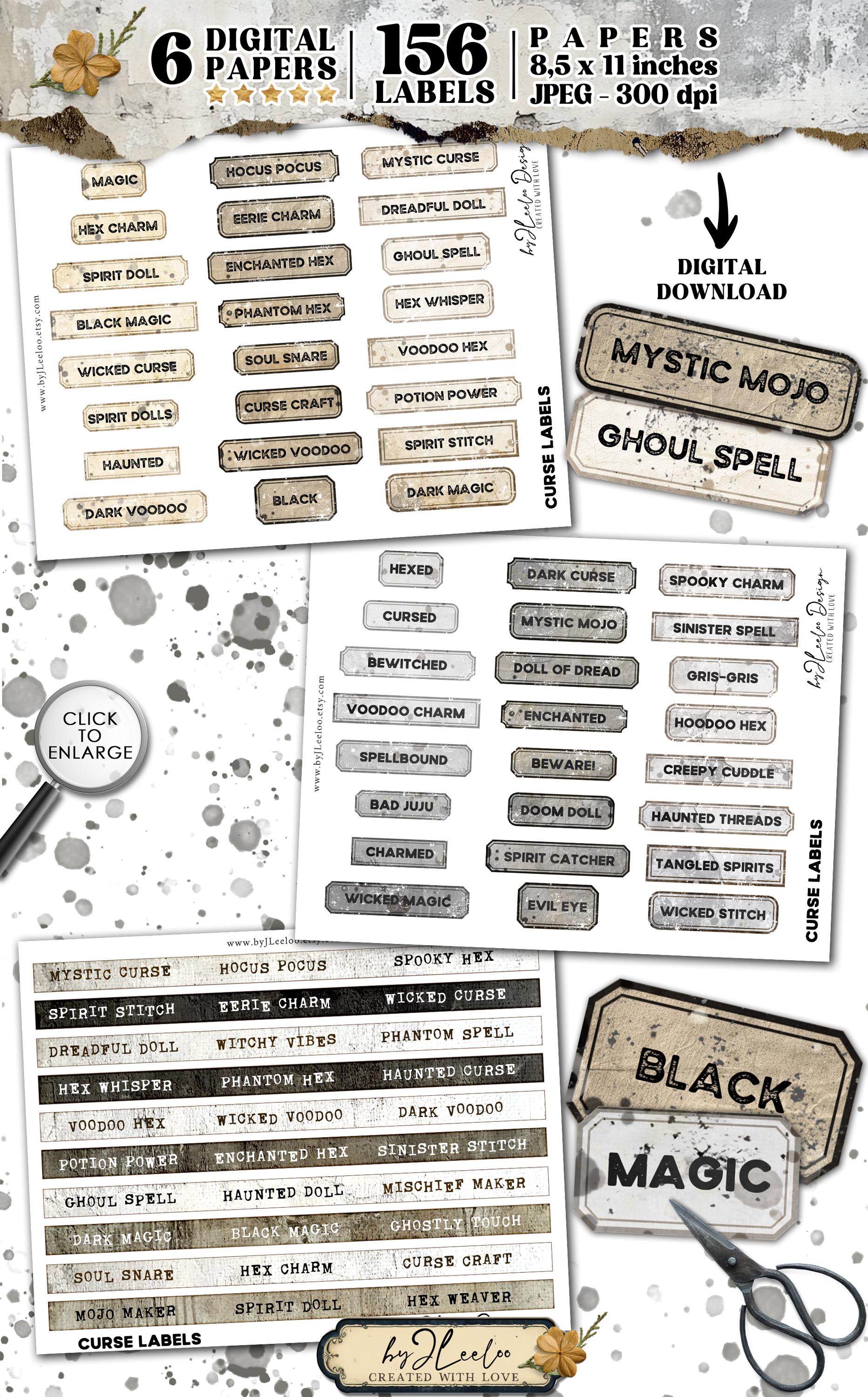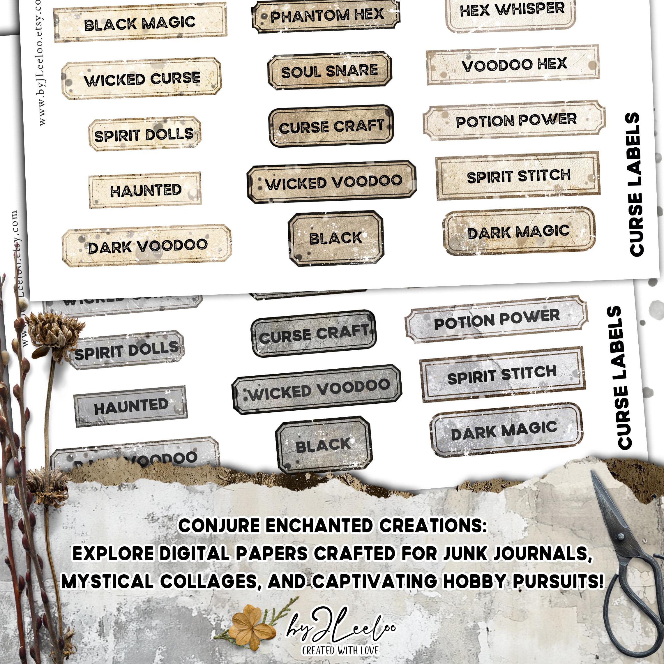 ๐ In a mystical corner of the digital world lies a collection of enchanting CURSE LABELS waiting to adorn your digital papers. With a voodoo-themed flair perfect for Halloween, these printable digital labels are more than just words labels โ they are gateways to a realm of creativity and magic. Add a touch of mystique to your scrapbooking projects with these bewitching CURSE LABELS. ๐ฏ๏ธ