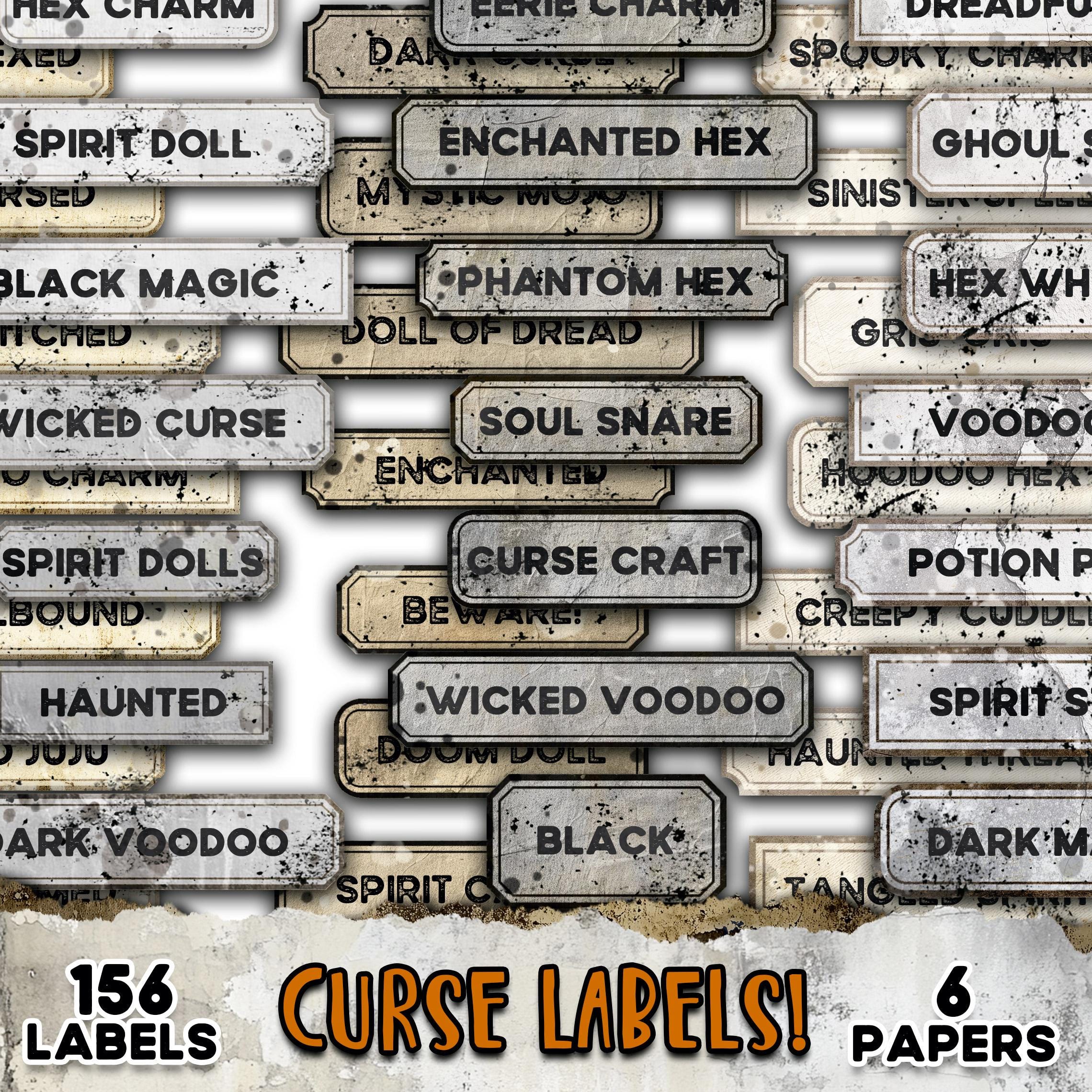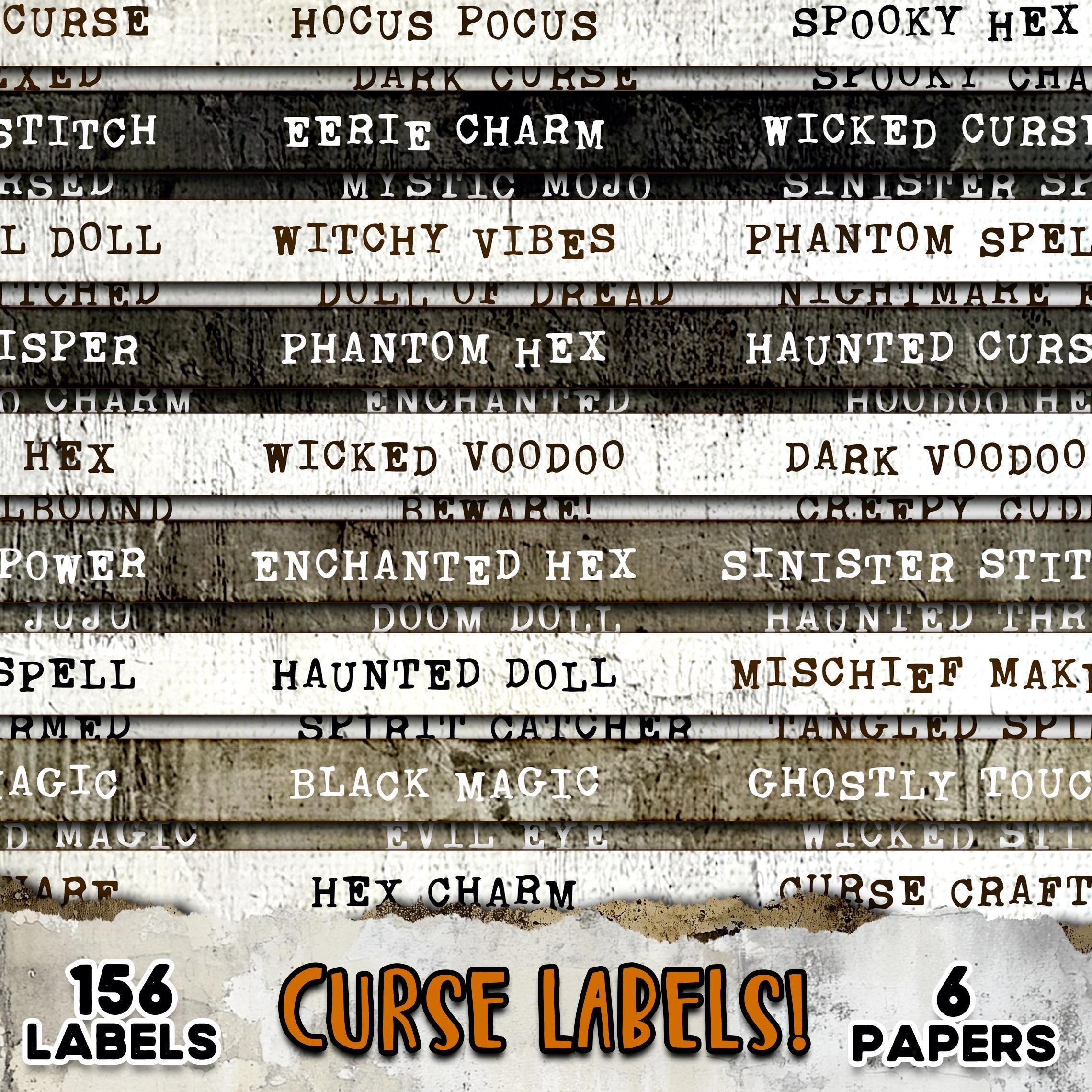 CURSE LABELS printable Scary Halloween | Word Labels Voodoo Spooky Junk journal Sticker Gothic | Digital Collection scrapbooking CU | tl299