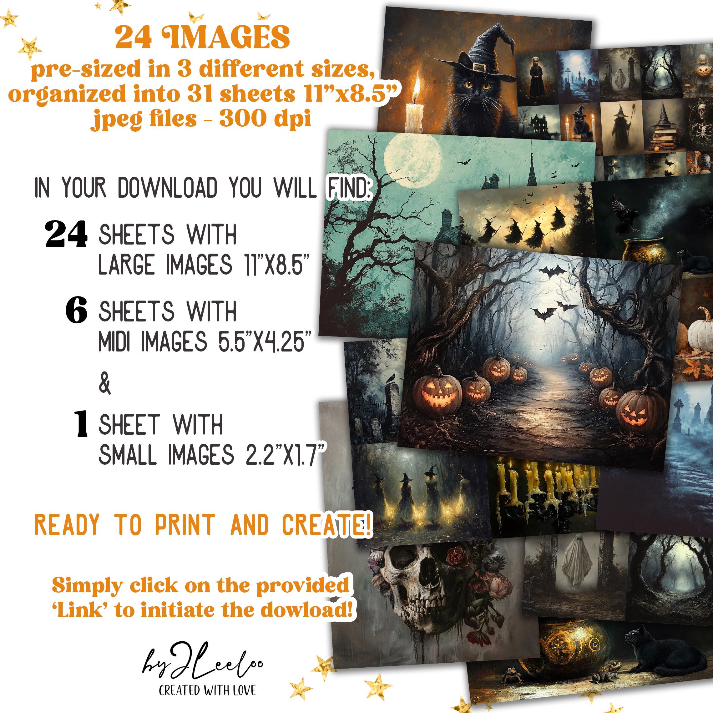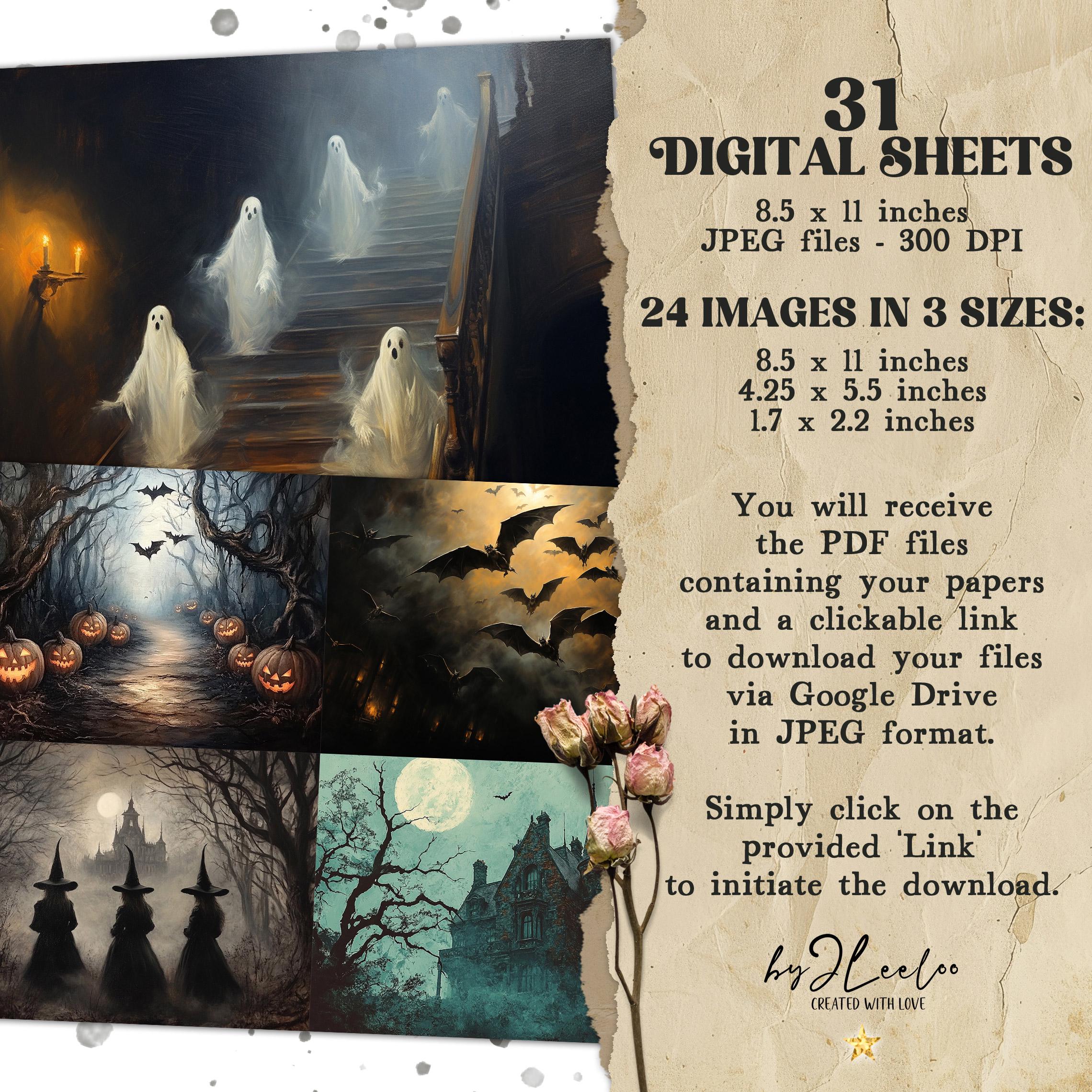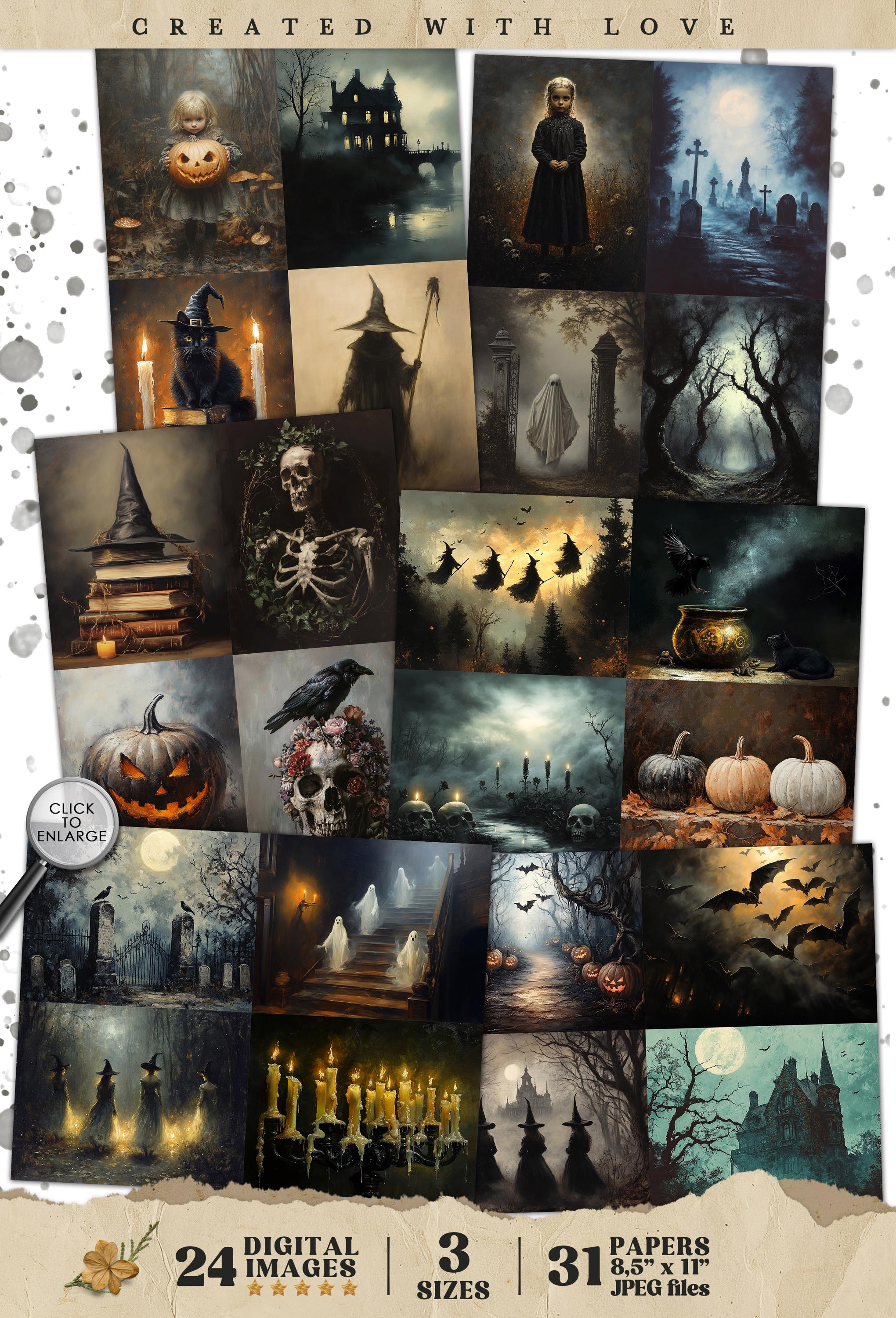 CLASSICAL HALLOWEEN 3 Sizes | Vintage background Gothic Distressed | Junk Journal Dark Background Industrial Craft Commercial Use | pp860