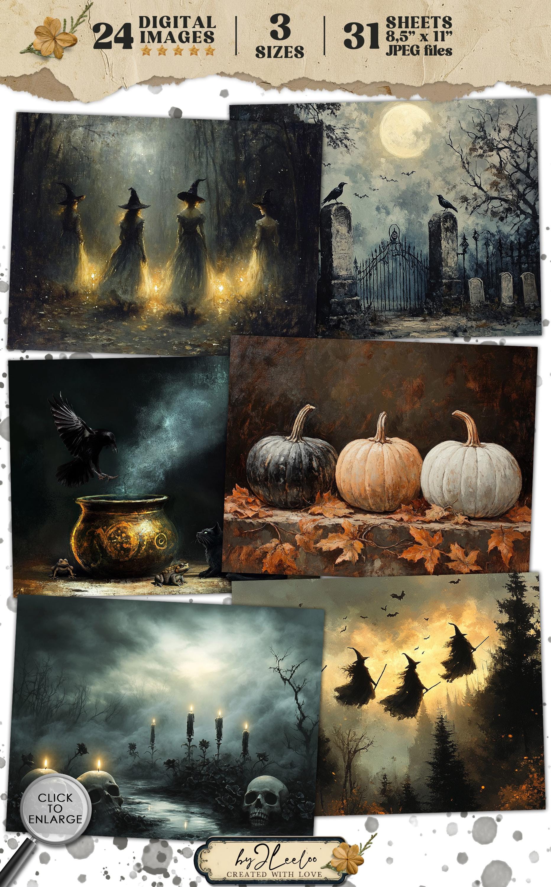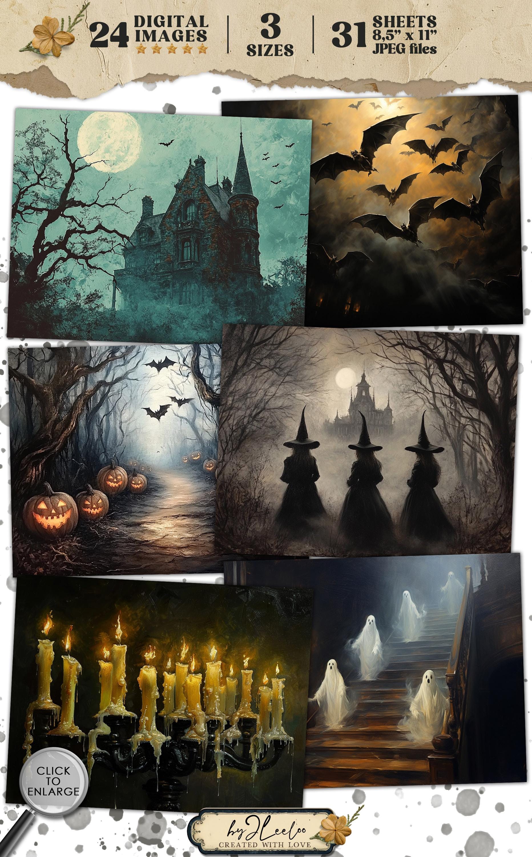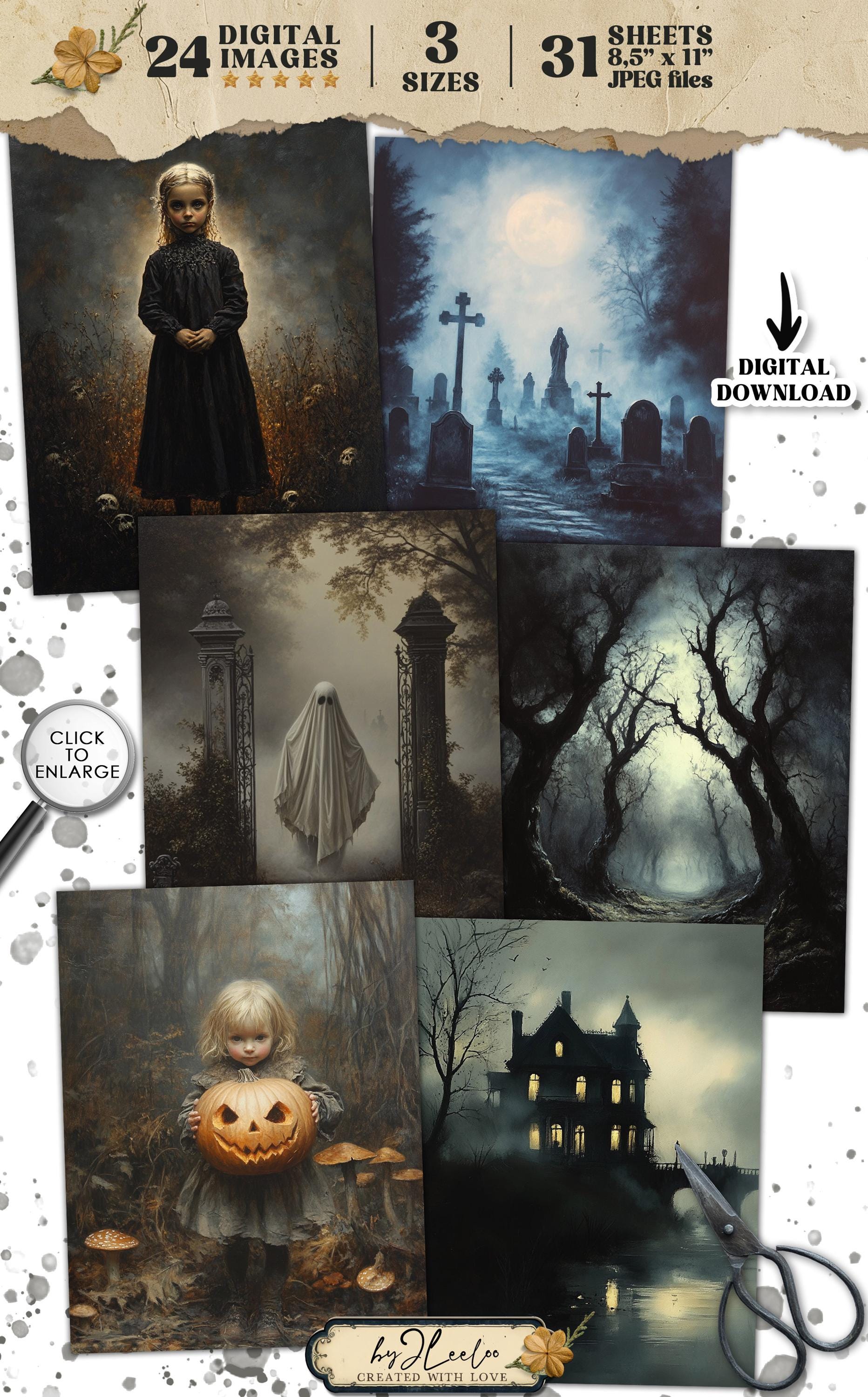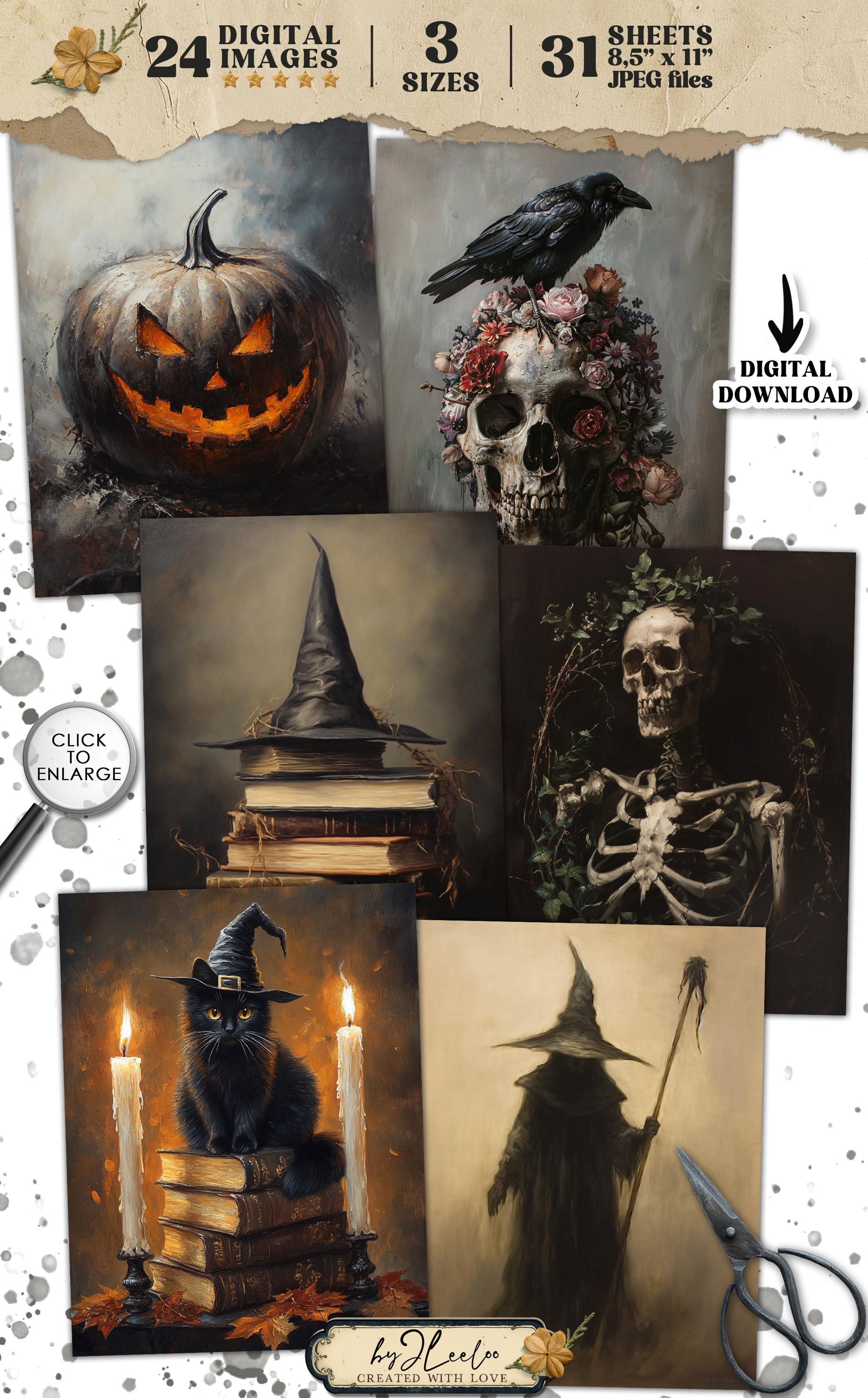 CLASSICAL HALLOWEEN 3 Sizes | Vintage background Gothic Distressed | Junk Journal Dark Background Industrial Craft Commercial Use | pp860