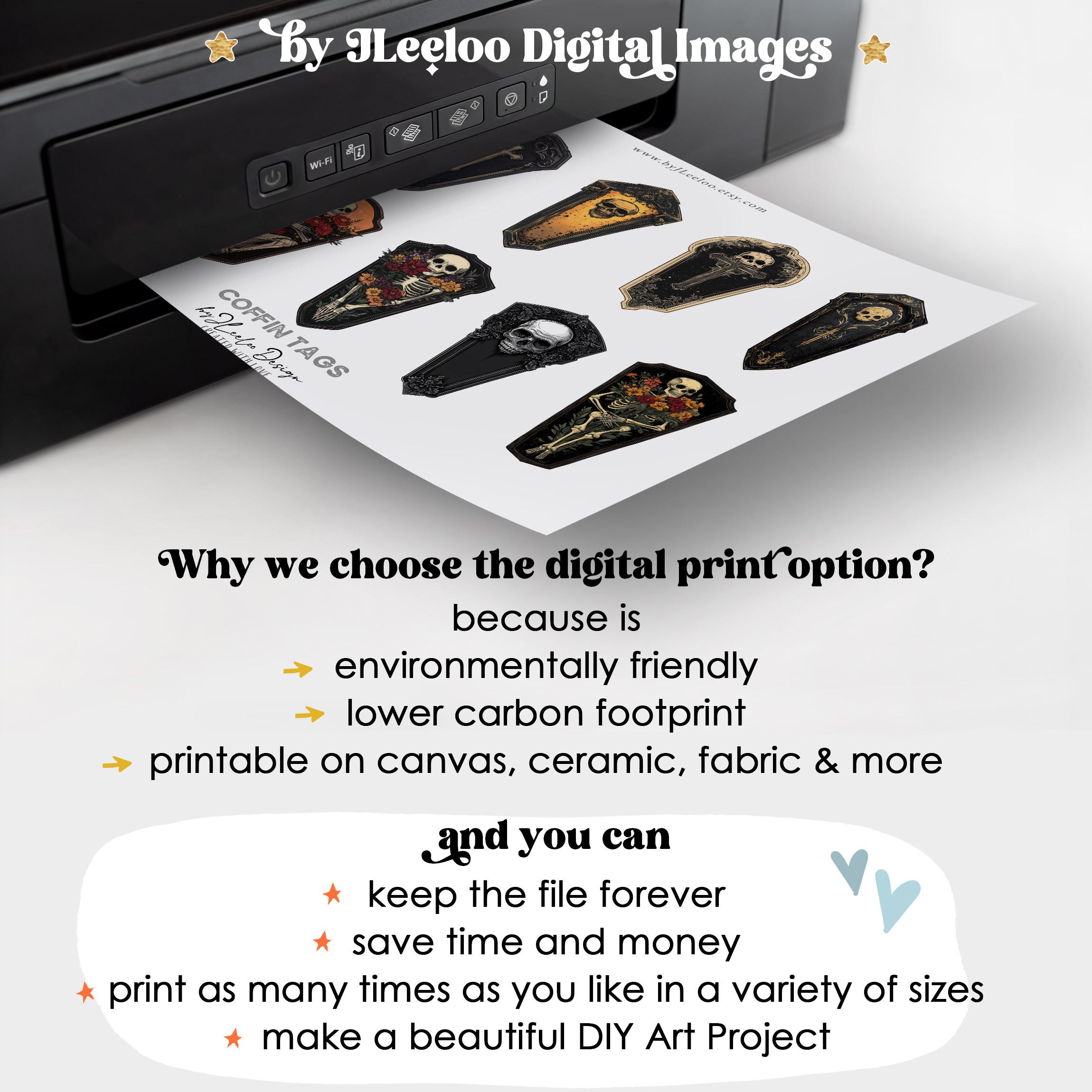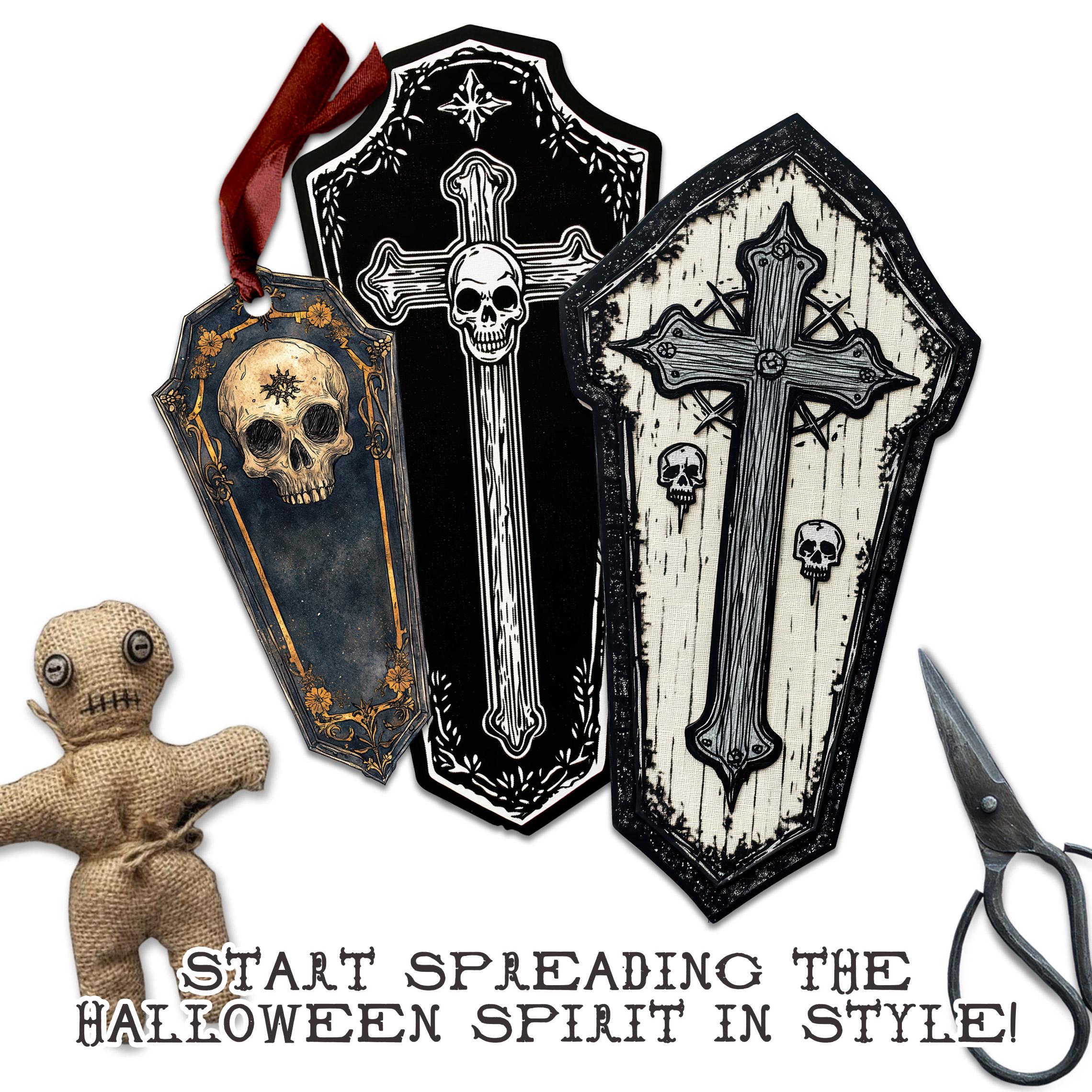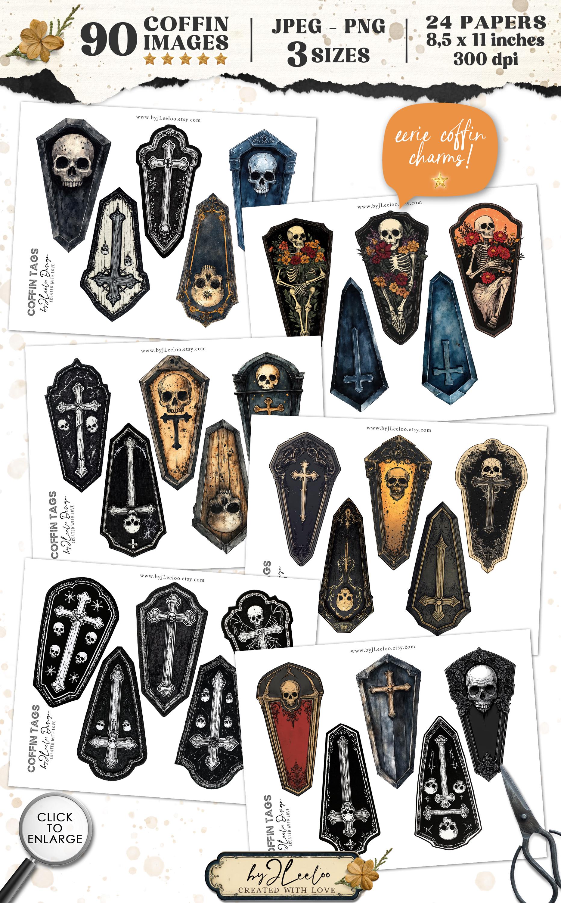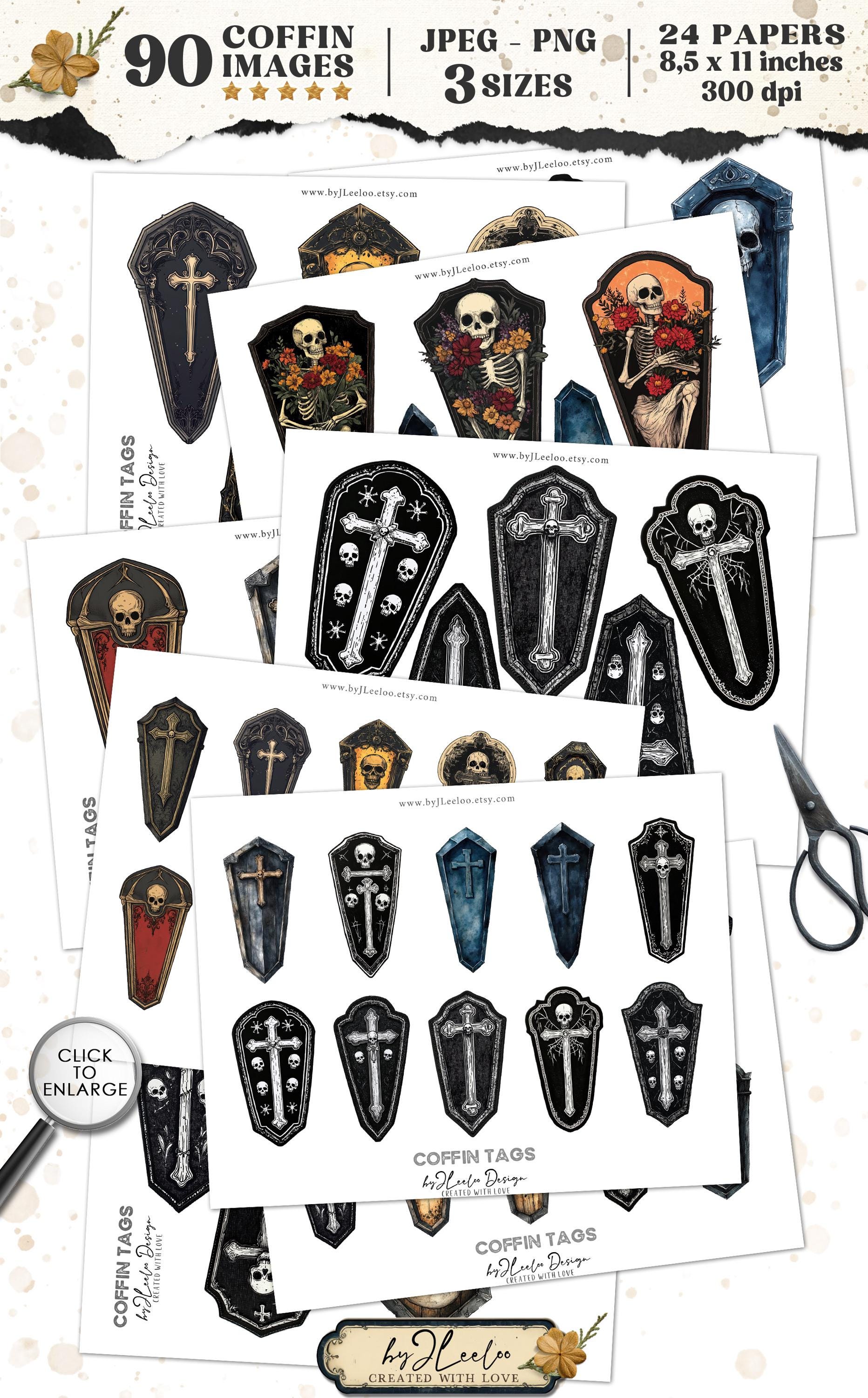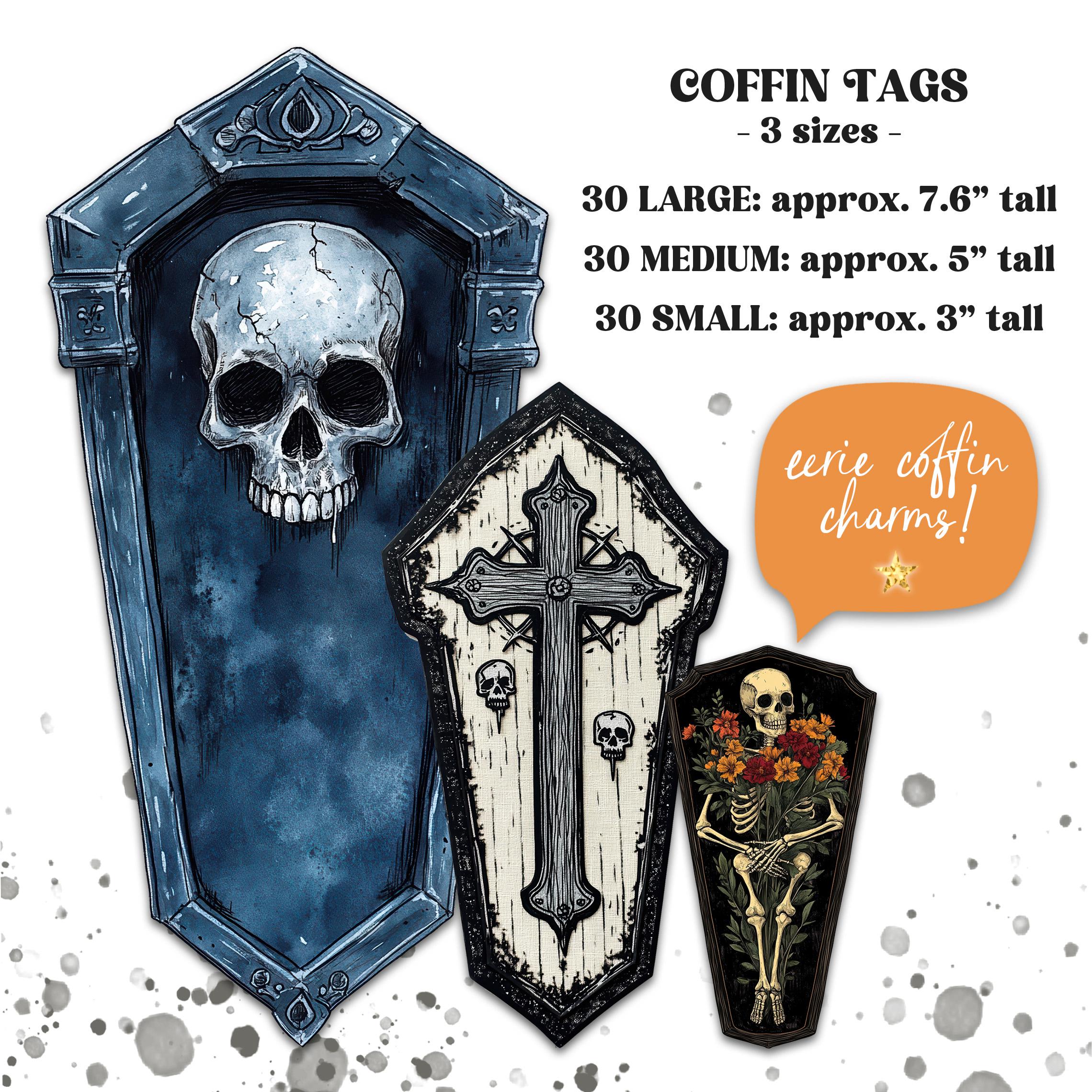 ๐ COFFIN TAGS | printable gothic designs for Halloween party | Antique Victorian Vampire Skull Scary invitation decoration journal CU | cl176 ๐