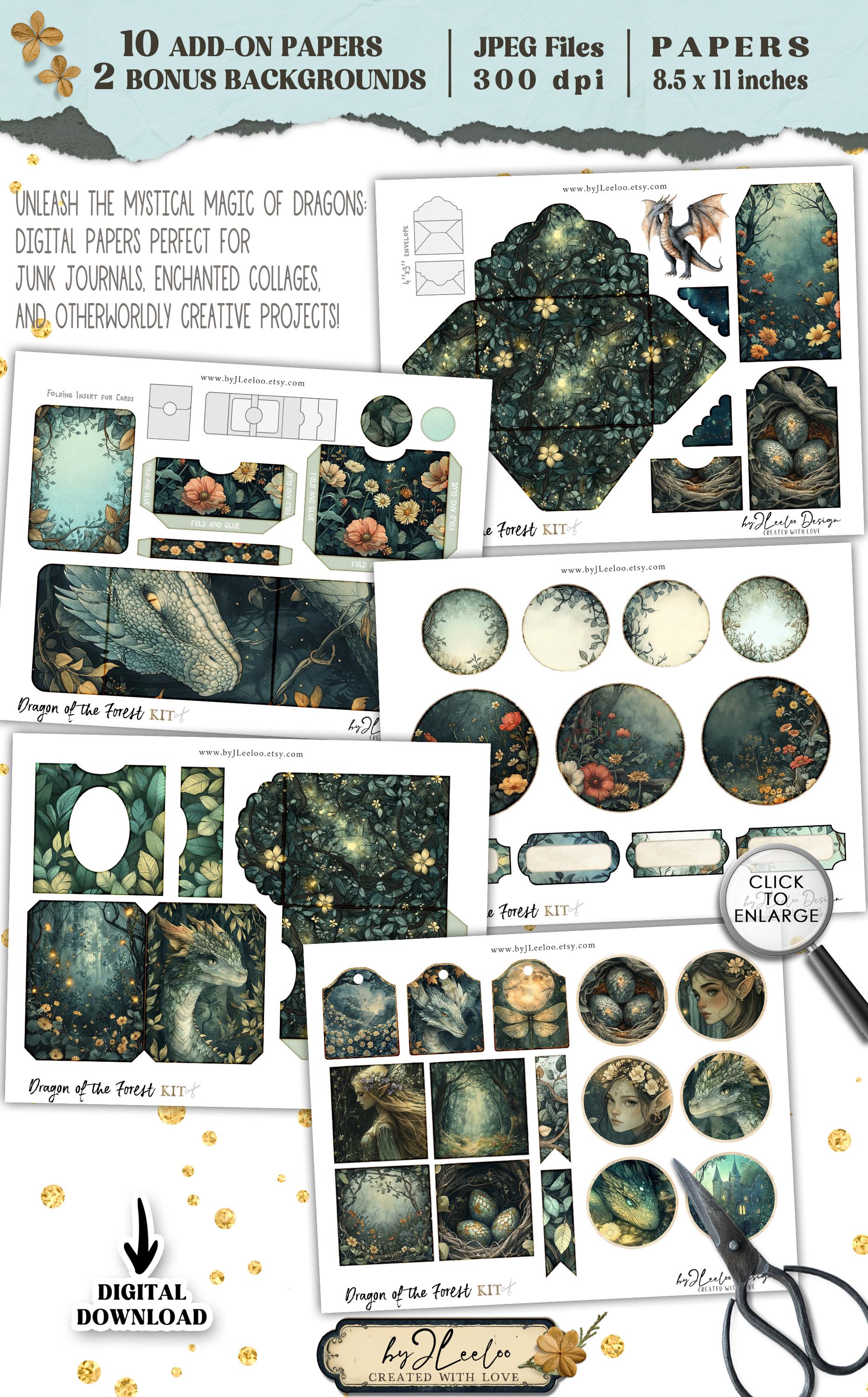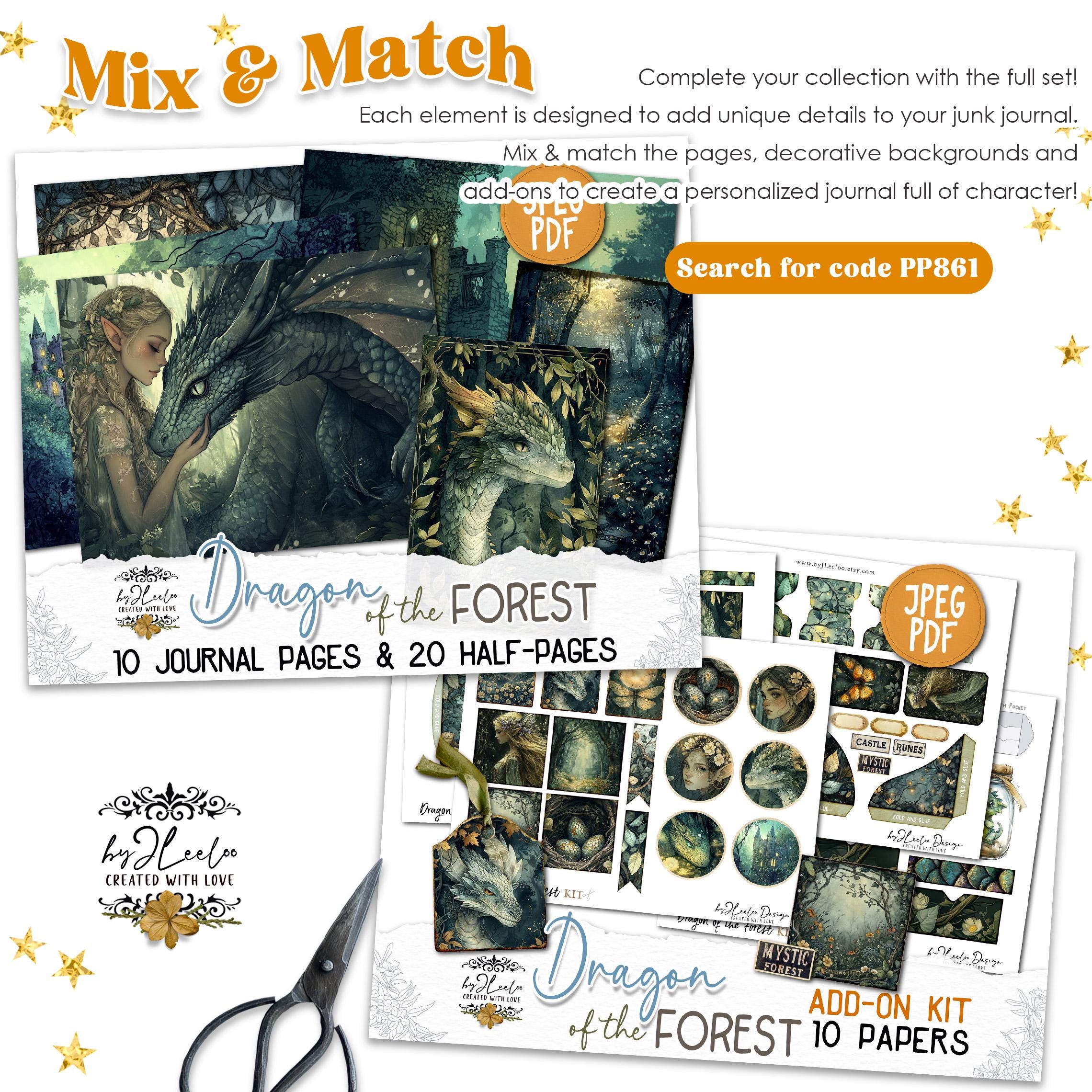 ๐ Hey everyone! Elevate your journal with our enchanting ADD-ON collection inspired by the mystical Dragon of the Forest! These exquisite cut-out sheets are brimming with magical embellishments, tags, labels, and pockets, perfect for adding a touch of fantasy to your junk journal. Picture your pages adorned with stunning details of graceful elves, majestic dragons, dragon eggs, and hidden castles in the forest. Let the spirit of adventure and the wonder of the forest spark your creativity as you personalize your journal with these magical additions. Happy crafting! ๐๐ฟ