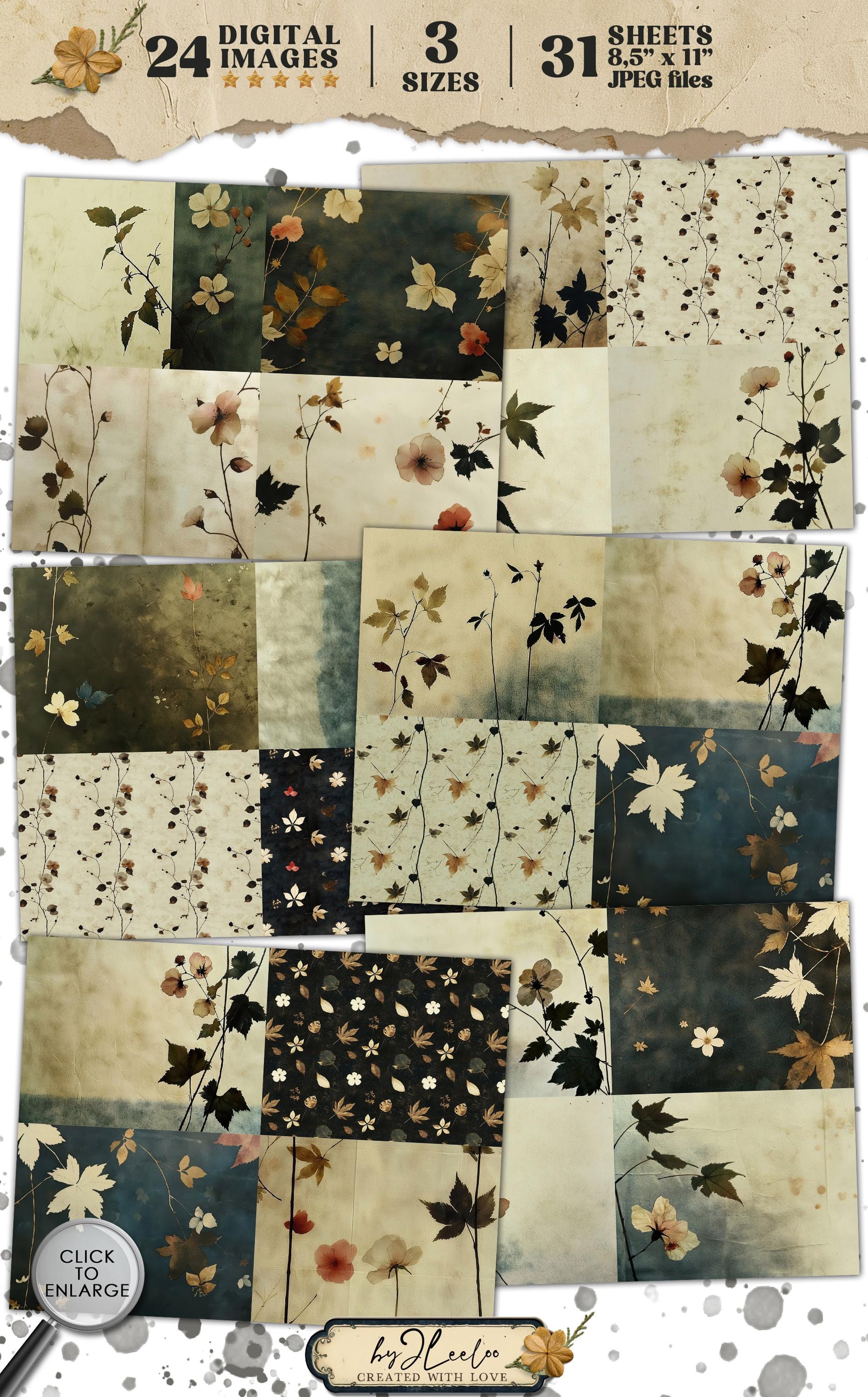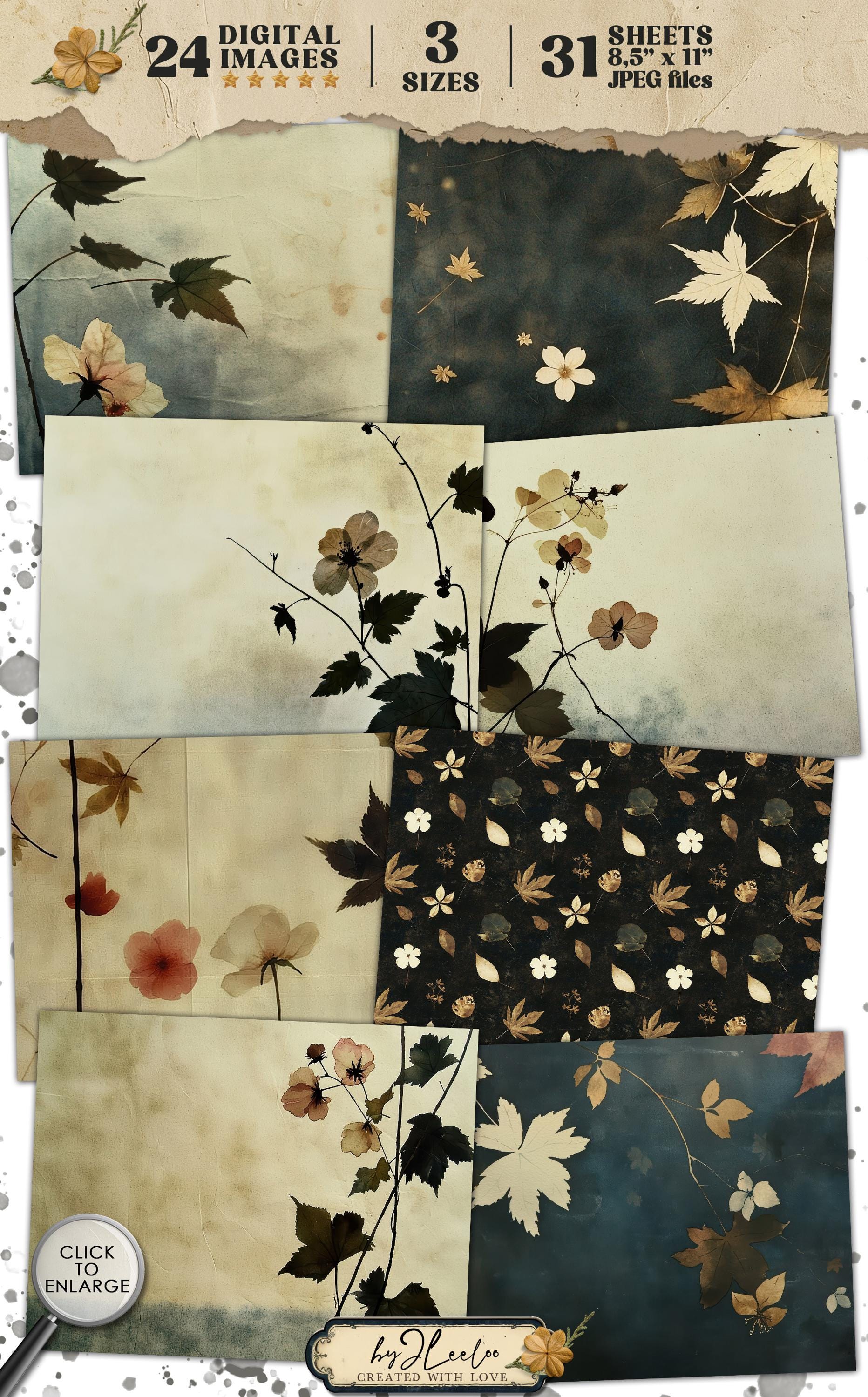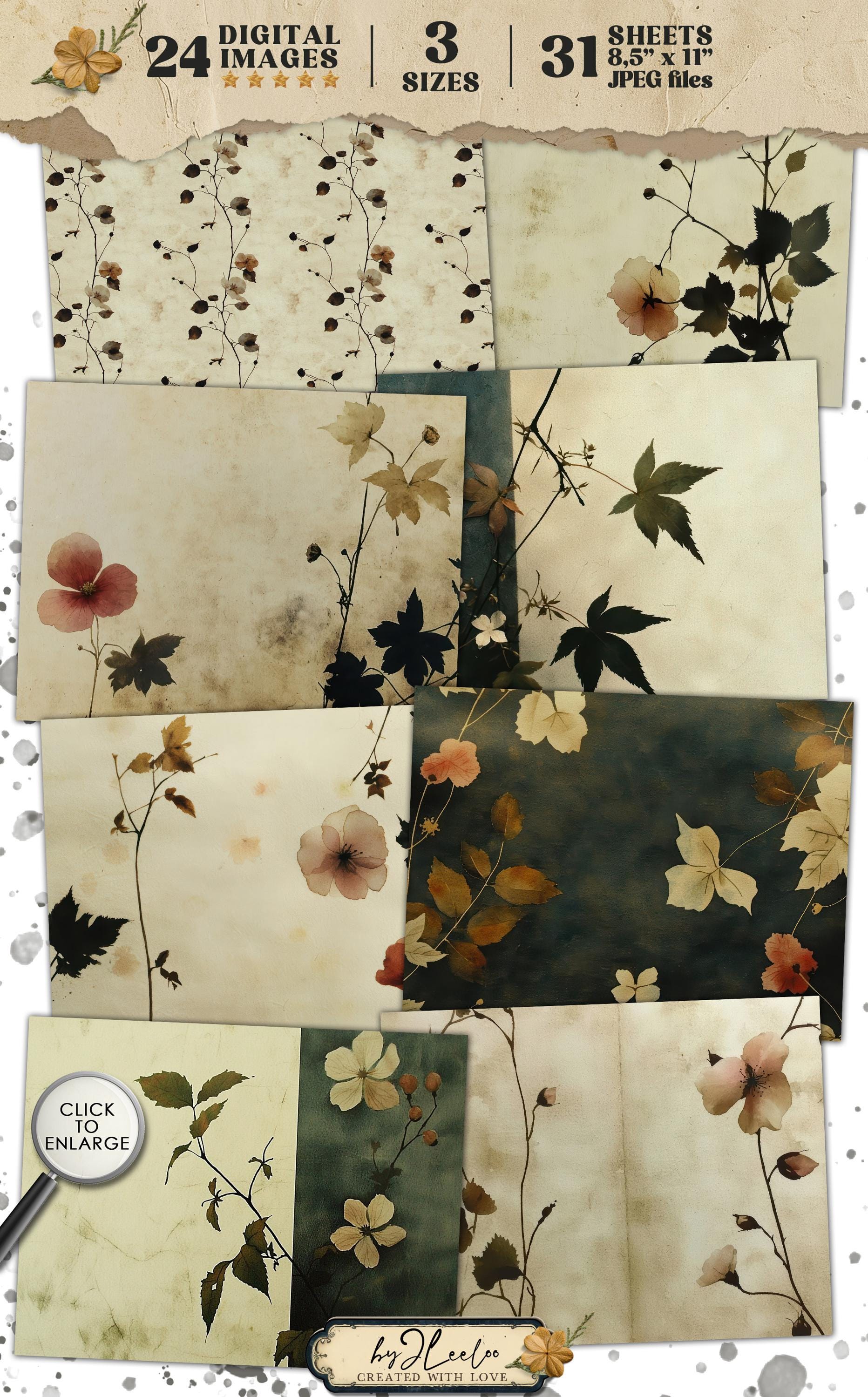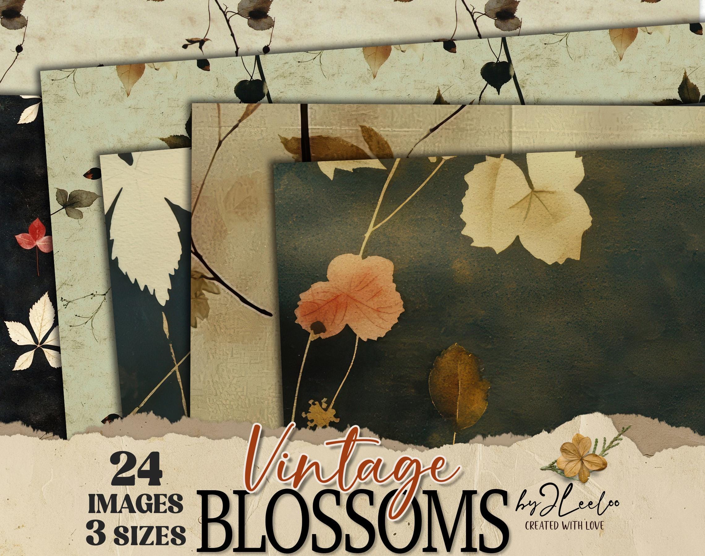 VINTAGE BLOSSOMS 24 papers 3 Size | Pressed flower backdrop | Botanical Garden Background Junk Journal | Muted paper scrapbooking CU | pp862