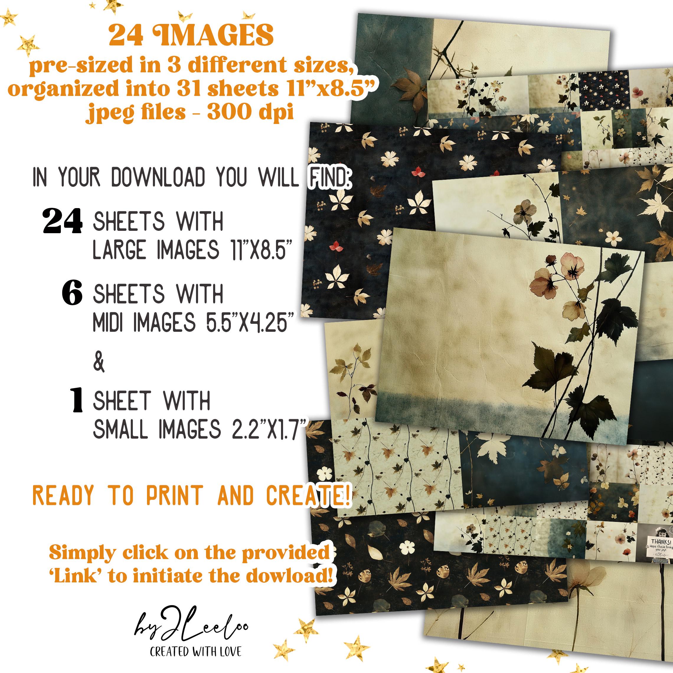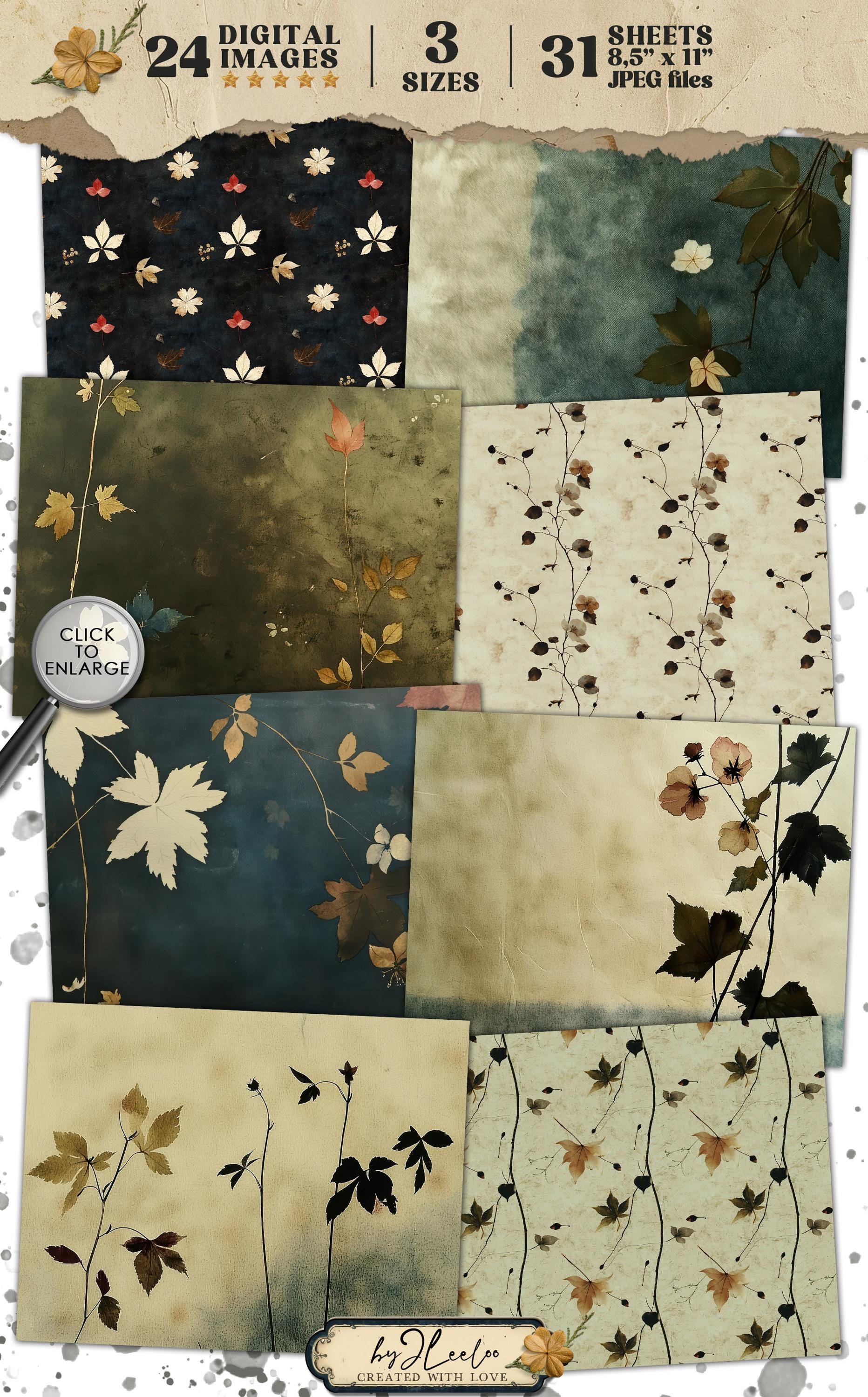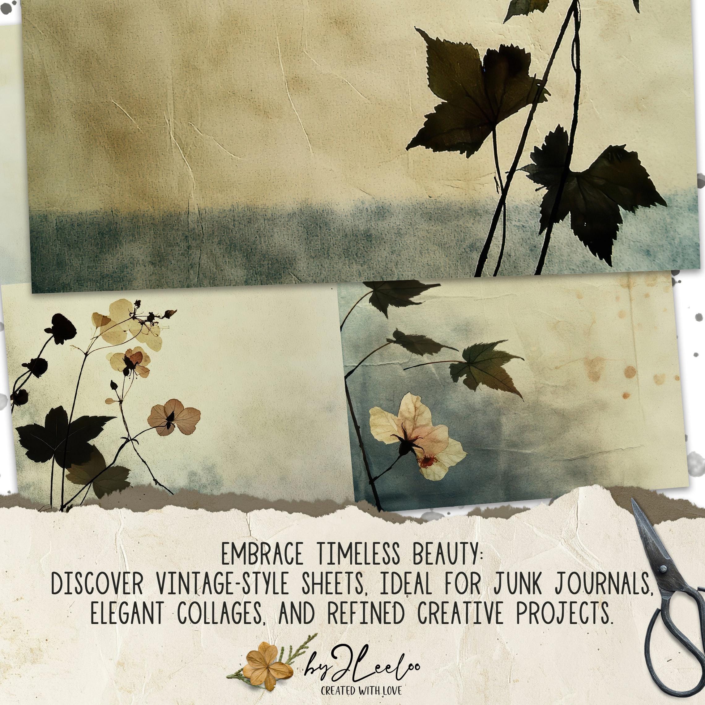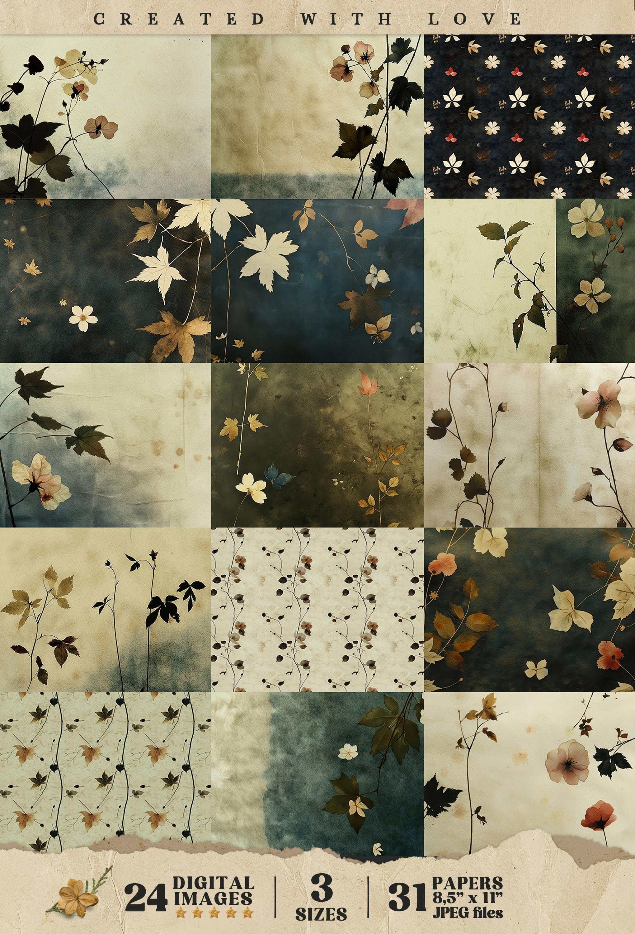 VINTAGE BLOSSOMS 24 papers 3 Size | Pressed flower backdrop | Botanical Garden Background Junk Journal | Muted paper scrapbooking CU | pp862