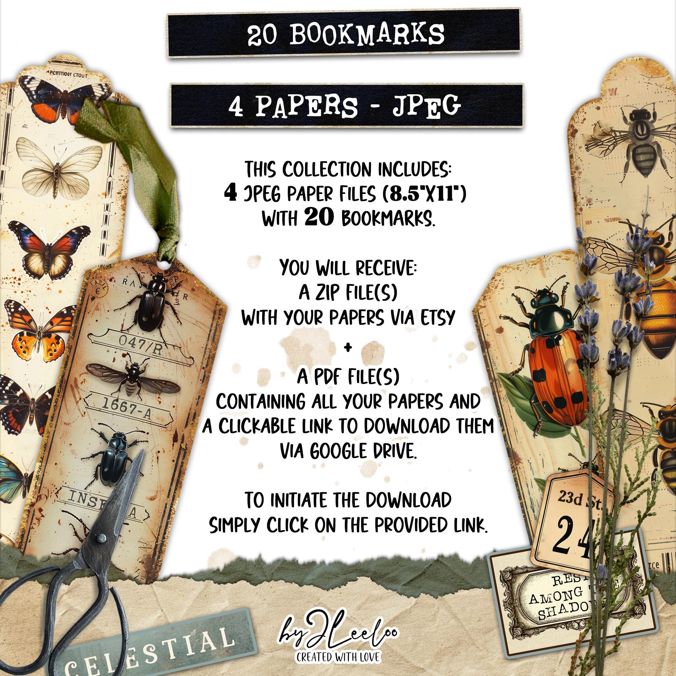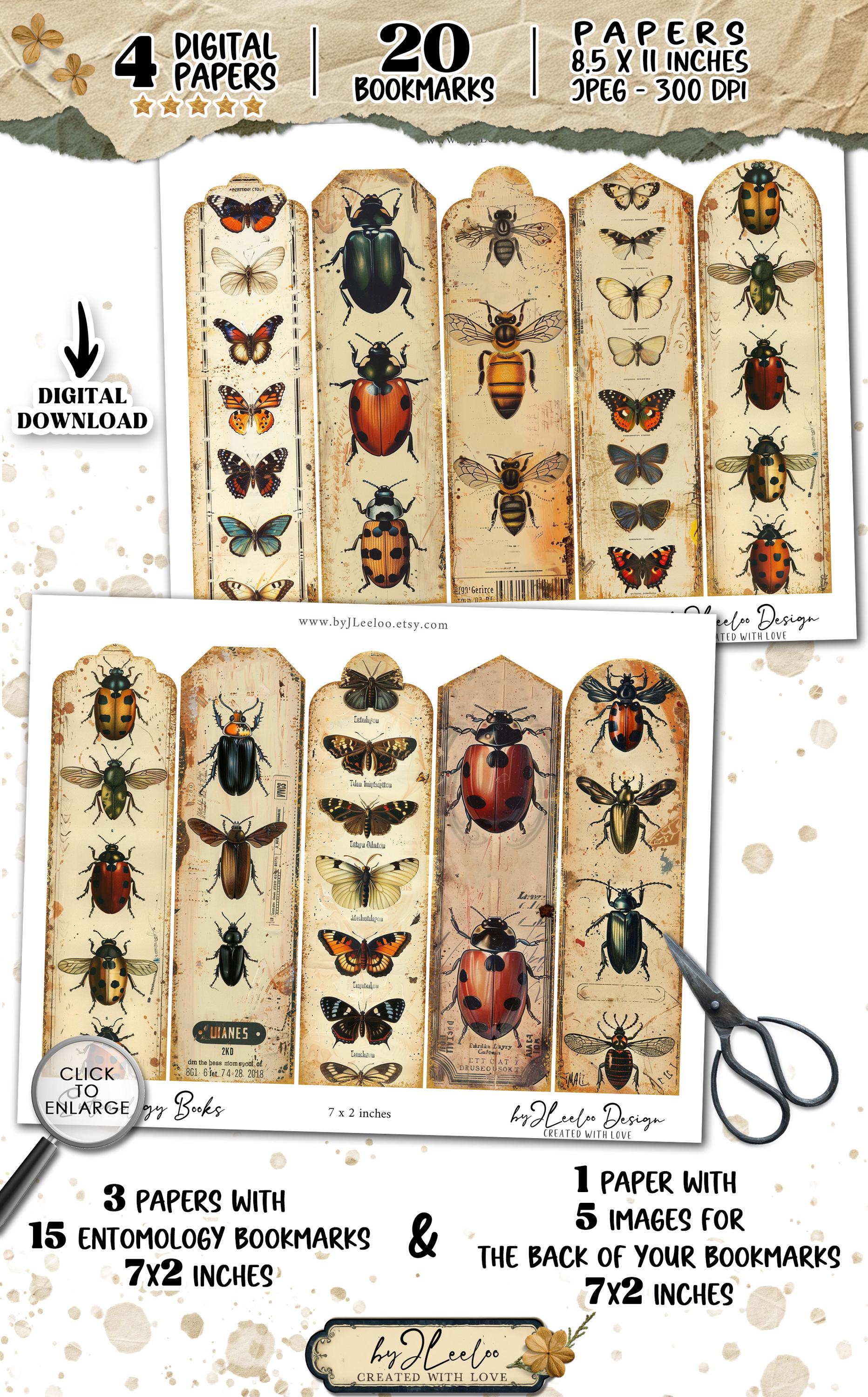 ๐ Hey garden enthusiasts and entomology lovers, check out our unique digital bookmarks! These vintage-inspired bookmarks feature stunning insecta specimens like butterflies, beetles, ladybugs, and dragonflies. Measuring 7x2 inches, they are both stylish and practical for all your reading needs. Add a touch of nature to your reading collection with these charming digital bookmarks. ๐