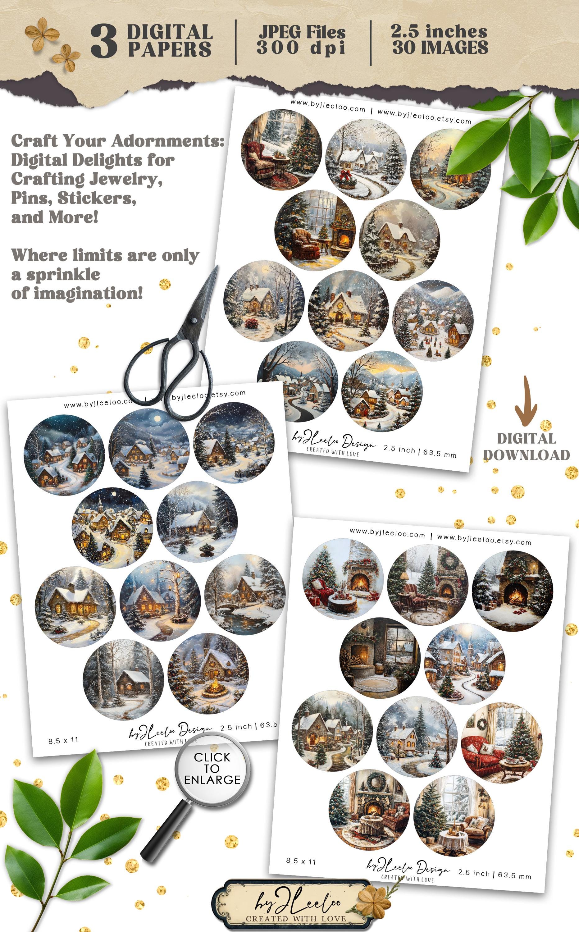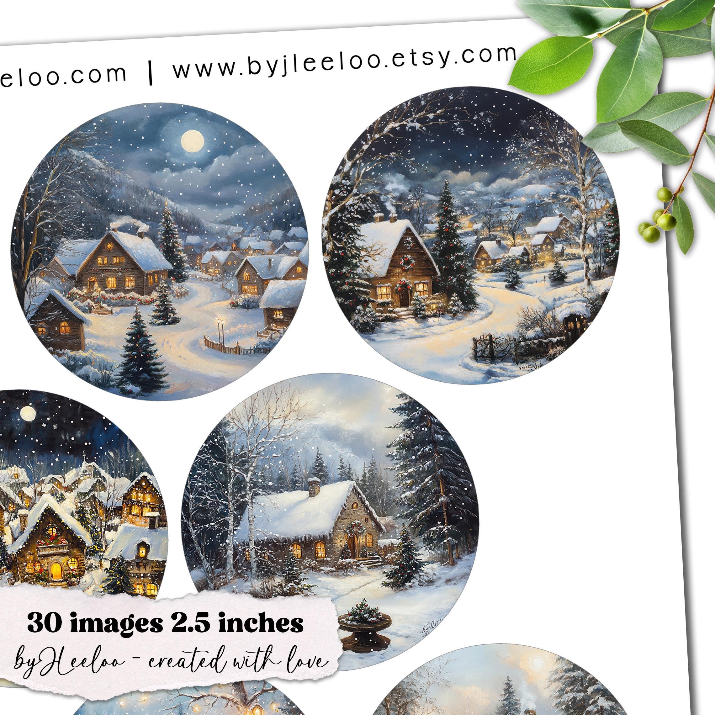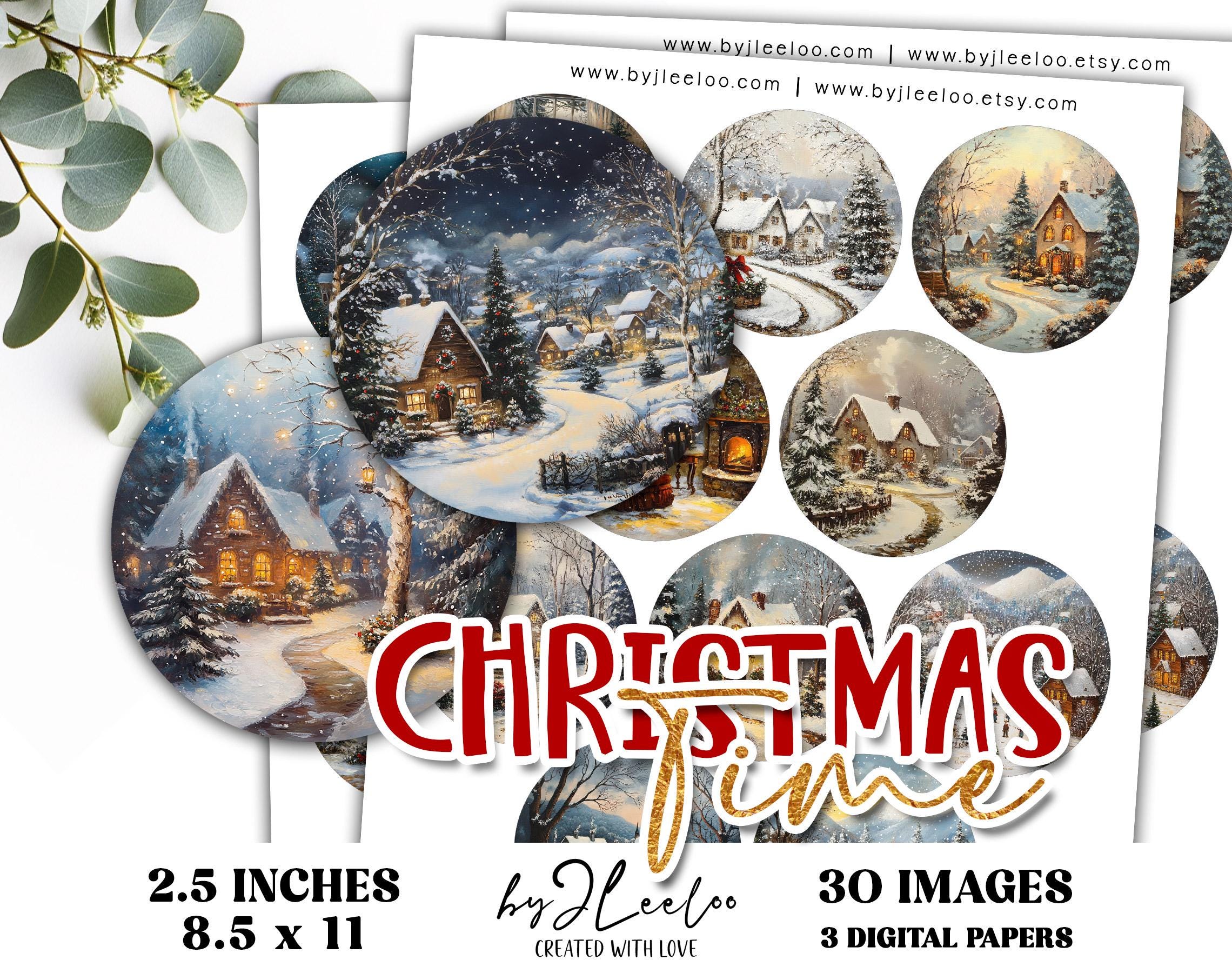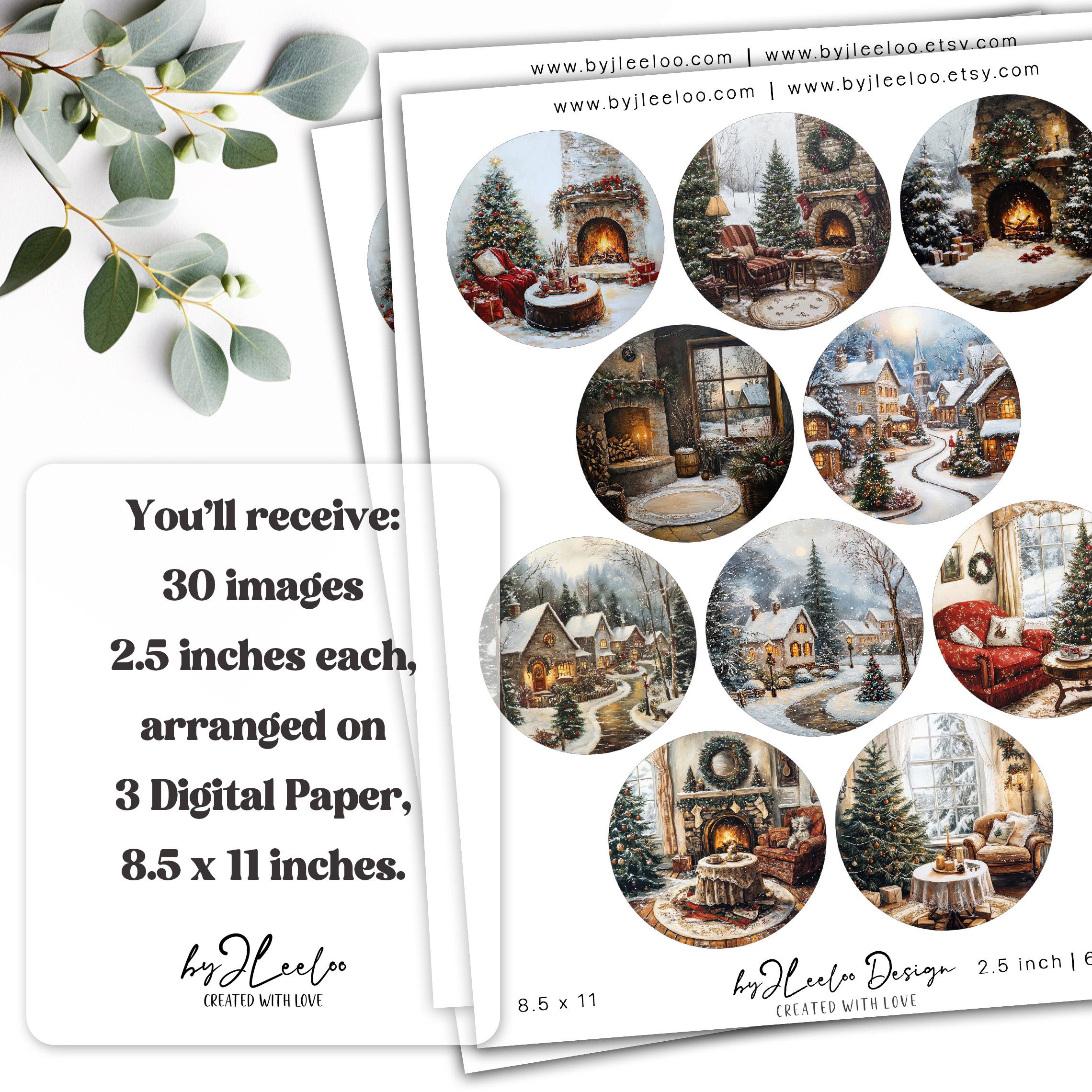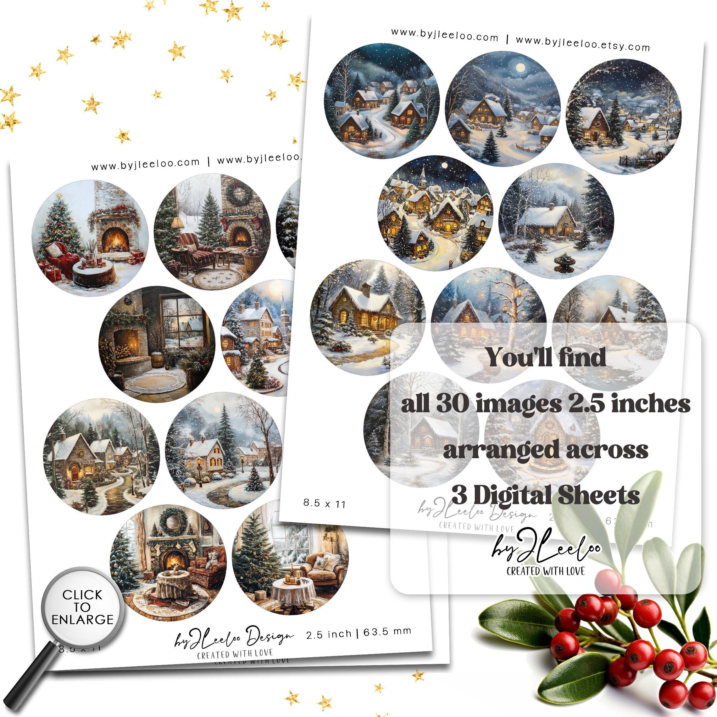 CHRISTMAS TIME 2.5 inch circle | holidays drawing craft supplies | mirrors cupcake topper scrapbook magnets | Junk journal ephemera | tn827