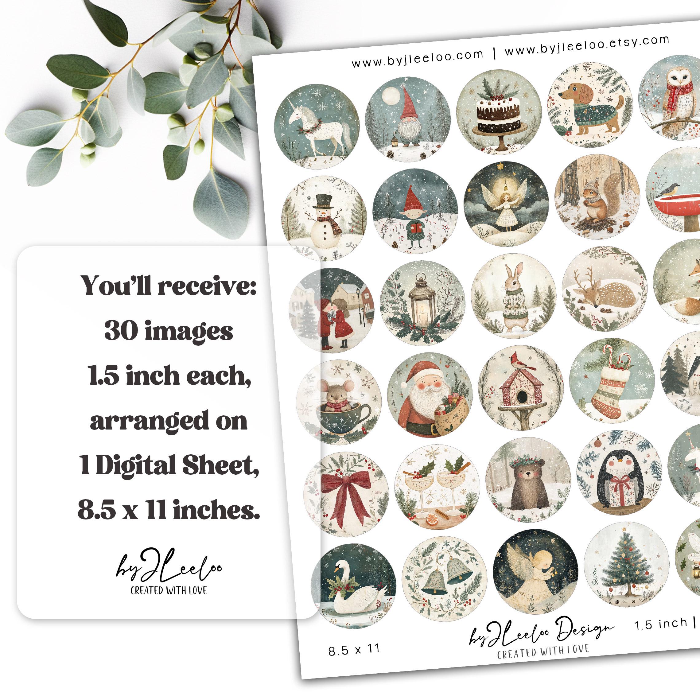 ❄️Step into a charming winter wonderland with our Rustic Christmas printable illustrations. Designed with a romantic and folk-inspired touch, these 30 round illustrations feature muted tones and hints of red, evoking a cozy holiday vibe. Whether crafting greeting cards or decorating gifts, these 1.5" prints across 1 digital sheet will add a rustic allure to your festive creations. Transport yourself to a rustic Christmas retreat with these charming illustrations that capture the essence of the season. 🎄