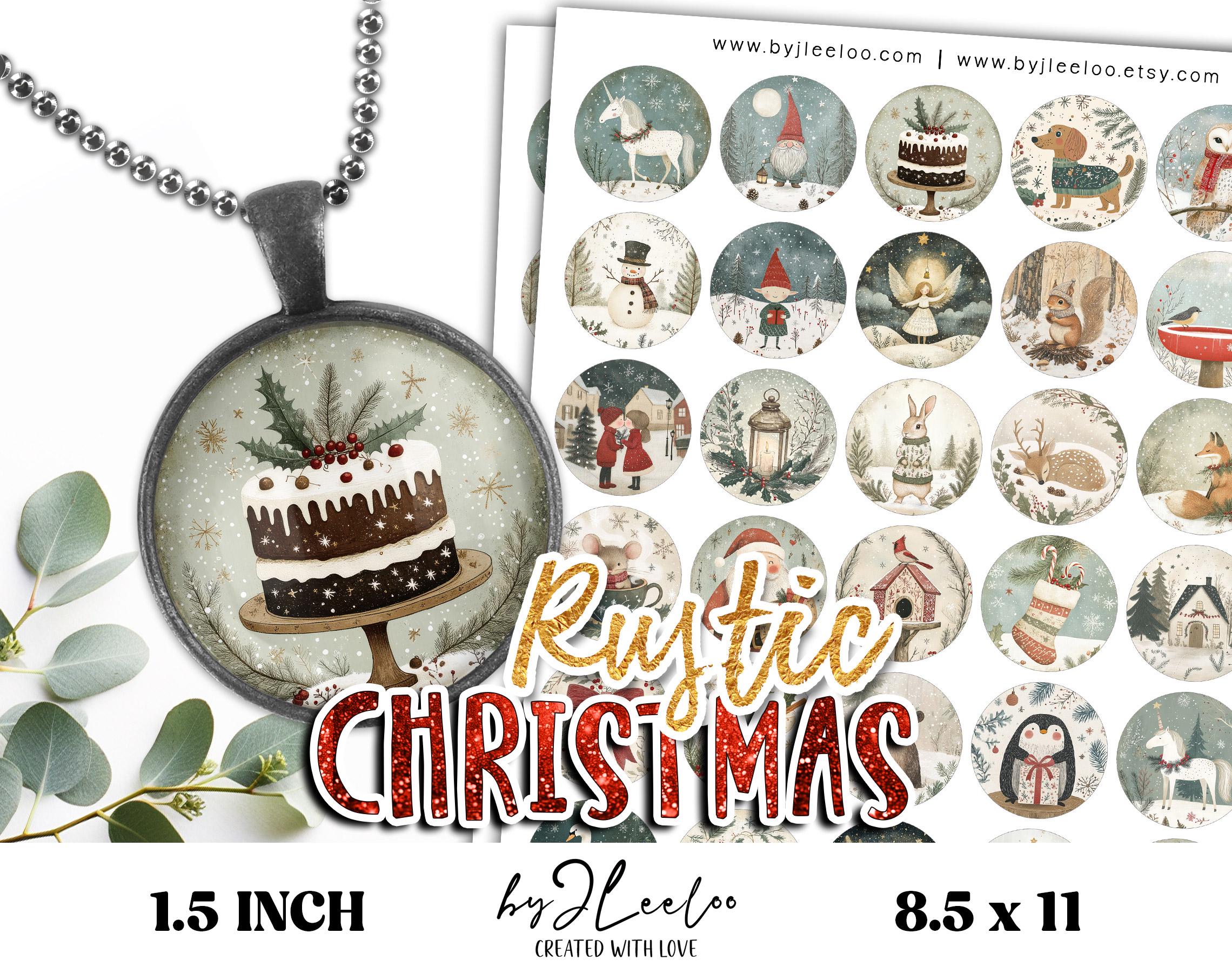RUSTIC CHRISTMAS 1.5 inch printable retro folk winter cabochon, bottle cap, gift label, sticker | Holidays DIY Decoration Ornament | tn837
