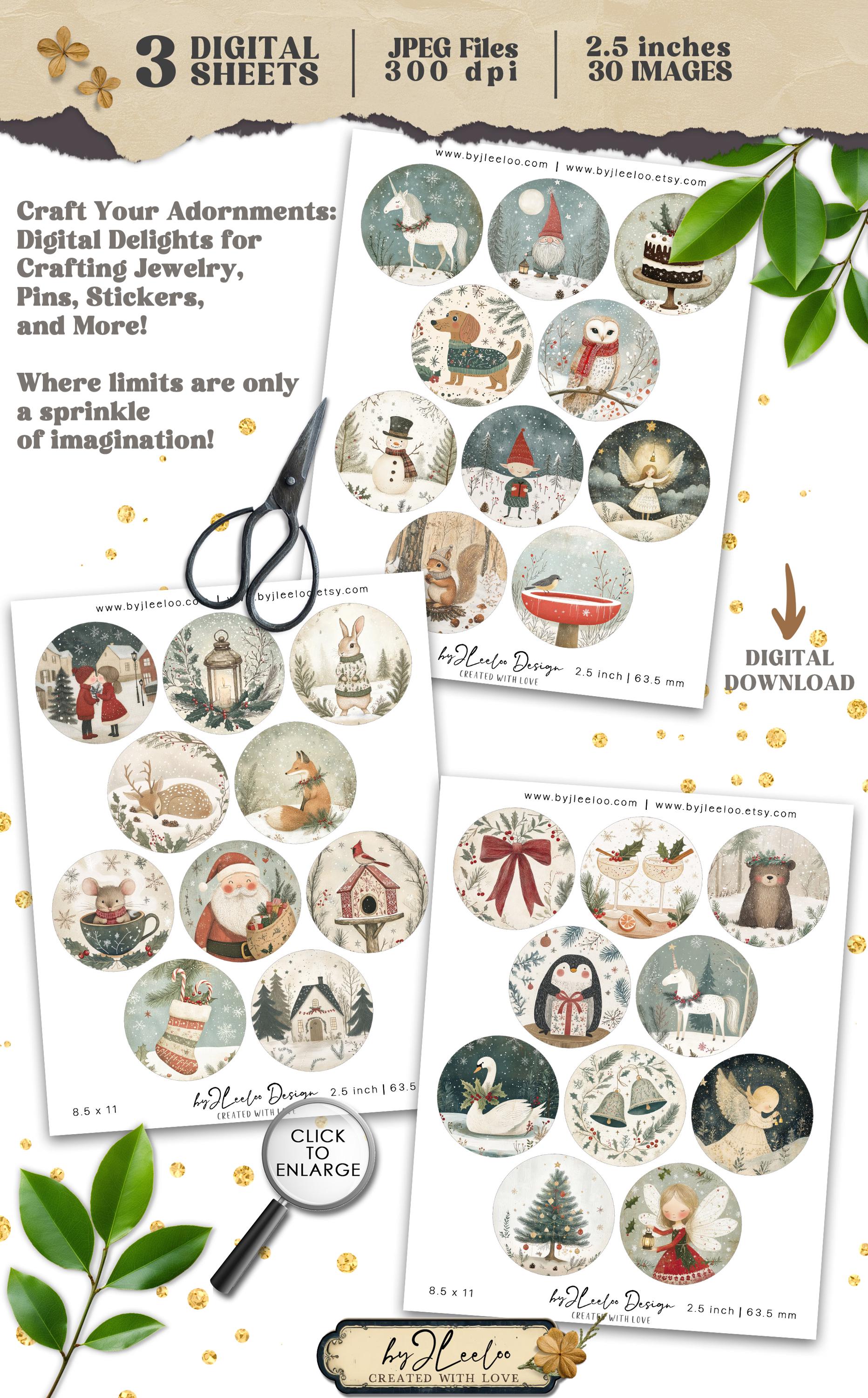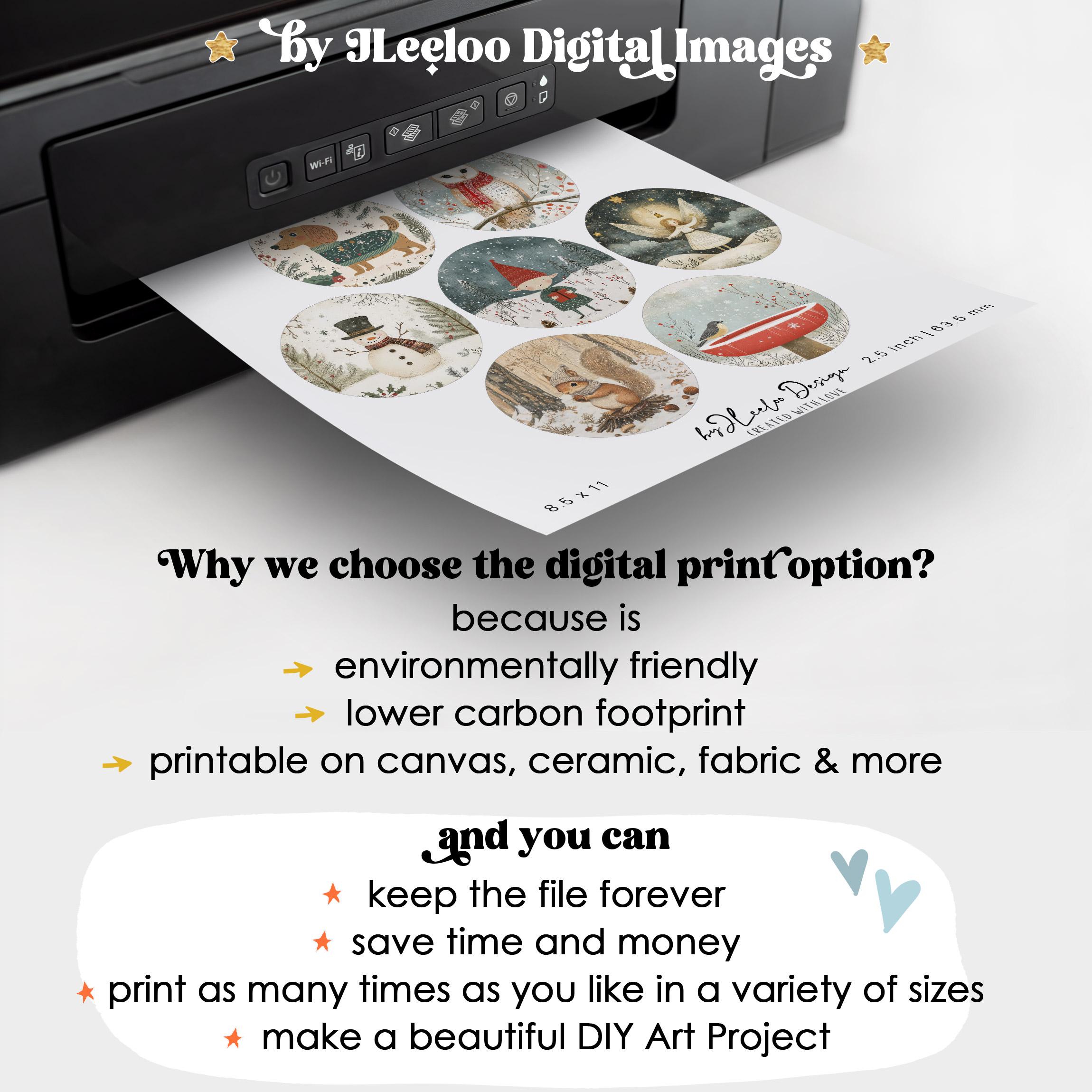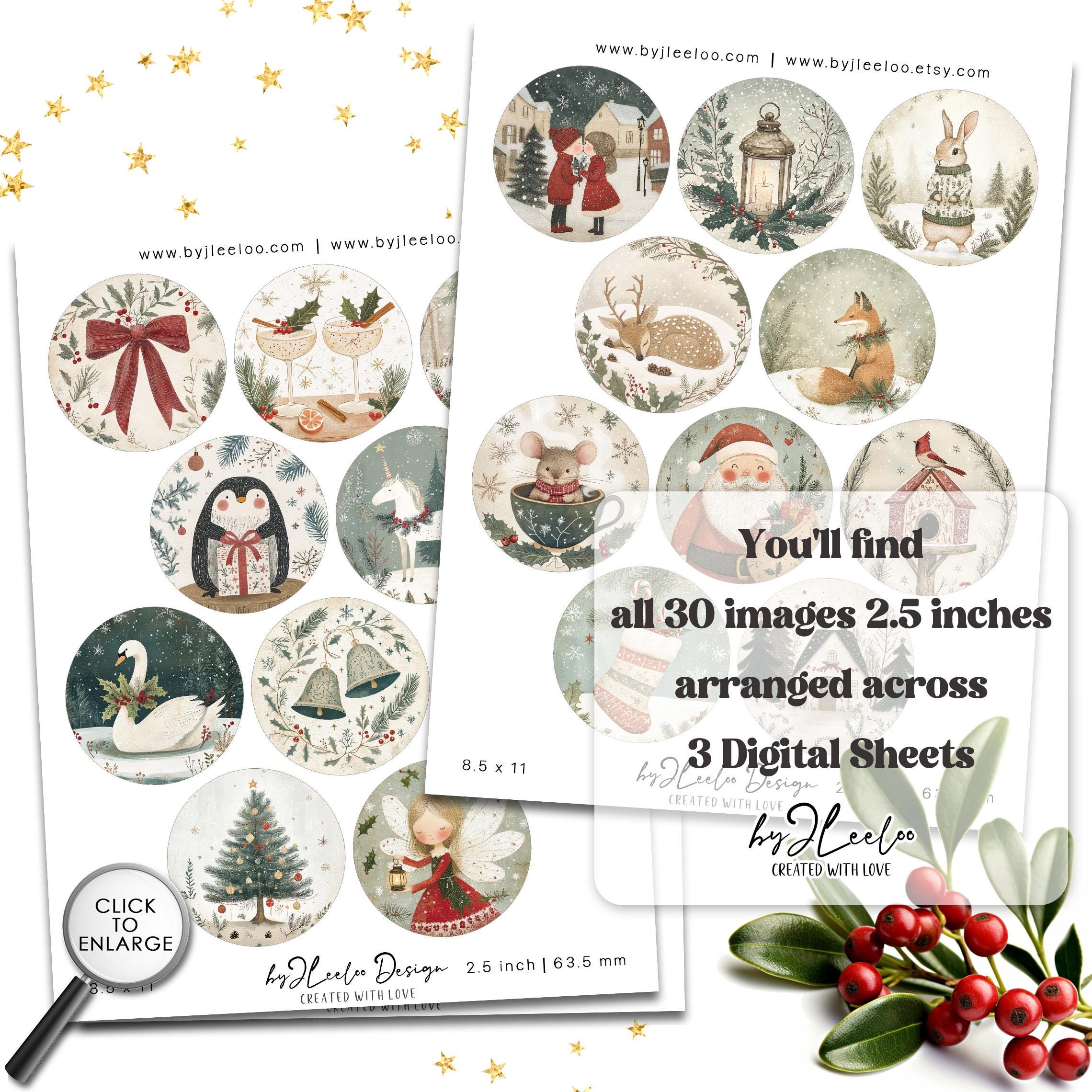 ❄️Step into a charming winter wonderland with our Rustic Christmas printable illustrations. Designed with a romantic and folk-inspired touch, these 30 round illustrations feature muted tones and hints of red, evoking a cozy holiday vibe. Whether crafting greeting cards or decorating gifts, these 2.5" prints across 3 digital sheets will add a rustic allure to your festive creations. Transport yourself to a rustic Christmas retreat with these charming illustrations that capture the essence of the season. 🎄