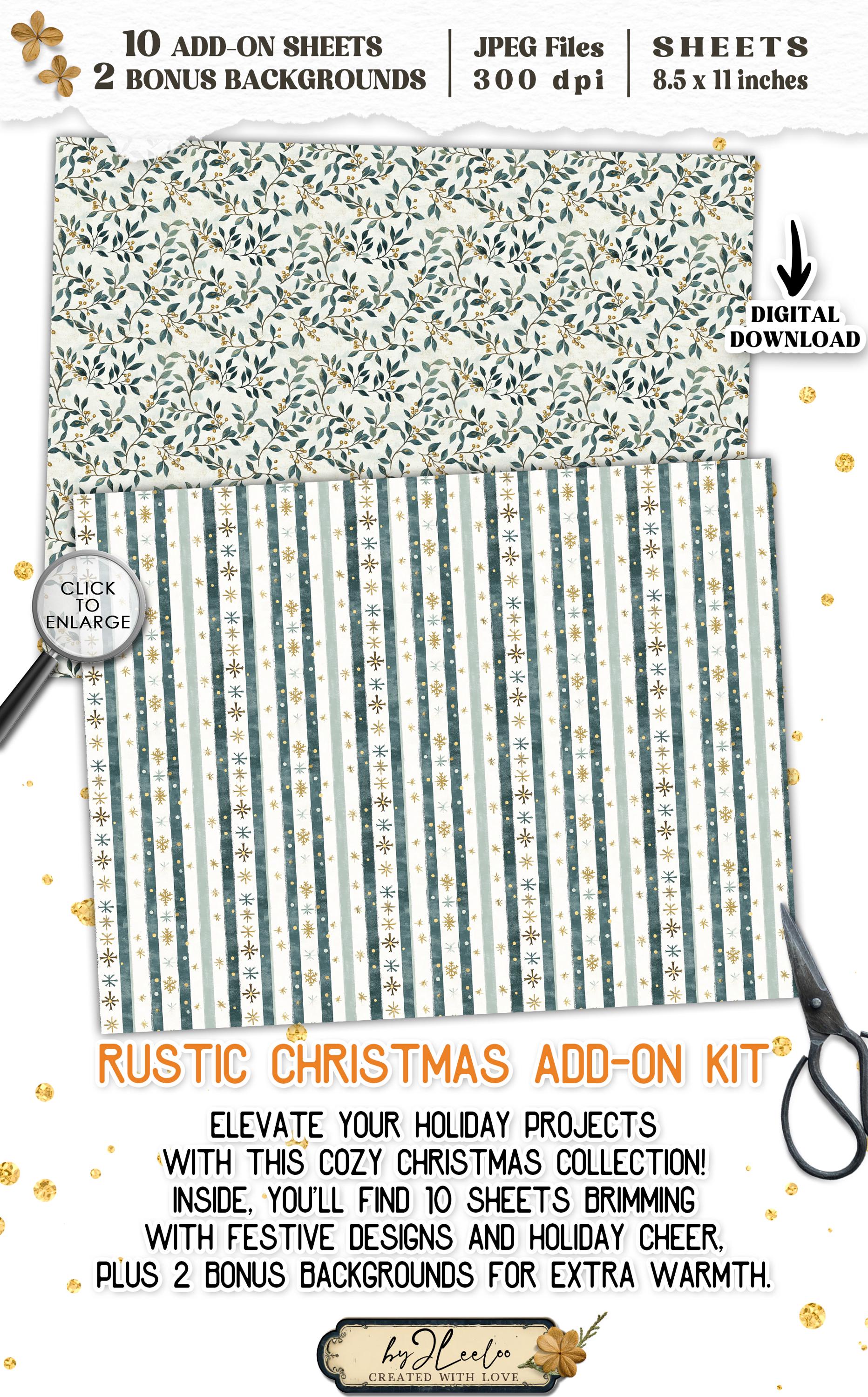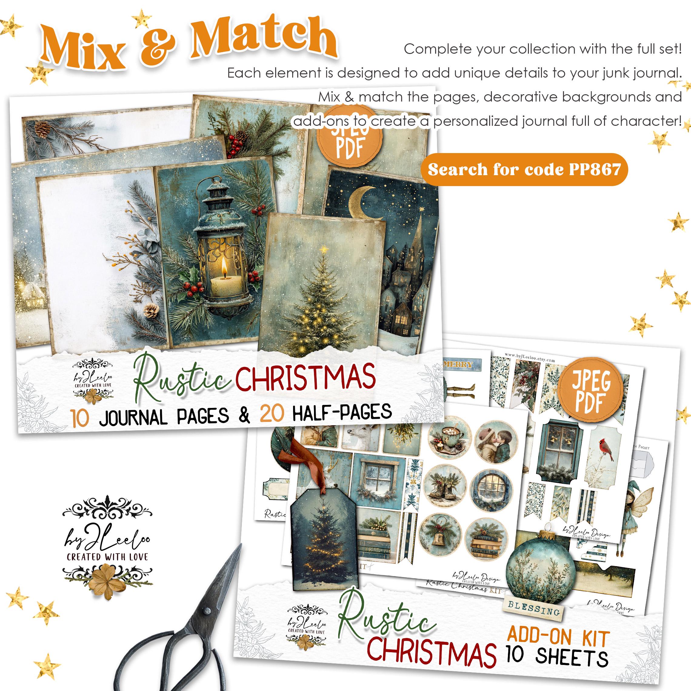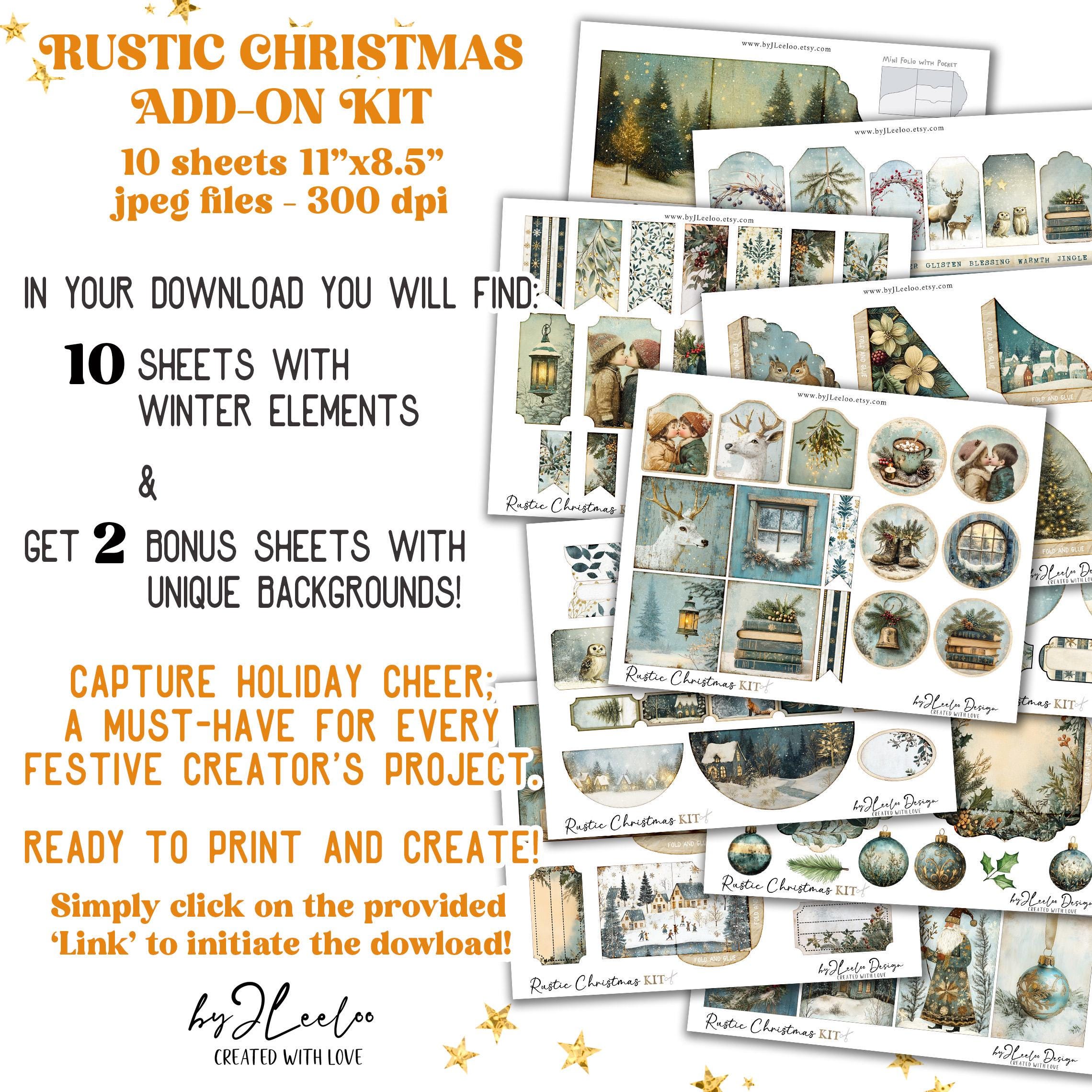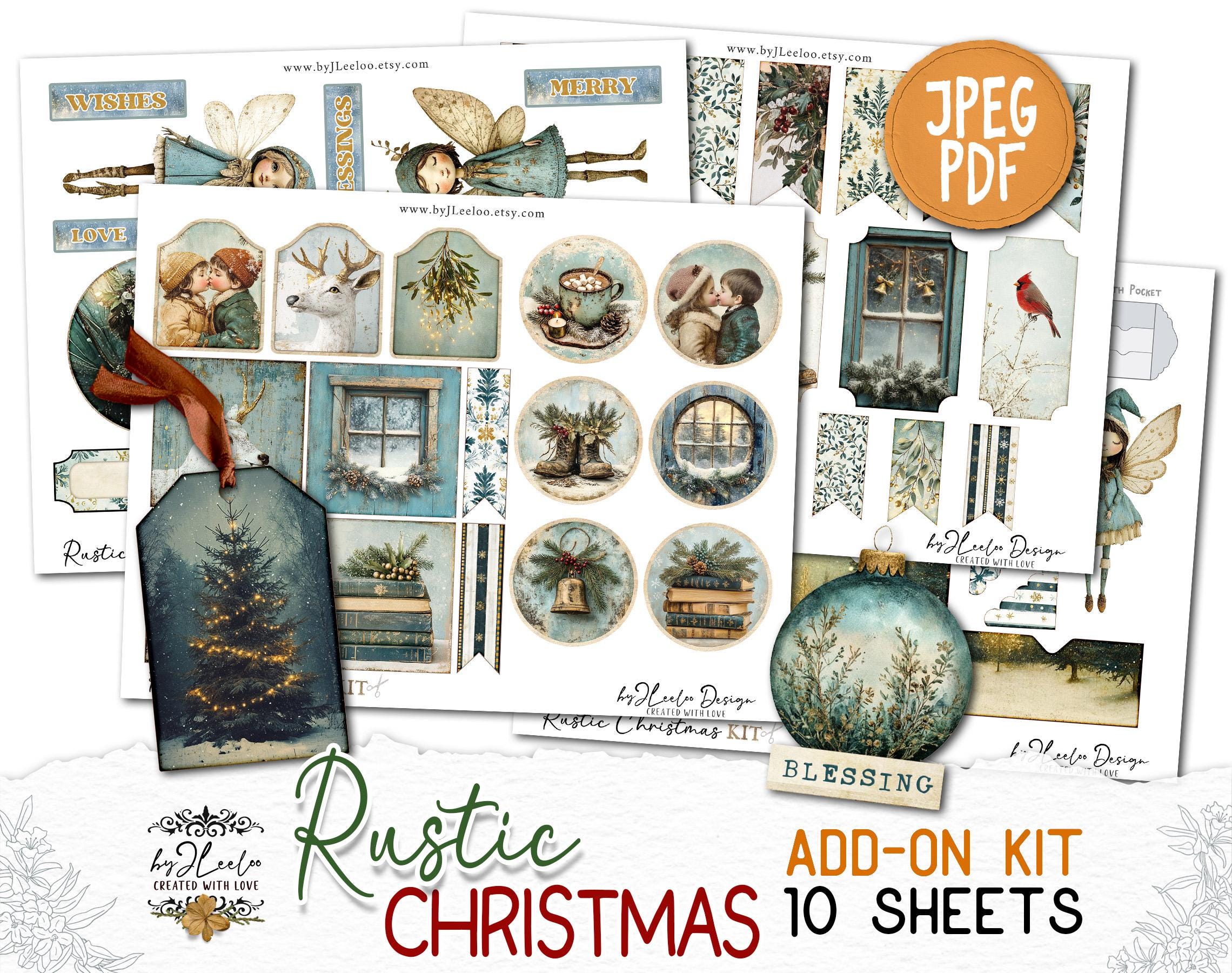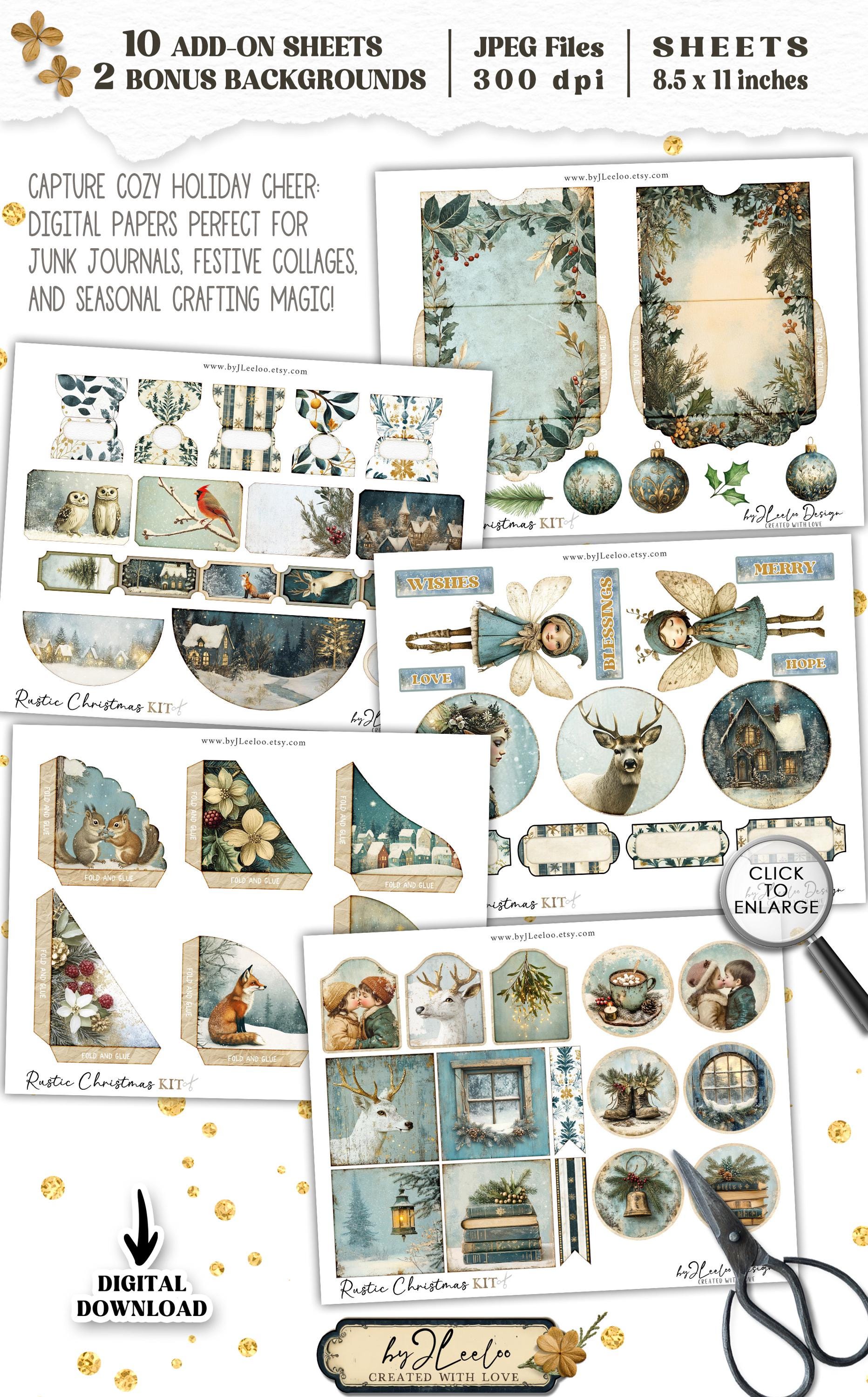 RUSTIC CHRISTMAS Add-On Kit Junk Journal Pages printable | Holidays Romantic Kit scrapbook vintage Digital art supplies | Fussy cut | pp867