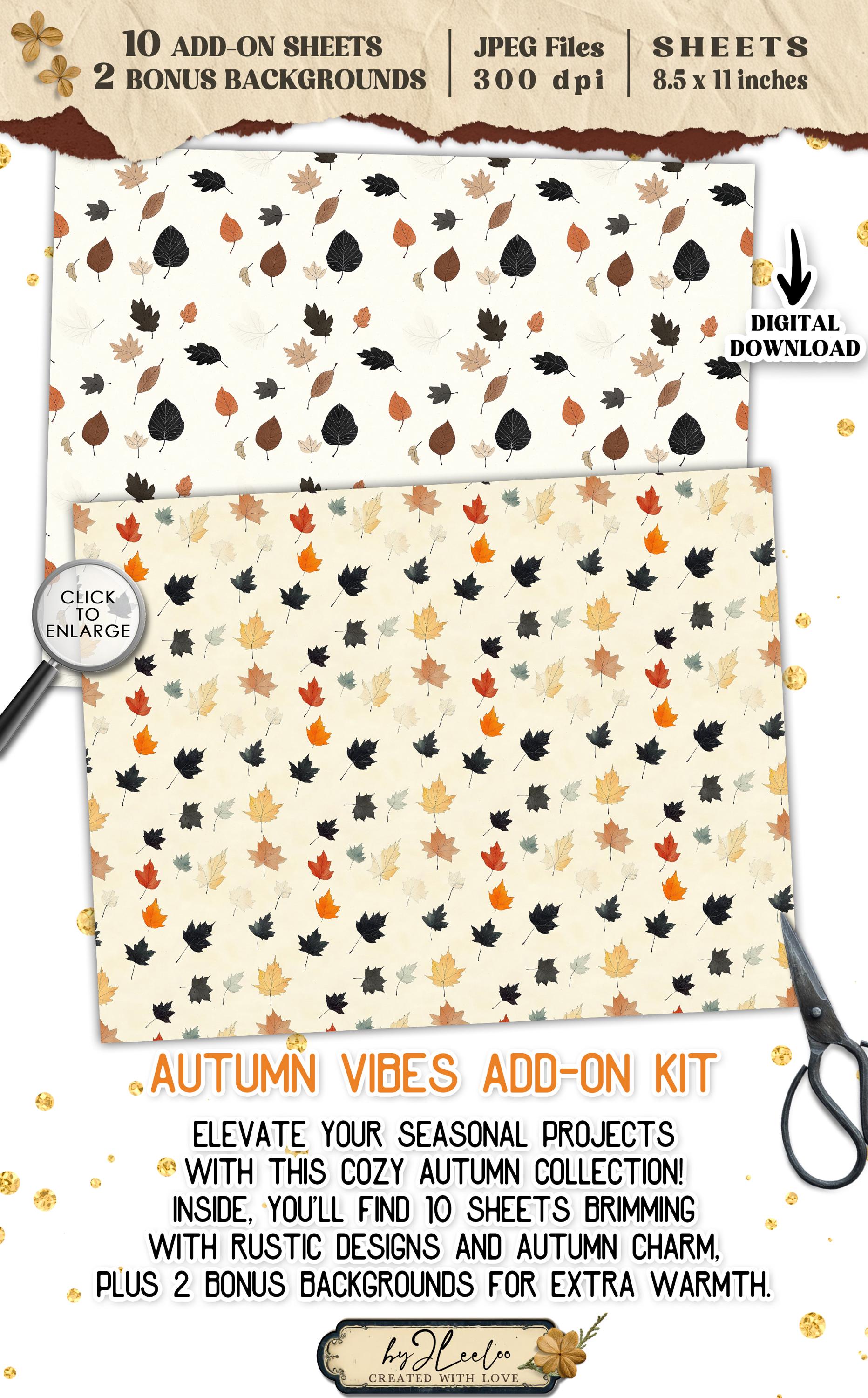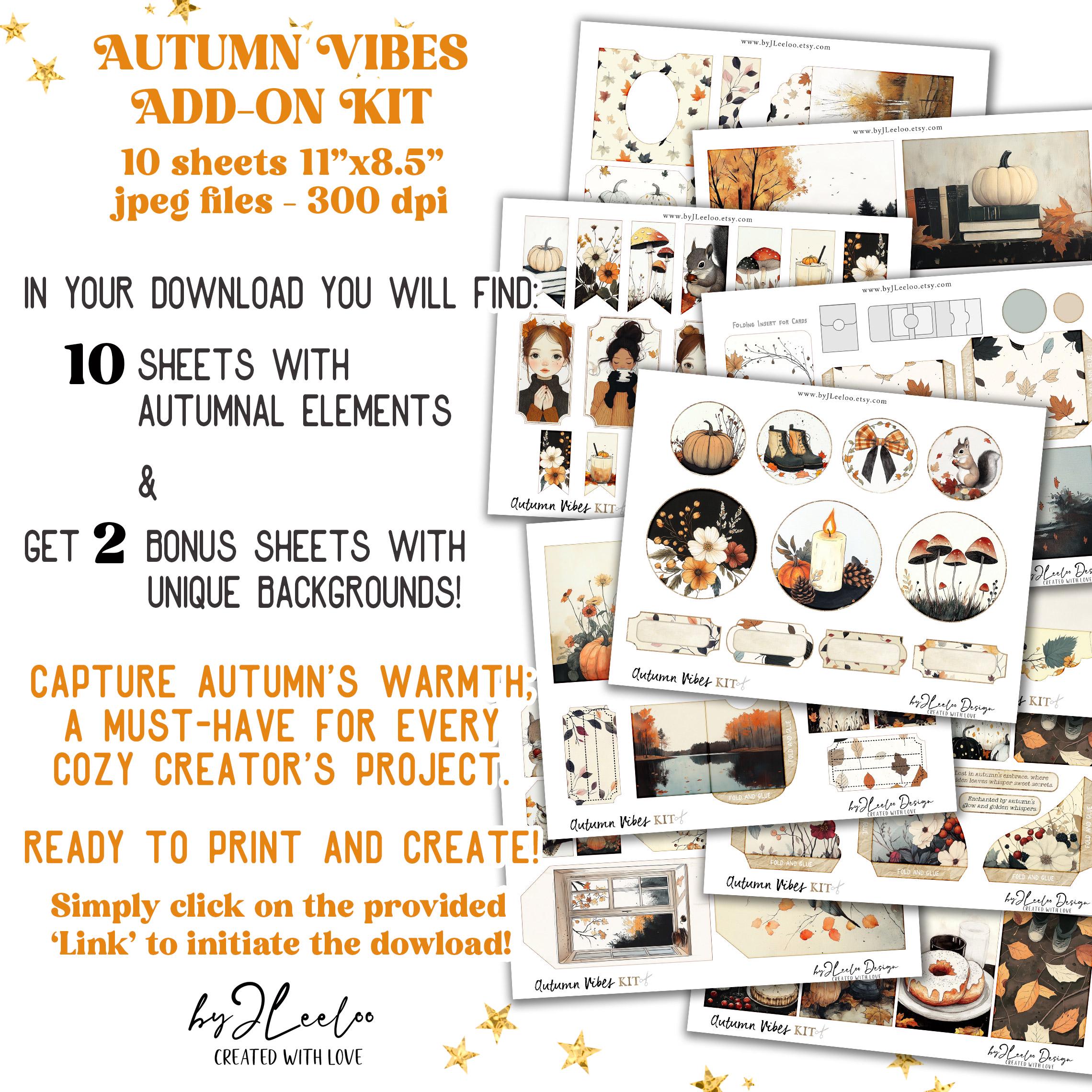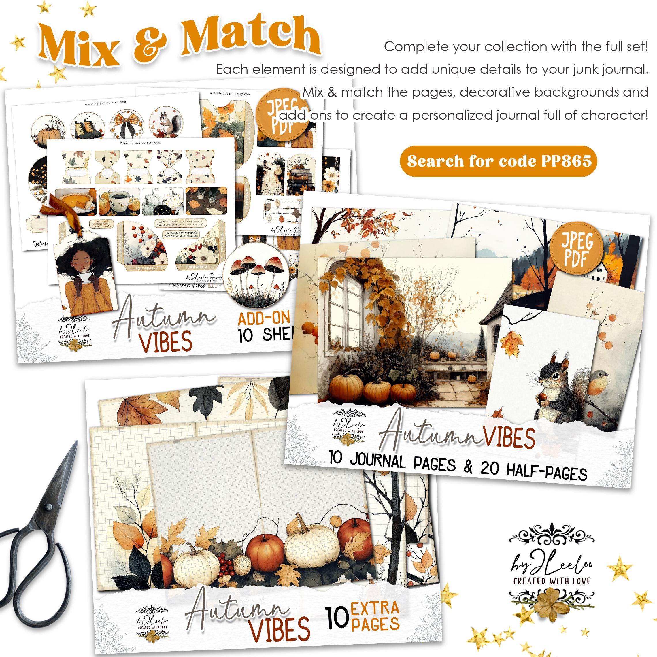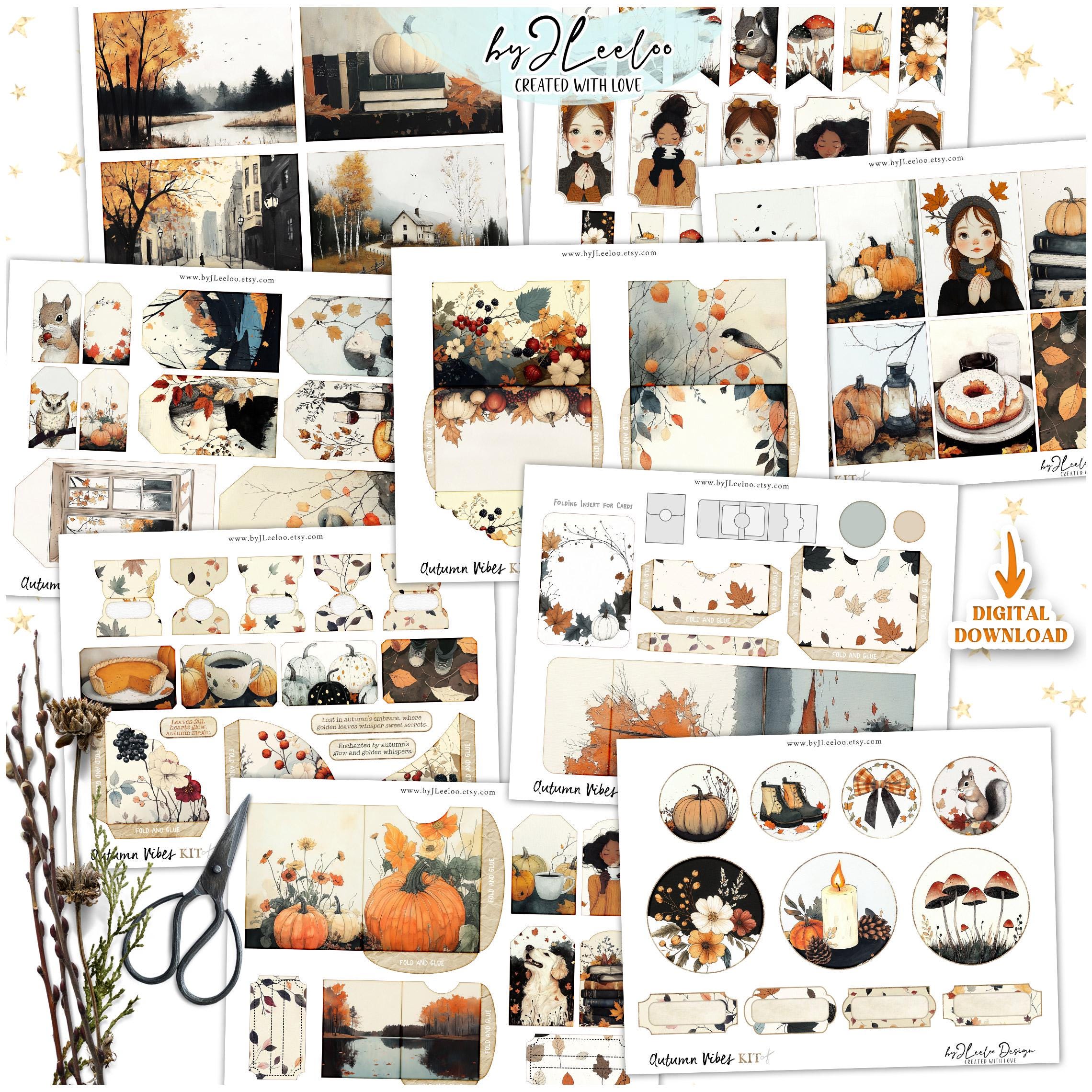 AUTUMN VIBES Add-On Kit Junk Journal Pages printable | Fall season Collage Kit scrapbook vintage ephemera supplies | Fussy cut CU | pp865