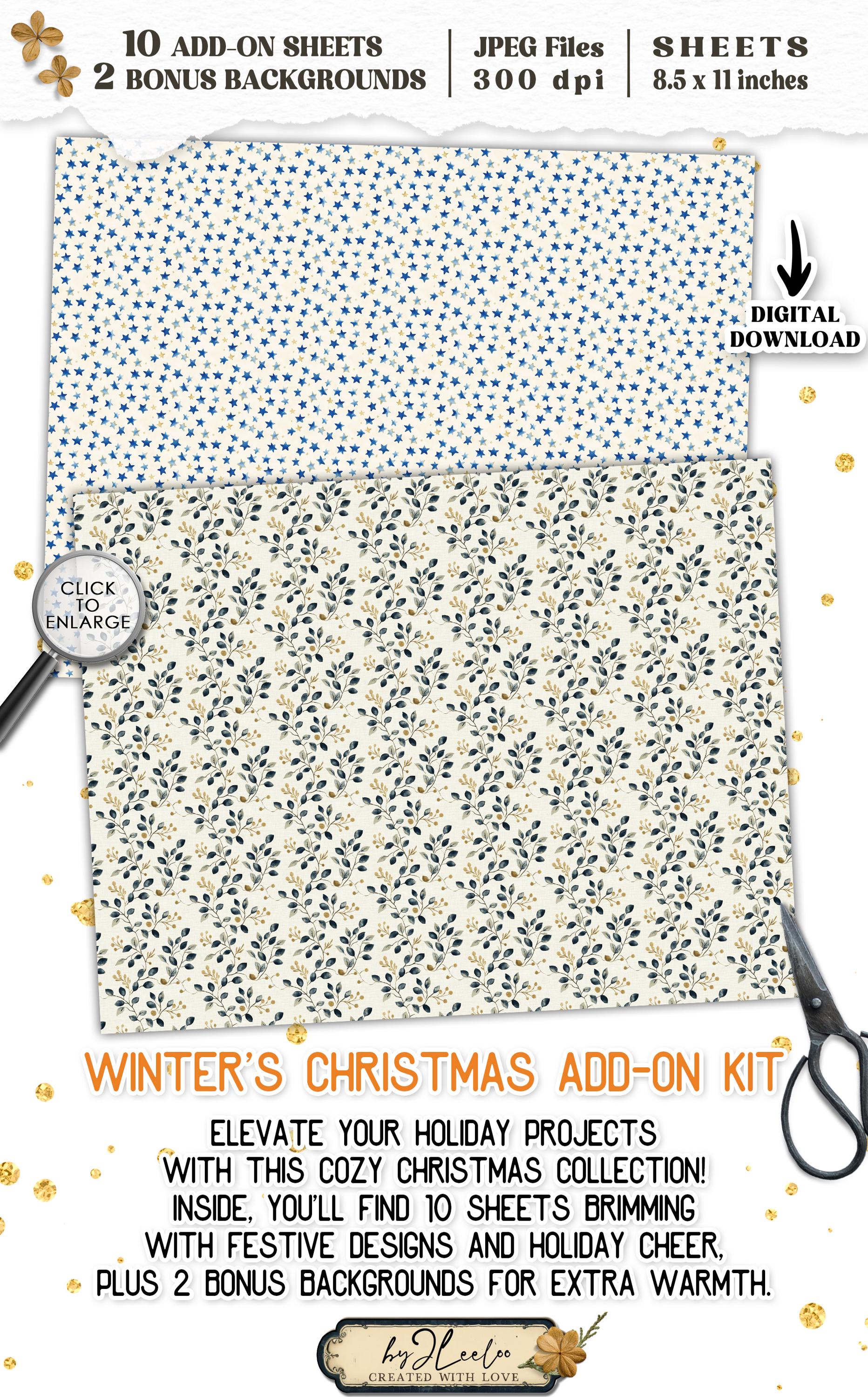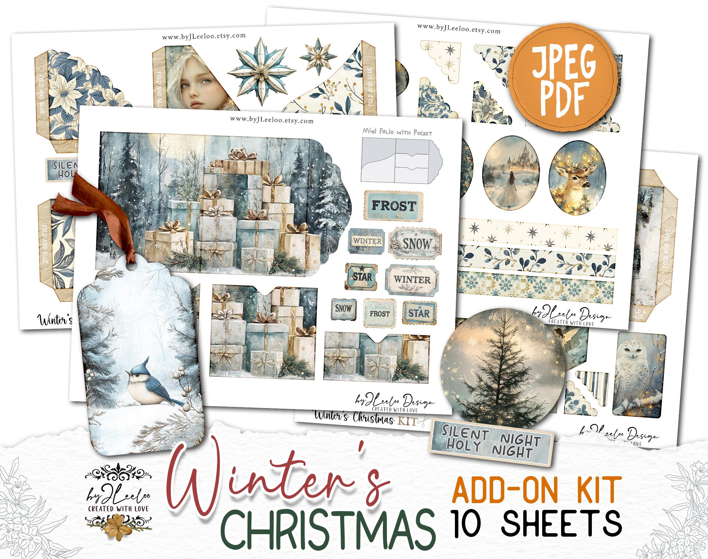 WINTER'S CHRISTMAS ADD-ON Kit Junk Journal Forest Pages printable | Holidays Faery Romantic Kit scrapbook vintage Digital art CU | pp875