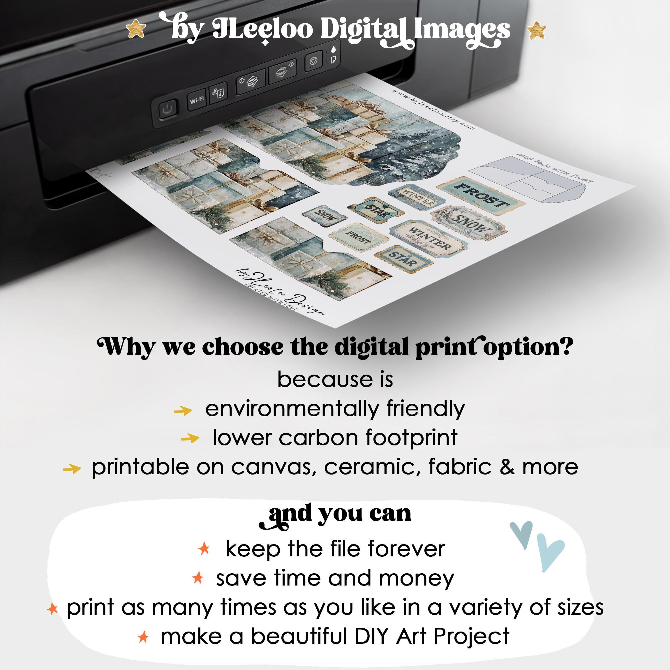 Let the mystical forest backgrounds transport you to a world where winter fairies roam freely, celebrating the holidays amid snow-covered trees and twinkling lights. Each piece is adorned with soft shades of azure, green, and ivory, accented by golden sparkles and vintage textures, capturing the enchanting essence of a magical Christmas in the woods. Perfect for adding a unique, whimsical touch to your journal, this collection will make your holiday crafting unforgettable. ๐