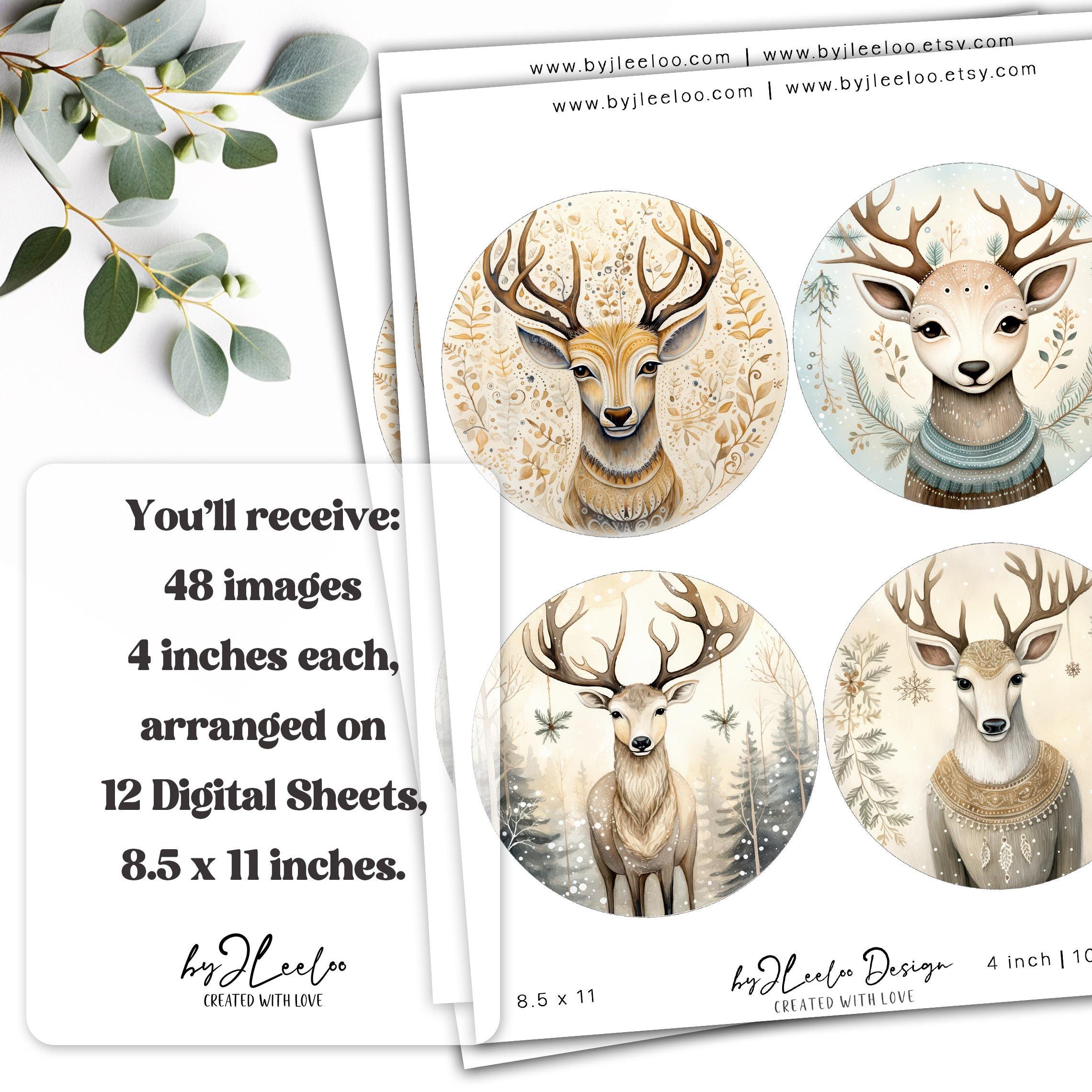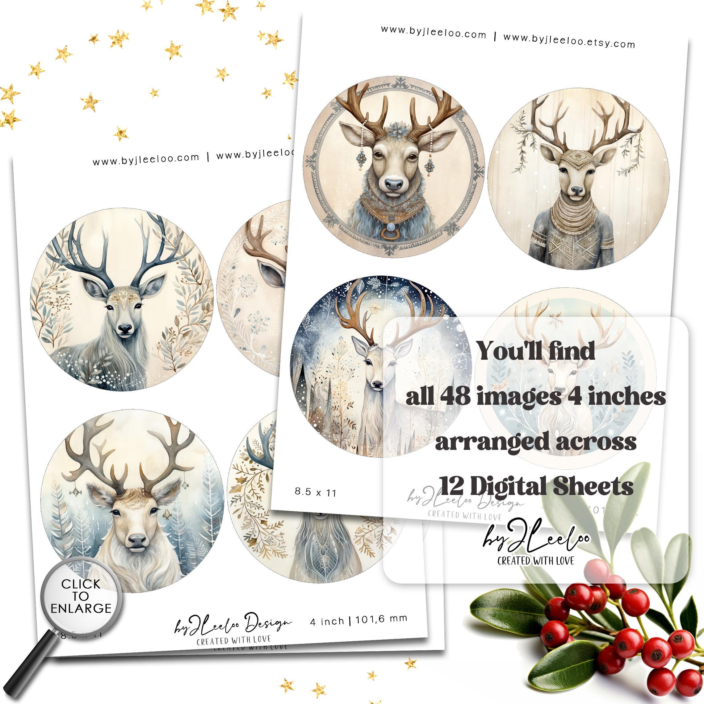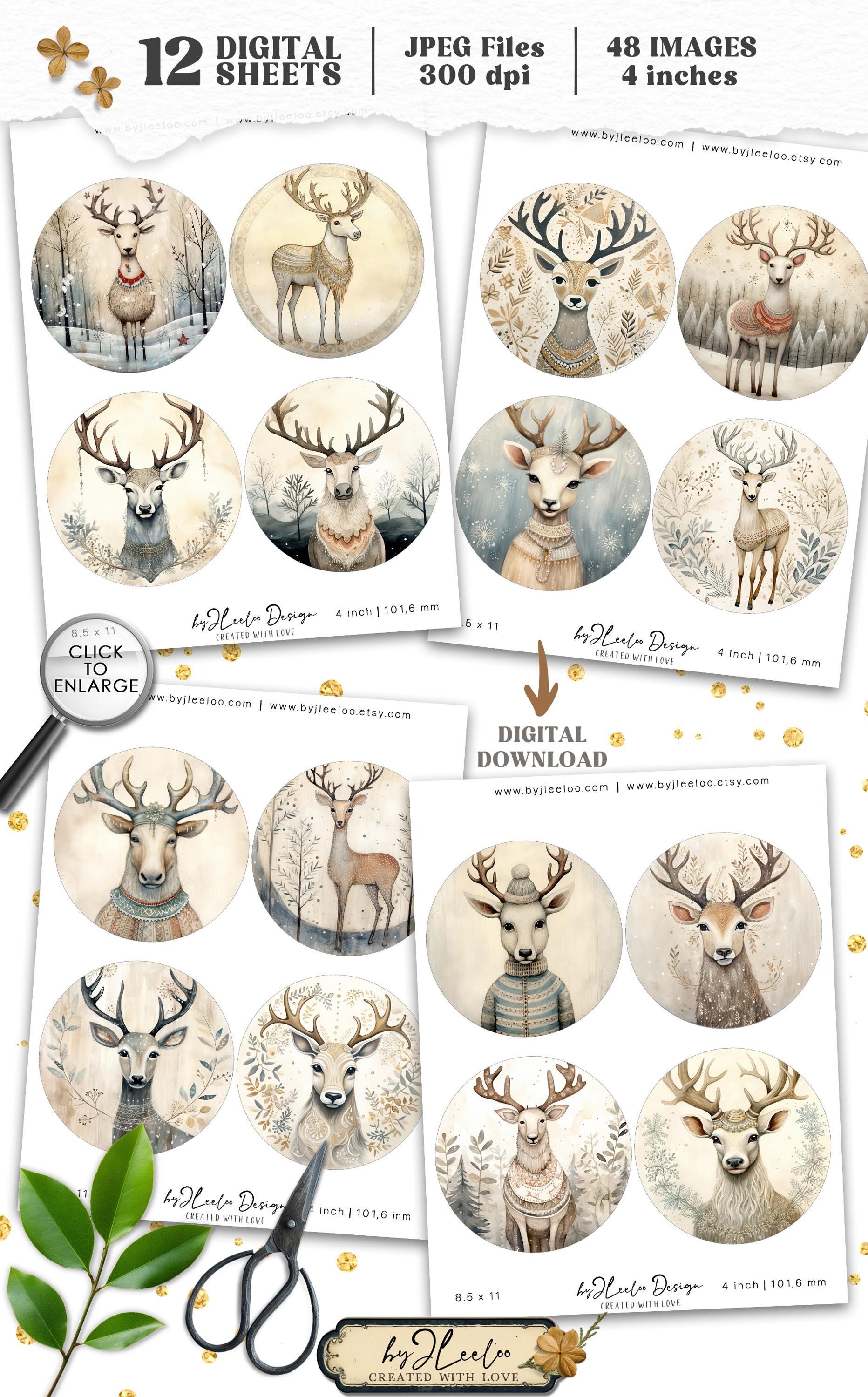 QUIRKY REINDEER 4 inch circle | round supplies for coaster decoration mirror magnet and craft instant download diy | Circle Labels | tn824