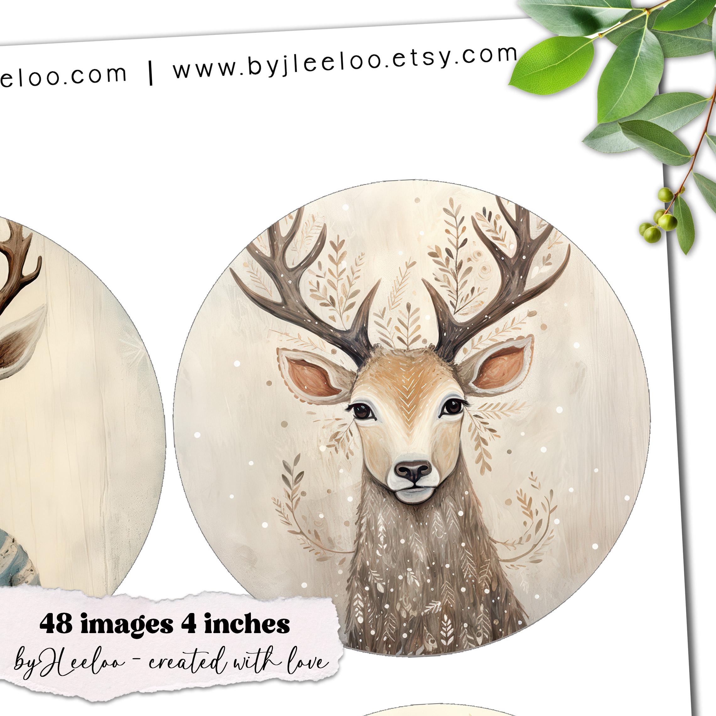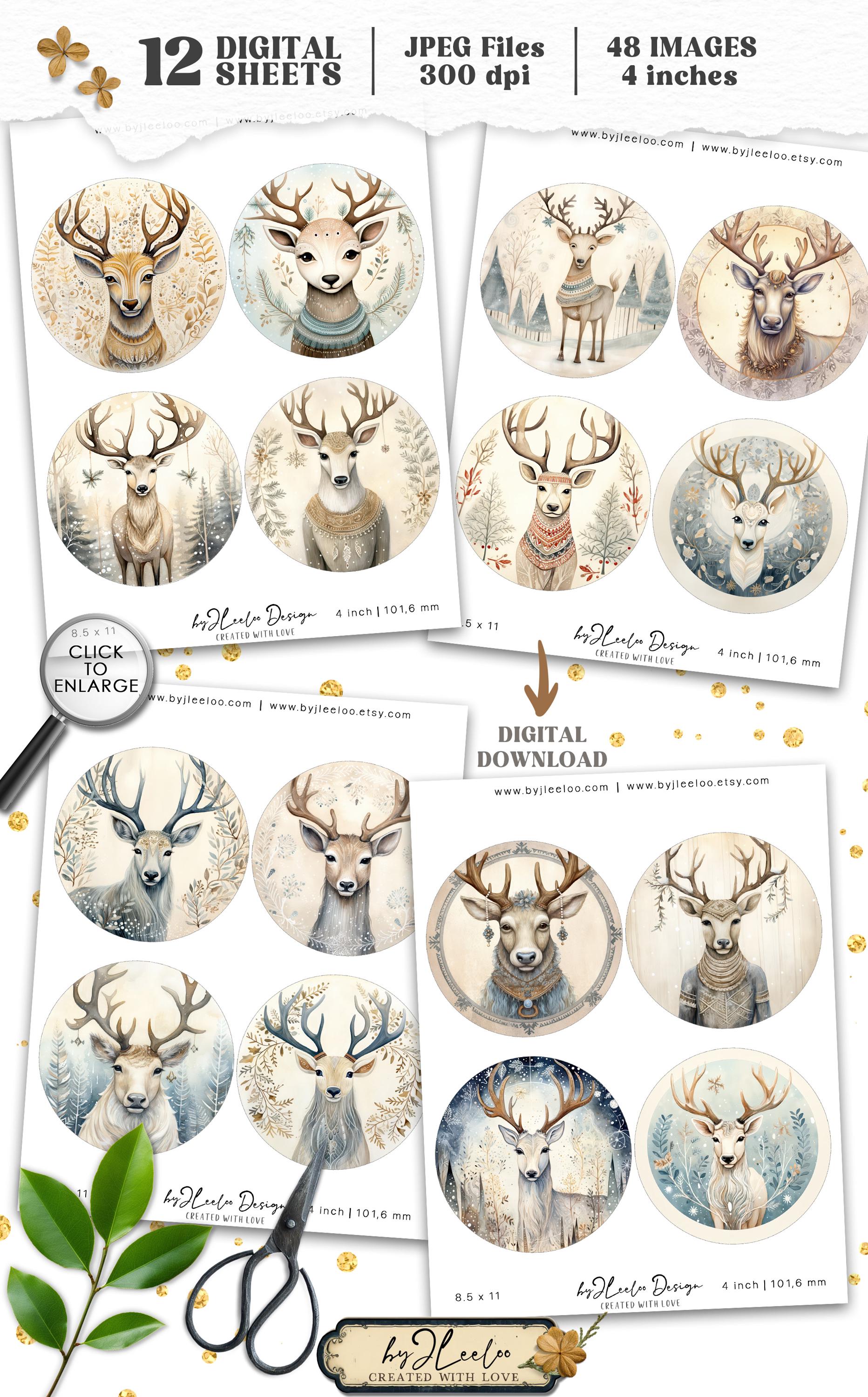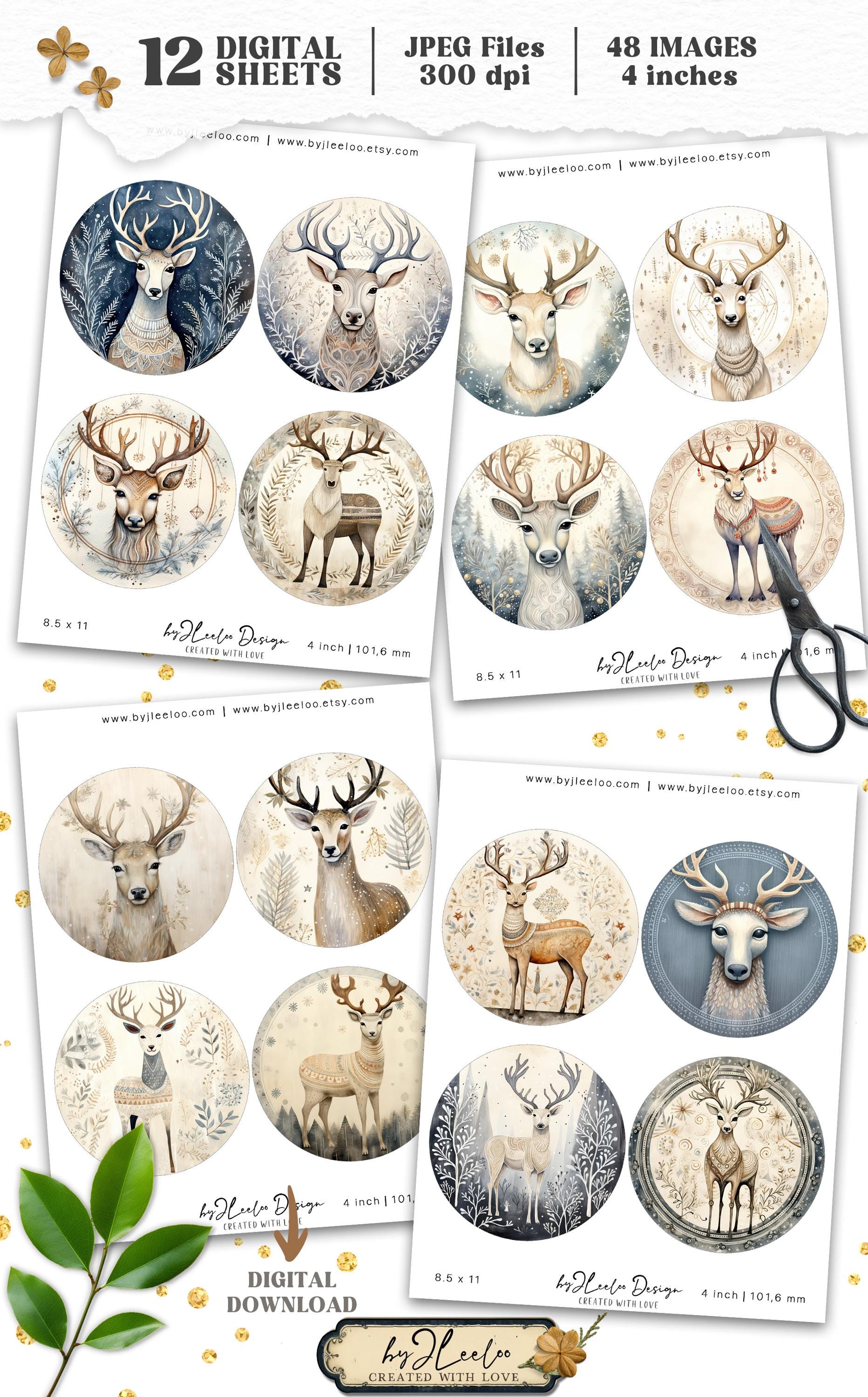 QUIRKY REINDEER 4 inch circle | round supplies for coaster decoration mirror magnet and craft instant download diy | Circle Labels | tn824