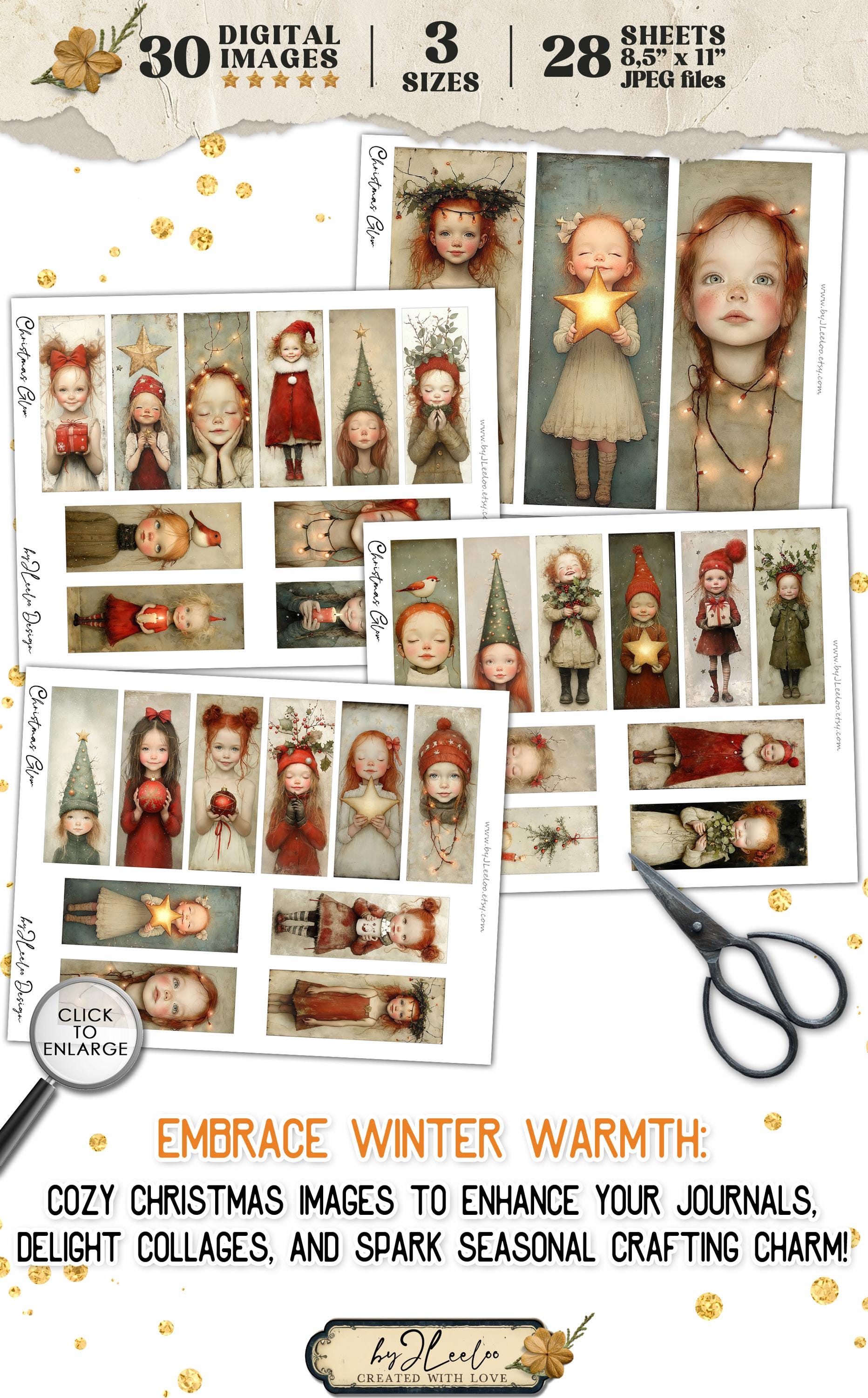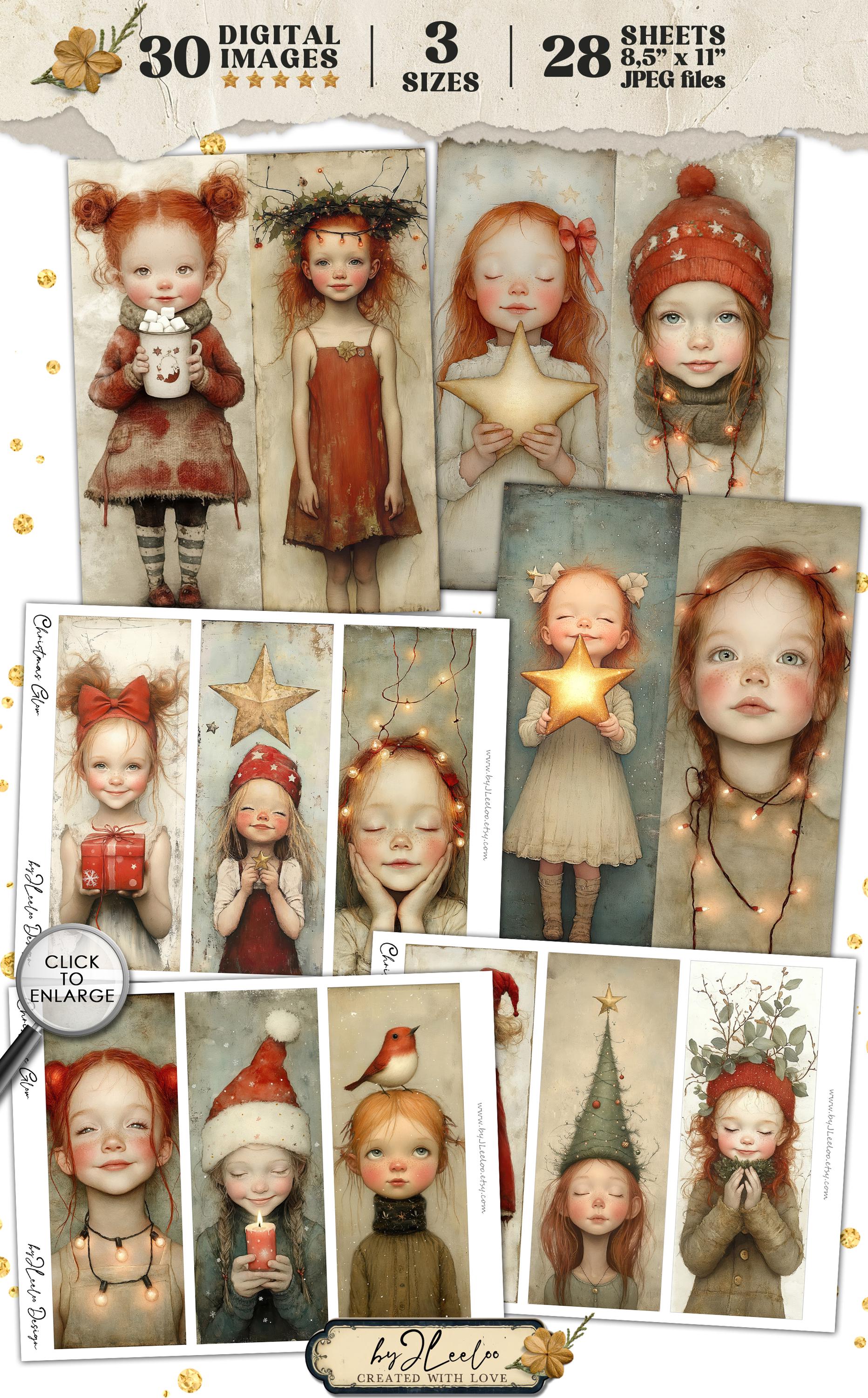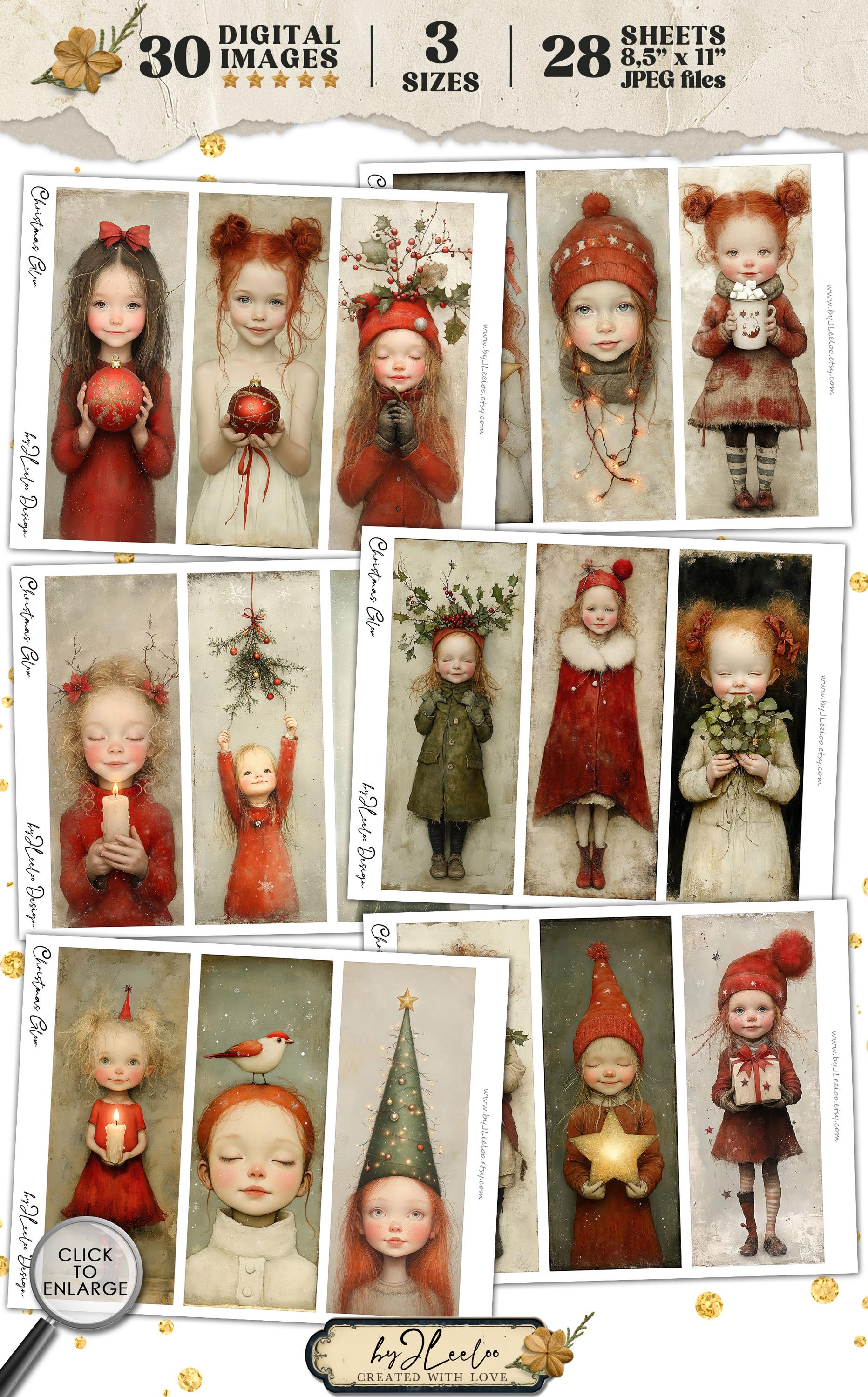CHRISTMAS GLOW bookmarks 3 sizes | Christmas Festive Girl illustration wrapper decor gift | Label tag printable Junk Journal Digital | bm121