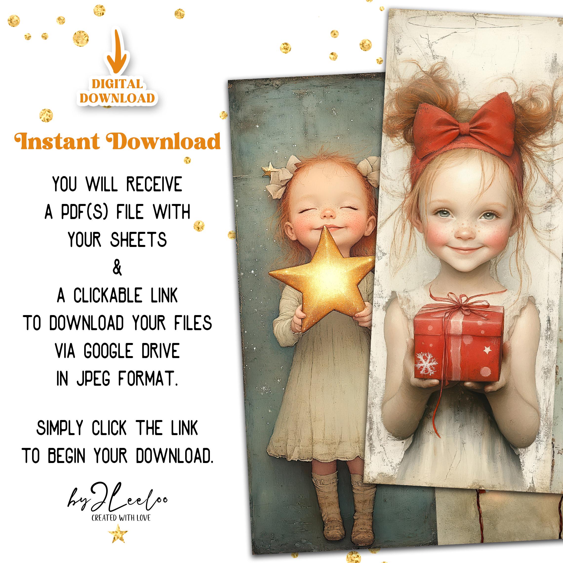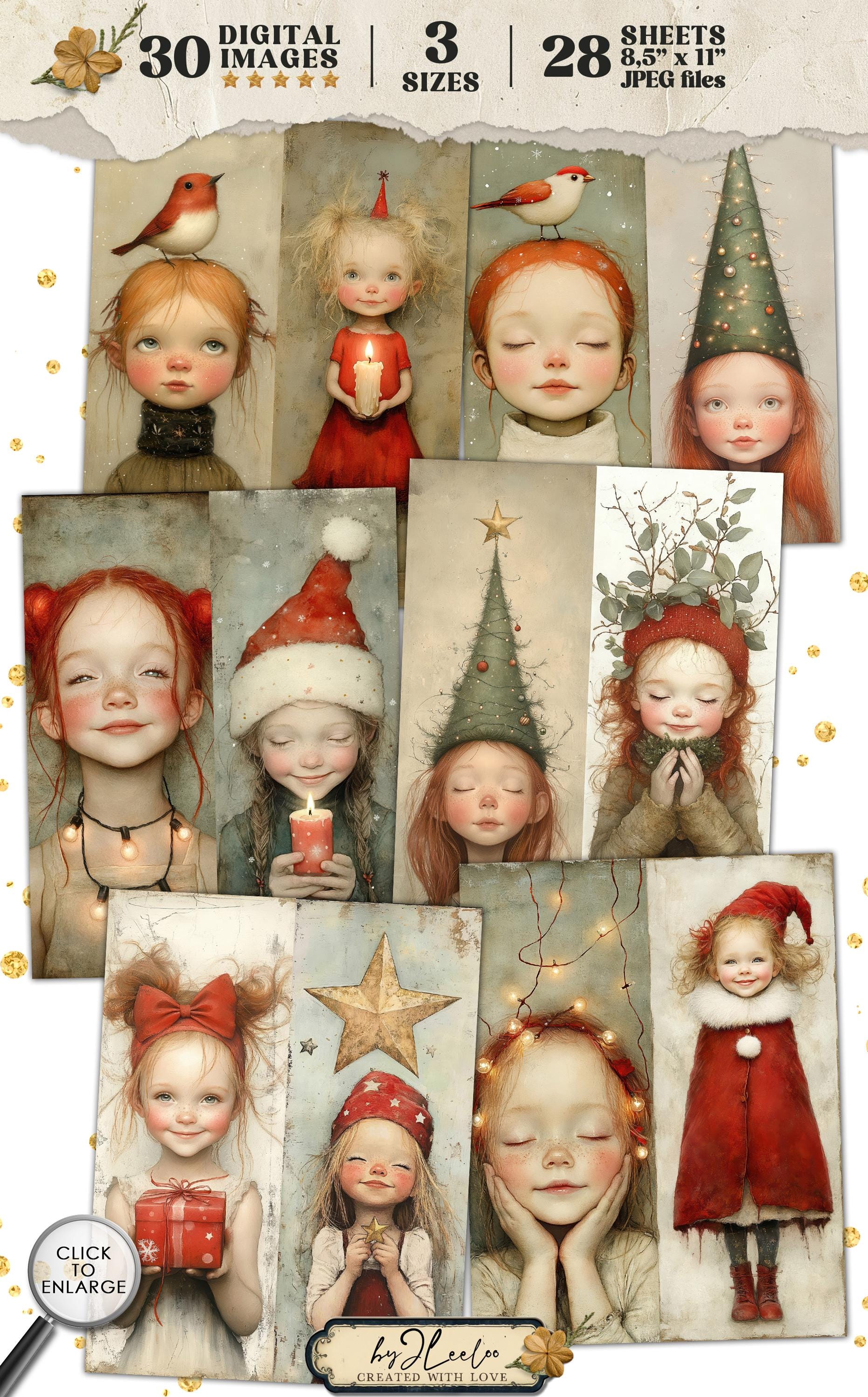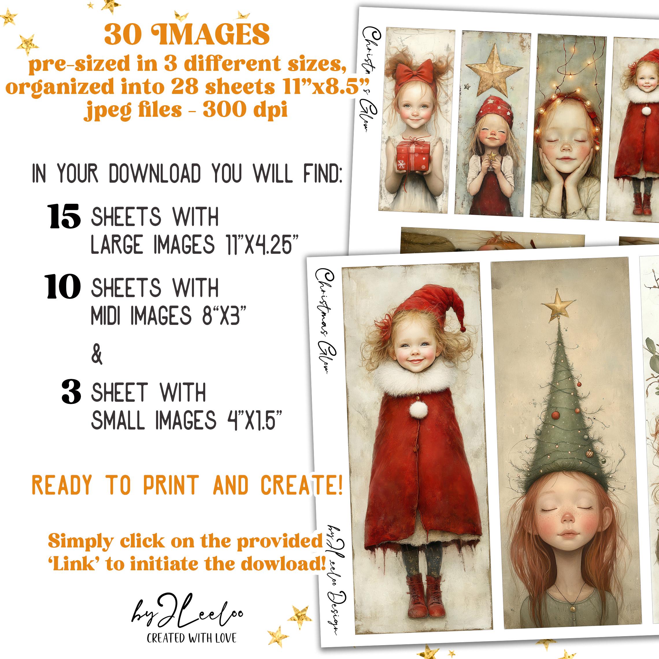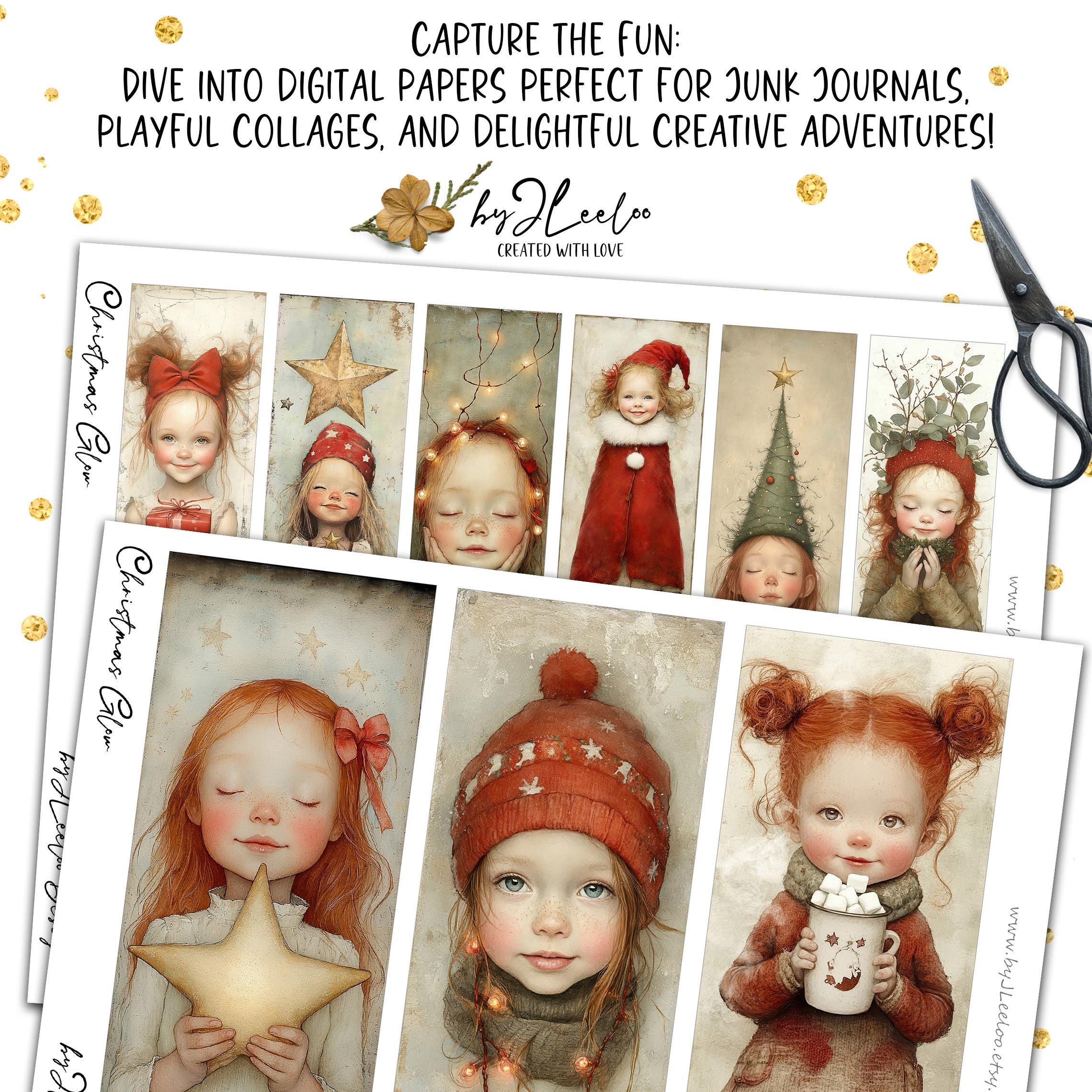 CHRISTMAS GLOW bookmarks 3 sizes | Christmas Festive Girl illustration wrapper decor gift | Label tag printable Junk Journal Digital | bm121