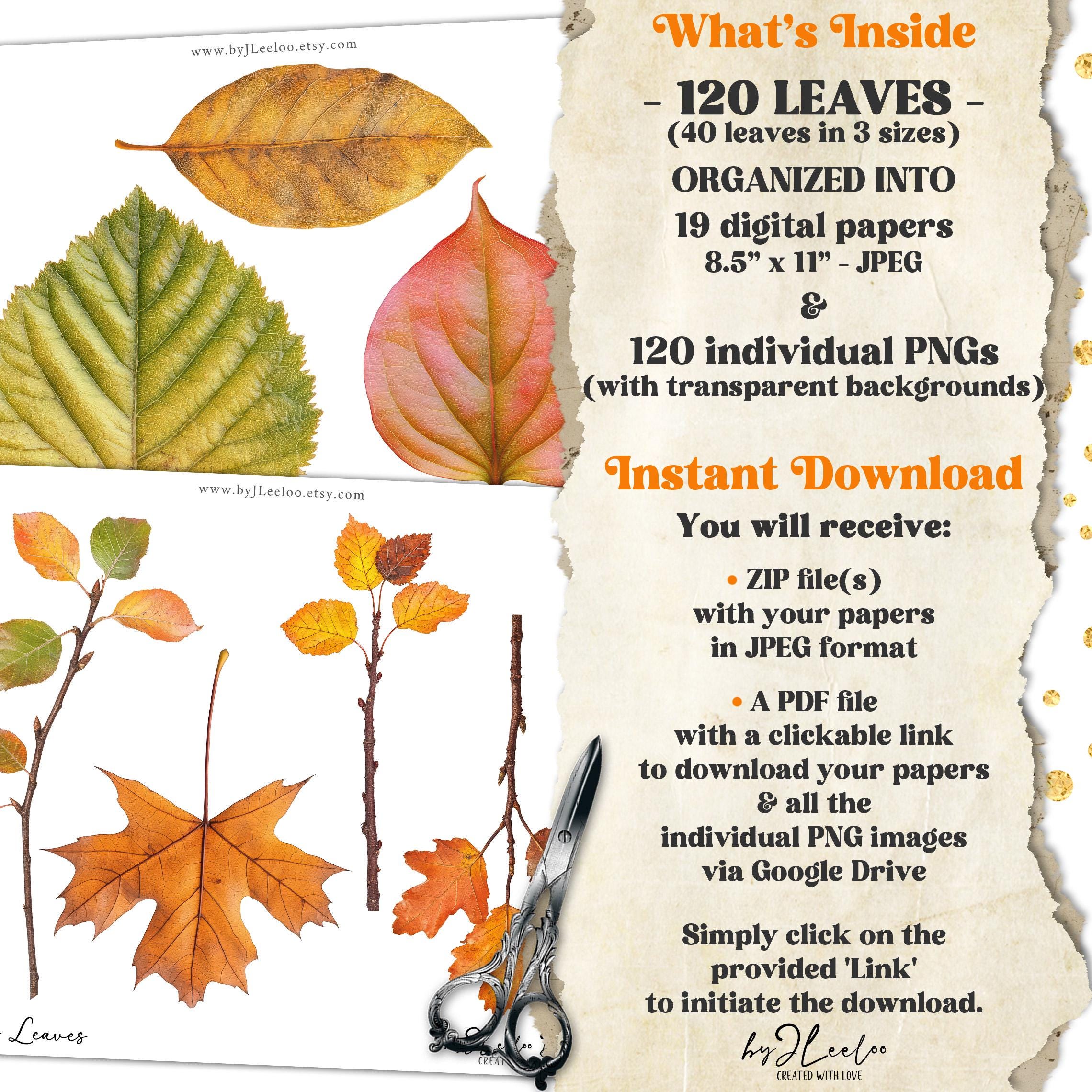 AUTUMN LEAVES 120 Png | Fall leaves clipart | yellow orange fall leaves | Maple Oak foliage for junk journal scrapbooking junk journal cl182