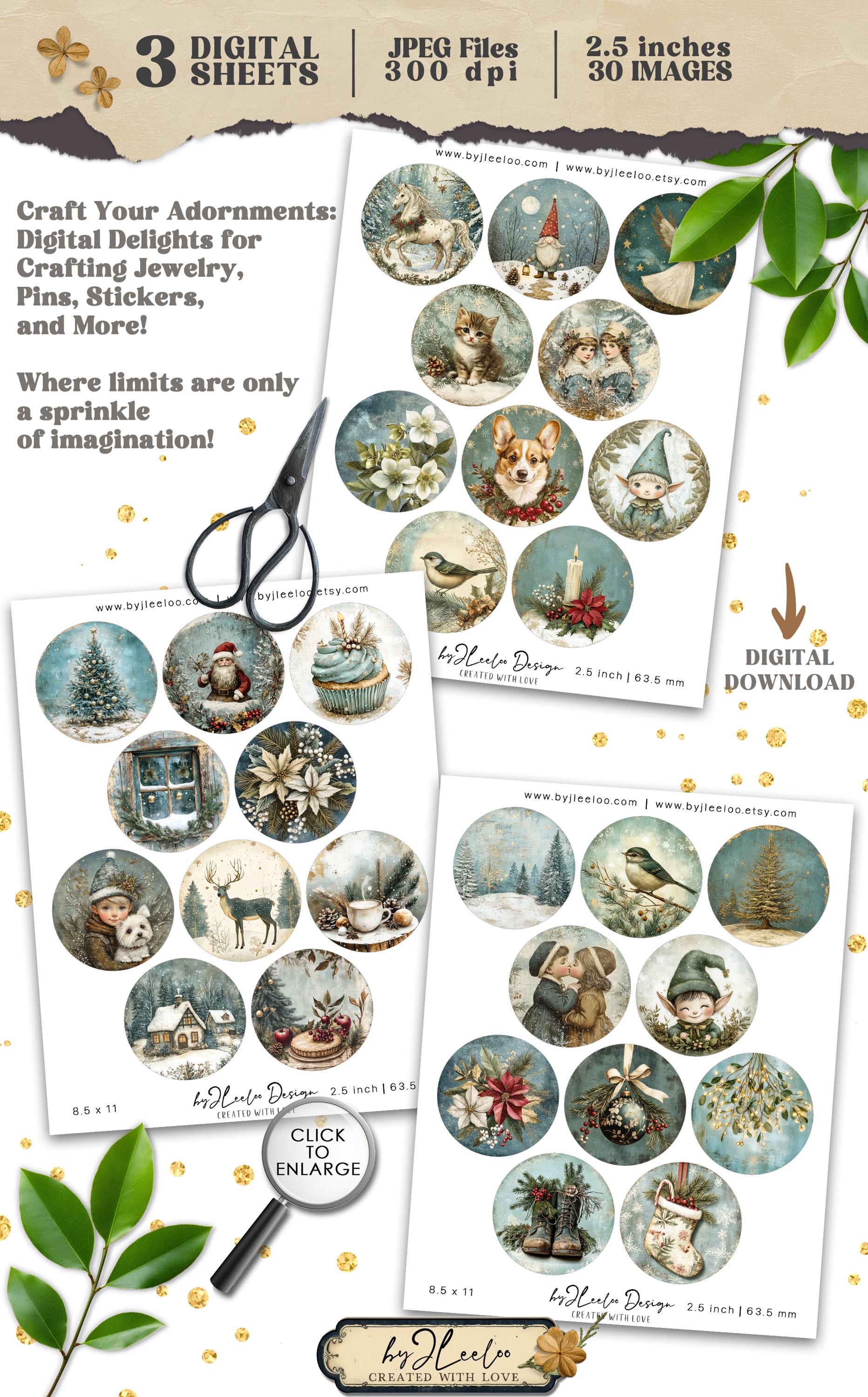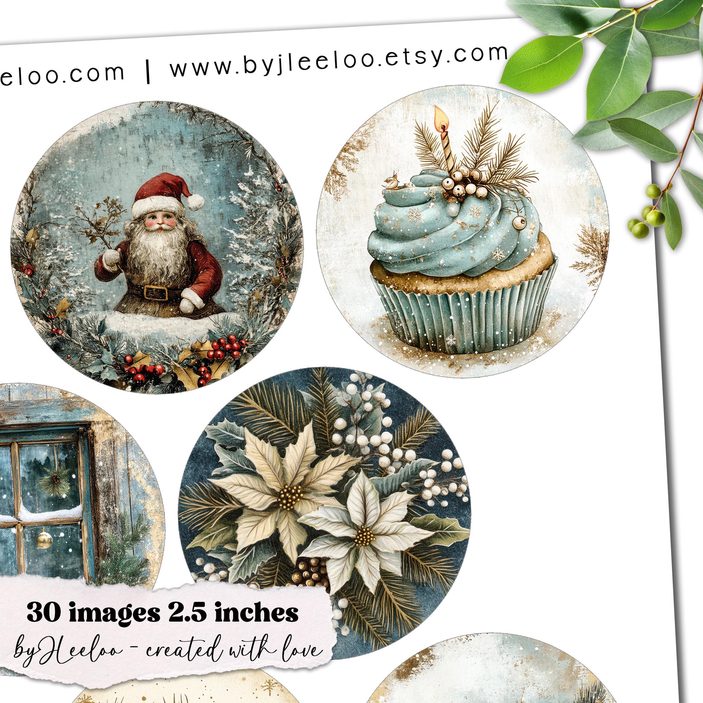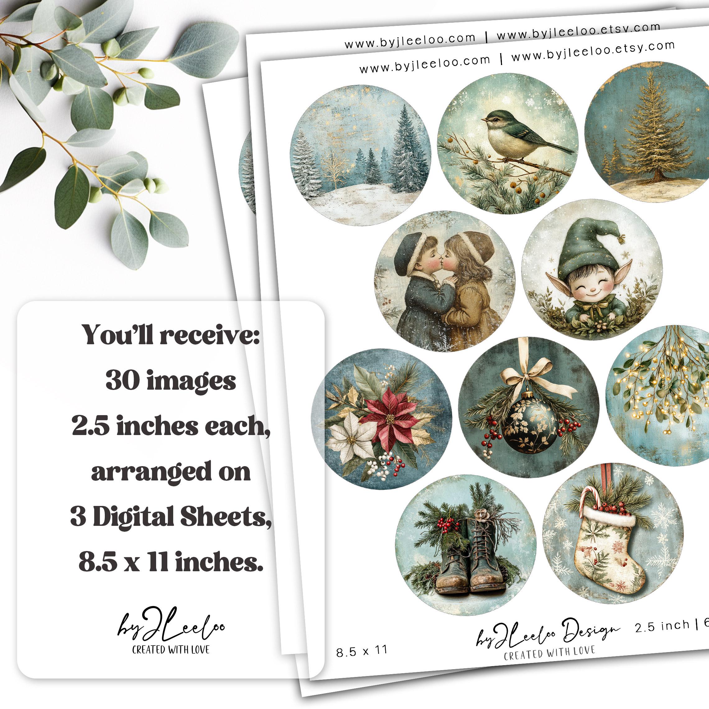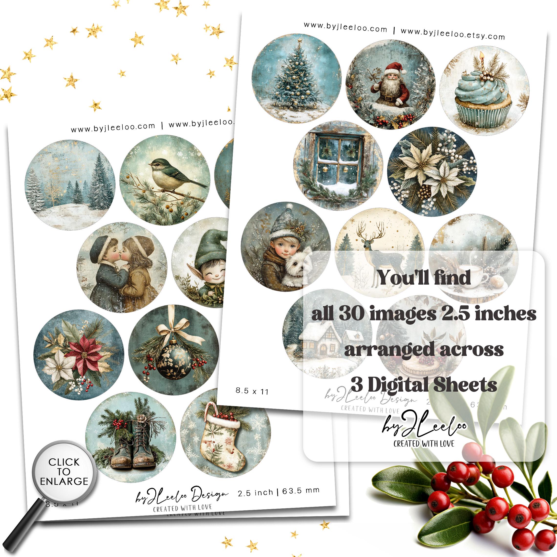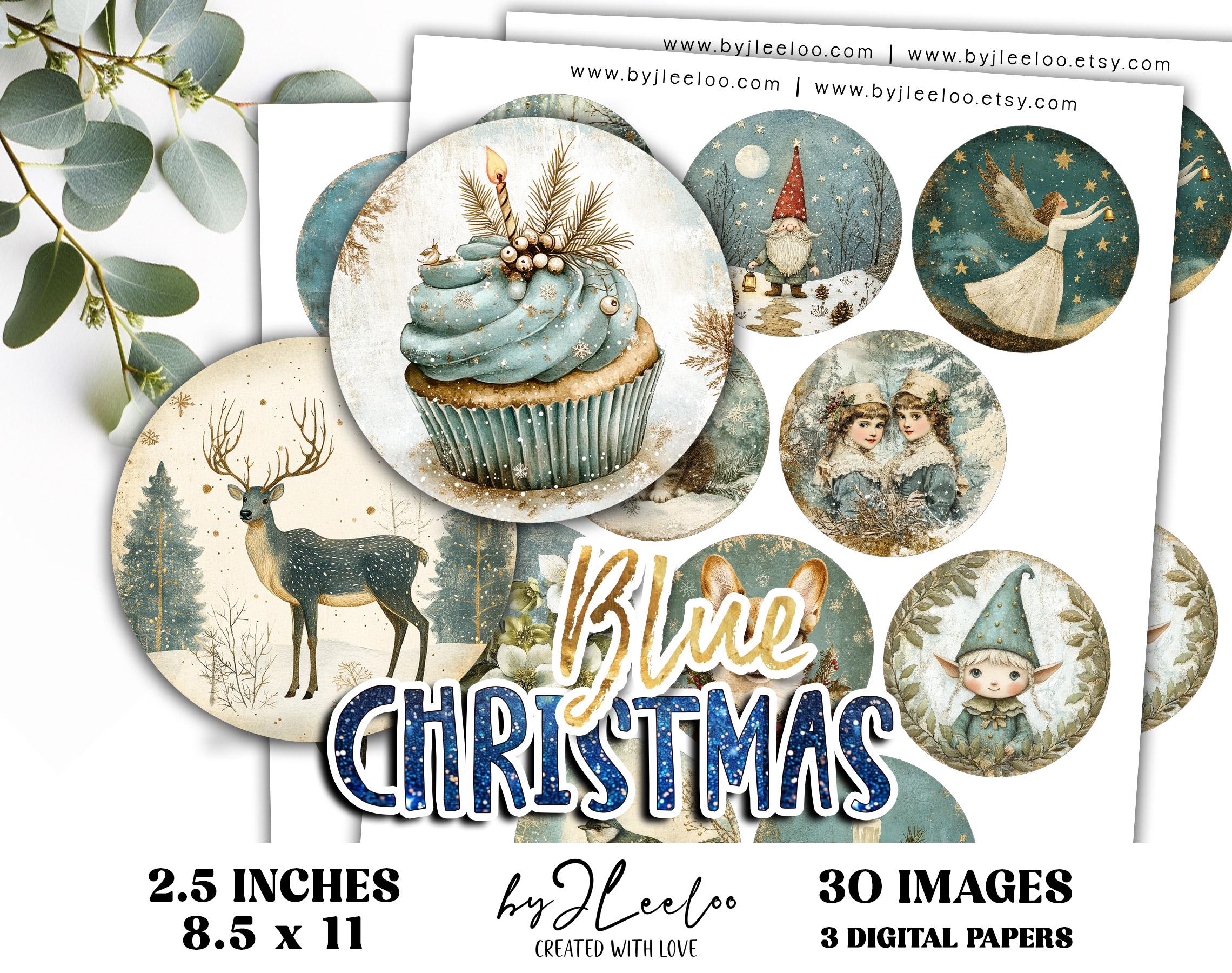 BLUE CHRISTMAS 2.5 inch printable Tags DIY Gift Labels Bottle Caps Stickers | Collage sheet | Cupcake Toppers Christmas Decorations | tn833