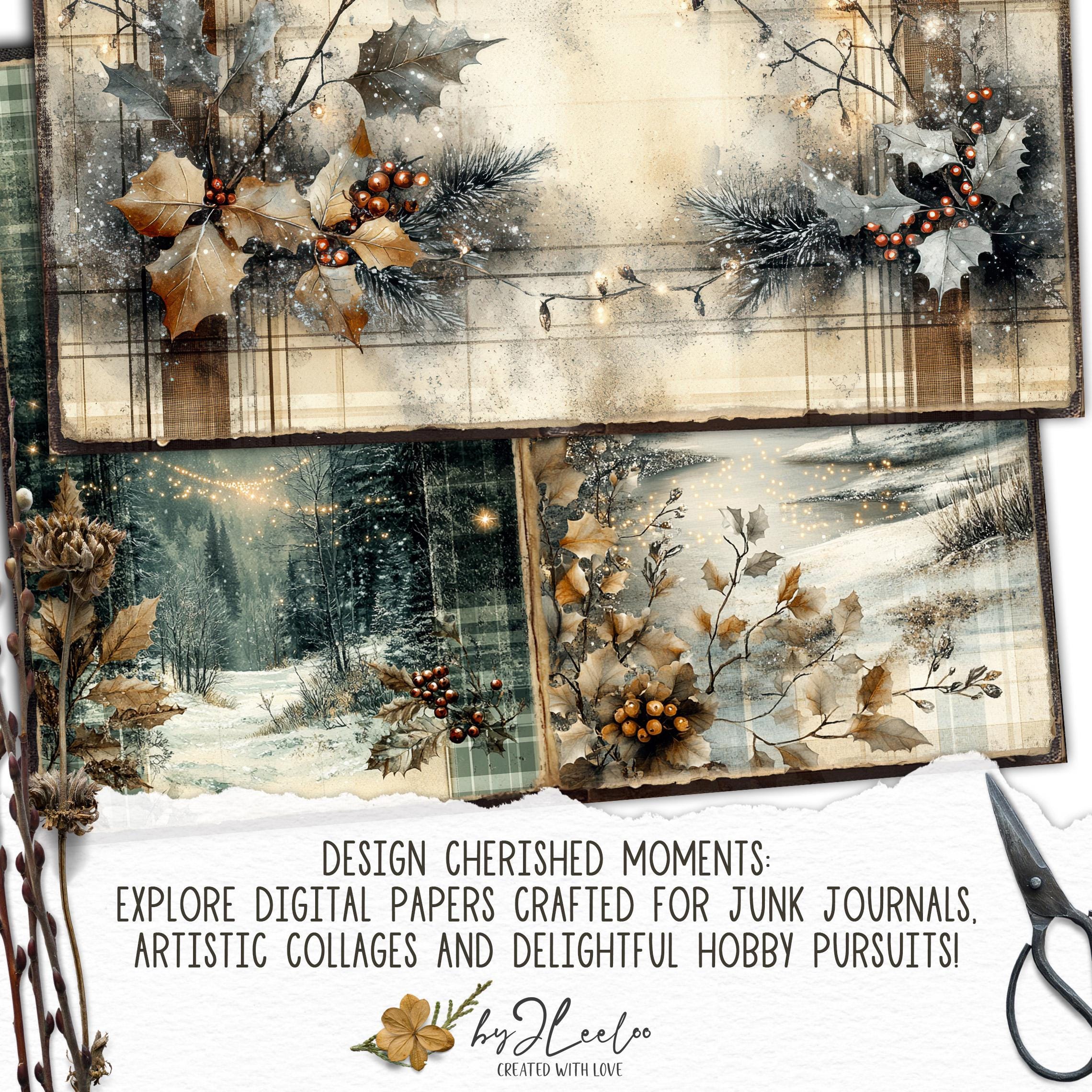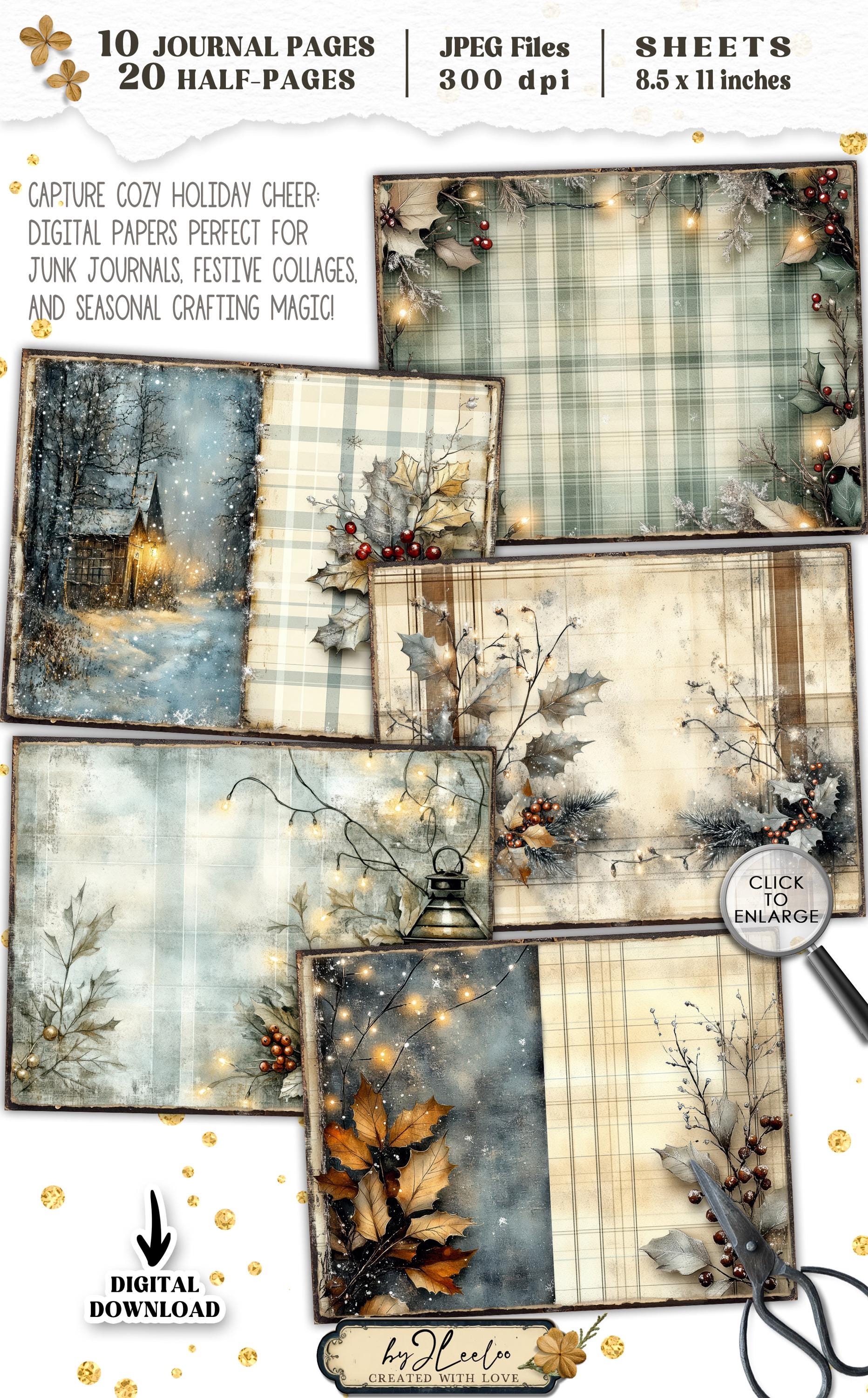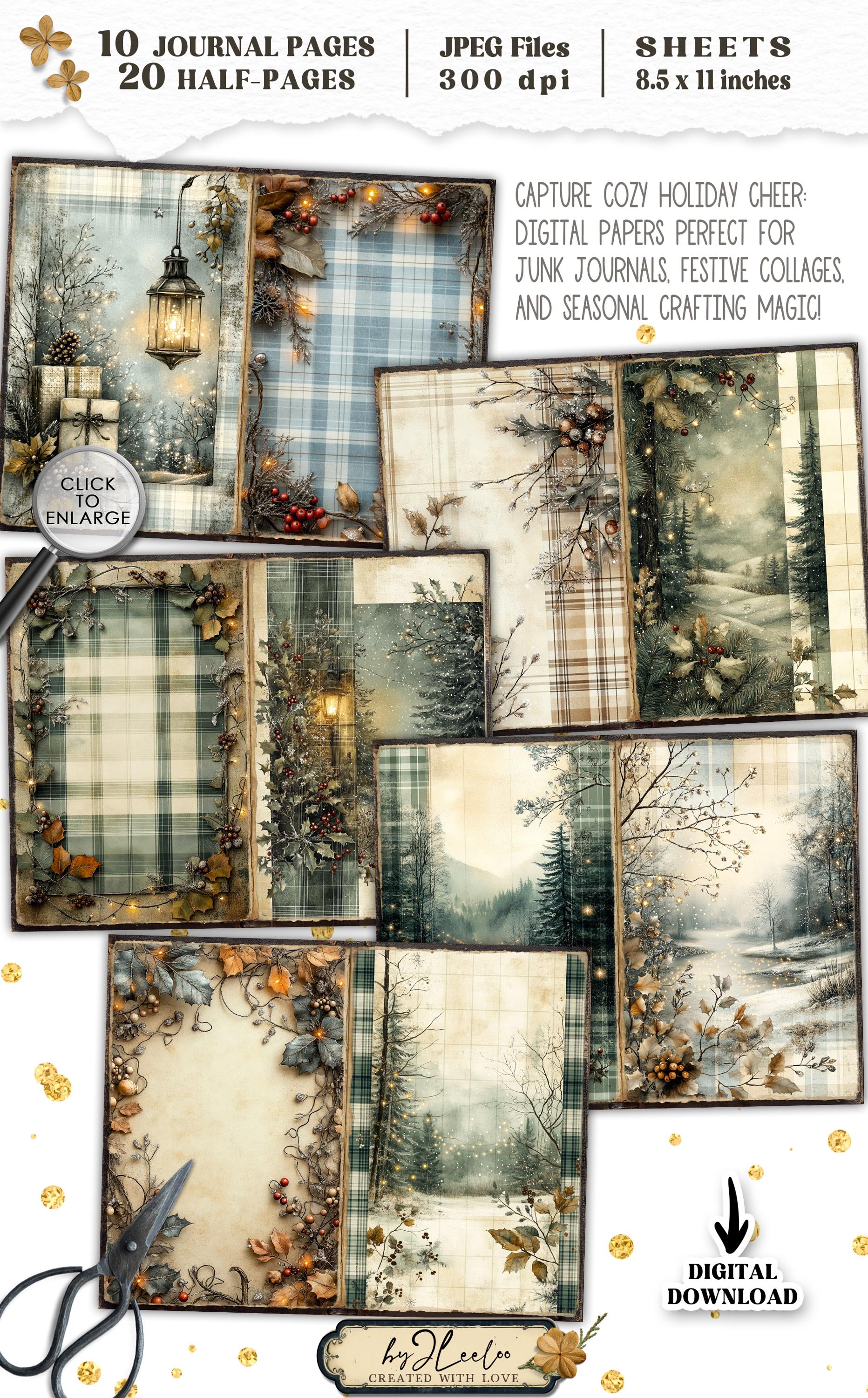 TWINKLING PLAID Junk Journal Christmas Pages printable | Frozen forest Winter Cottage | vintage Kit scrapbook December Paper Craft | pp885