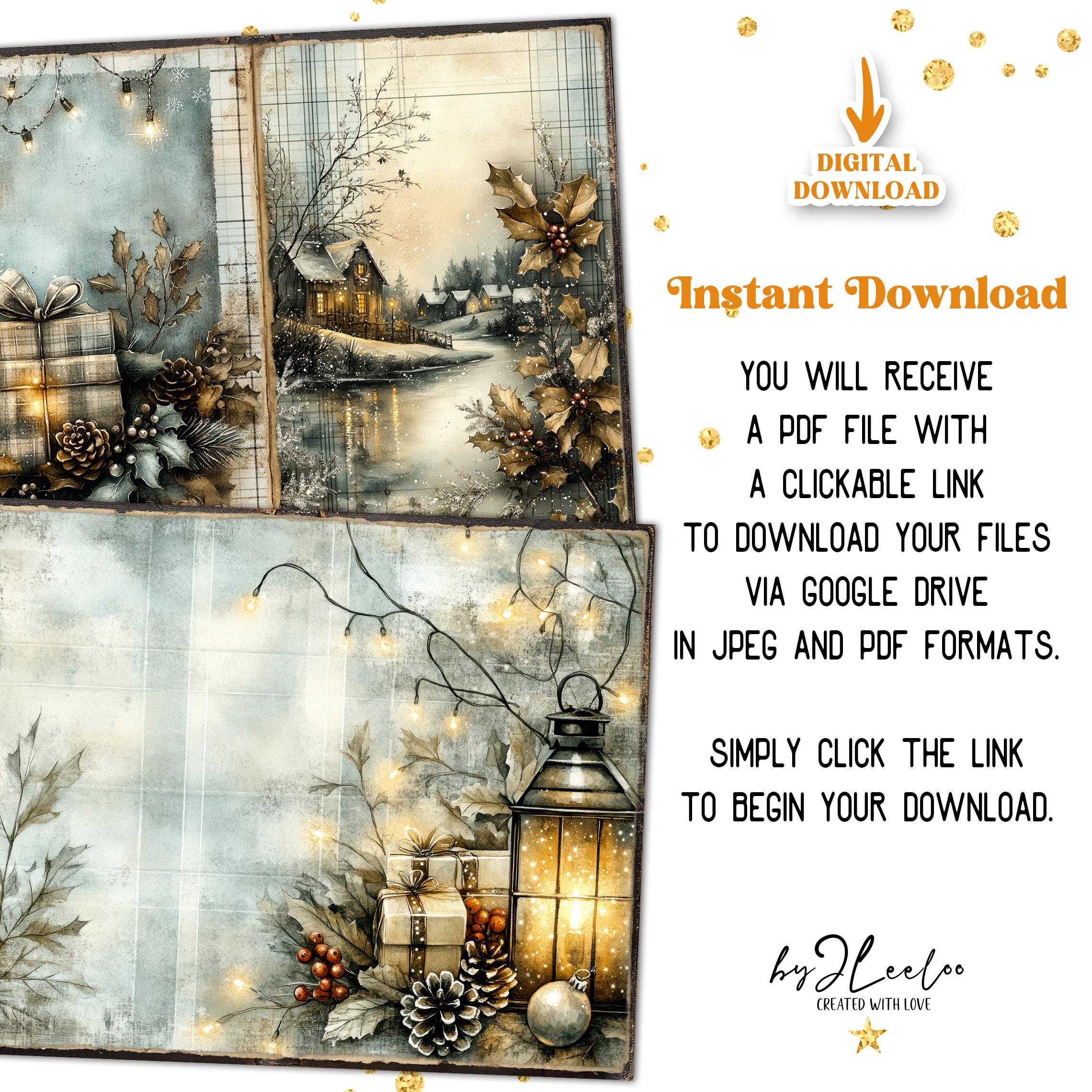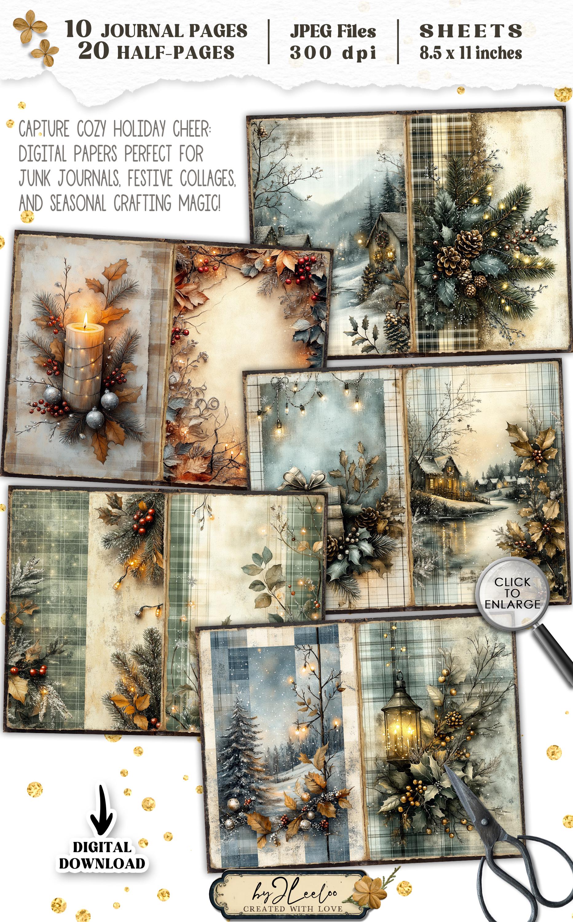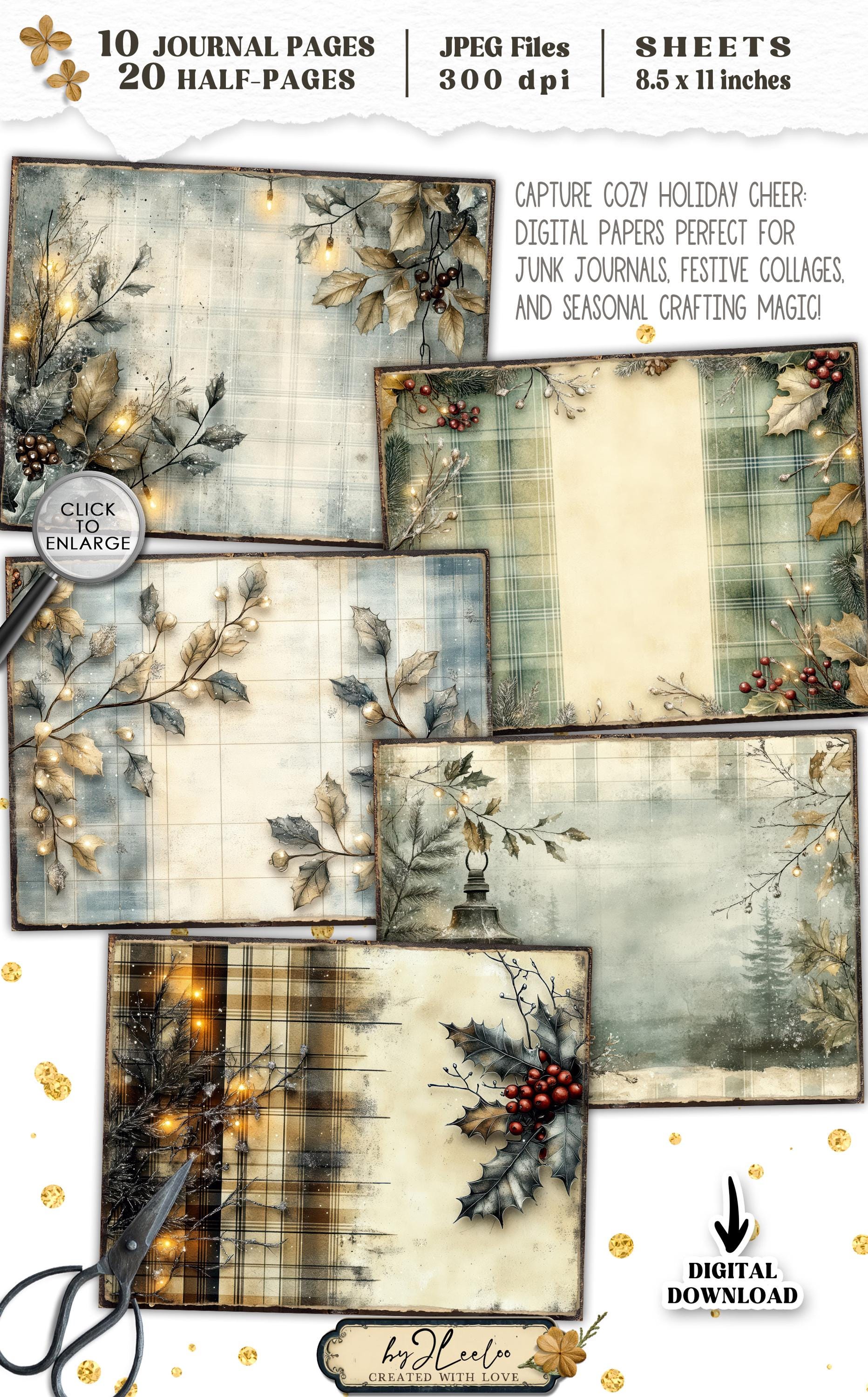 TWINKLING PLAID Junk Journal Christmas Pages printable | Frozen forest Winter Cottage | vintage Kit scrapbook December Paper Craft | pp885